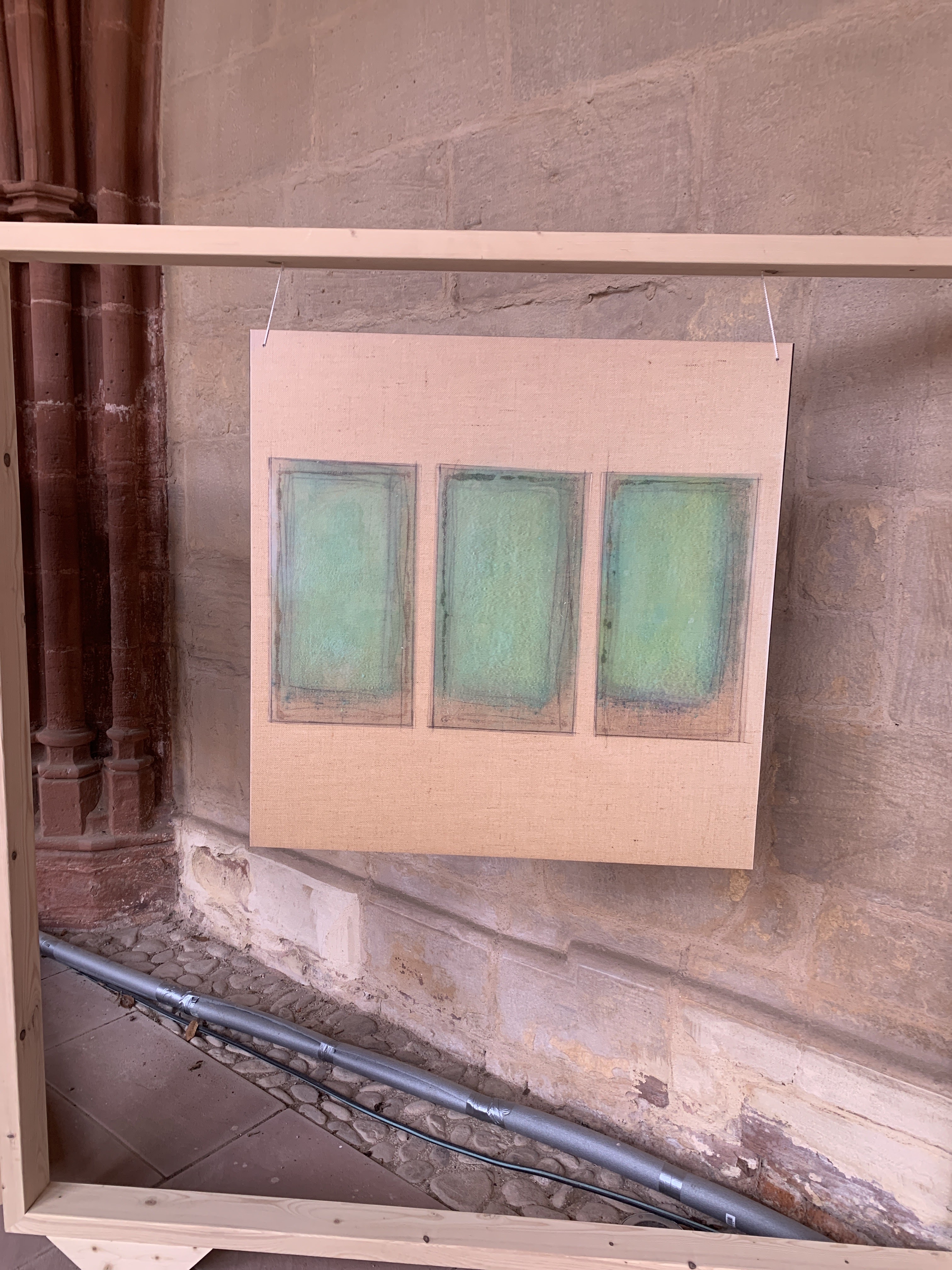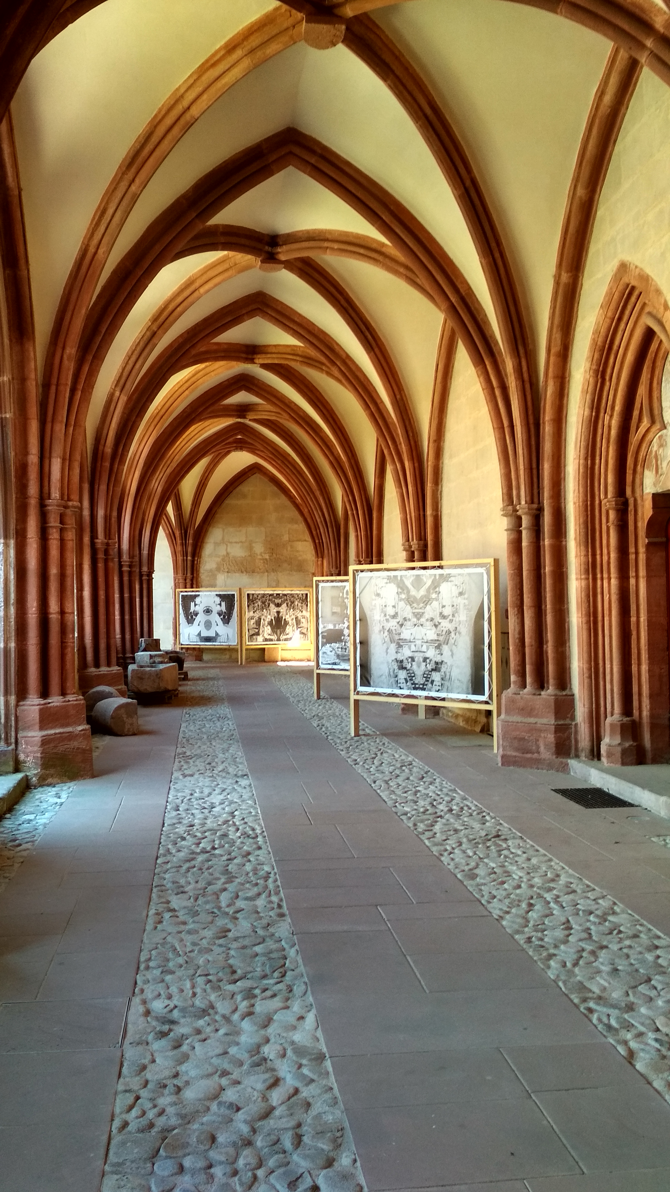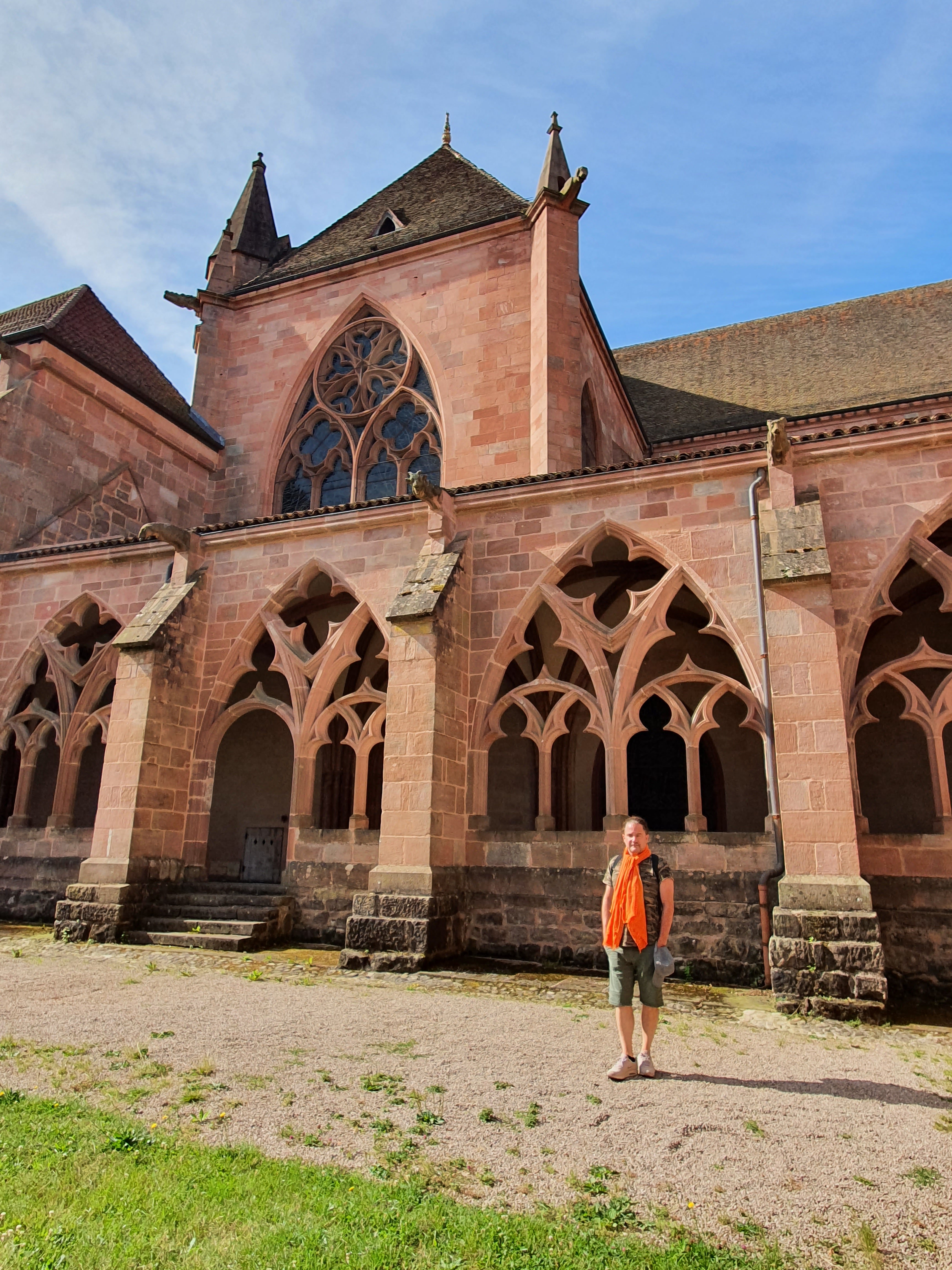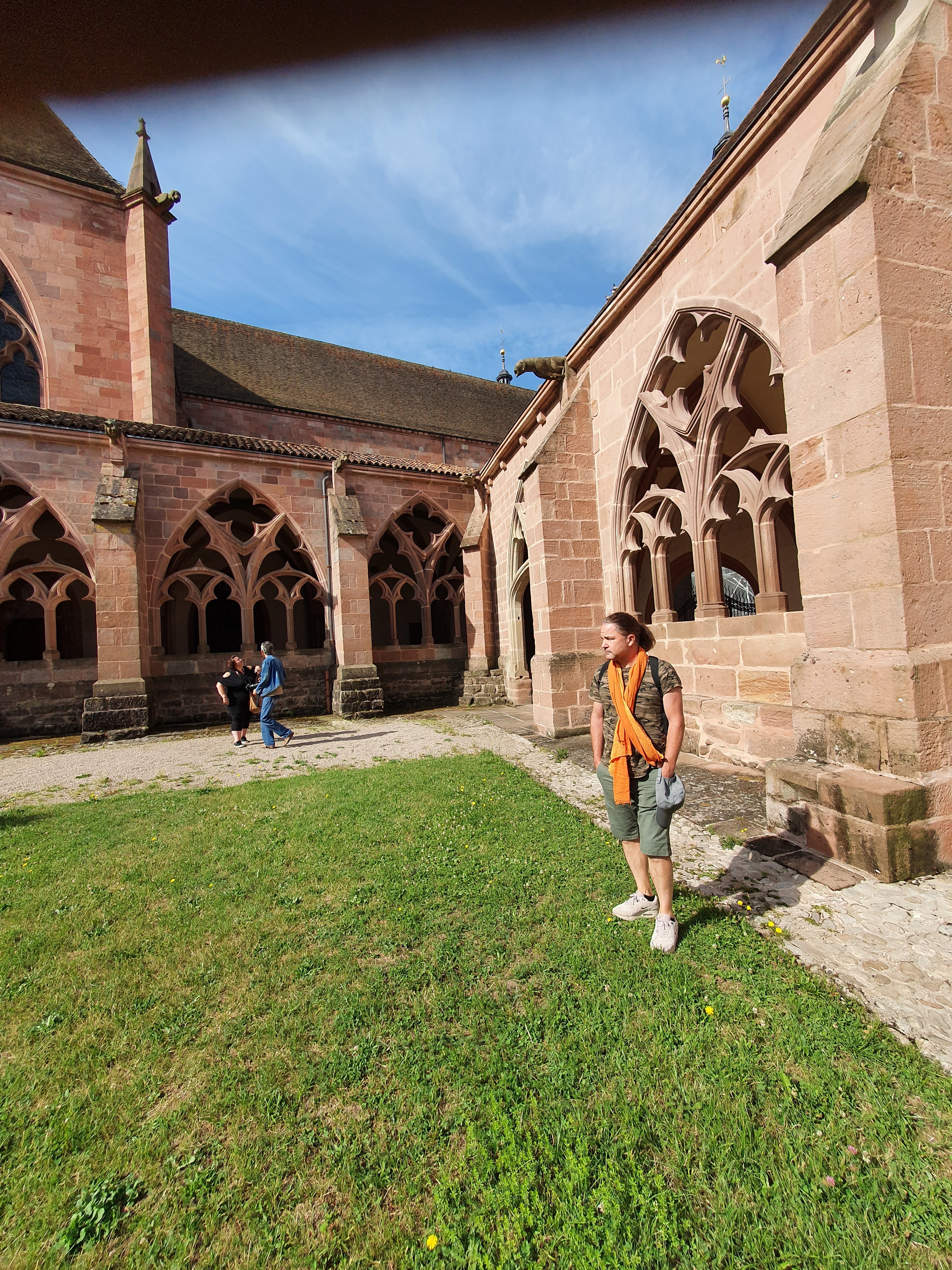 Très belle cathédrale avec la pierre de grès rouge ...Dans le cloître il y a une exposition d'artistes