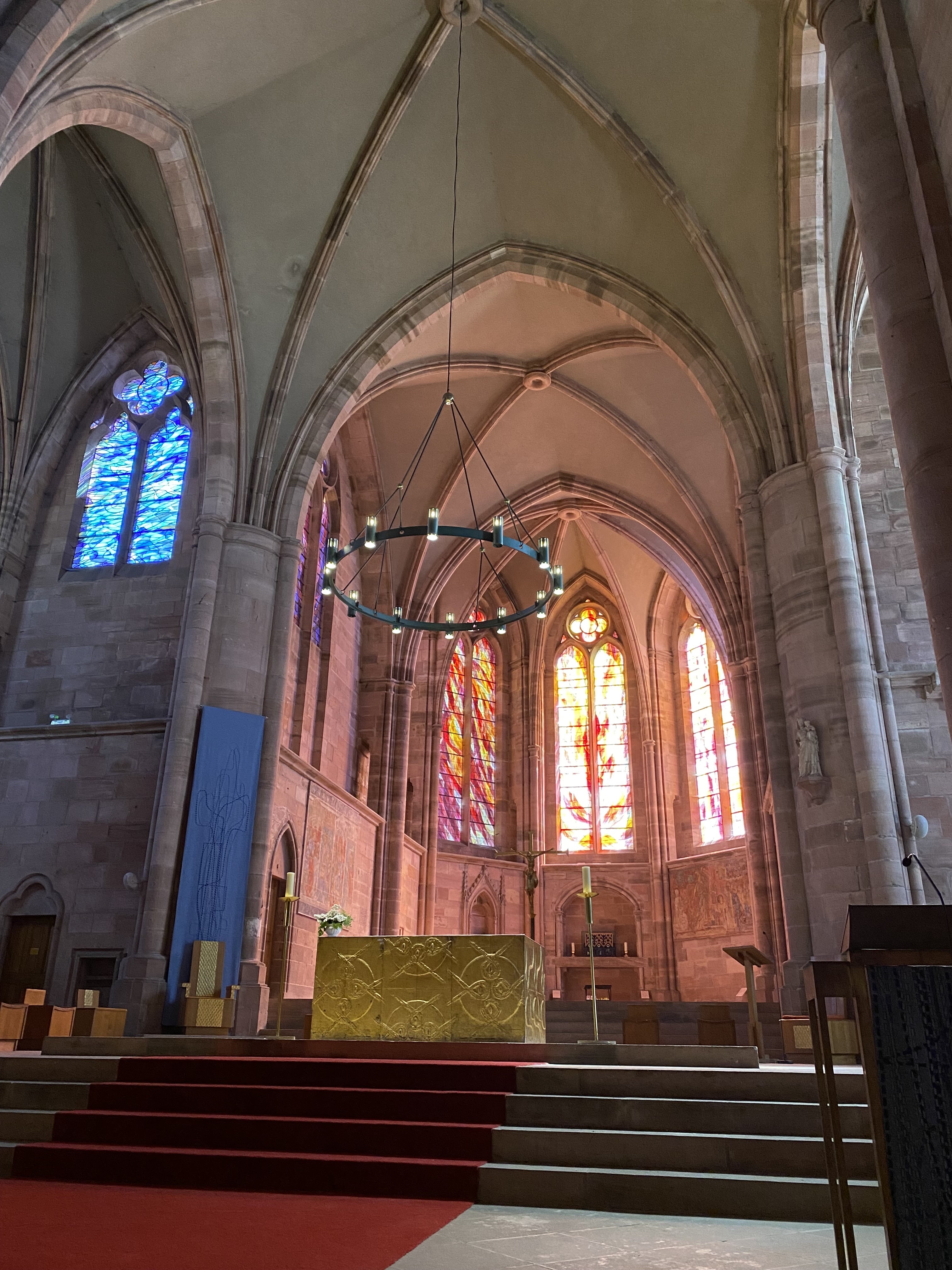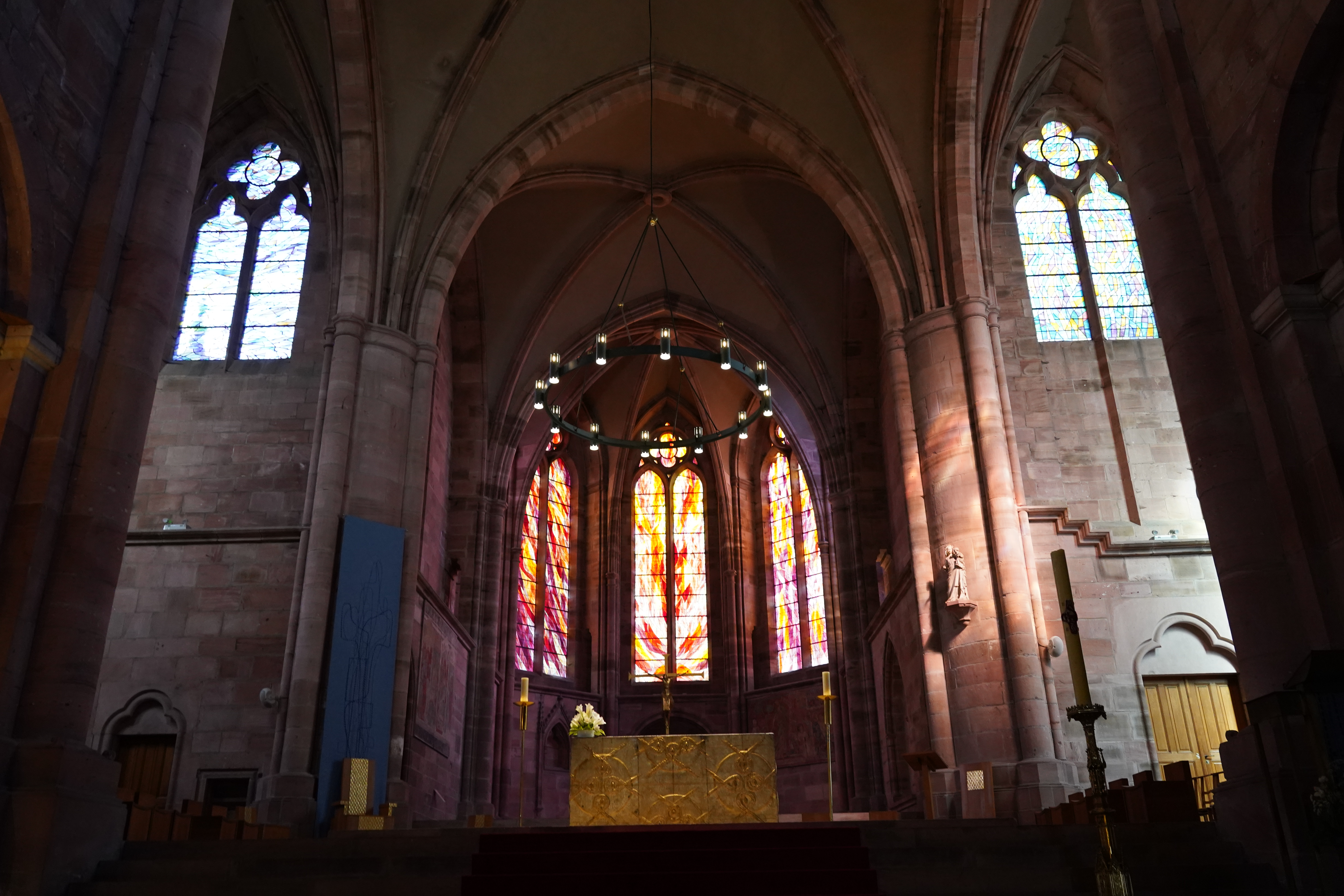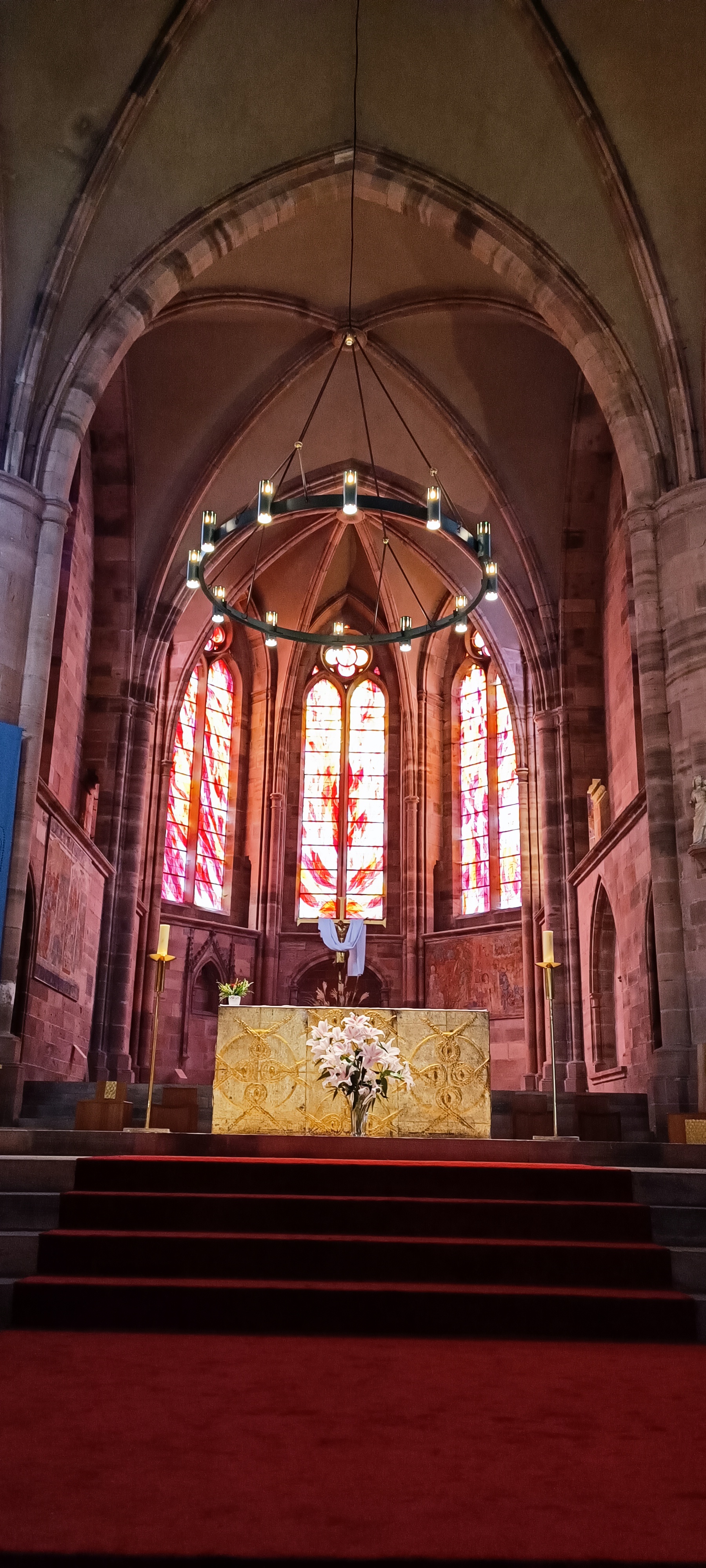 Cathédrale notre dame de st dié des Vosges. Les débuts de sa construction datent du 12e siècle. Avec l'église notre dame de Galilée et le cloître qui les relie cela forme un groupe cathédral imposant et original notamment grâce à la couleur caractéristique du grès rose des Vosges. Les vitraux sont splendides et datent, pour certain, du 13e siècle. Ce qui m'a le plus frappé c'est la couleur une fois à l'intérieur. Le rose de la pierre ainsi que les vitraux offrent à l'oeil un spectacle d'une rare beauté. Vraiment impressionnant. Les photos ne m'apparaissent pas tout à fait représentatives de cette couleur malheureusement. A voir sur place si possible.