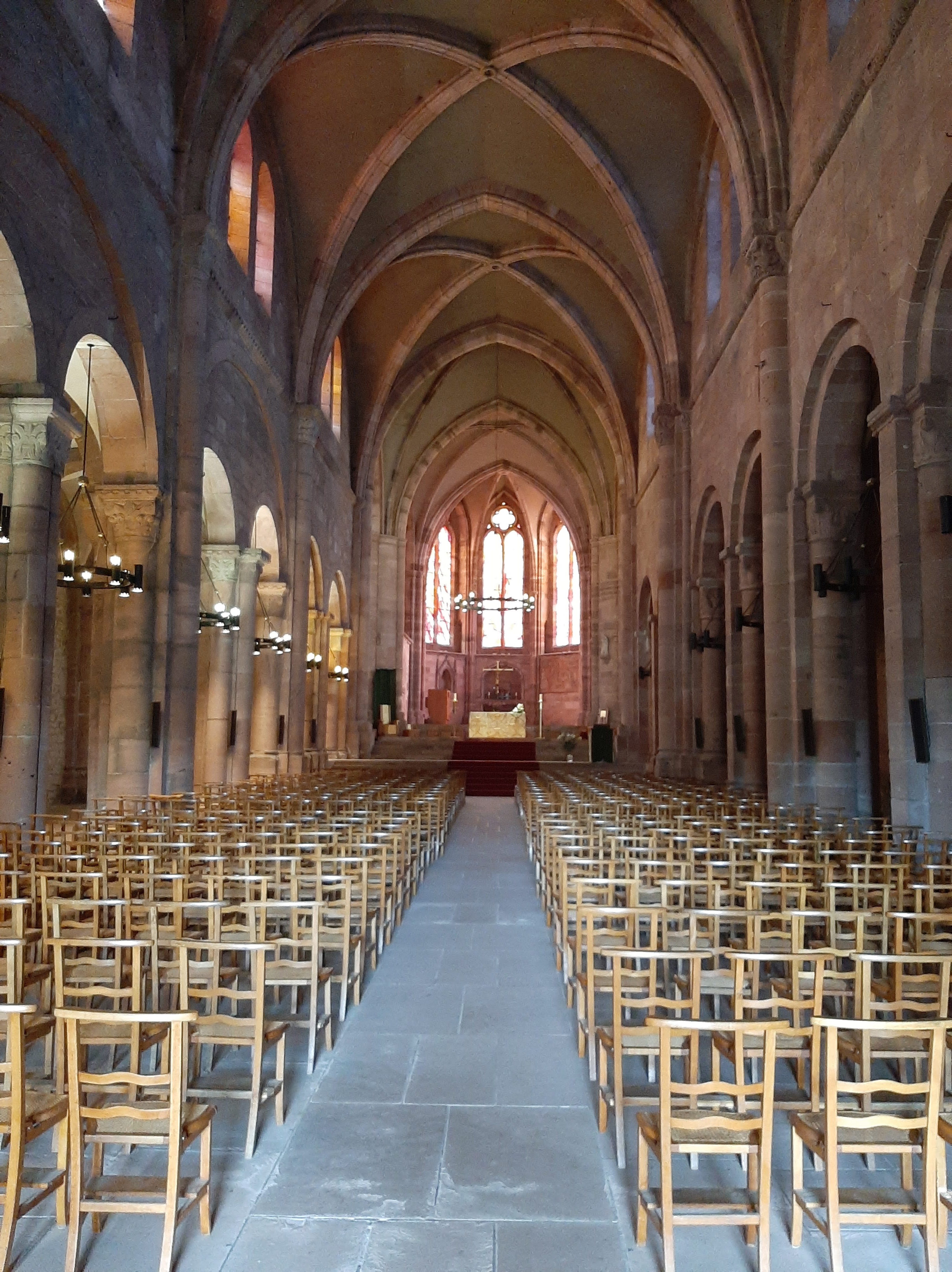 Beau site dans le centre de Saint Die. Une histoire compliquée car endommagée à plusieurs reprises et a des époques differentes. Belle couleur ocre pour la façade un peu austère. Interieur frappe par ses dimensions. Decors simples.