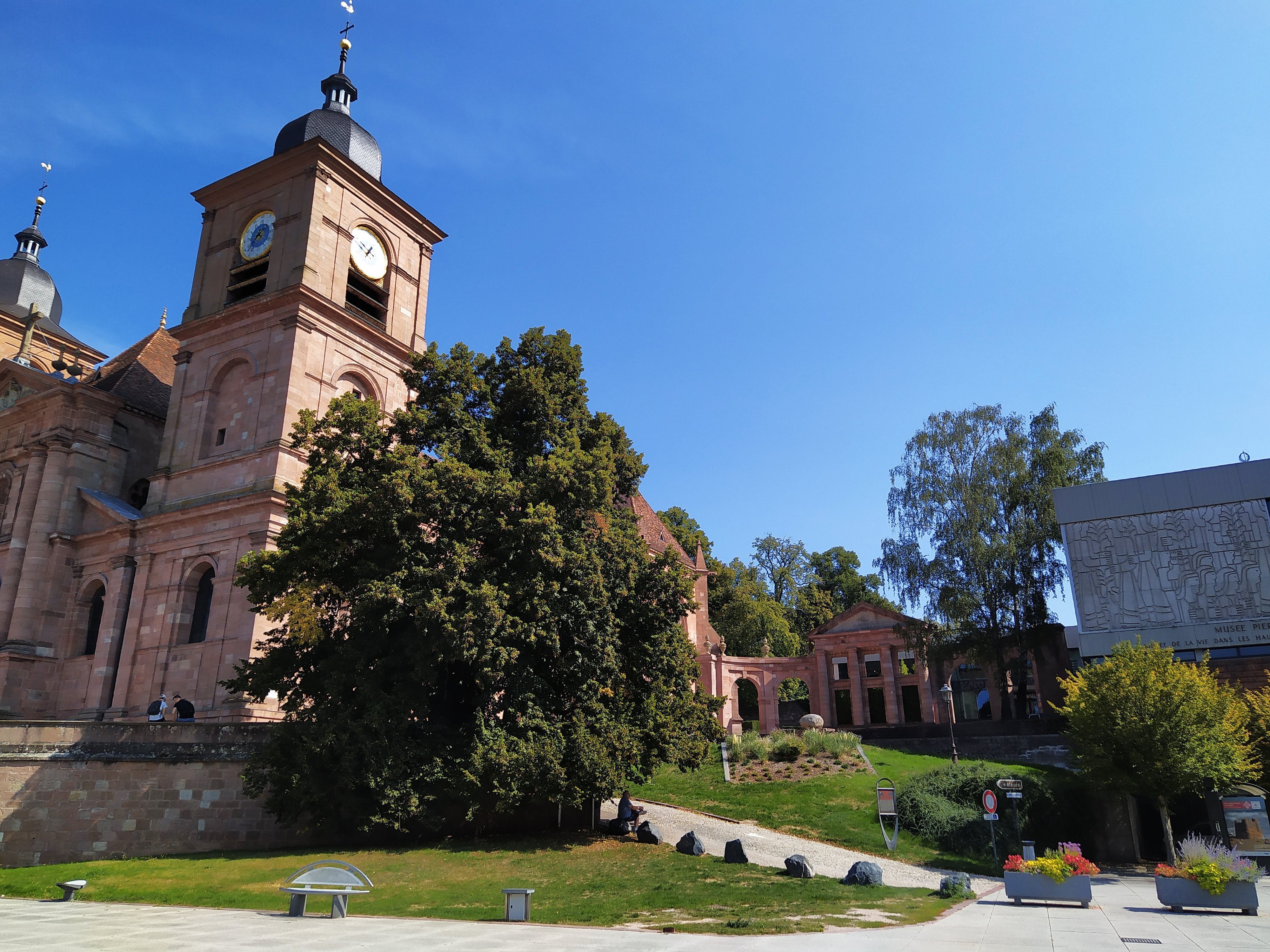 Le lieu est majestueux et l'édifice domine la ville dans des couleurs de rouge et de orange. Elles prennent vie et proposent bien des facettes. L'intérieur est aussi beau que l'extérieur méritant alors le détour. Pour ce qui est du parc en lui-même, il m'était fermé par une barrière. Dommage. Le lieu est vraiment central dans Saint-Dié-des-Vosges.