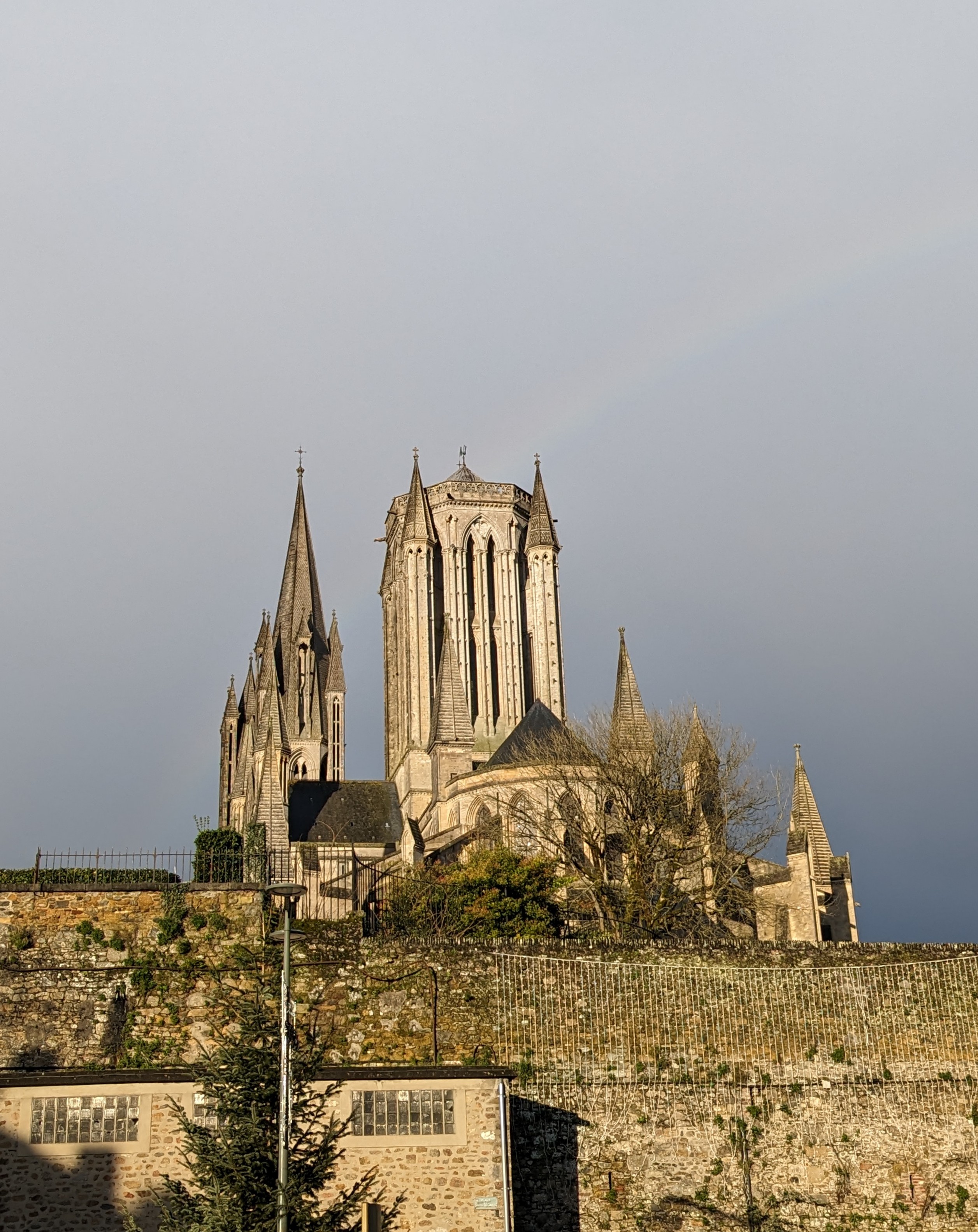 Decouverte de la cathedrale sur son piton rocheux,sobriete de l'architecture romane qui domine coutance avec l'eveche qui domine la vallee avec la riviere.detour a voir et a visiter