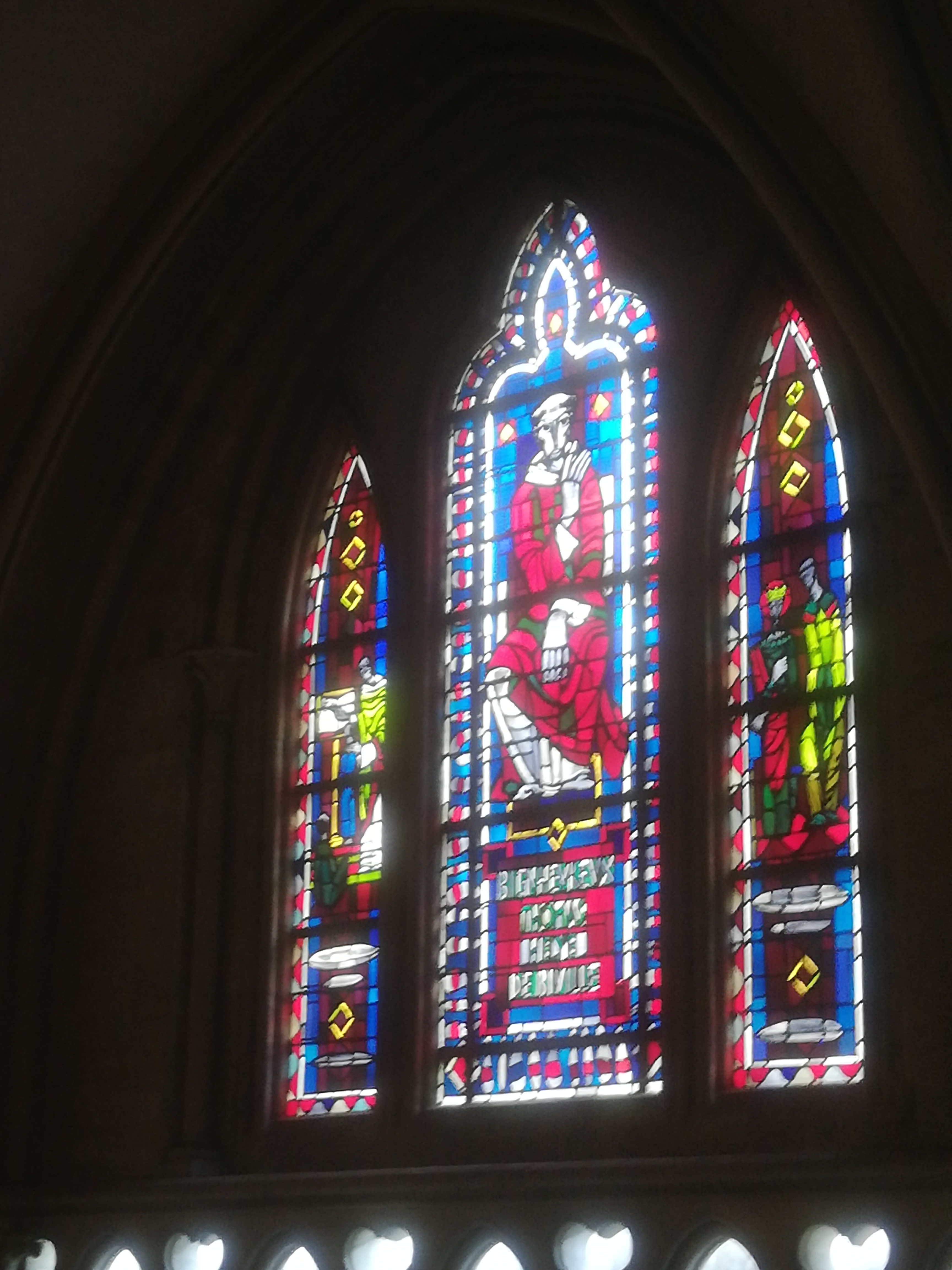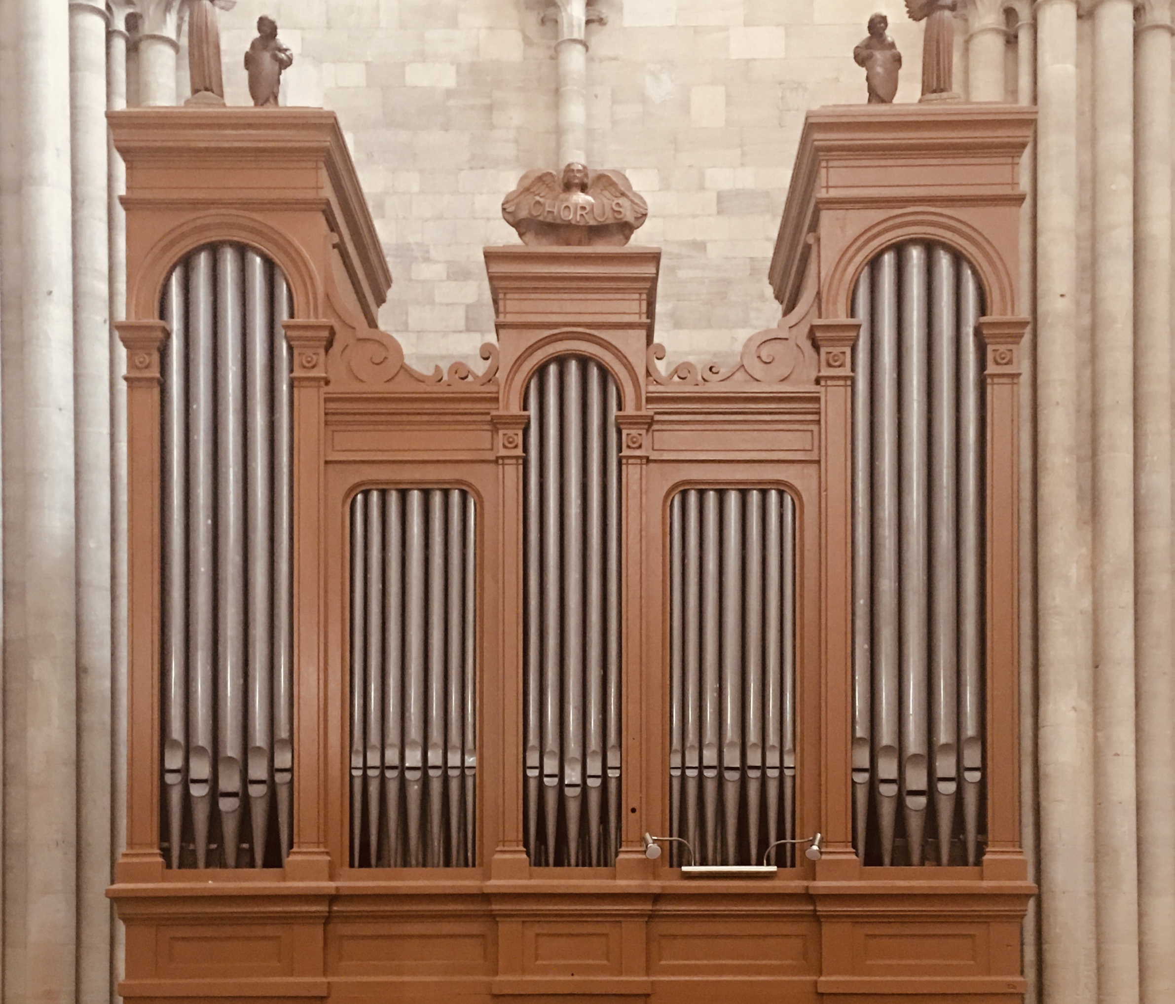 Quoi de plus magistral que de l'orgue dans une cathédrale ? Notre visite était presque terminée, nous avions admiré les couleurs chatoyantes des vitraux et la hauteur impressionnante Et là les répétitions du concert, prévu pour le lendemain, ont commencées ! Un régal ! Pour en profiter pleinement je me suis assise en face du choeur et j'ai apprécié ce moment de sérénité !