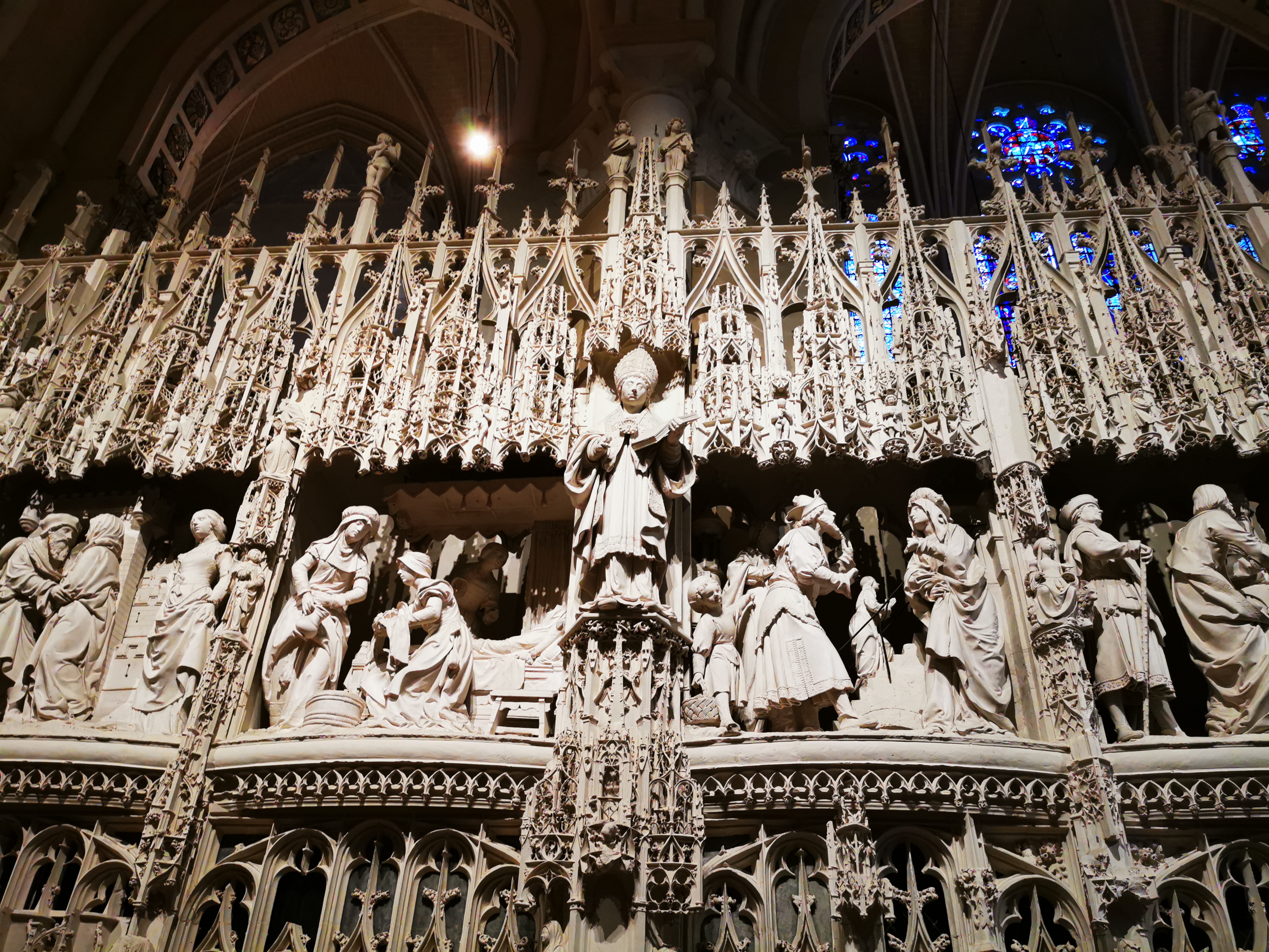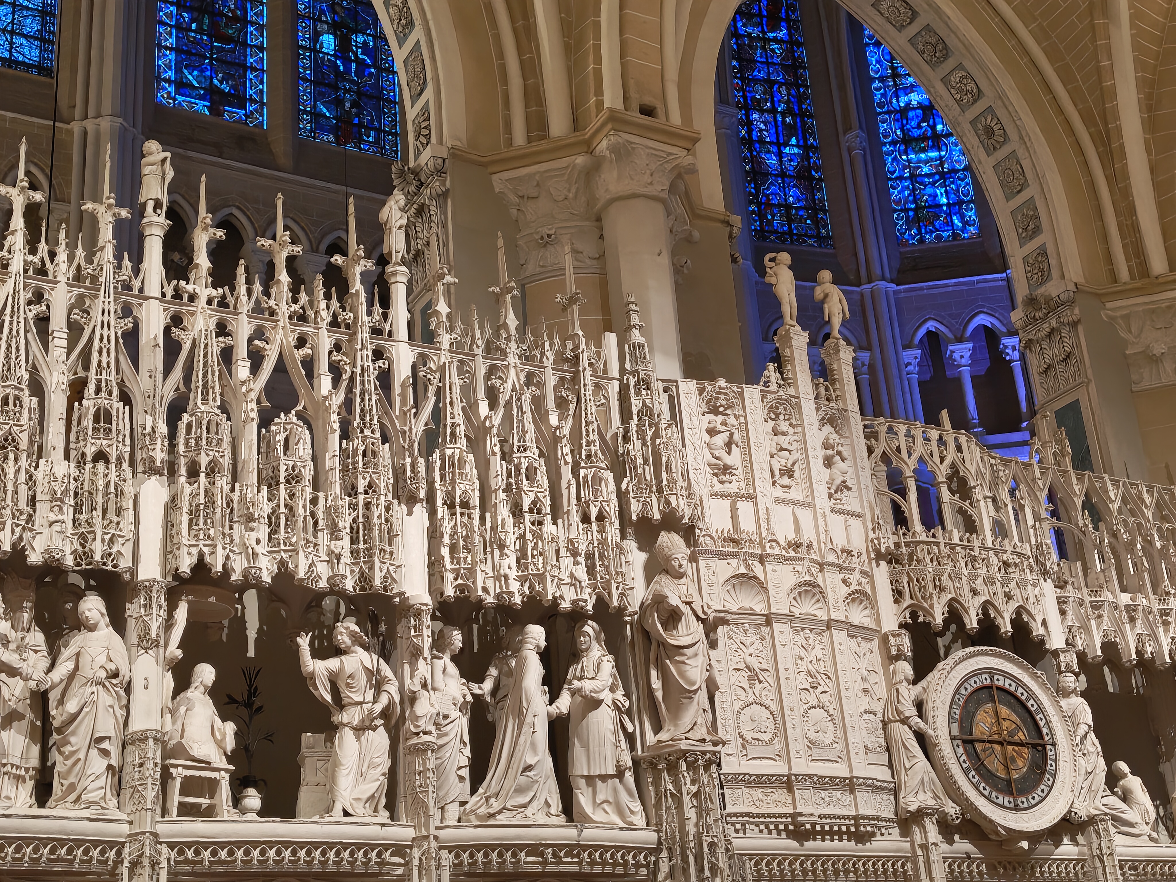 Cathédrale exceptionnelle ! Sculptures, architecture et vitraux aux couleurs bleues magnifiques. Le nombre de statues de la clôture du chœur est impressionnant et d une beauté remarquable ainsi que la rosace et les 9 portails sculptés .