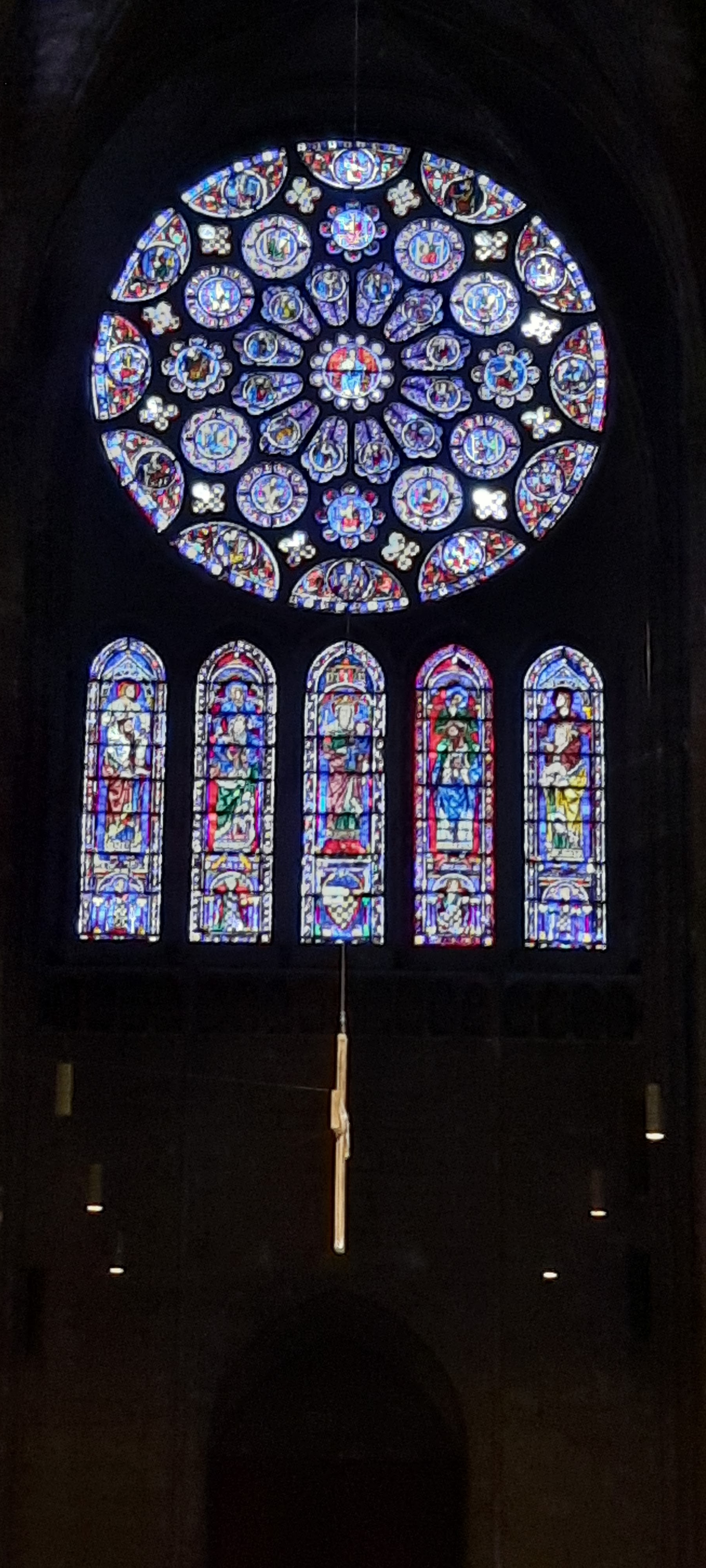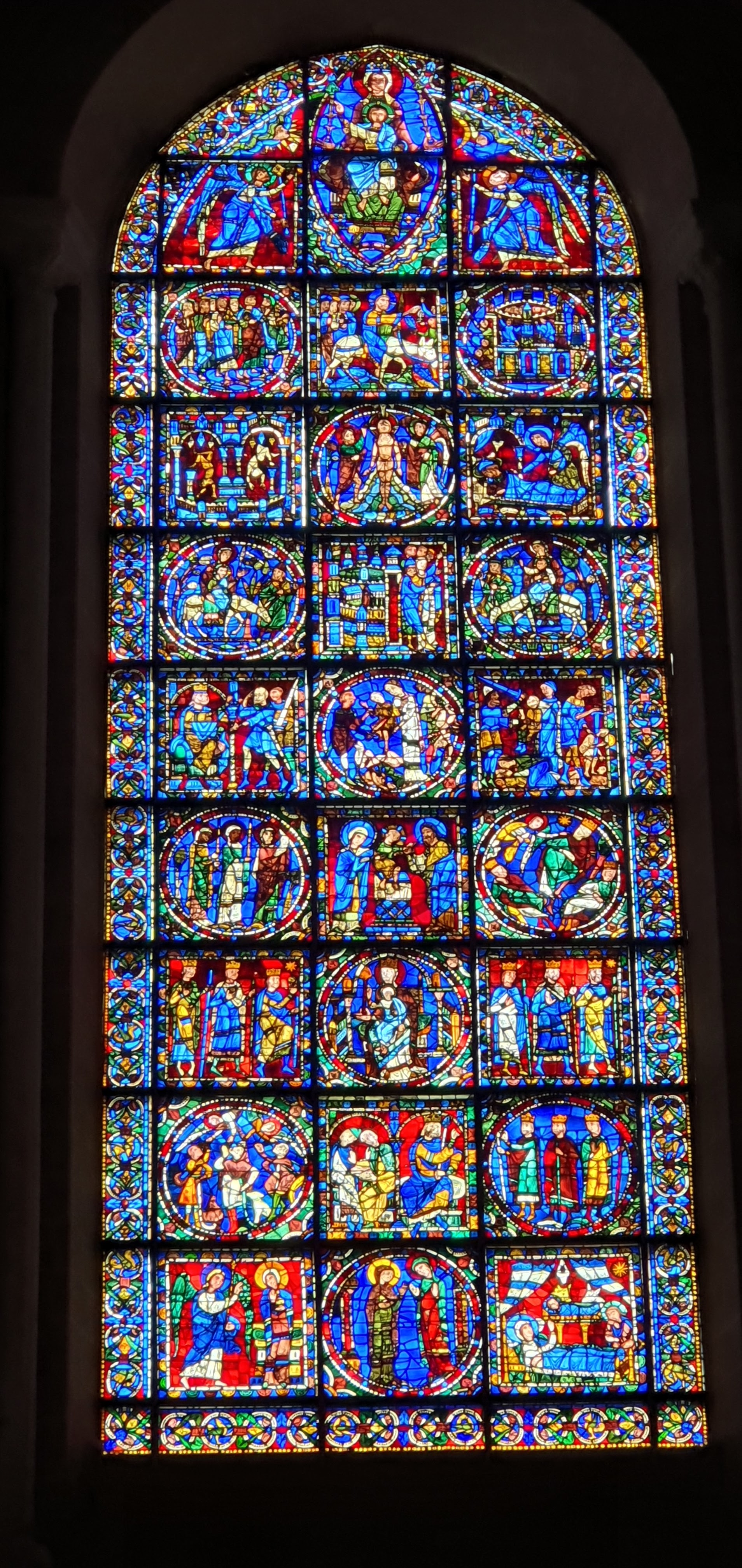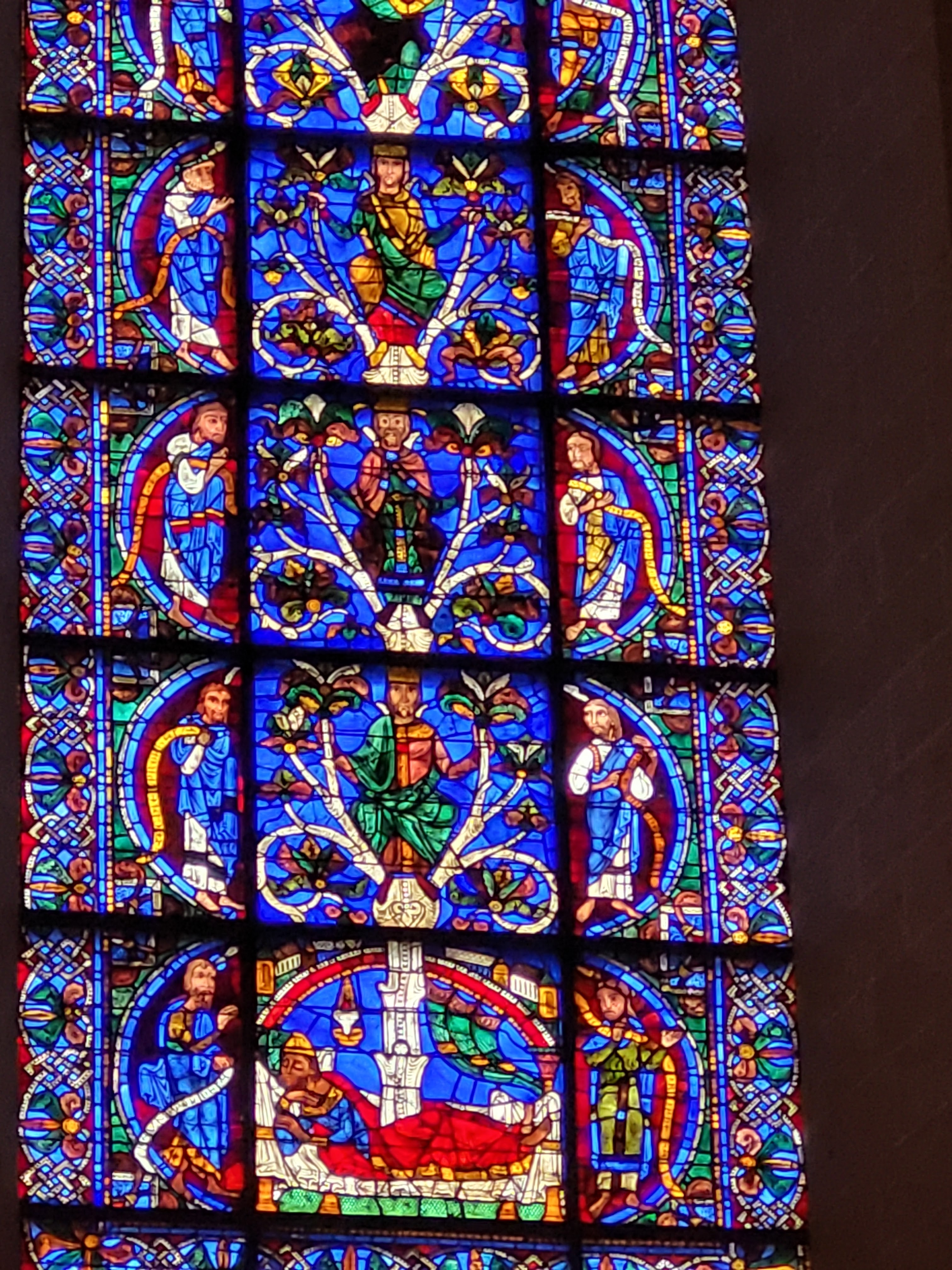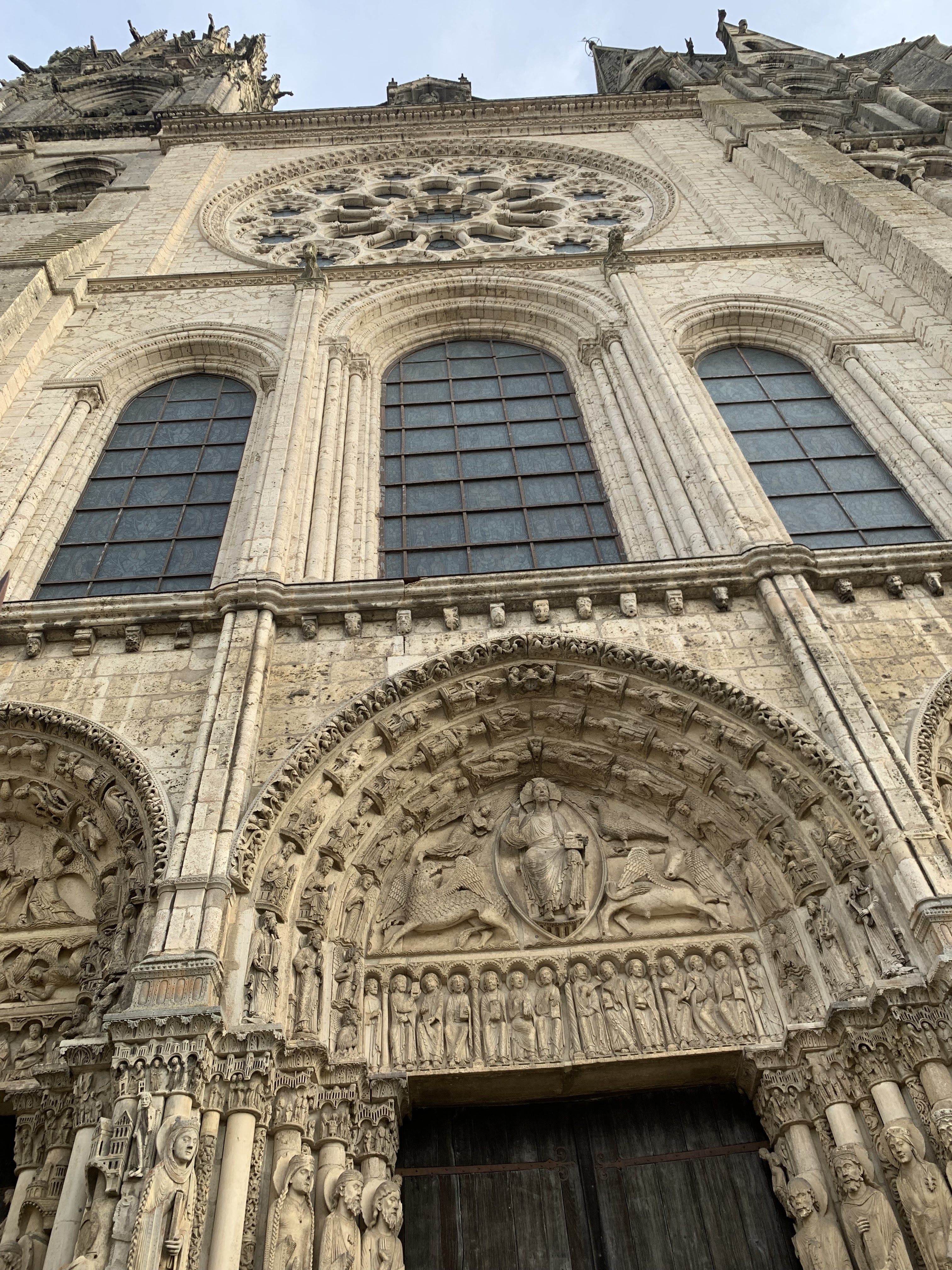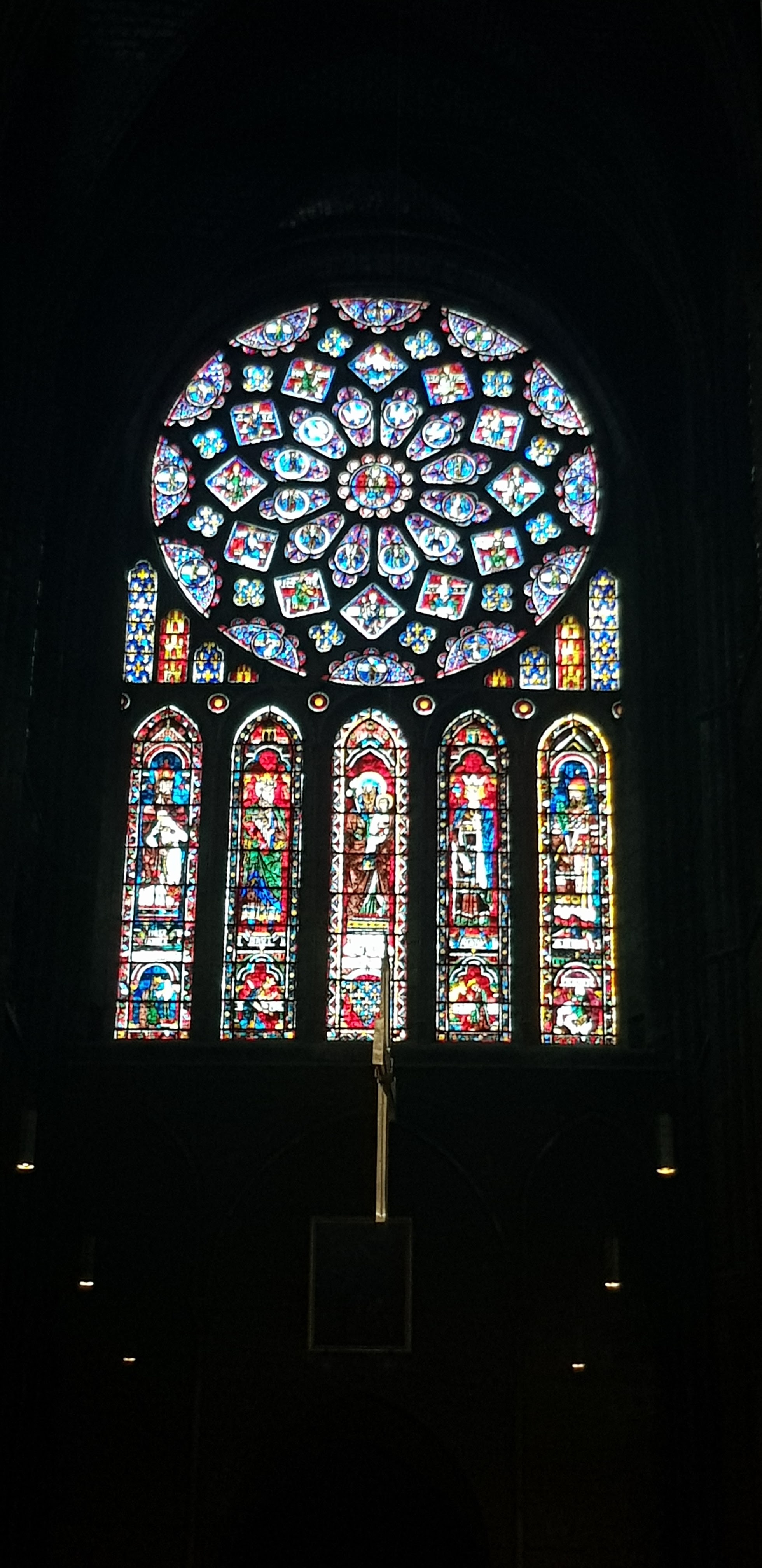 Tout d'abord vous êtes pris par les hauteurs, la richesse et la conservation des vitraux , puis se qui frappe se sont les détails et le nombres des sculptures en pierres ,je suis admirative des travaux des artisans de l'époque. Certaine période révolution ont laissés des traces non réparables ( têtes et mains coupés) . Les travaux discrait ,vous font réapparaître la pierre blanche . Le labyrinthe , comme à la cathédrale d'Amiens est visible malgré les chaises .