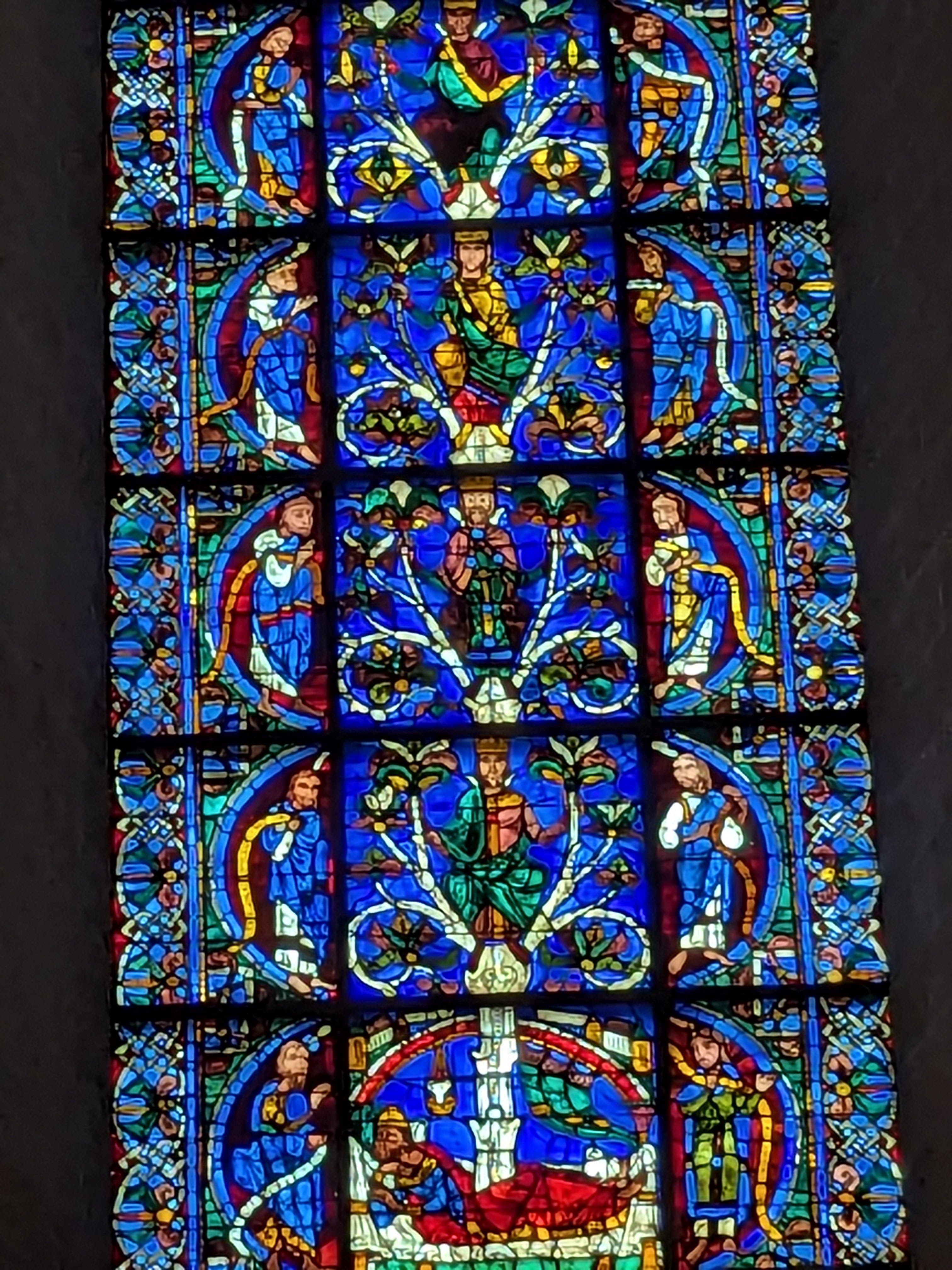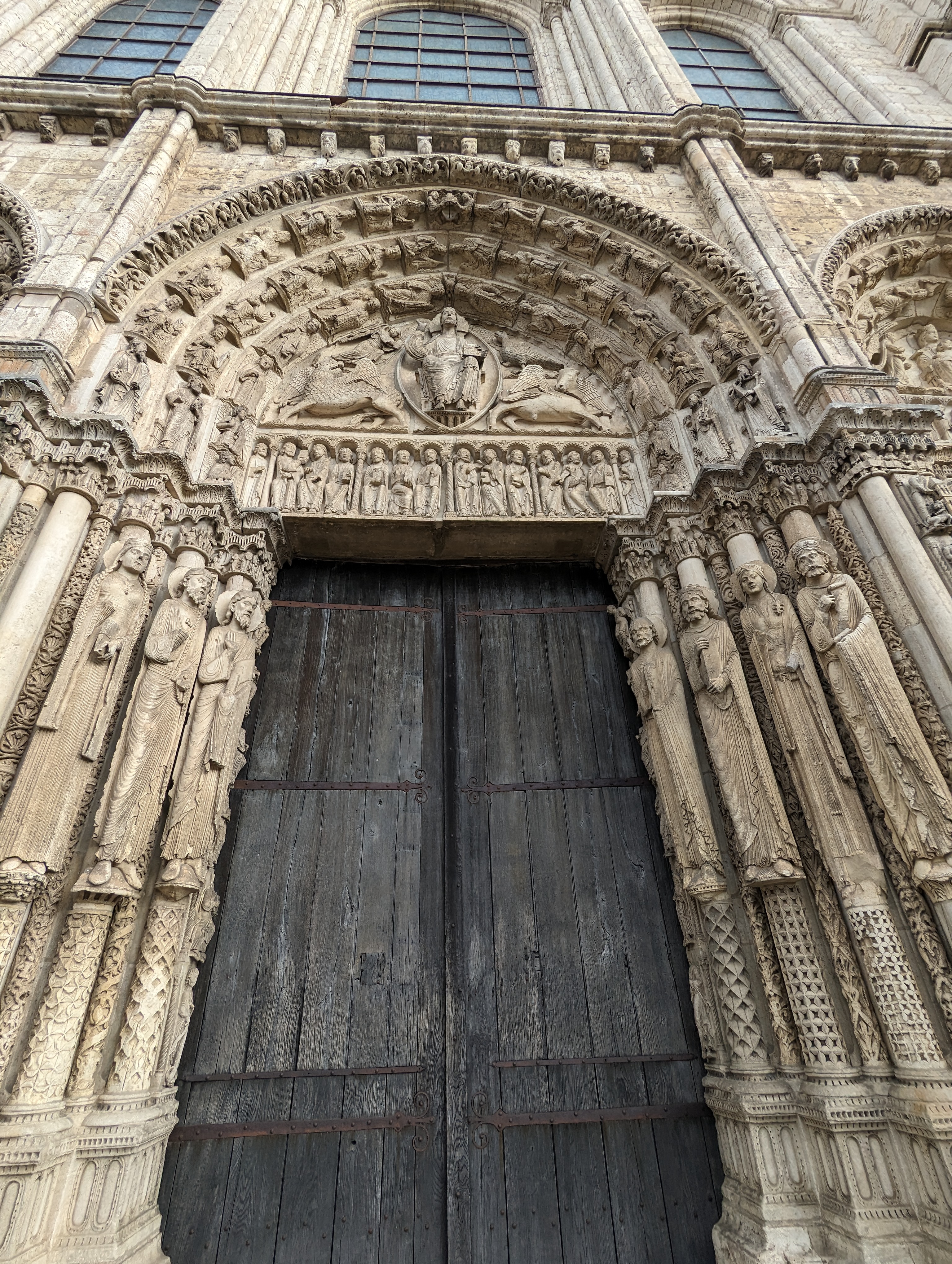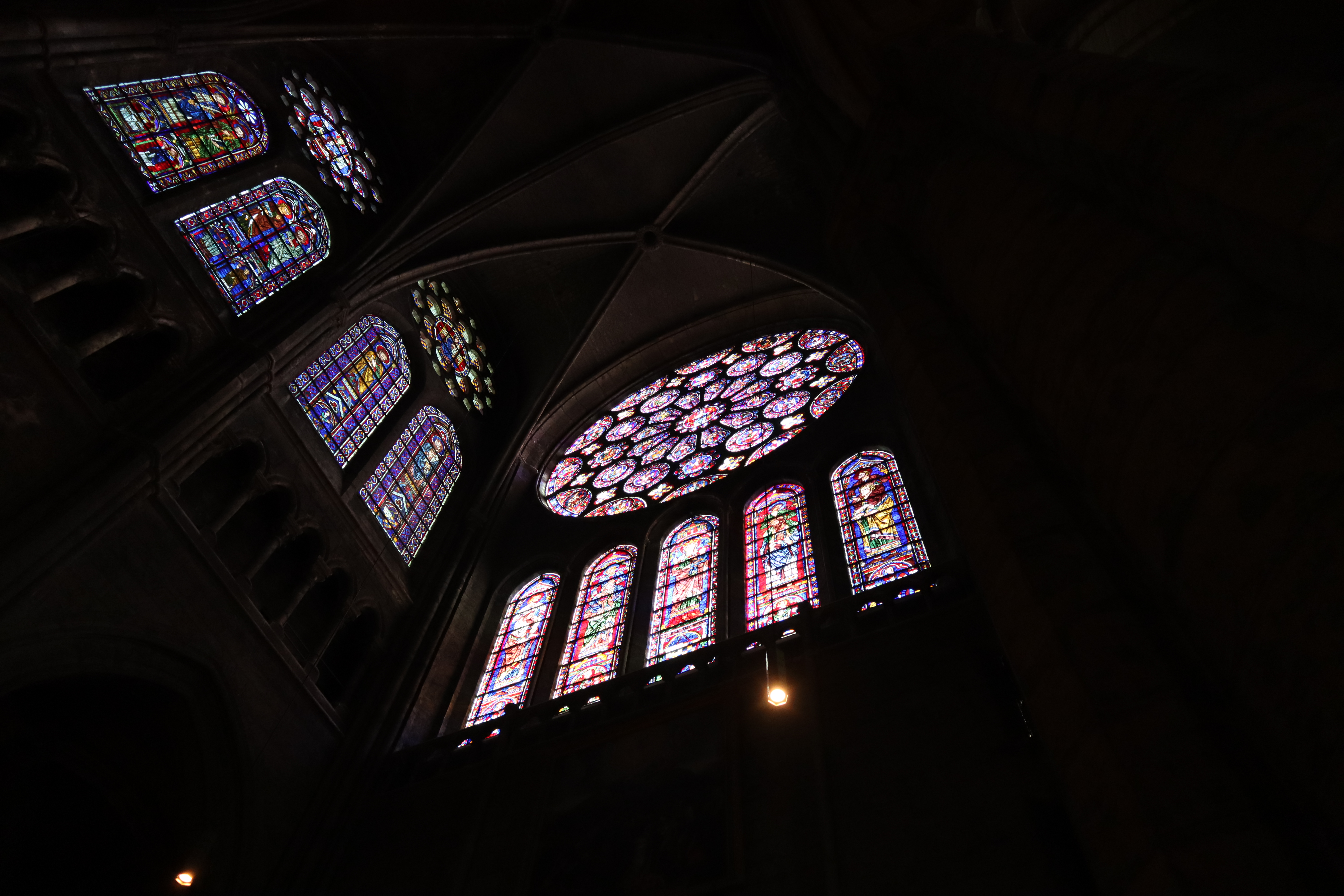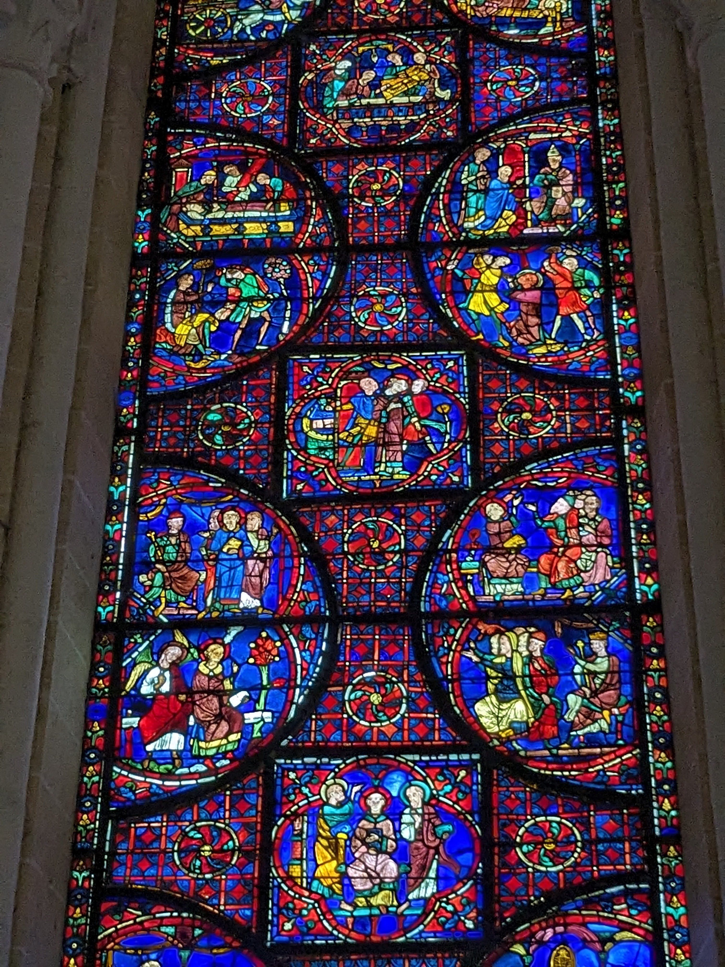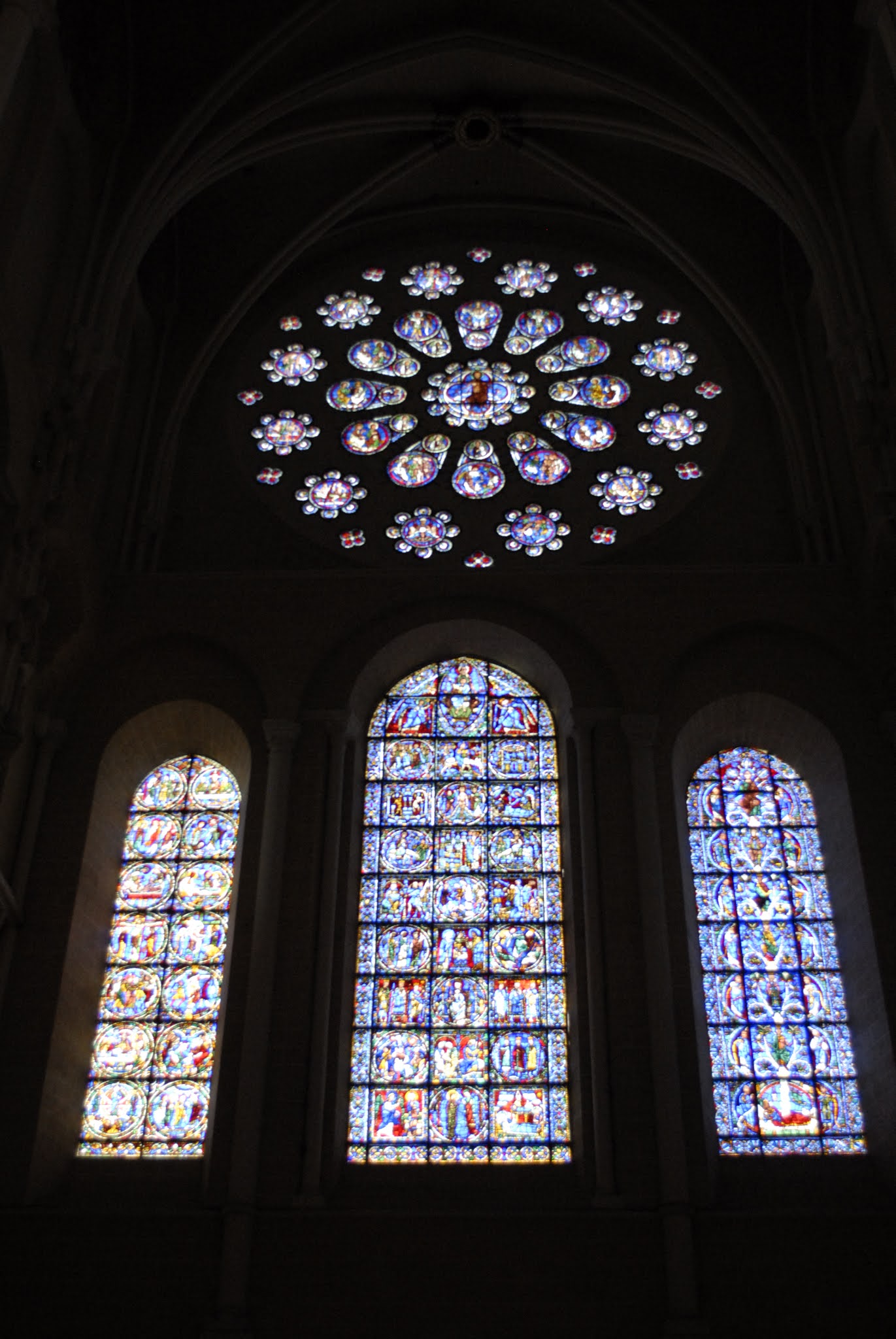 Tout d'abord vous êtes pris par les hauteurs, la richesse et la conservation des vitraux , puis se qui frappe se sont les détails et le nombres des sculptures en pierres ,je suis admirative des travaux des artisans de l'époque. Certaine période révolution ont laissés des traces non réparables ( têtes et mains coupés) . Les travaux discrait ,vous font réapparaître la pierre blanche . Le labyrinthe , comme à la cathédrale d'Amiens est visible malgré les chaises .