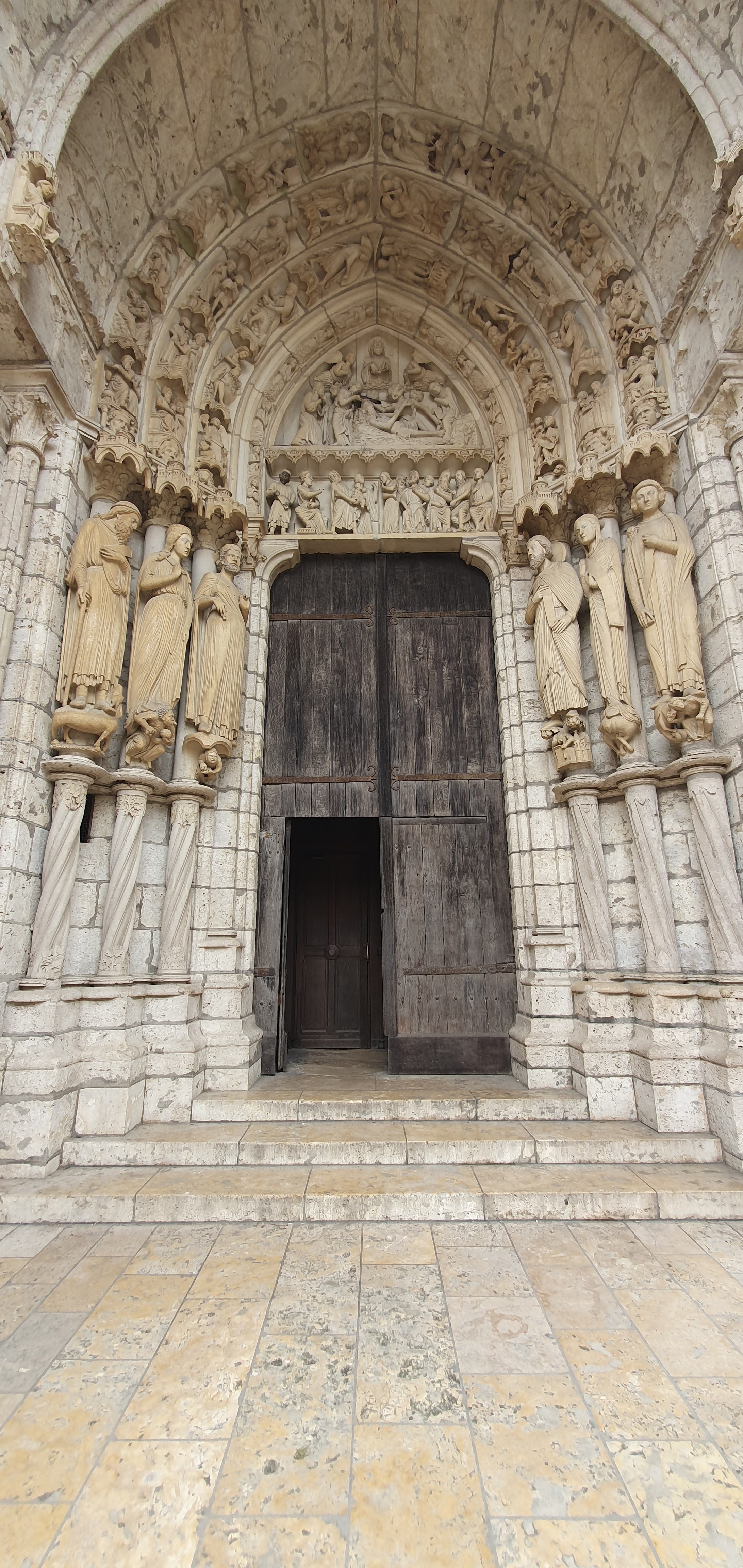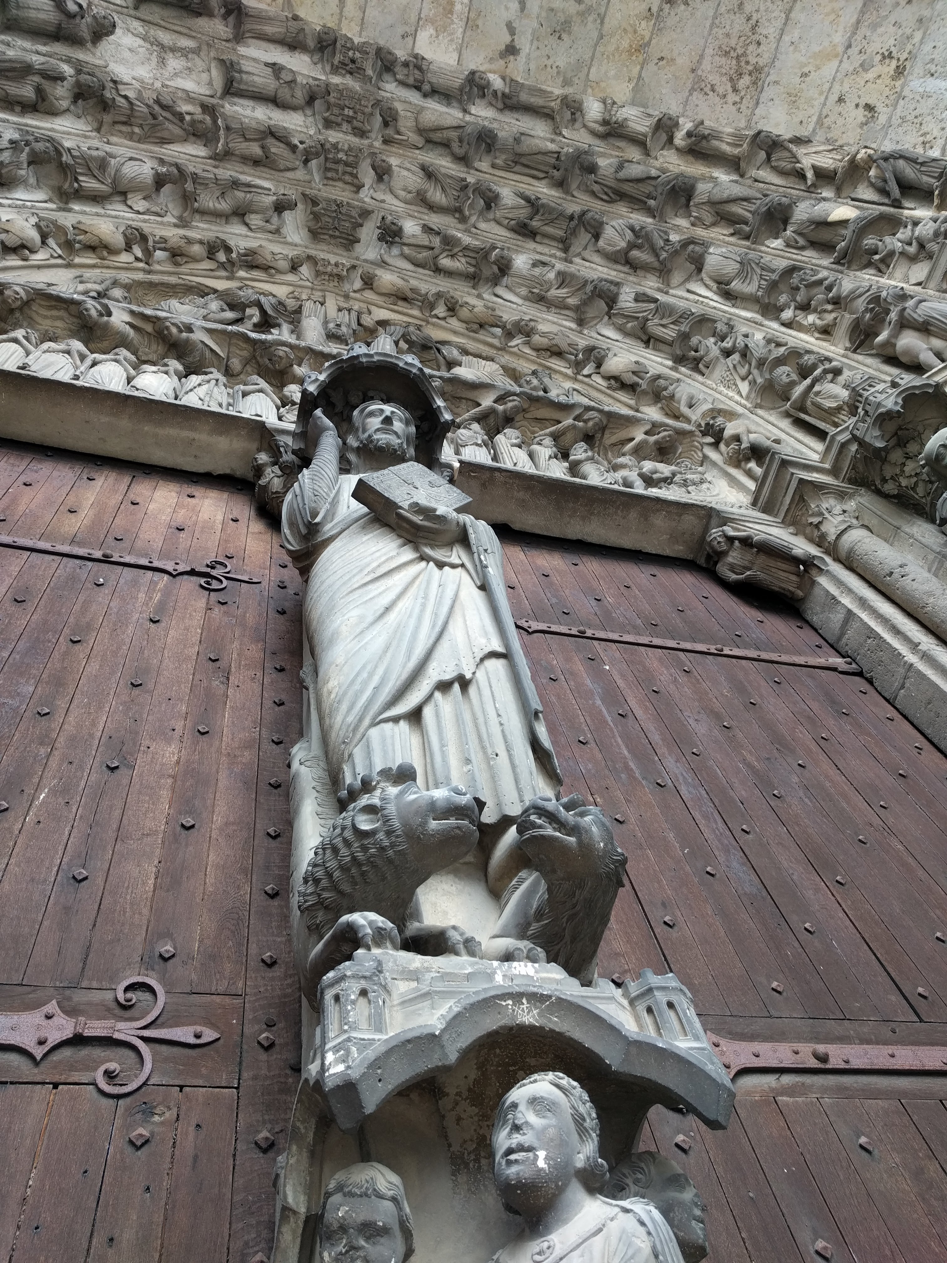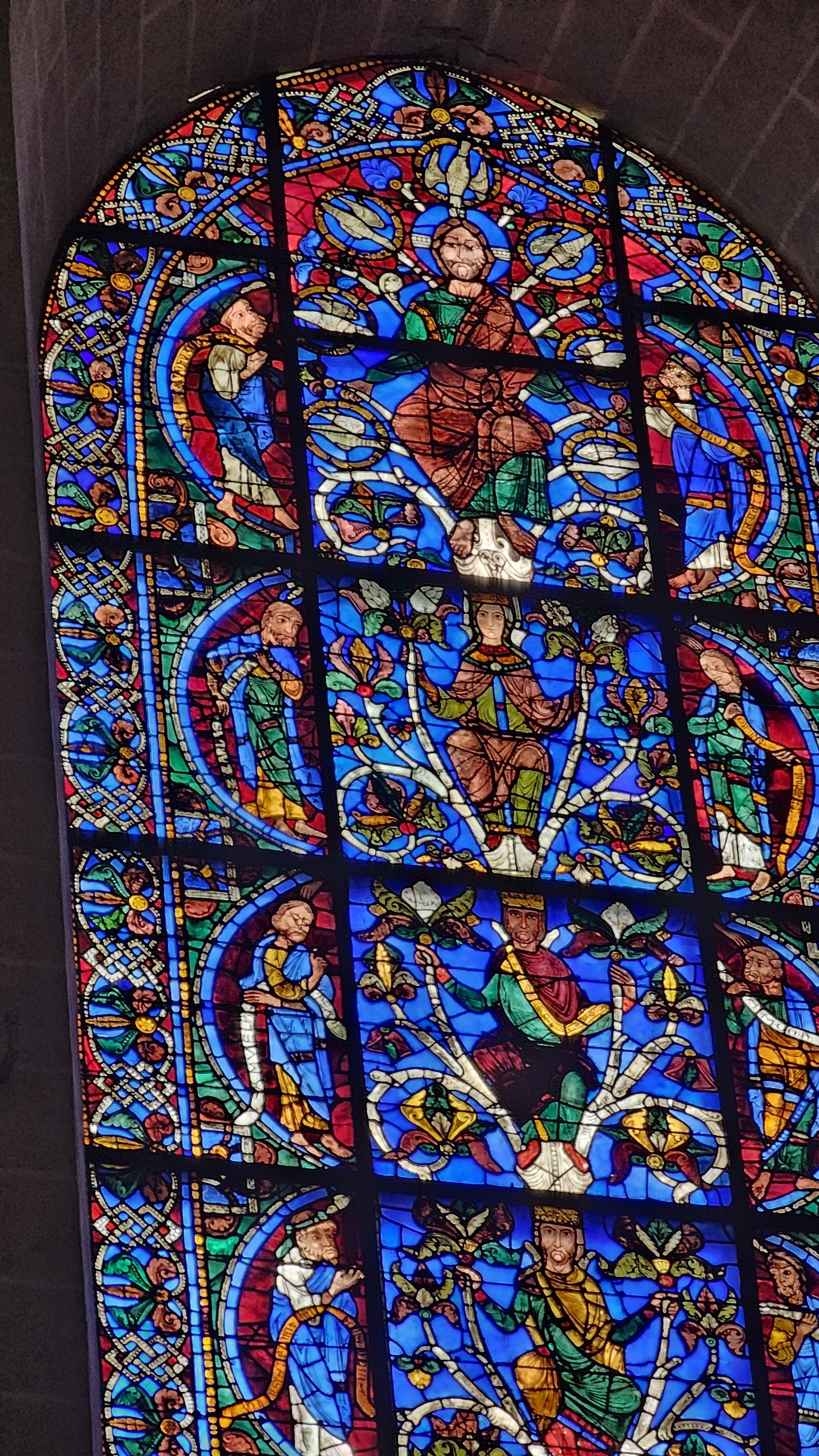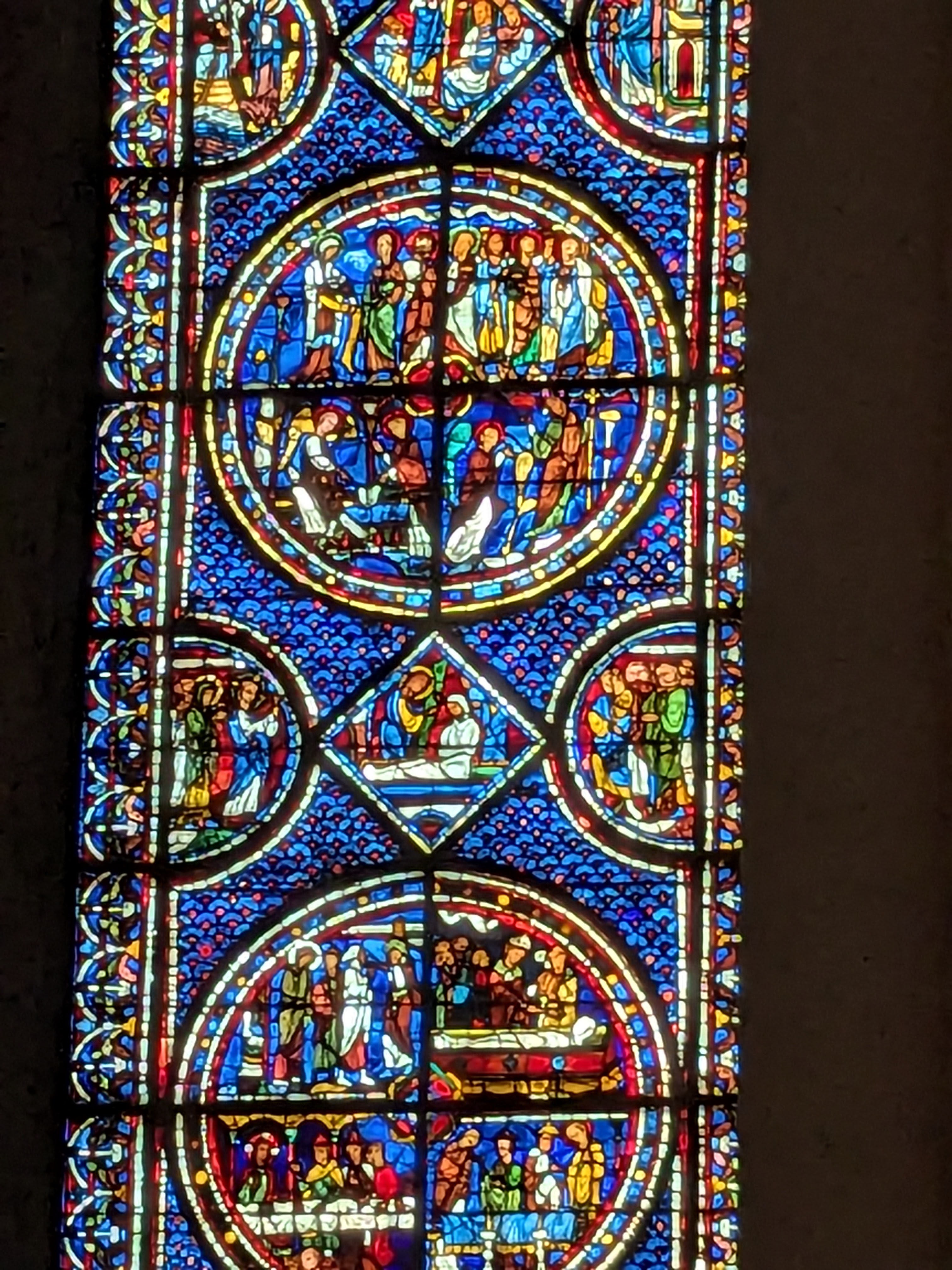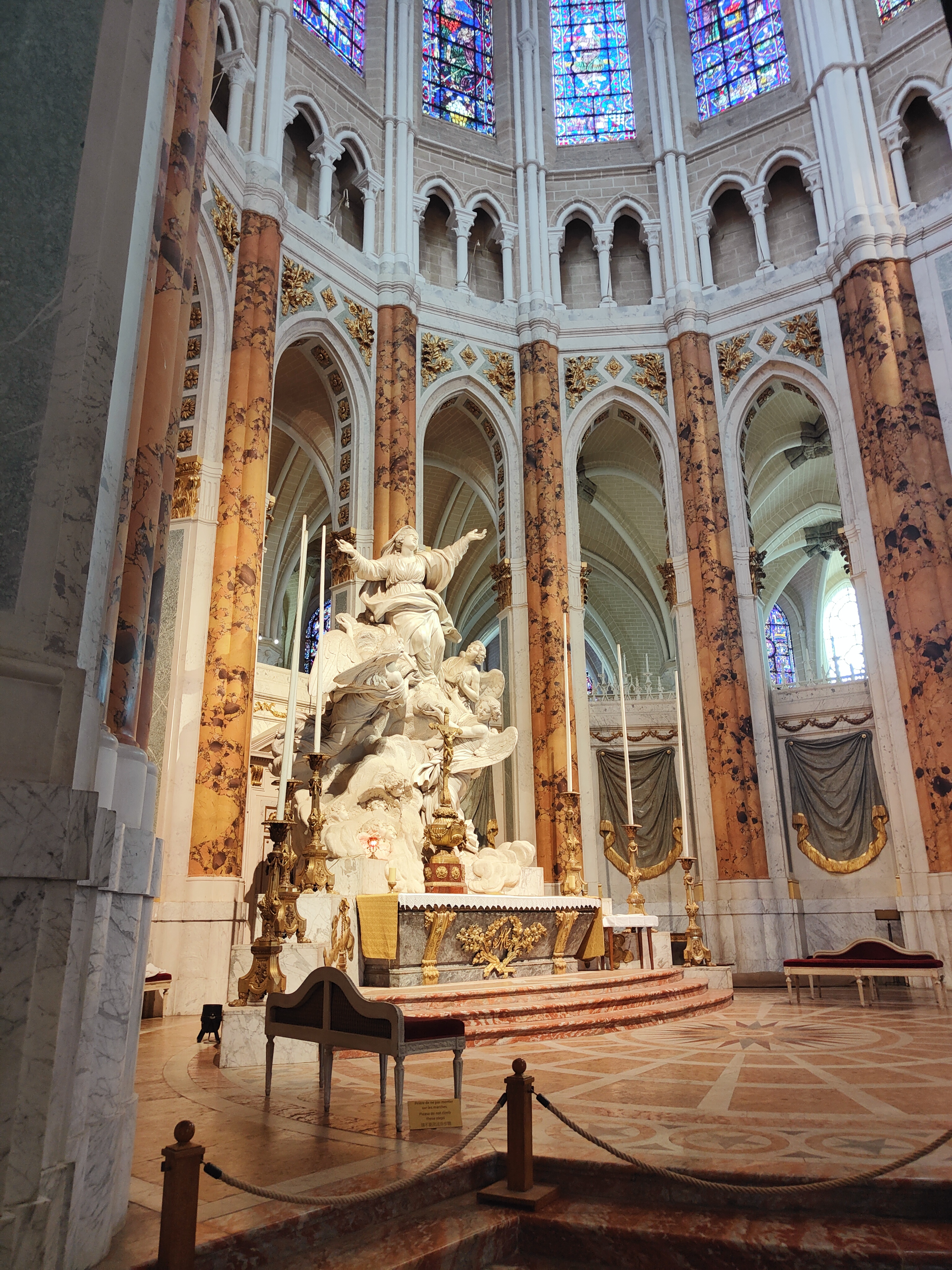 Tout d'abord vous êtes pris par les hauteurs, la richesse et la conservation des vitraux , puis se qui frappe se sont les détails et le nombres des sculptures en pierres ,je suis admirative des travaux des artisans de l'époque. Certaine période révolution ont laissés des traces non réparables ( têtes et mains coupés) . Les travaux discrait ,vous font réapparaître la pierre blanche . Le labyrinthe , comme à la cathédrale d'Amiens est visible malgré les chaises .