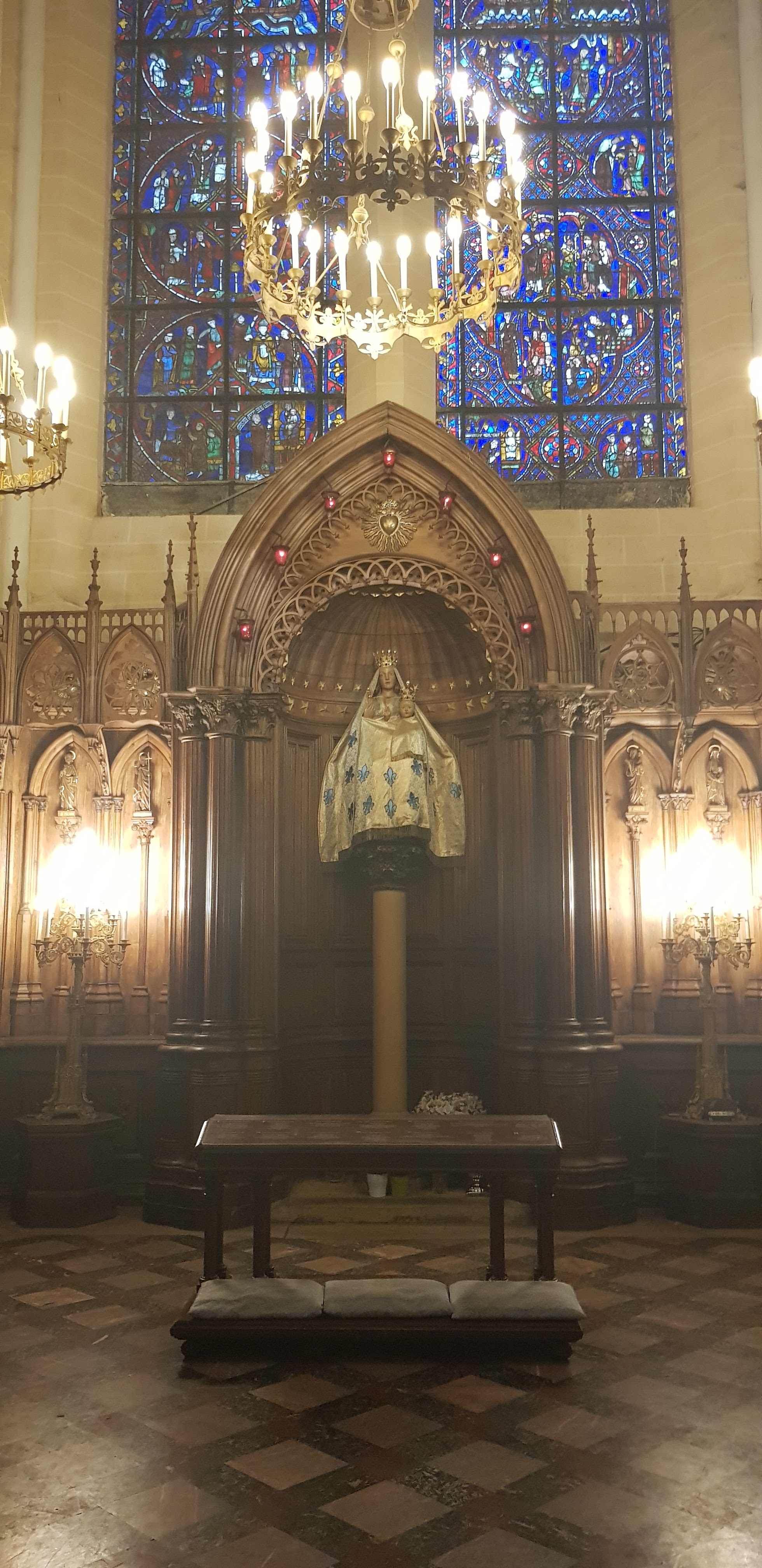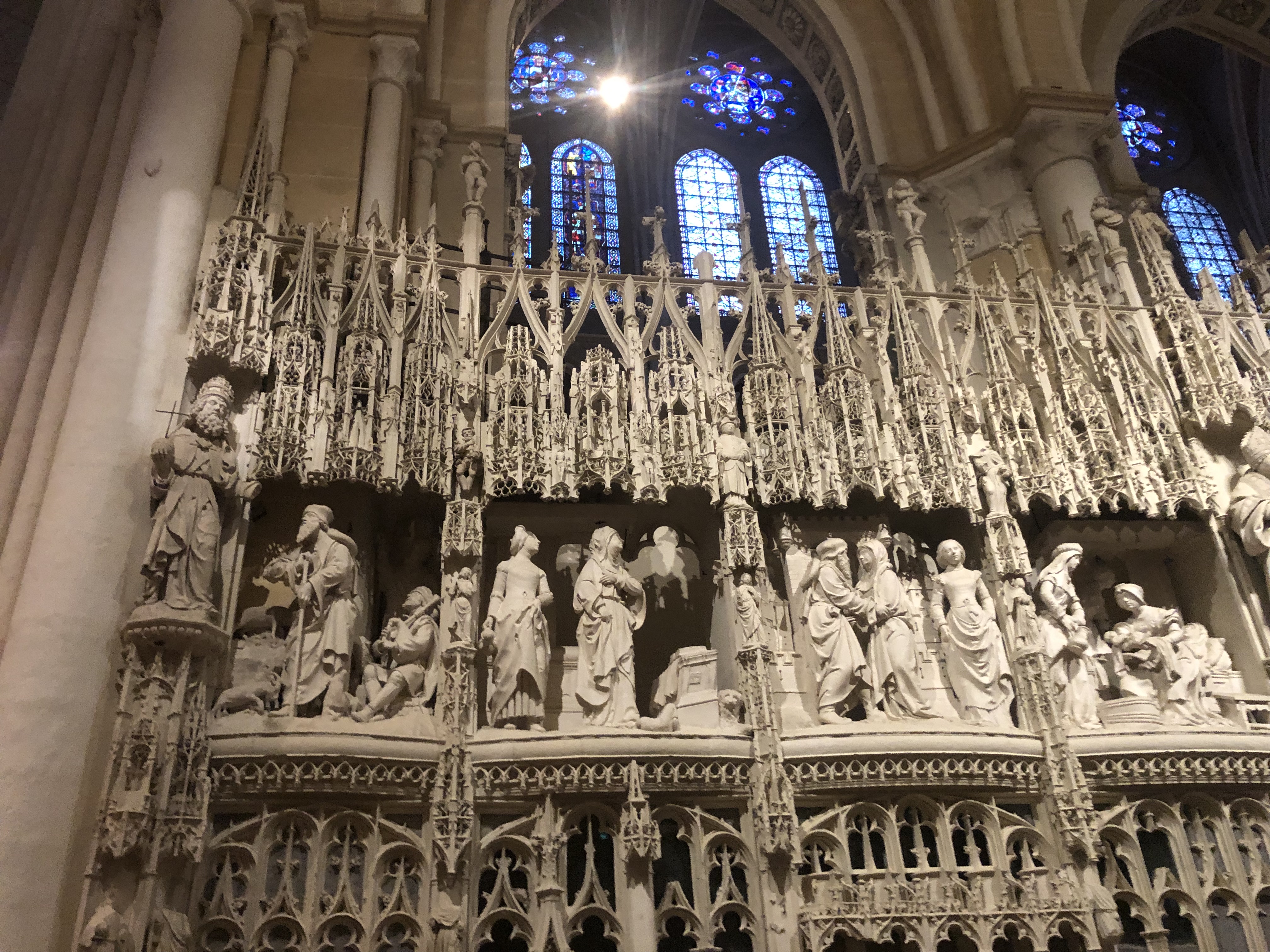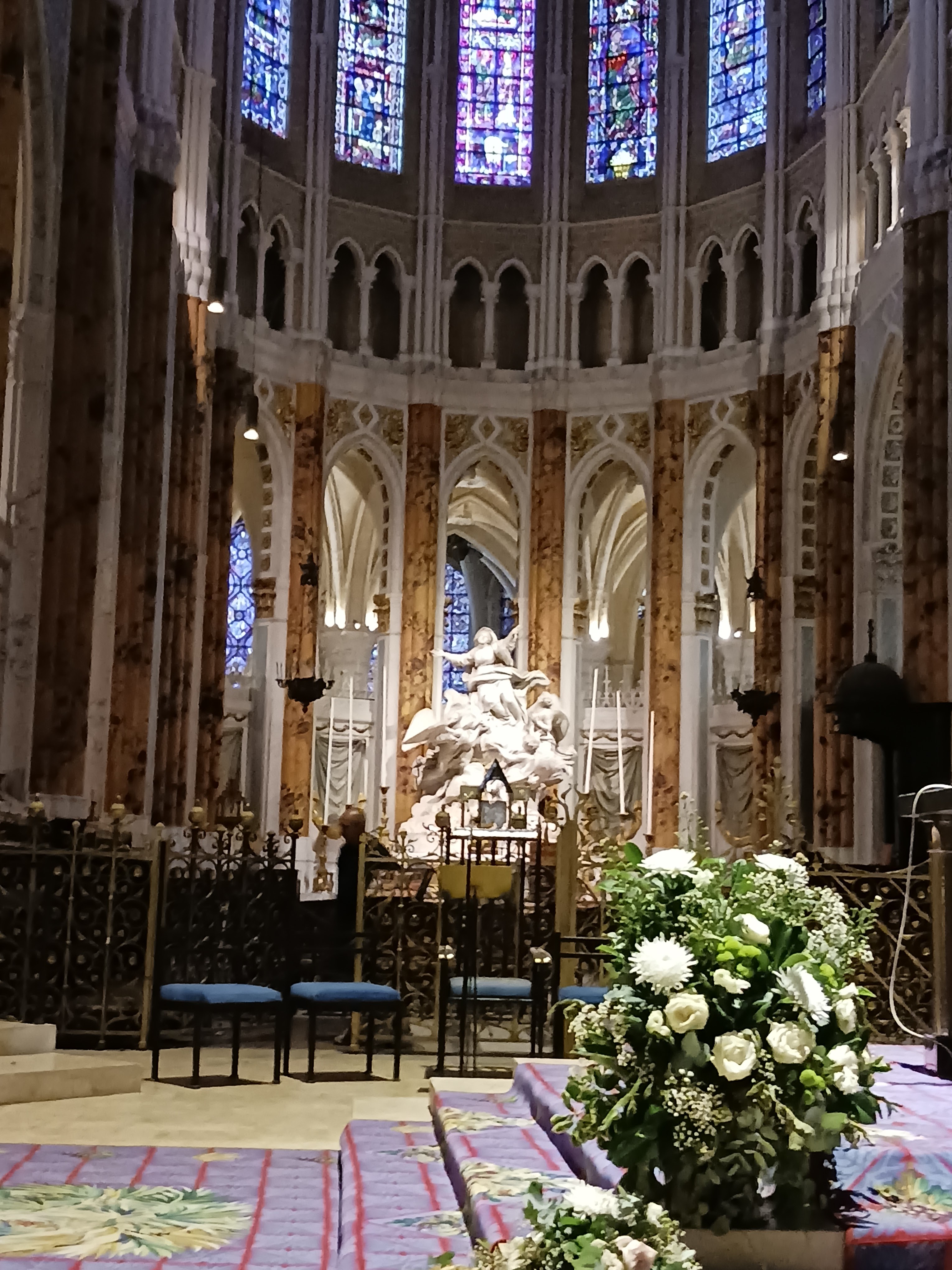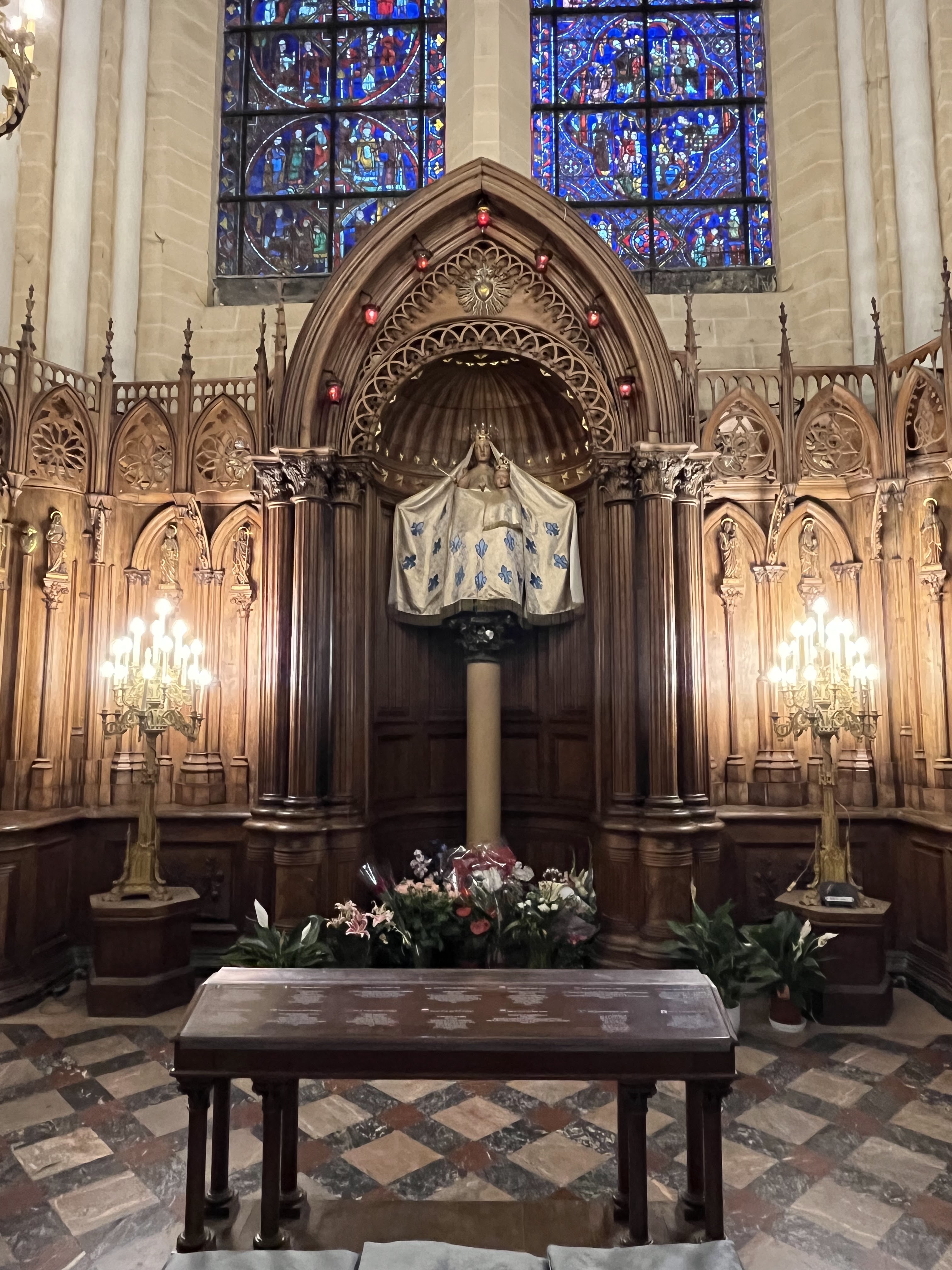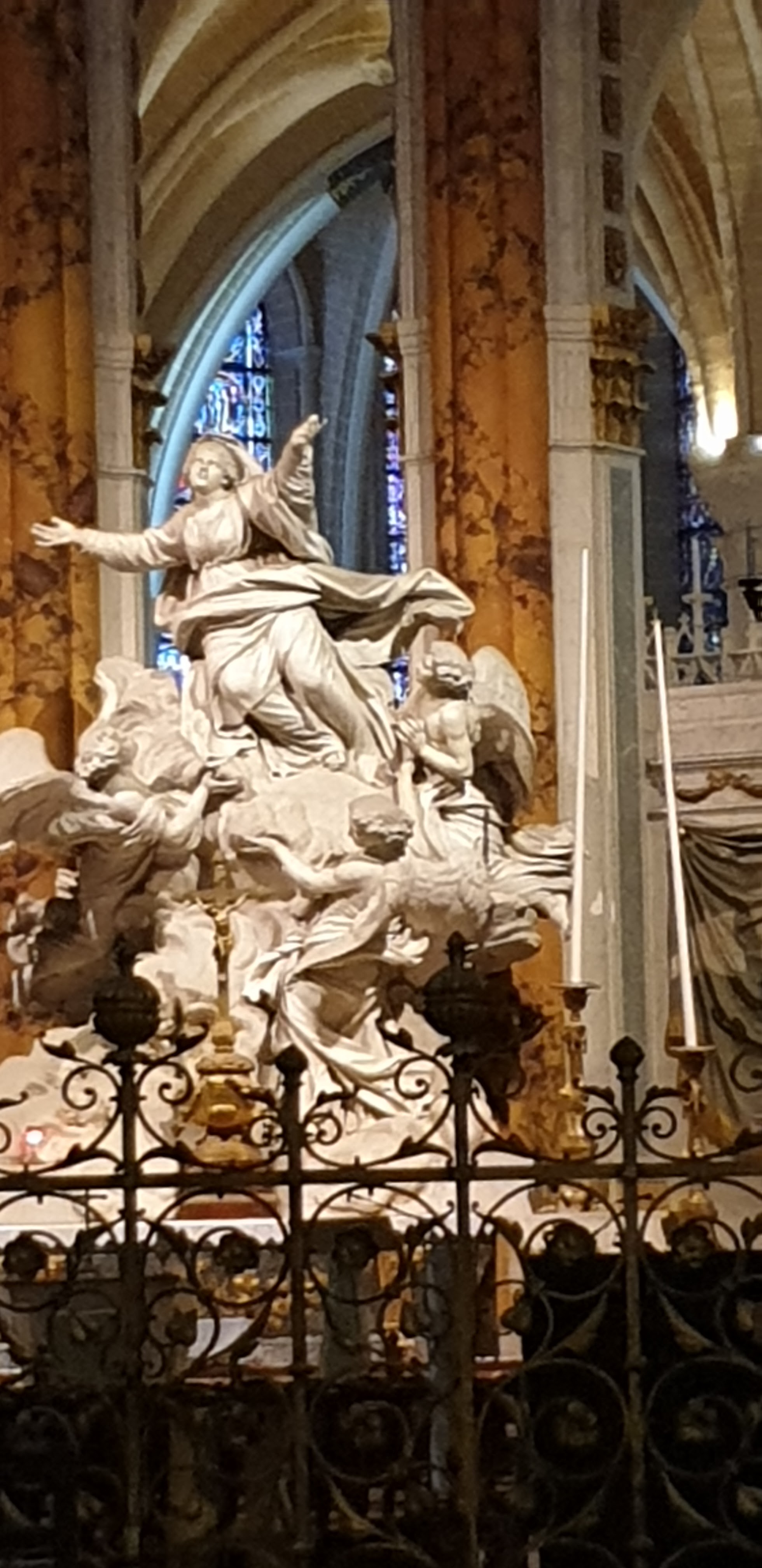 En groupe nous sommes allés visiter cette superbe cathédrale. Notre guide, Claire, jeune femme passionnée par son métier nous a appris énormément de choses concernant cet édifice majestueux, ses magnifiques vitraux et sculptures. C'est un joyau de plénitude et de beauté conçu à la gloire de Marie et de Jésus. A l'intérieur, une partie de la cathédrale vient d'être restaurée, c'est encore plus somptueux.