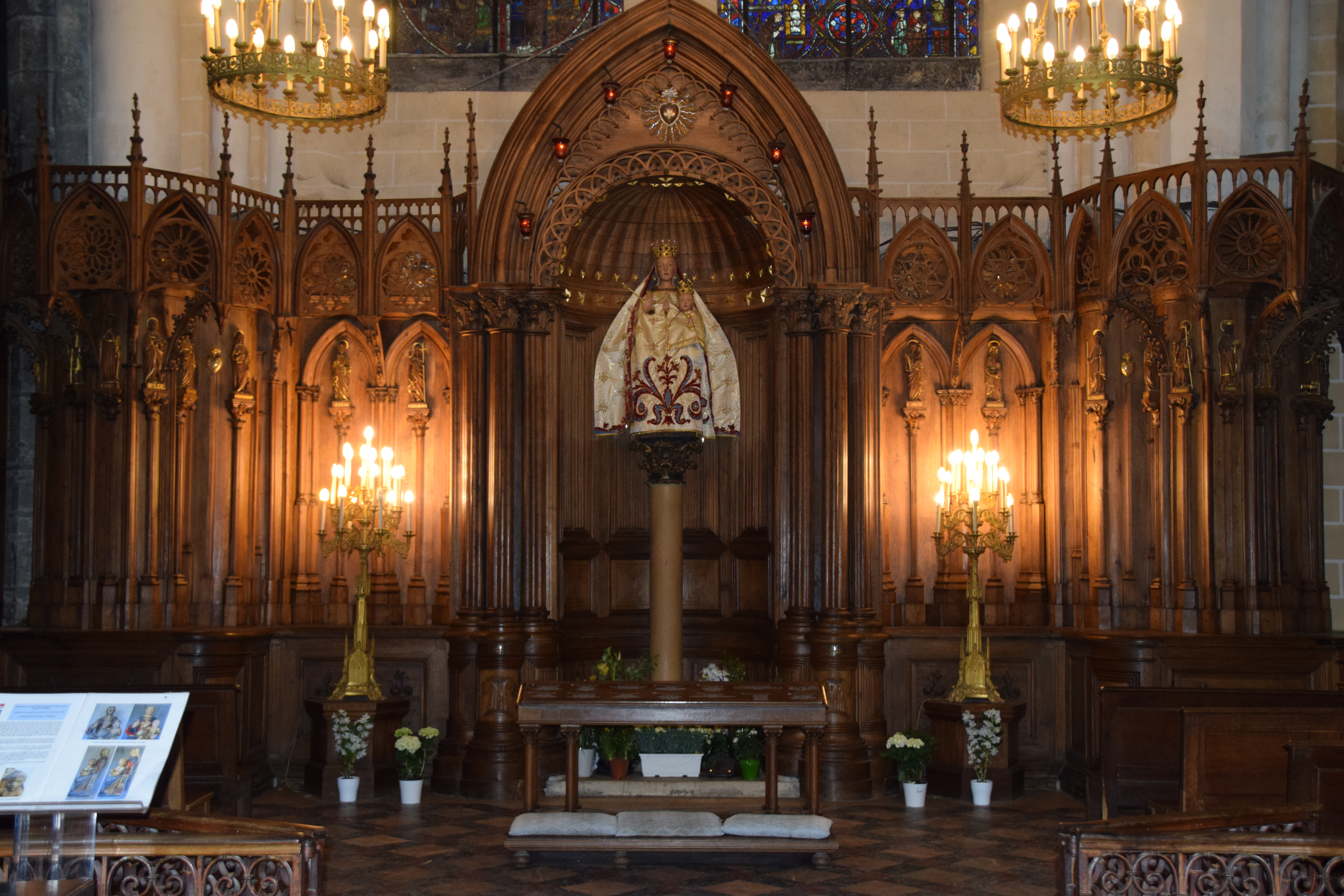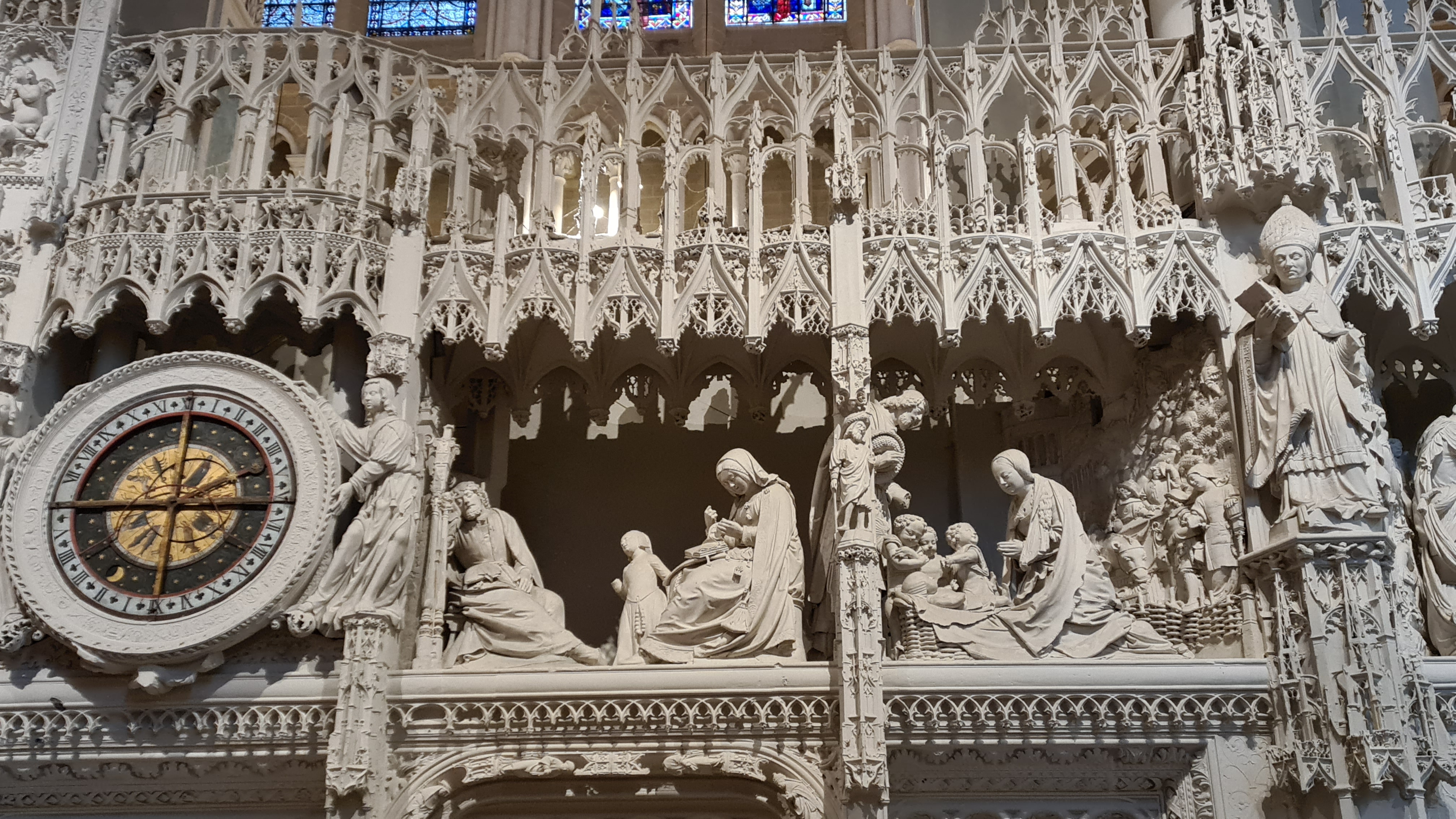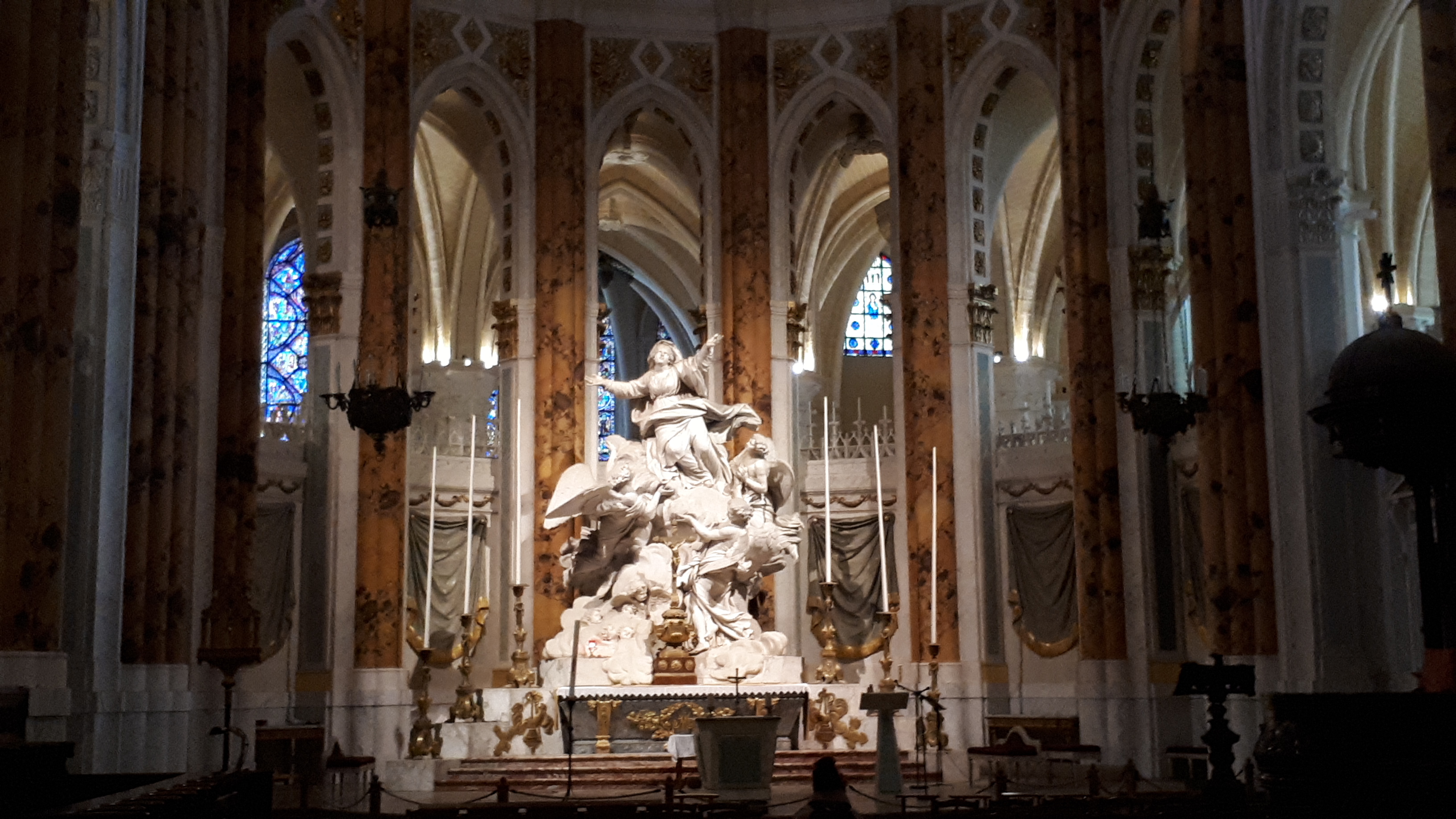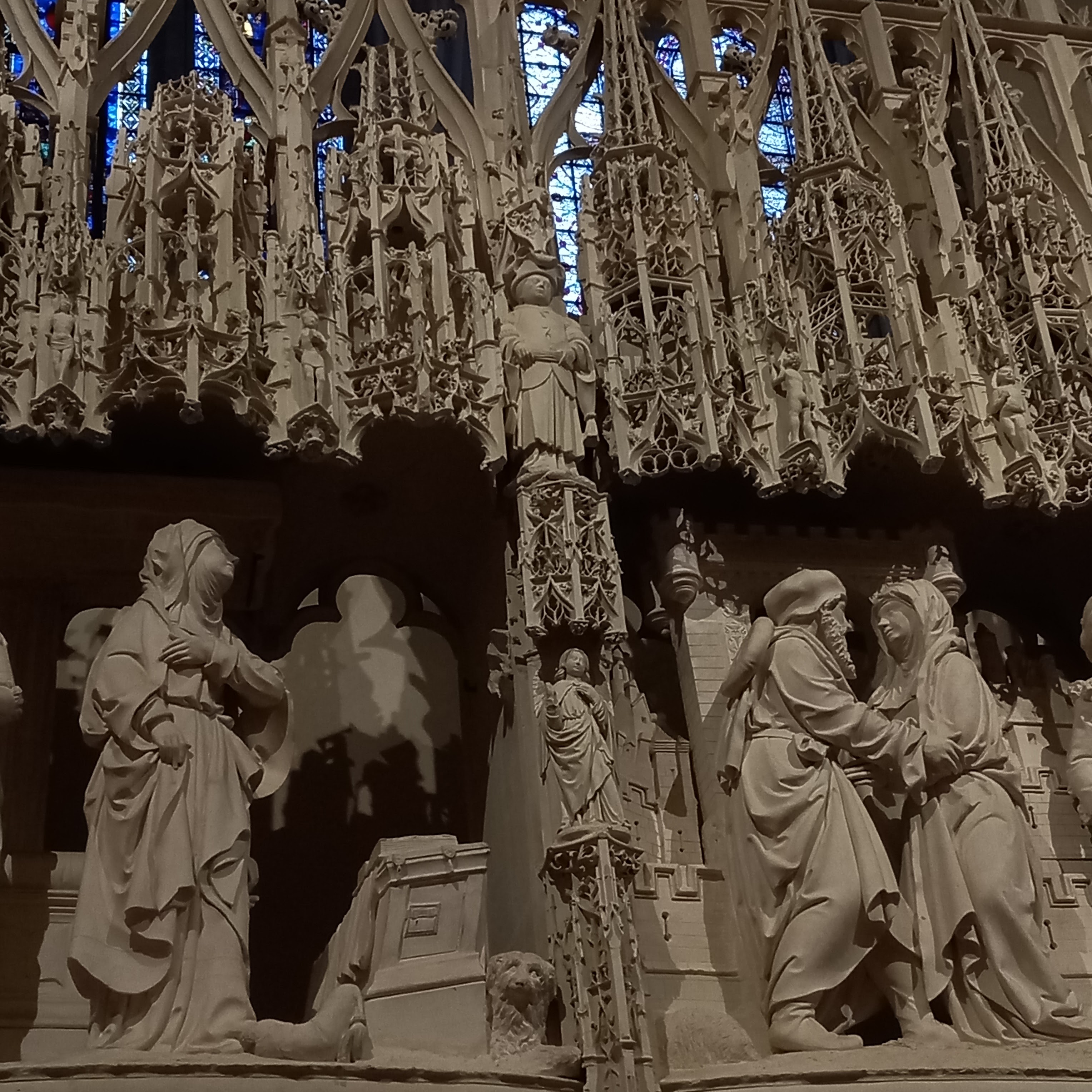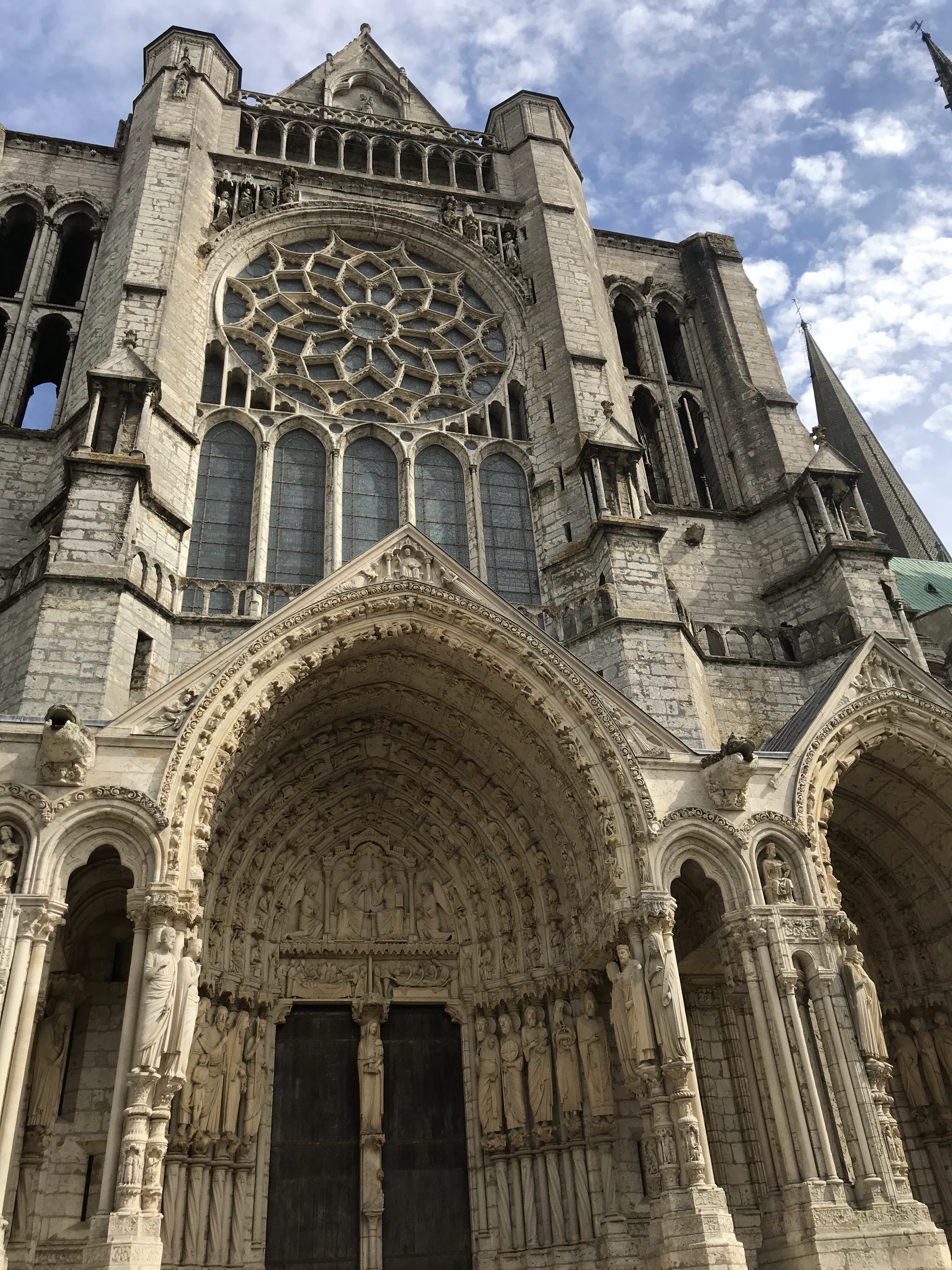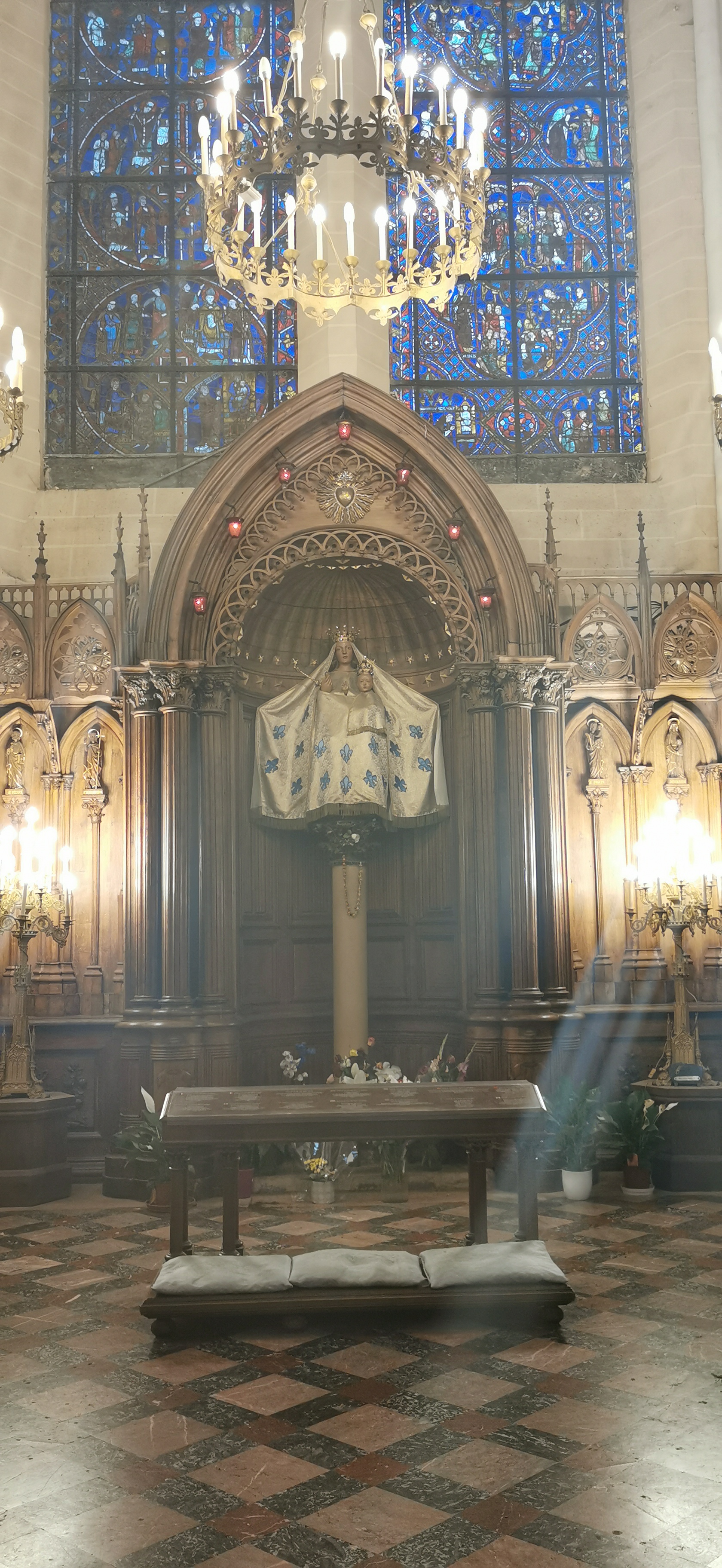 En groupe nous sommes allés visiter cette superbe cathédrale. Notre guide, Claire, jeune femme passionnée par son métier nous a appris énormément de choses concernant cet édifice majestueux, ses magnifiques vitraux et sculptures. C'est un joyau de plénitude et de beauté conçu à la gloire de Marie et de Jésus. A l'intérieur, une partie de la cathédrale vient d'être restaurée, c'est encore plus somptueux.