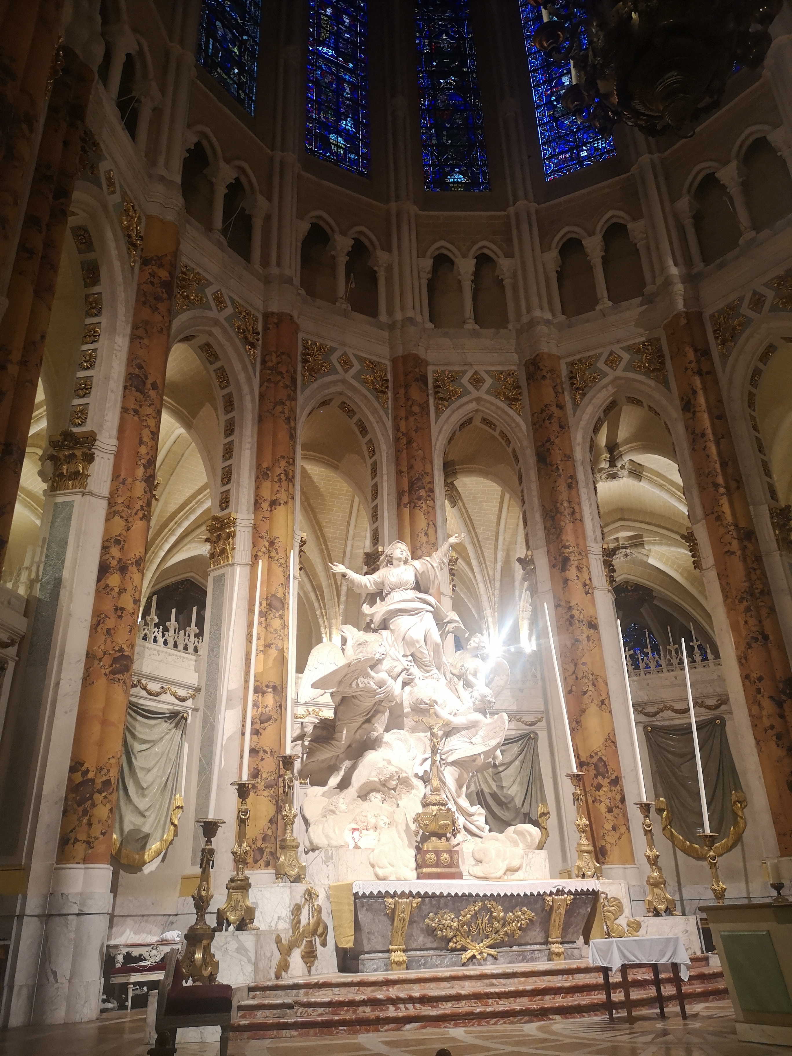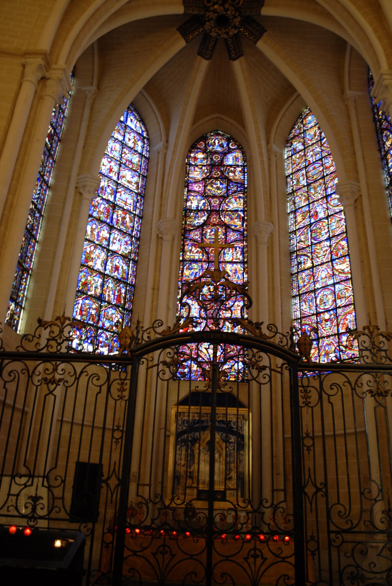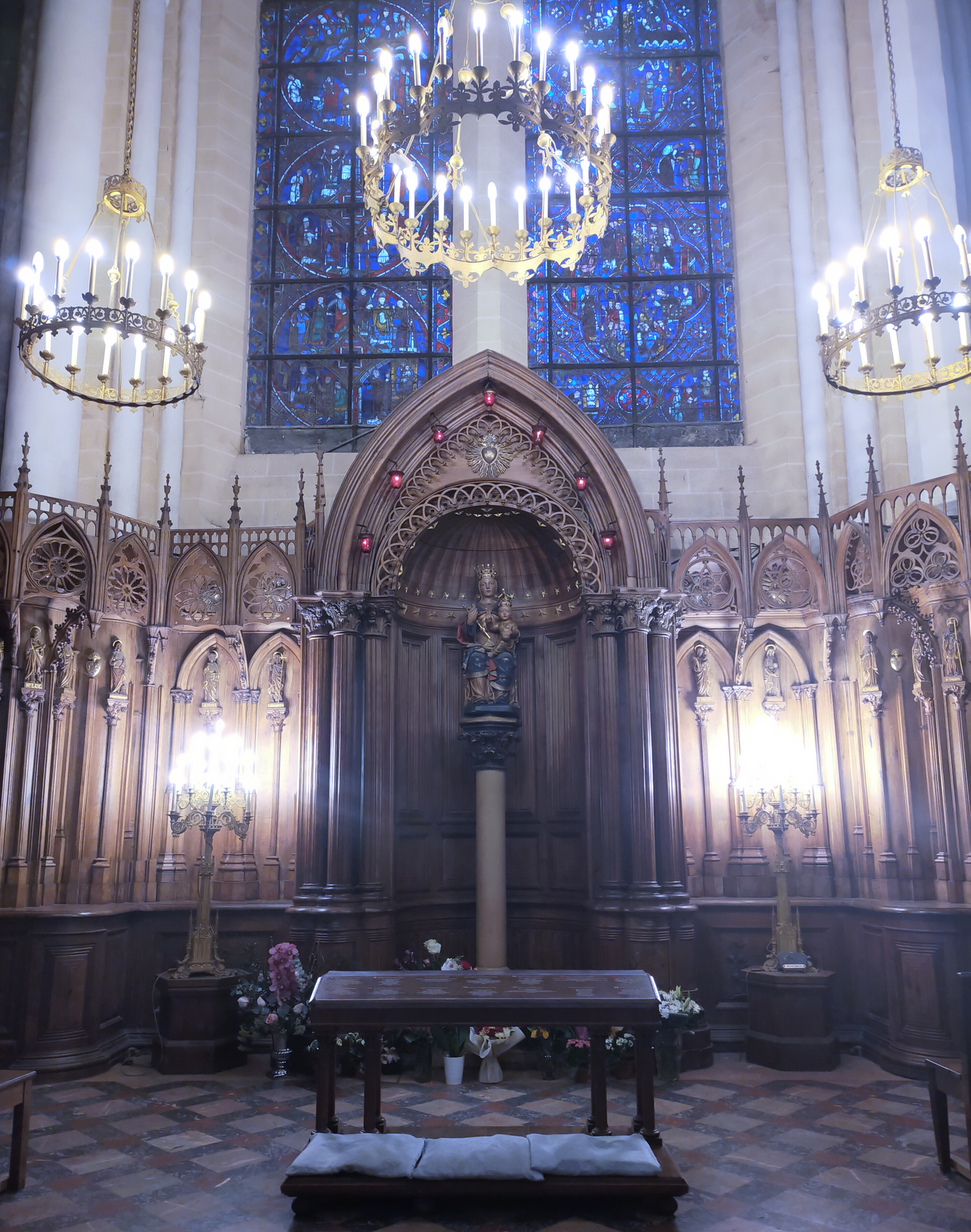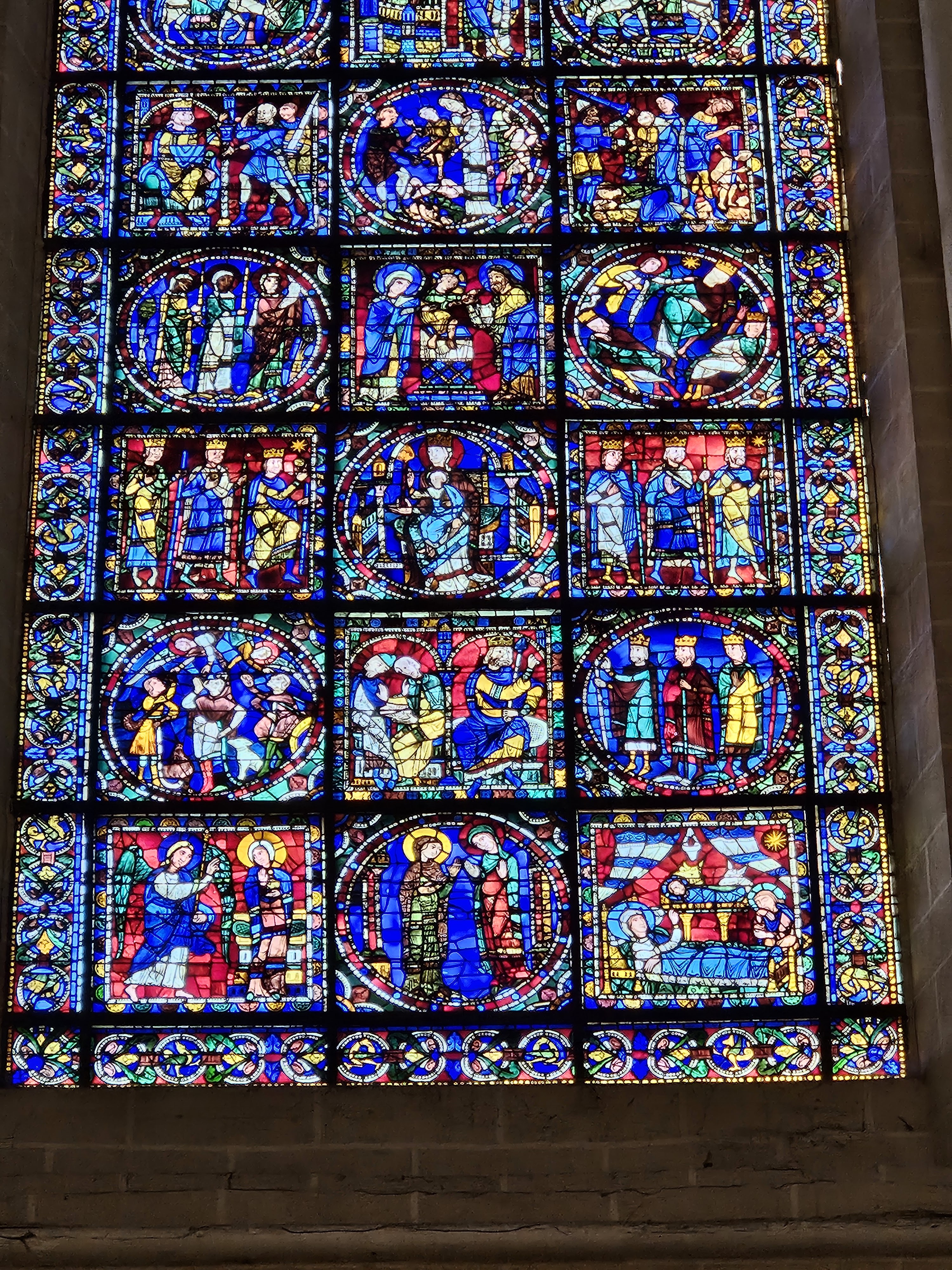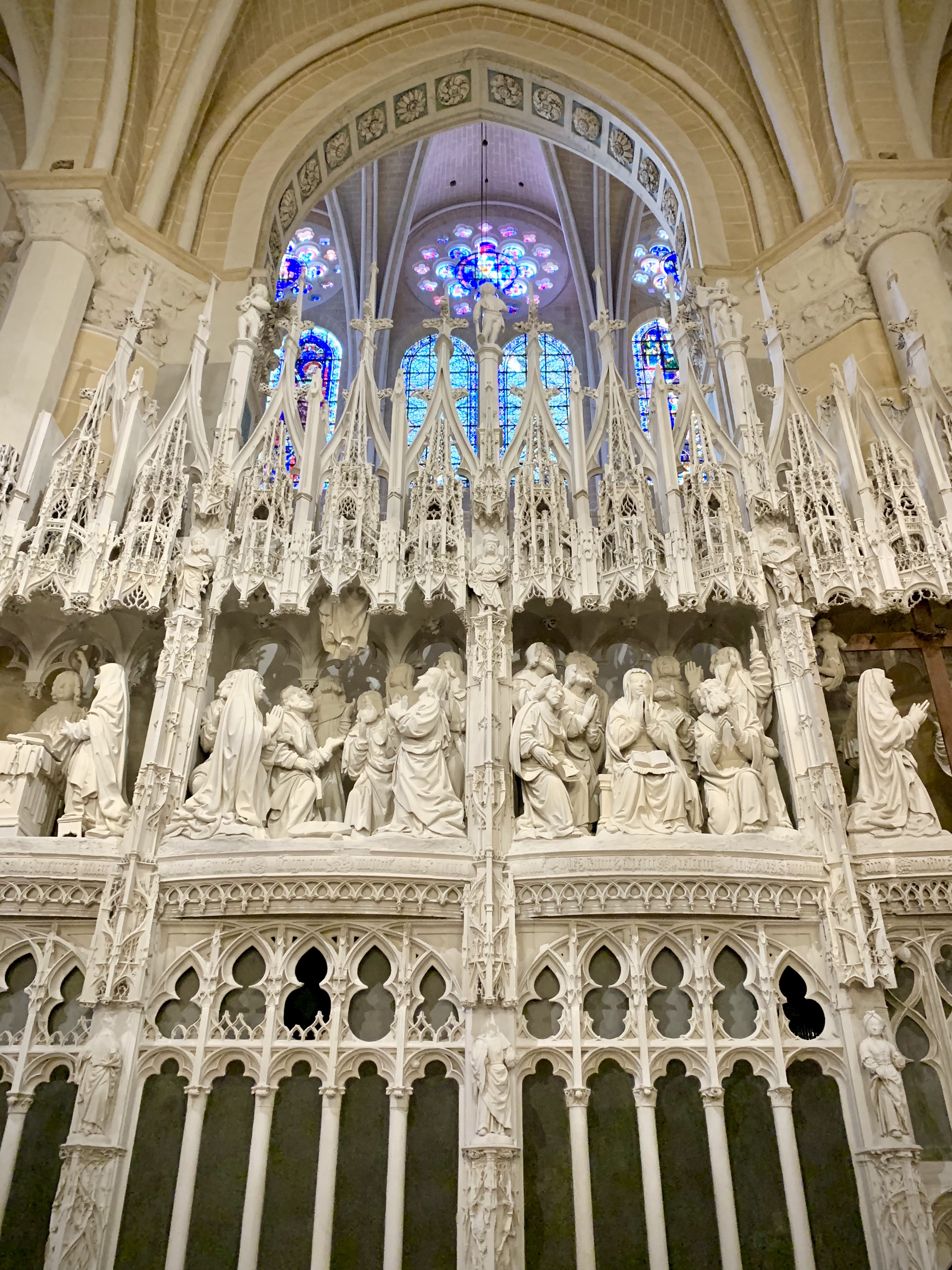 En groupe nous sommes allés visiter cette superbe cathédrale. Notre guide, Claire, jeune femme passionnée par son métier nous a appris énormément de choses concernant cet édifice majestueux, ses magnifiques vitraux et sculptures. C'est un joyau de plénitude et de beauté conçu à la gloire de Marie et de Jésus. A l'intérieur, une partie de la cathédrale vient d'être restaurée, c'est encore plus somptueux.