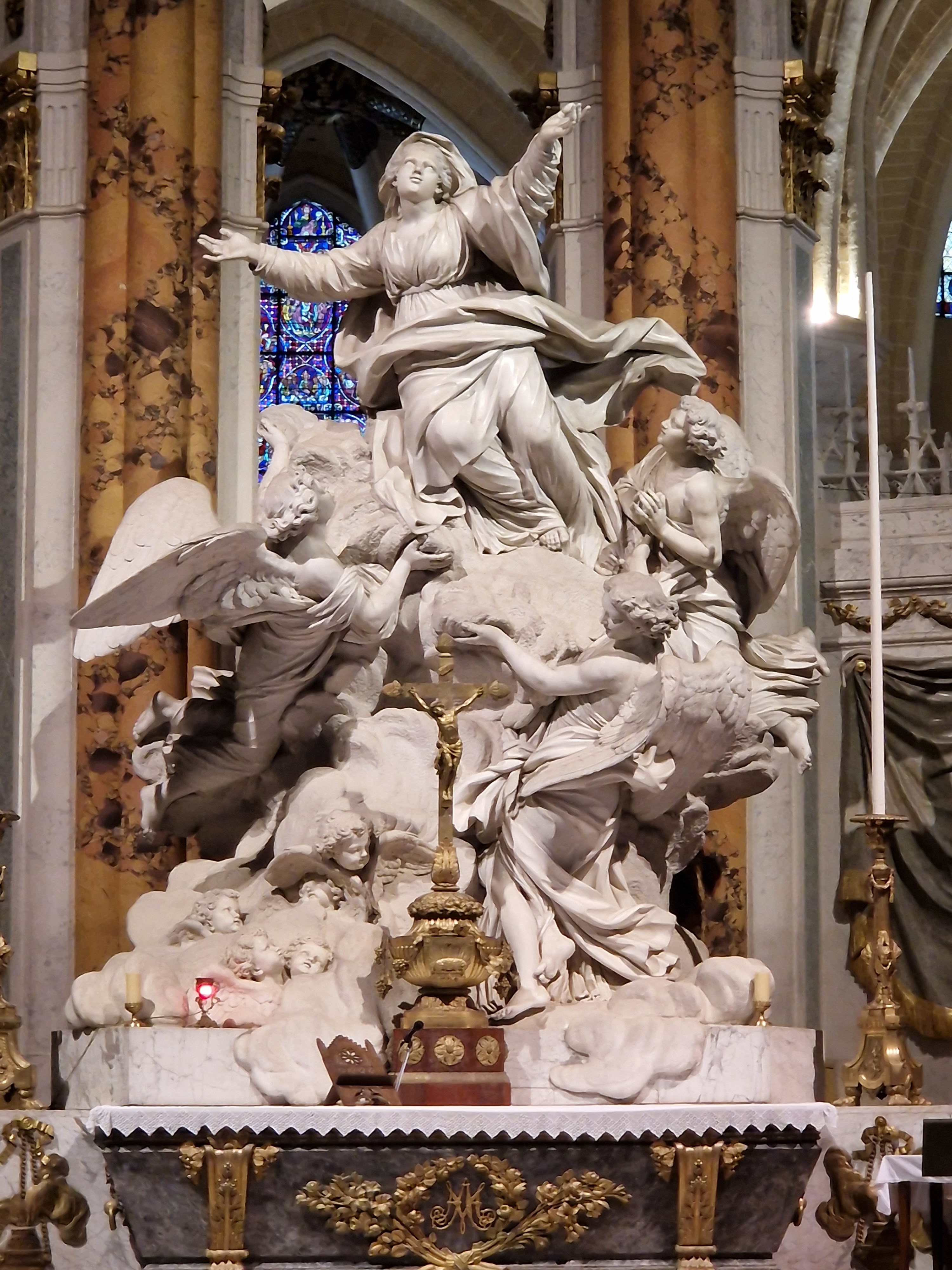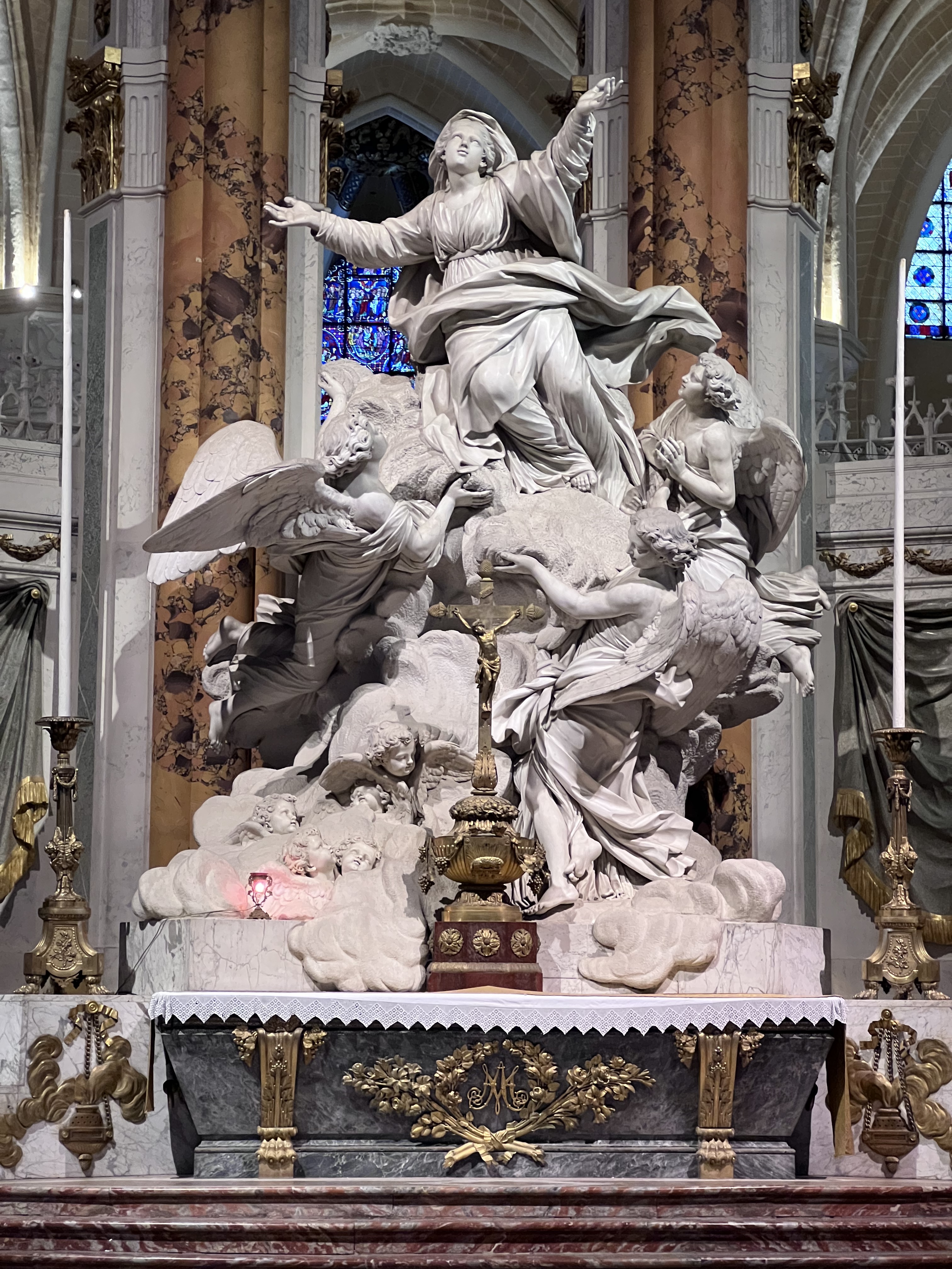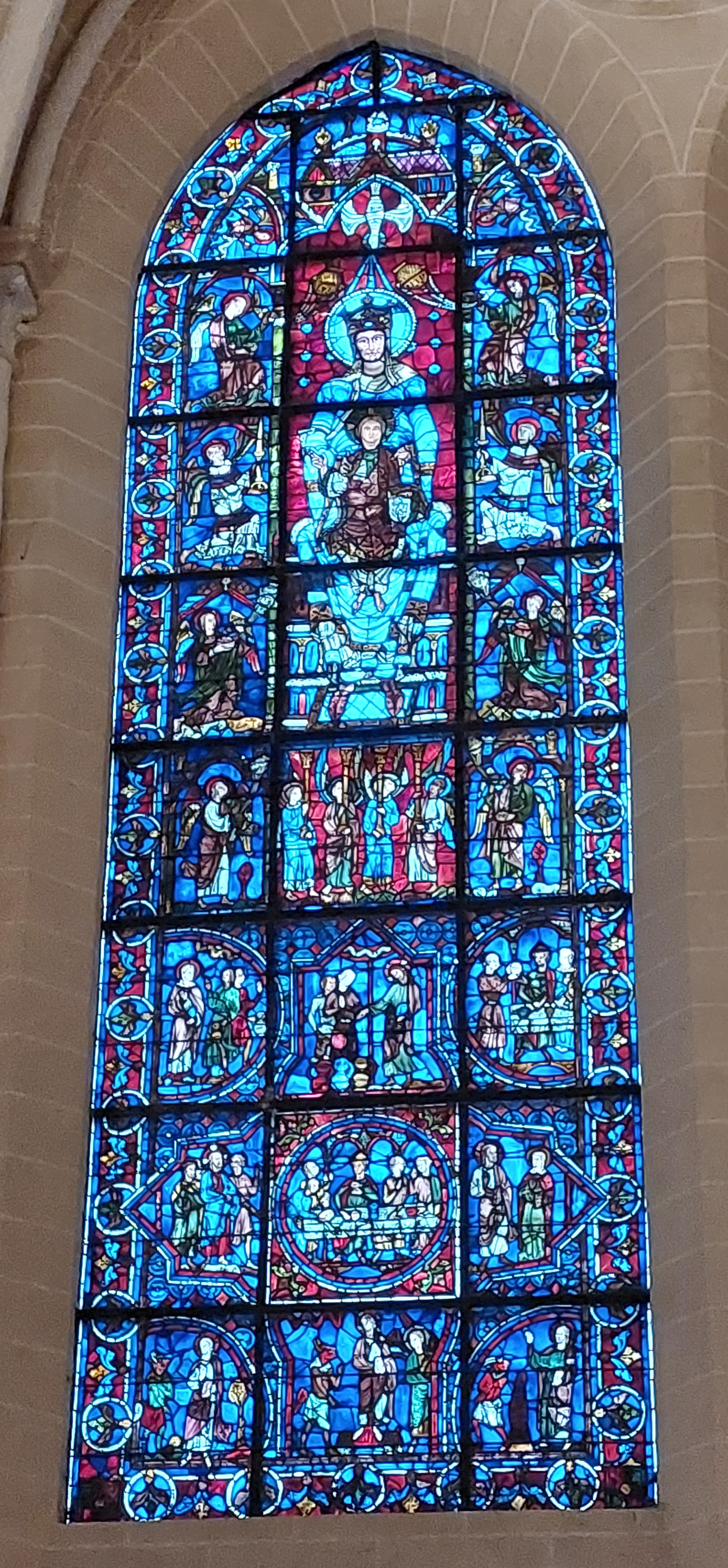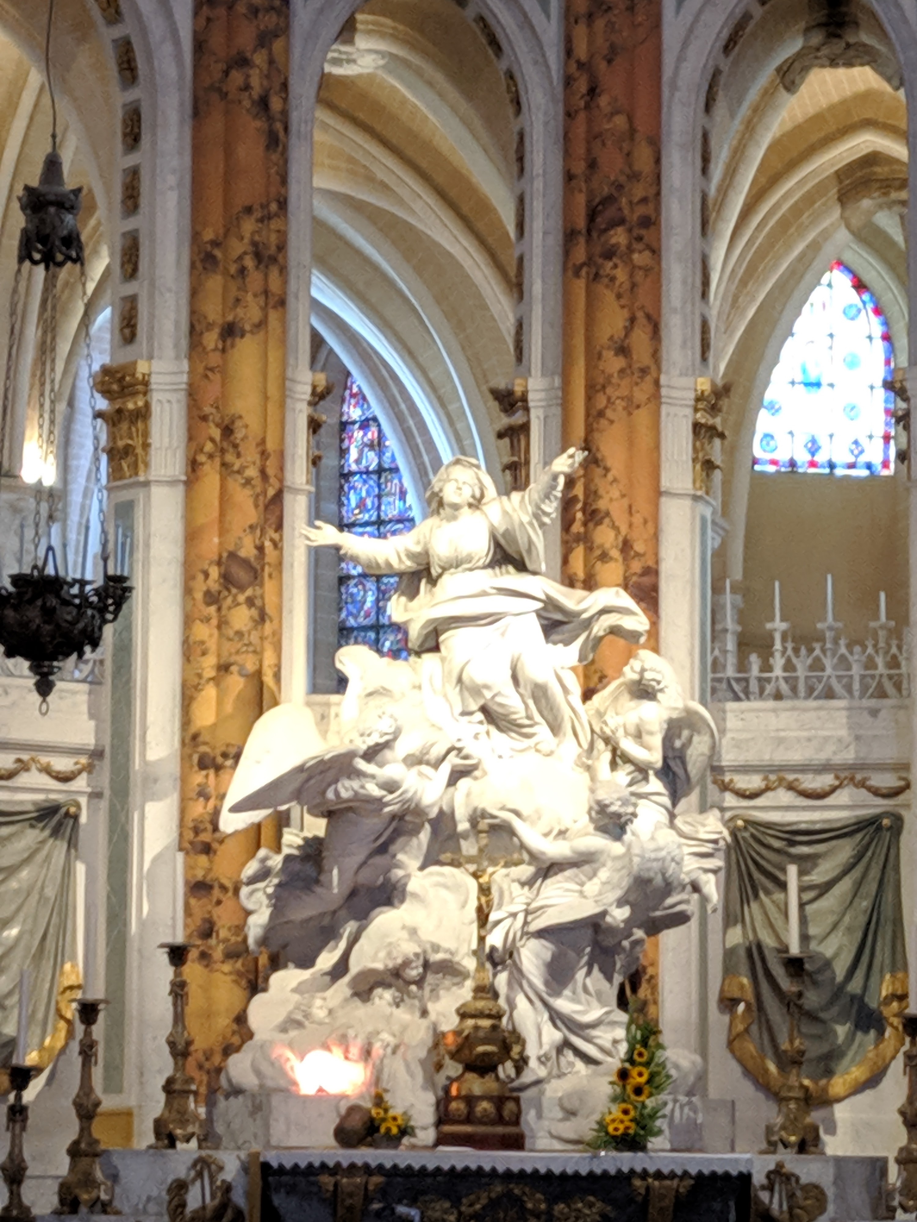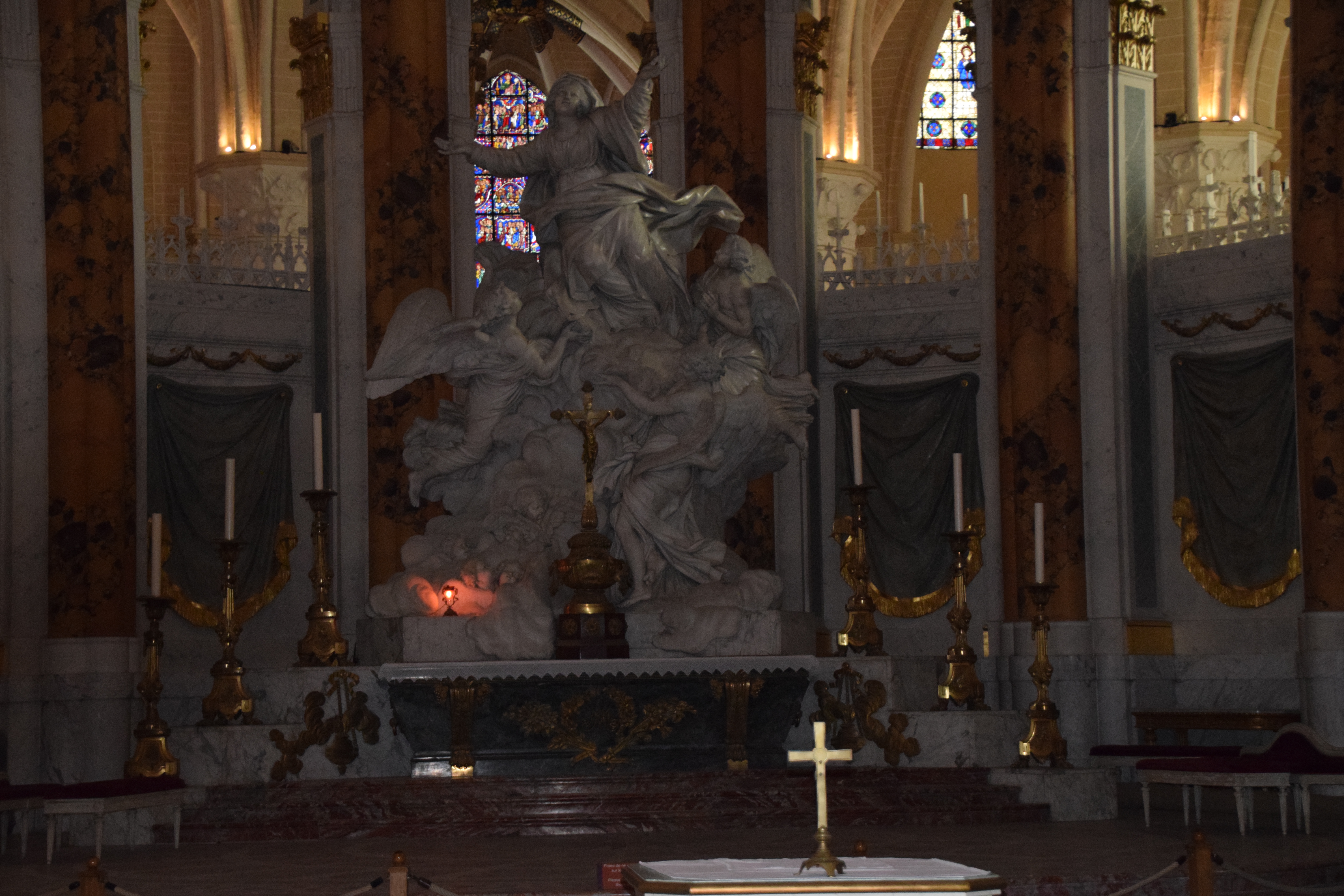 En groupe nous sommes allés visiter cette superbe cathédrale. Notre guide, Claire, jeune femme passionnée par son métier nous a appris énormément de choses concernant cet édifice majestueux, ses magnifiques vitraux et sculptures. C'est un joyau de plénitude et de beauté conçu à la gloire de Marie et de Jésus. A l'intérieur, une partie de la cathédrale vient d'être restaurée, c'est encore plus somptueux.