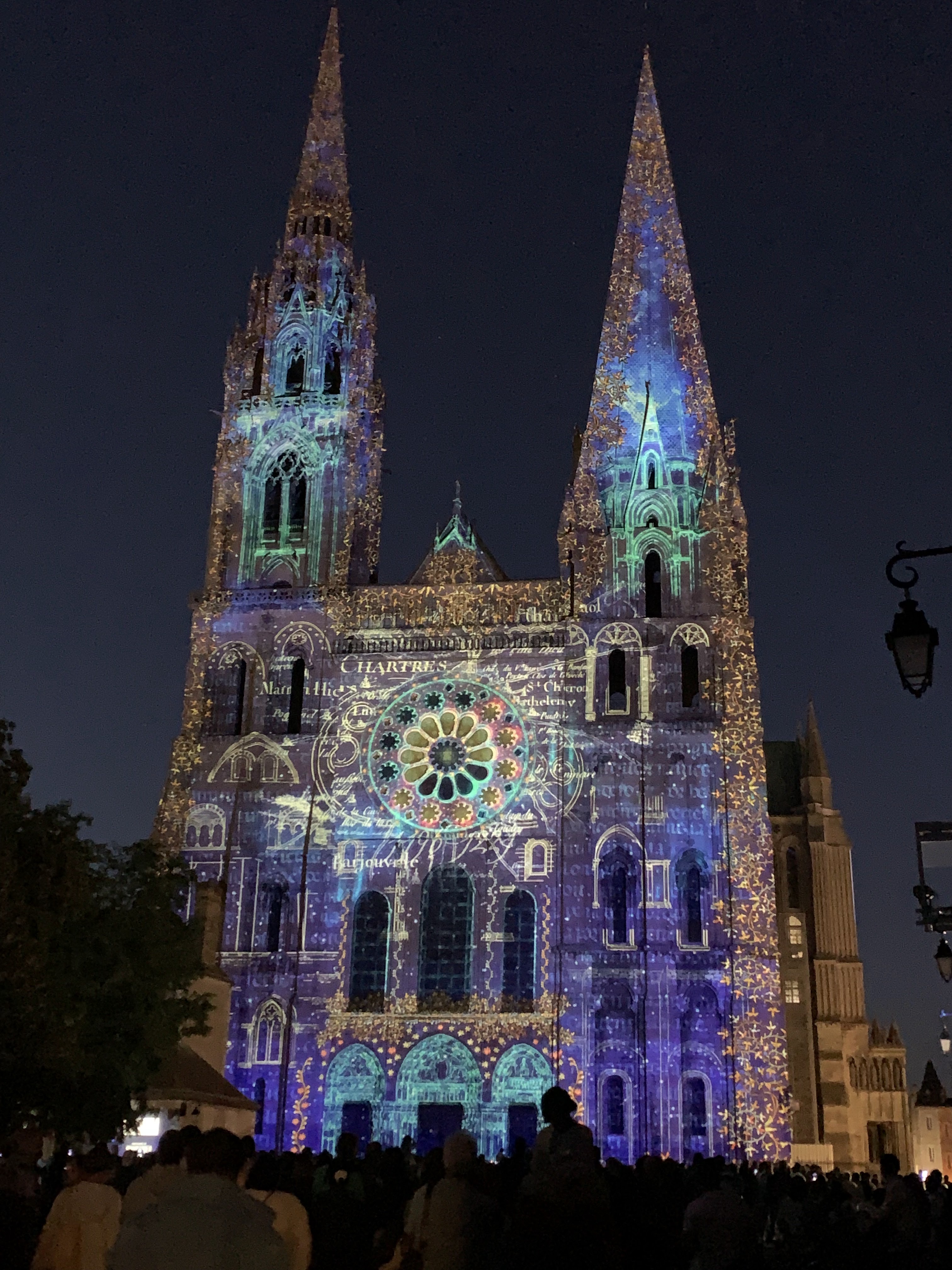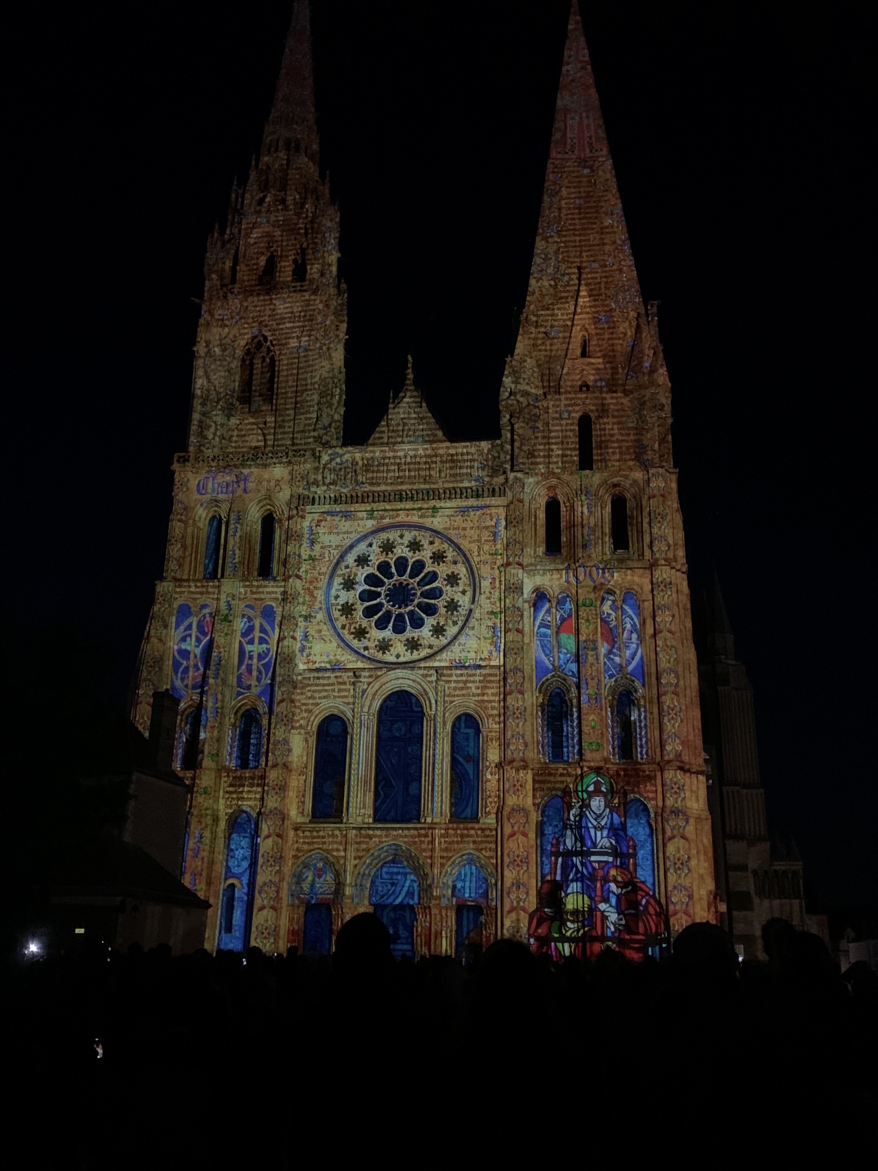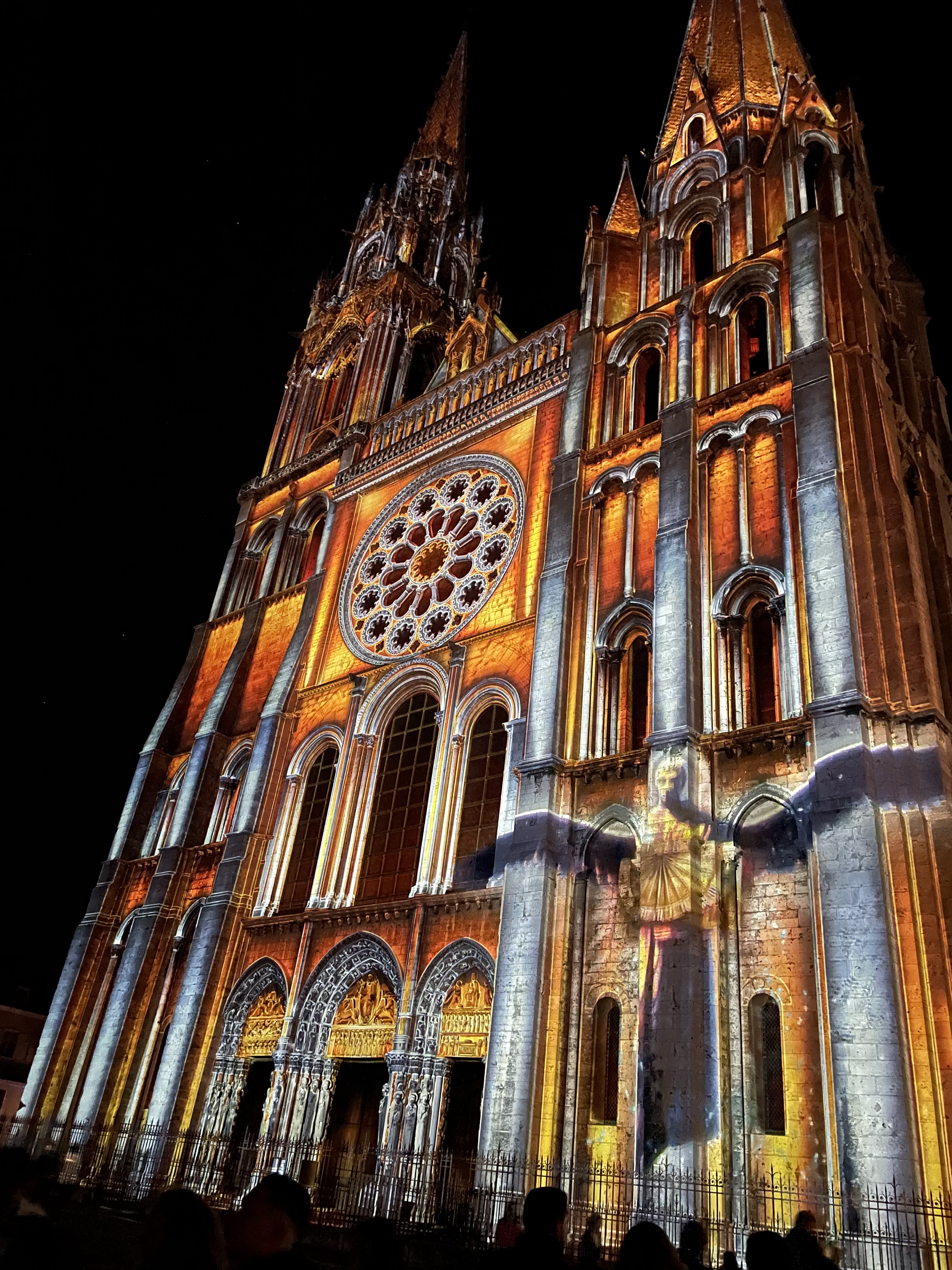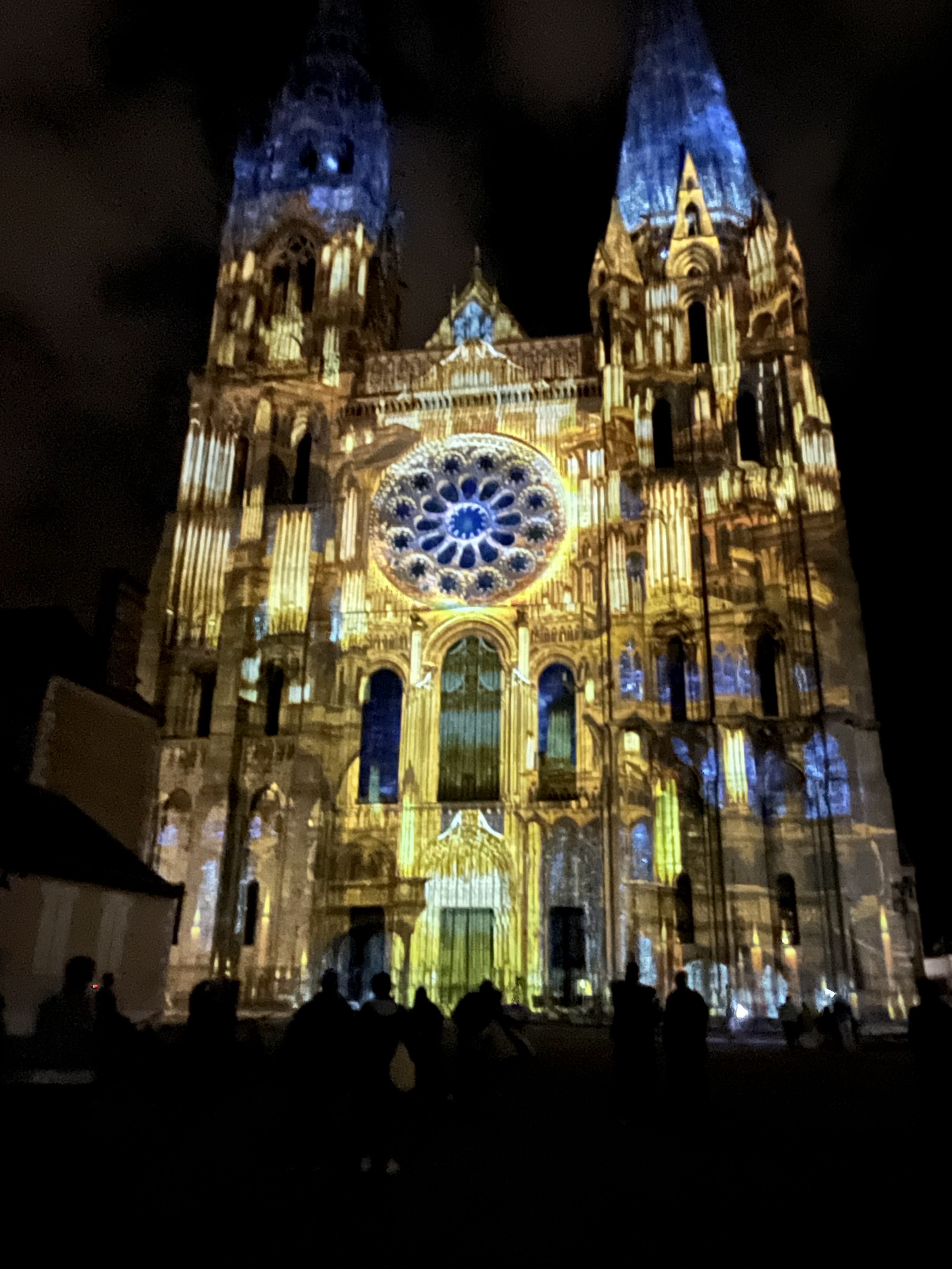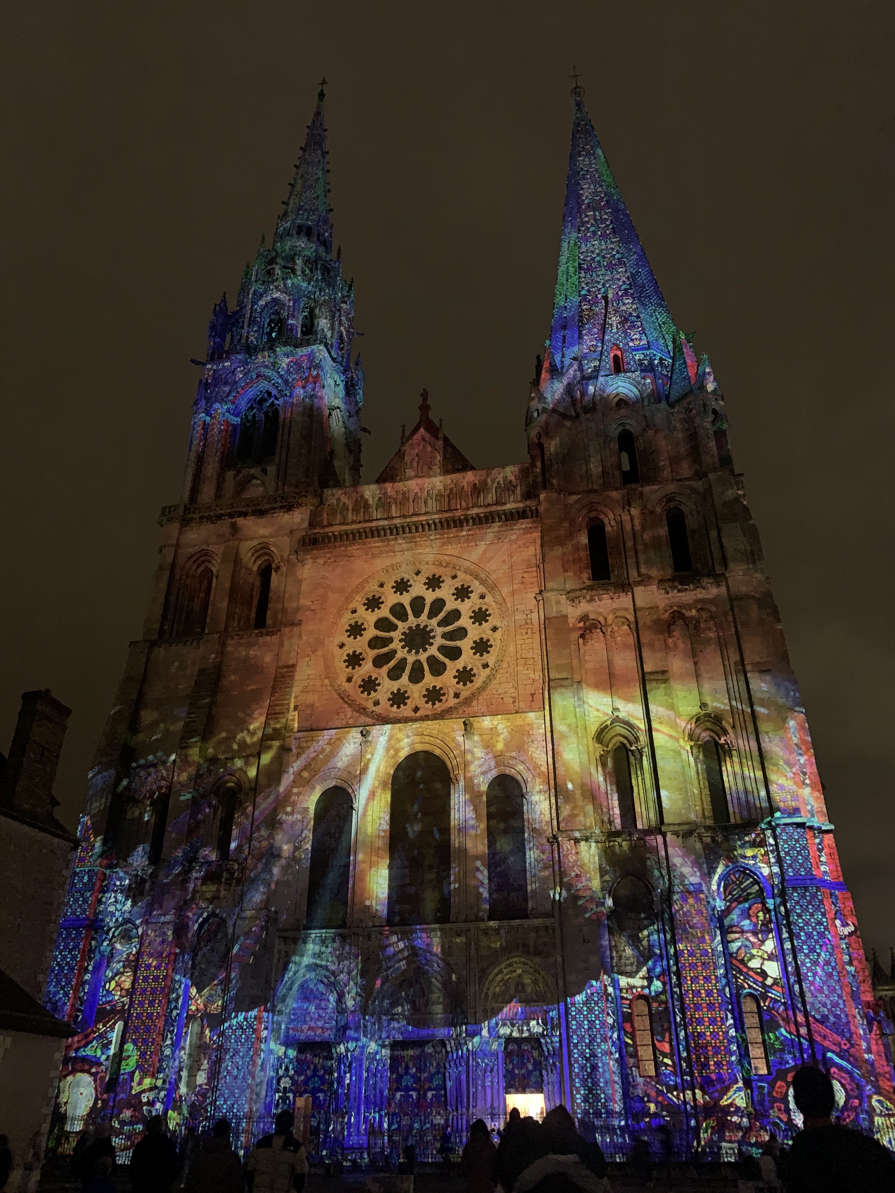 On a fini notre visite à Chartes en face de la Cathédrale pour regarder le spectacle de lumières sur sa façade. Incroyablement beau!