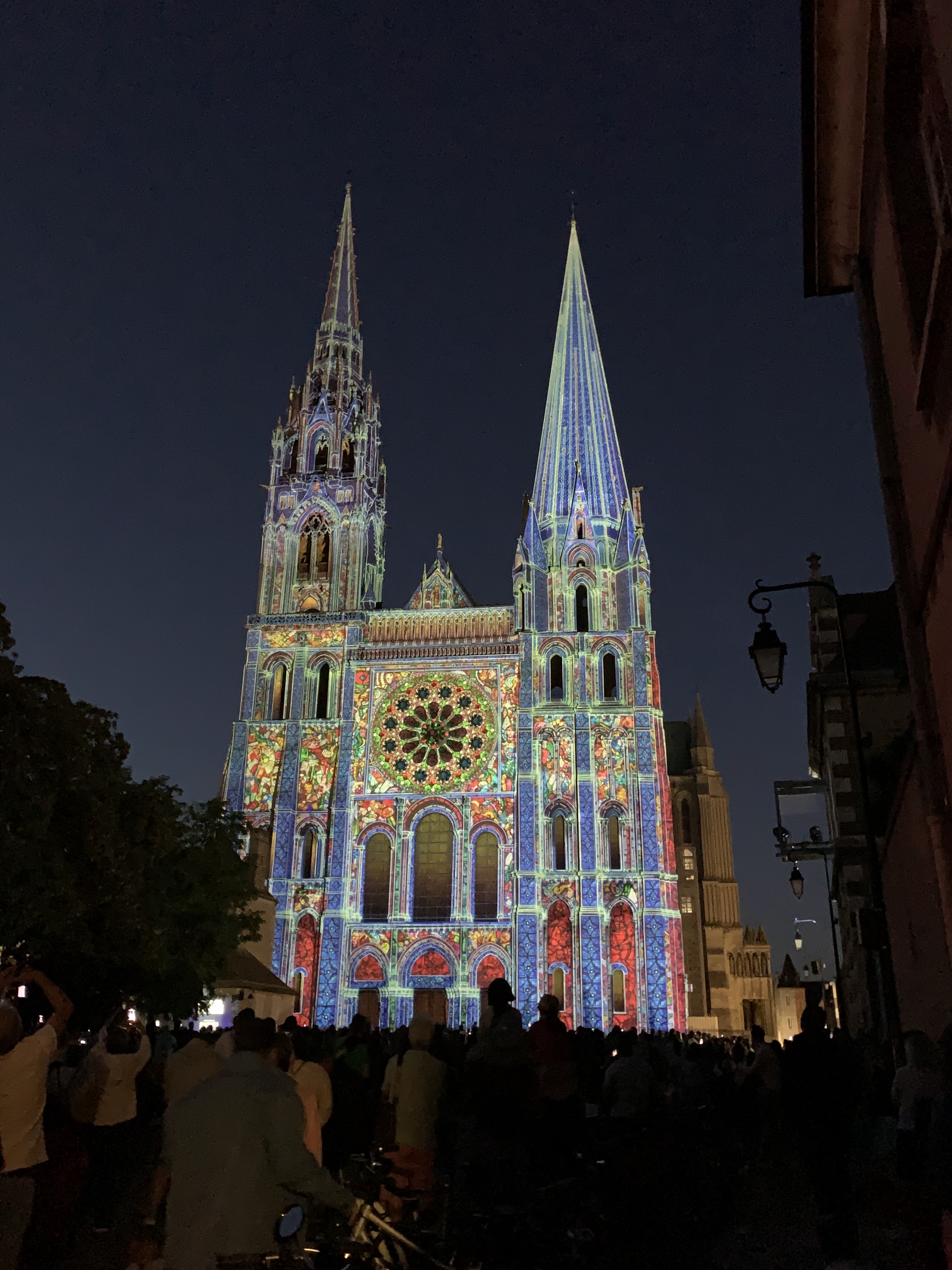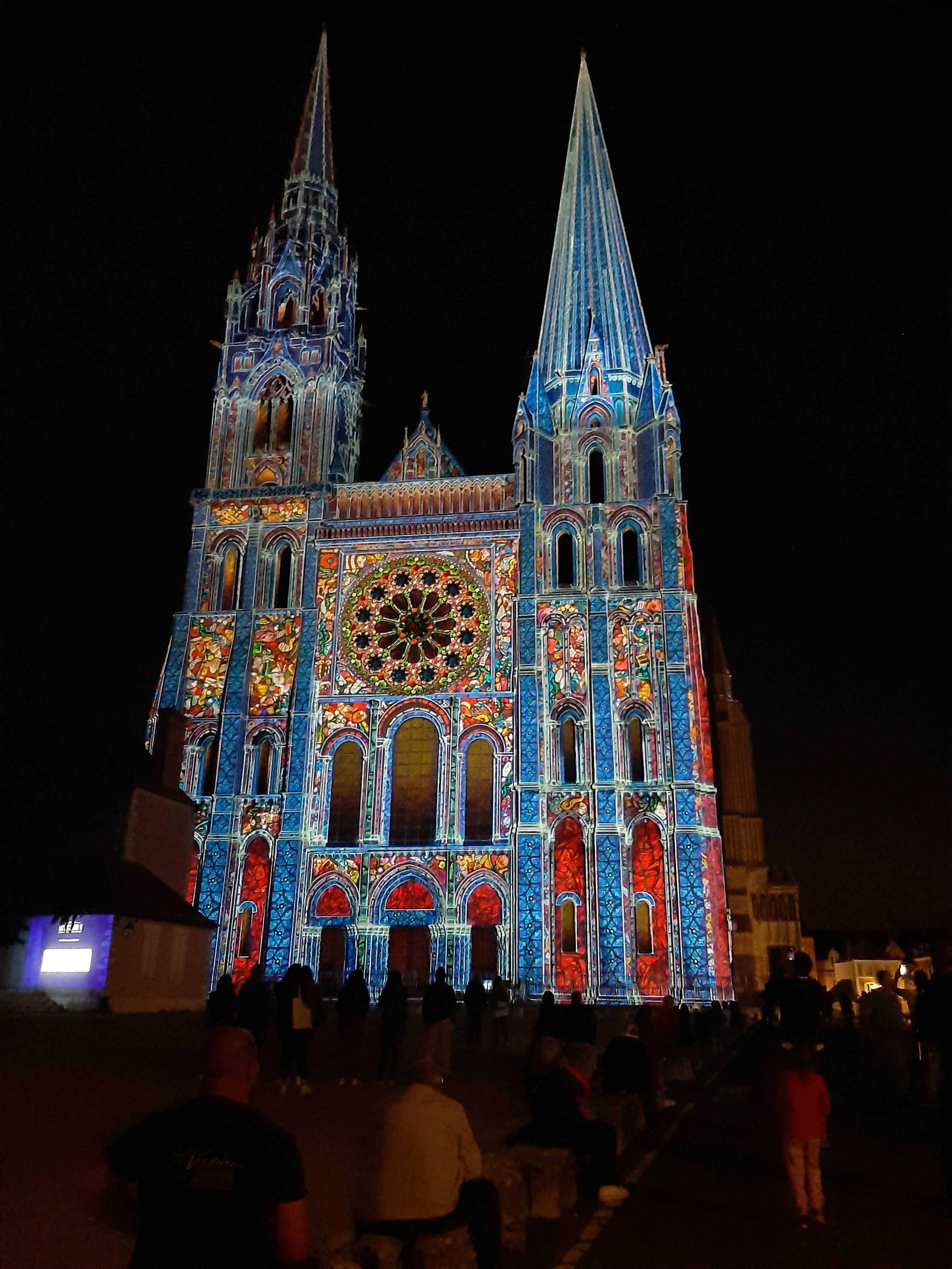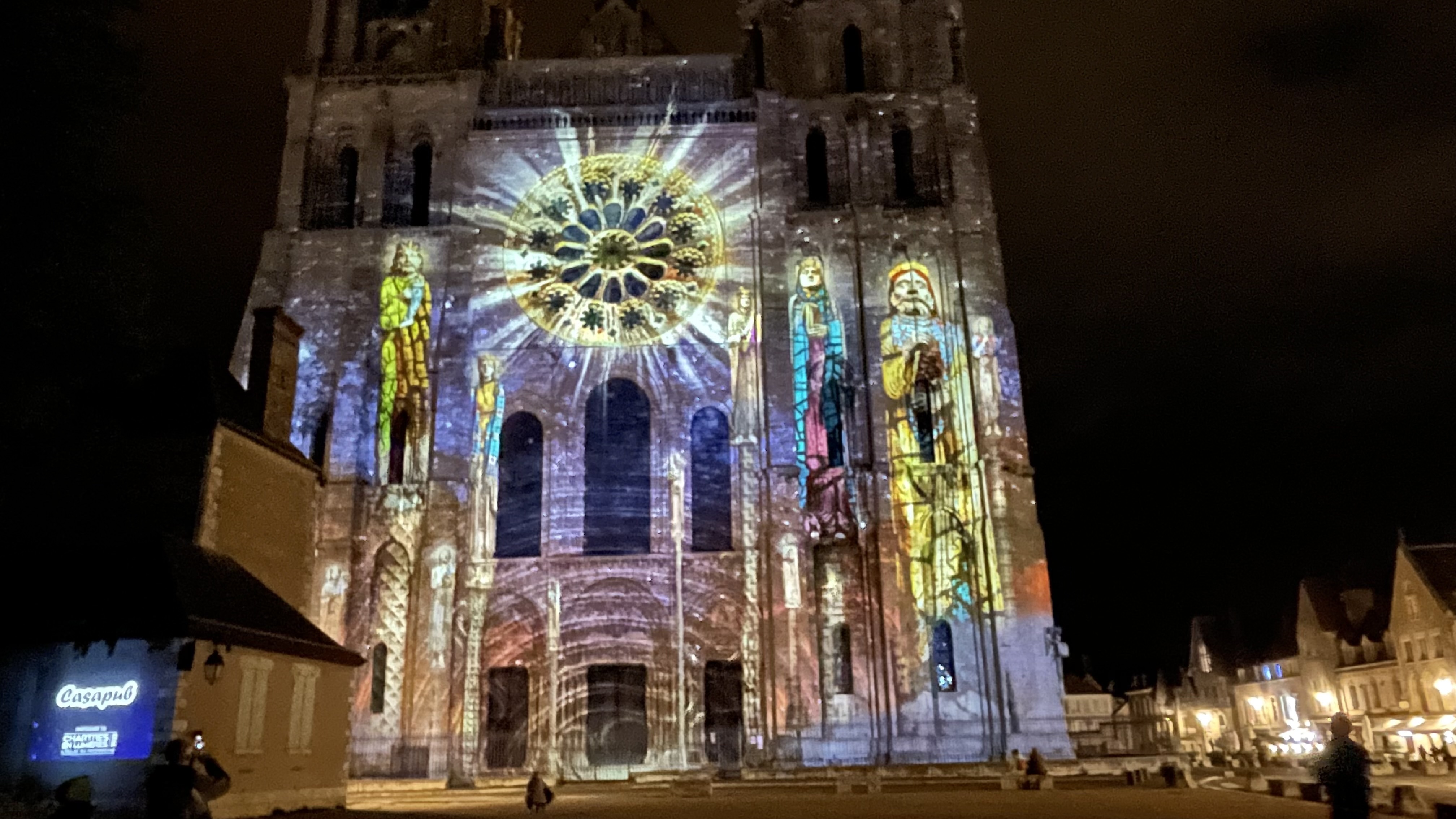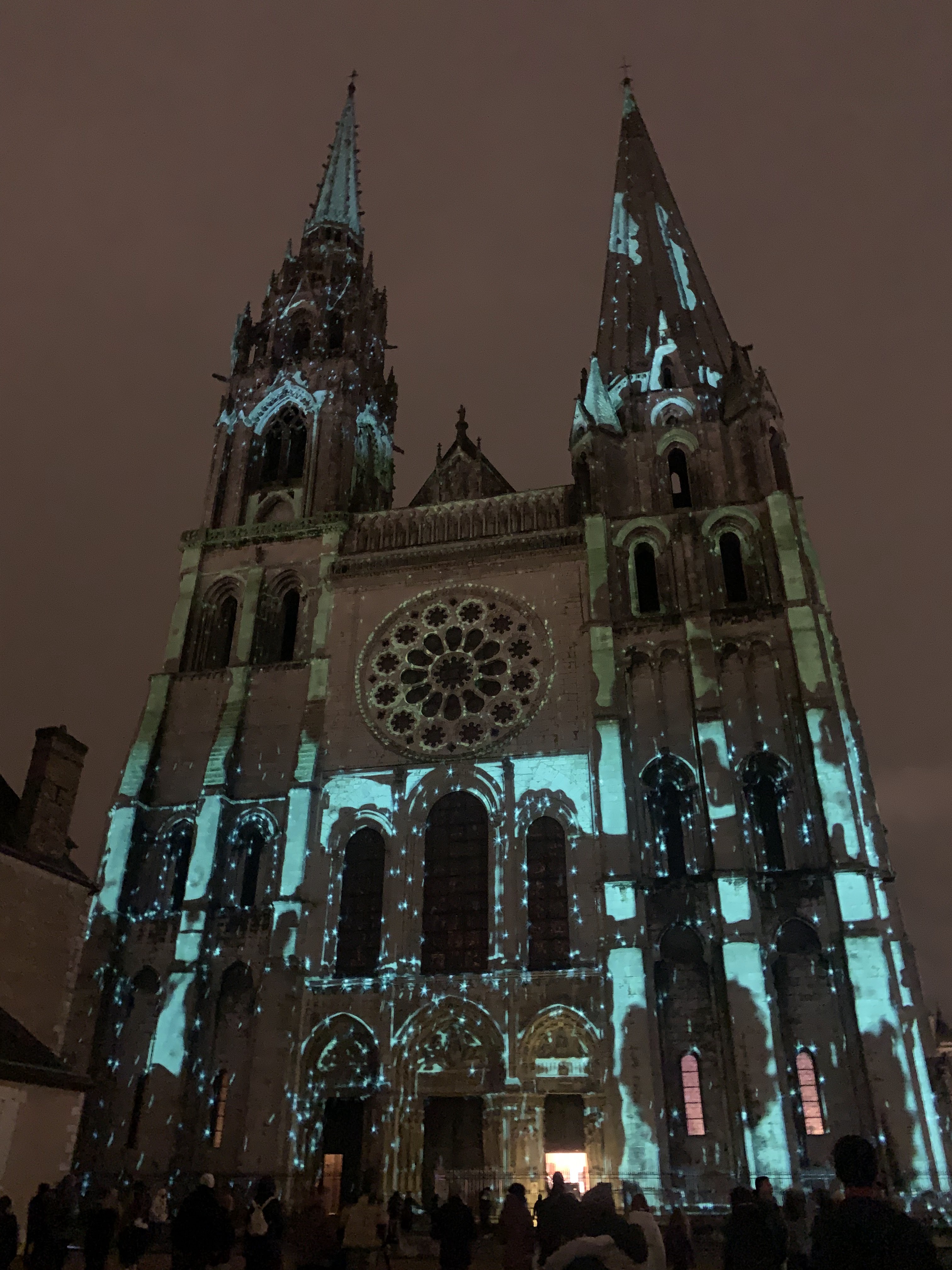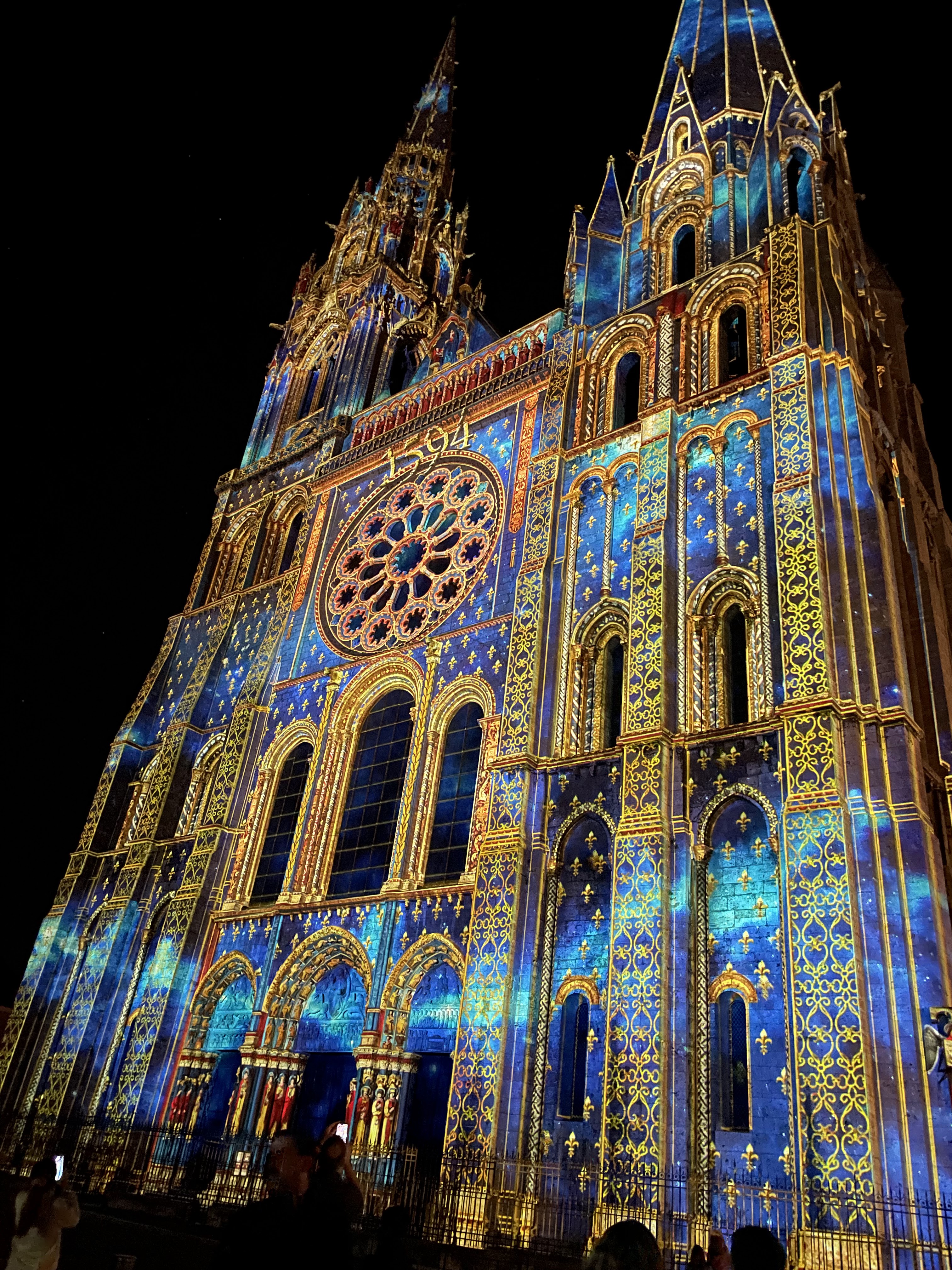 On a fini notre visite à Chartes en face de la Cathédrale pour regarder le spectacle de lumières sur sa façade. Incroyablement beau!
