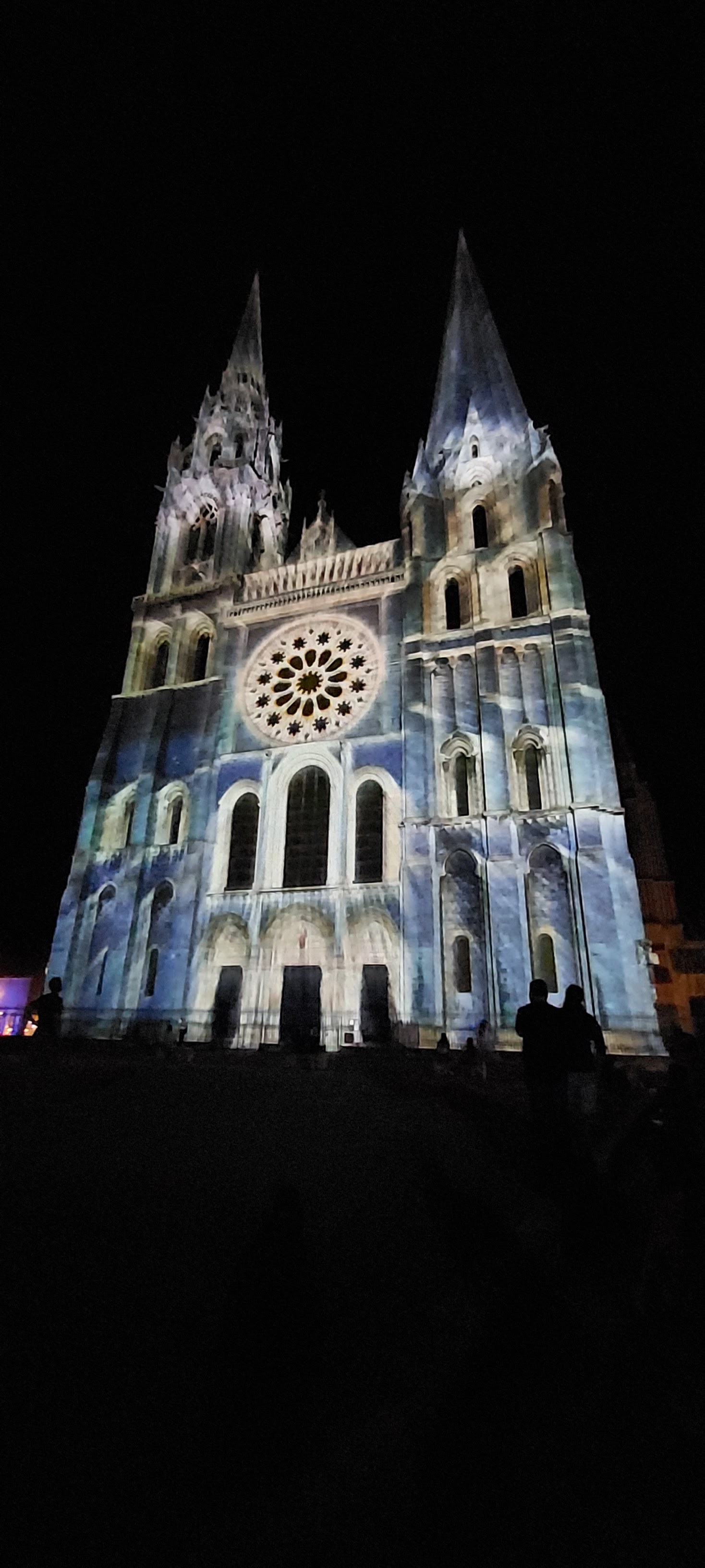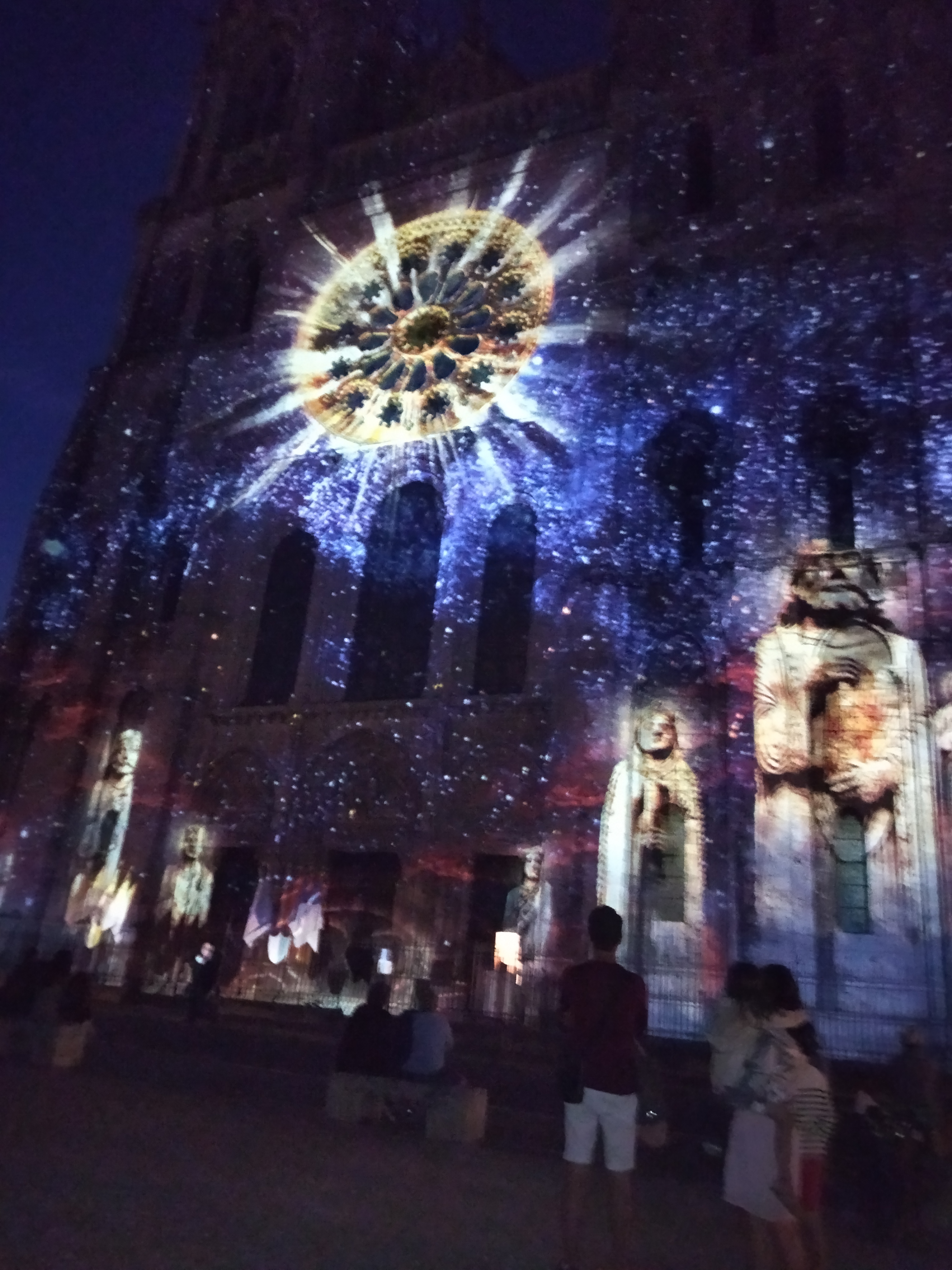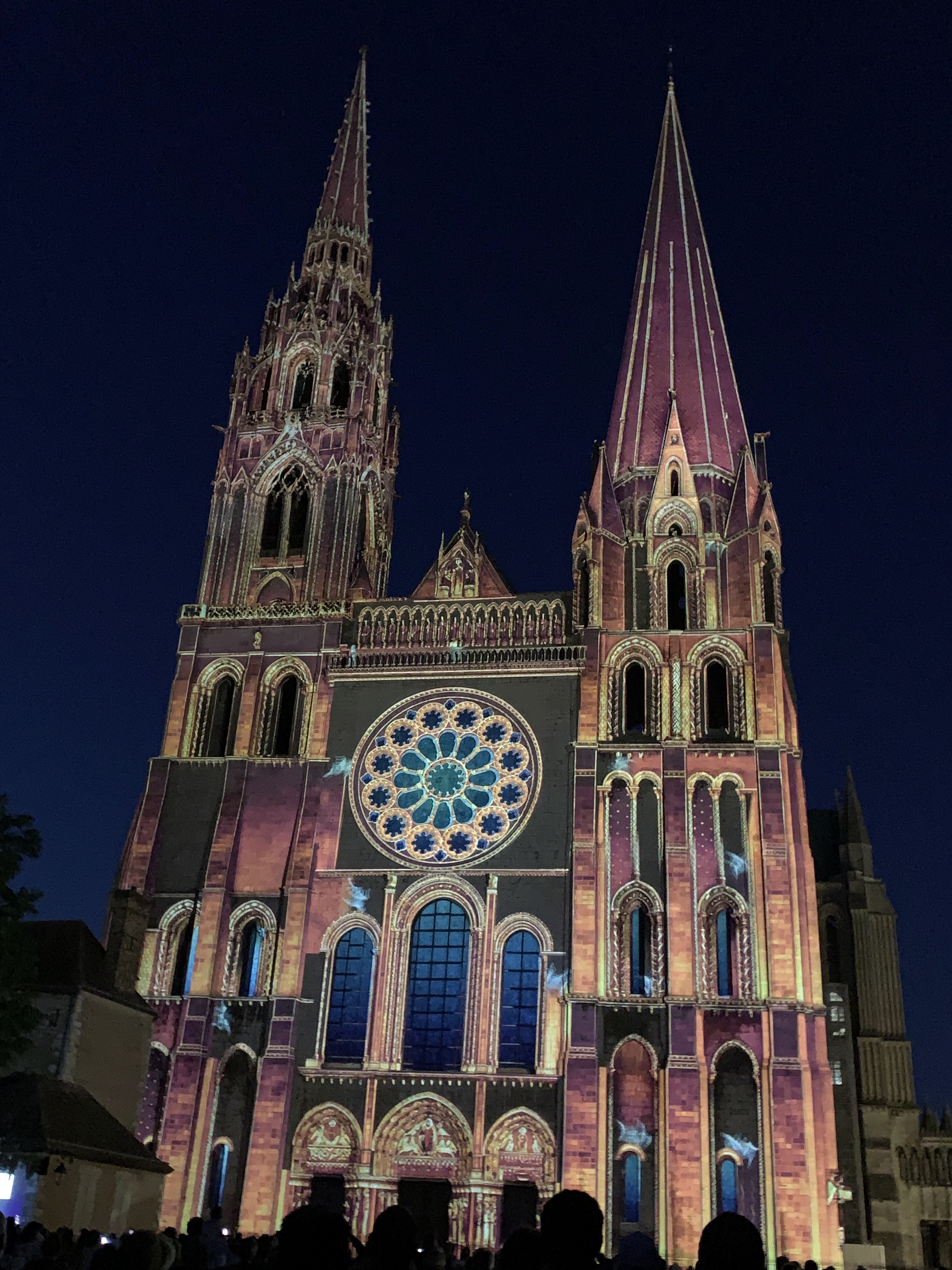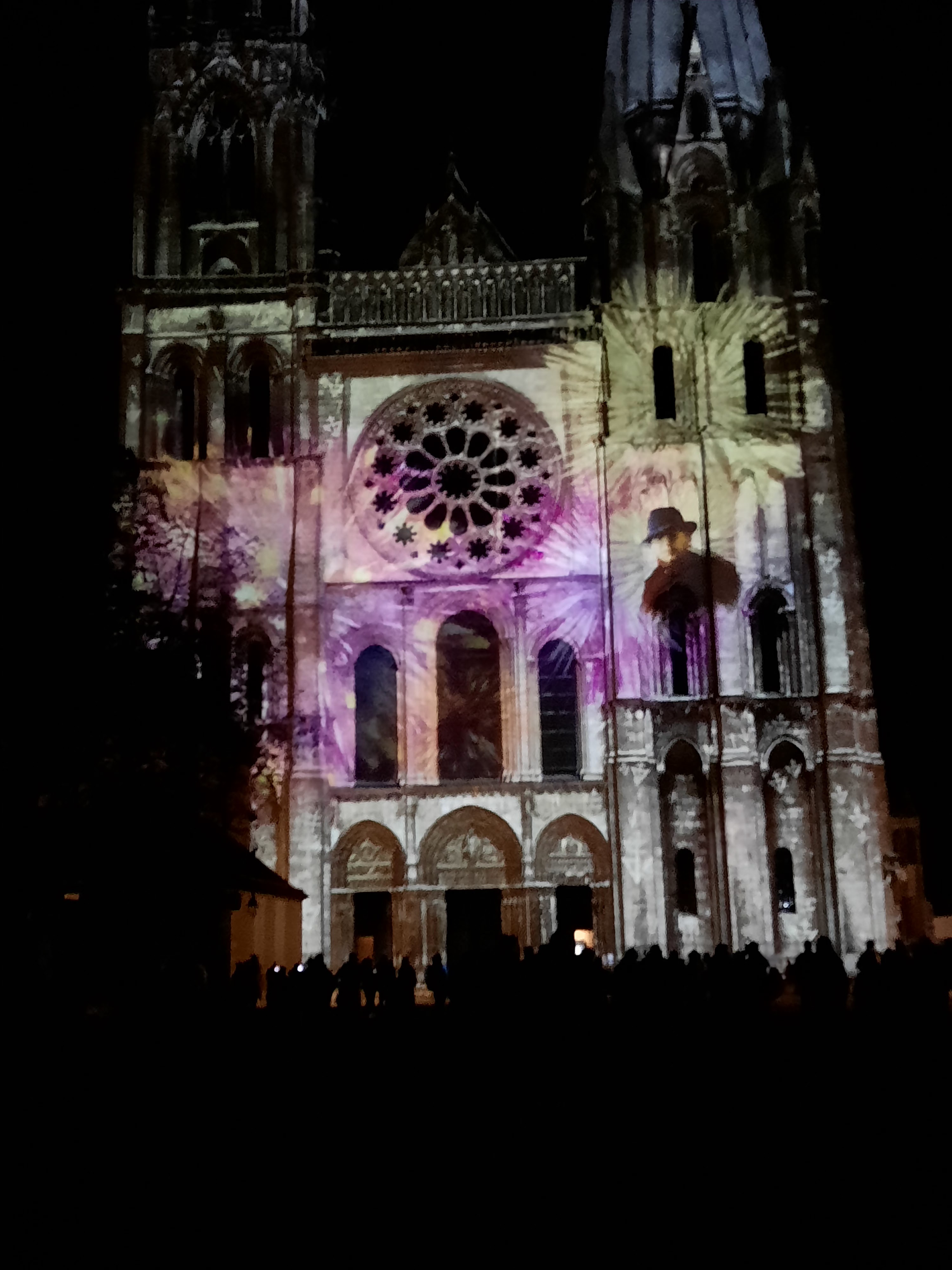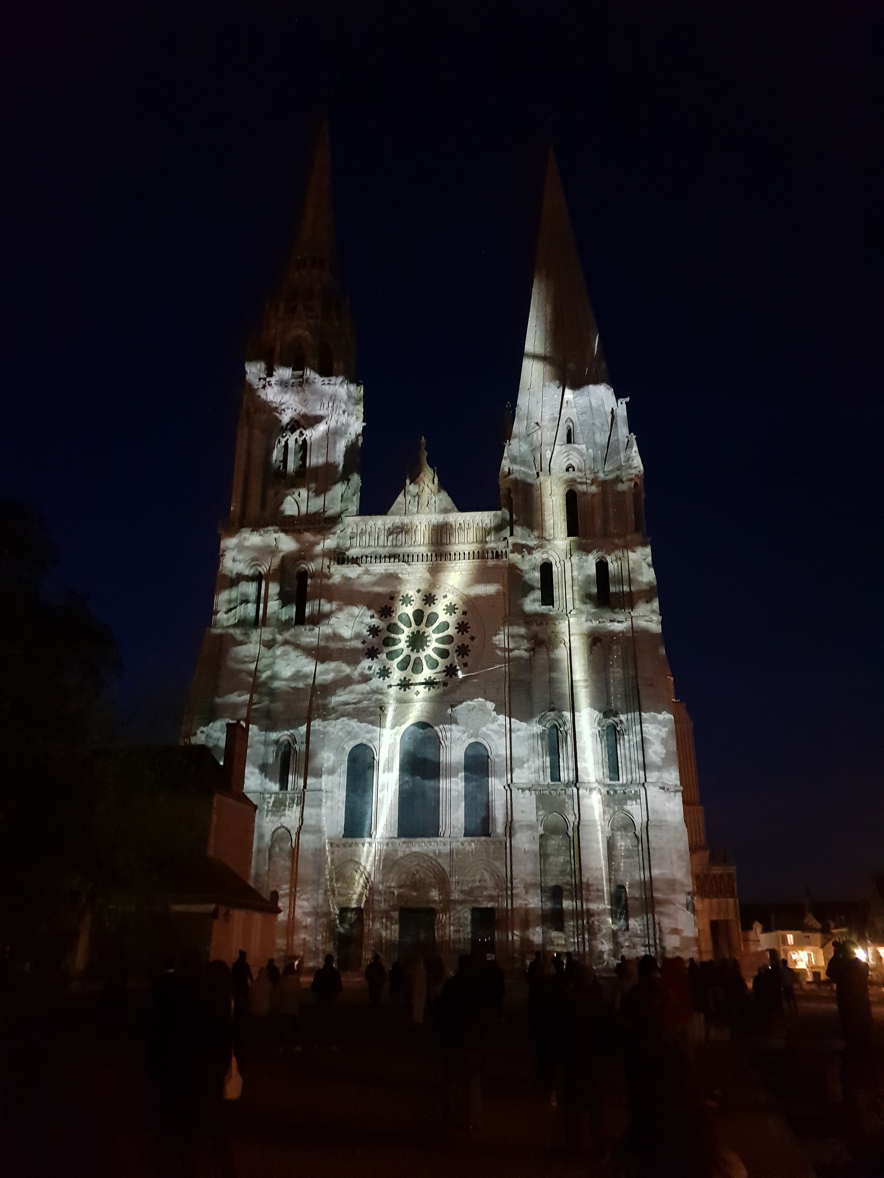 On a fini notre visite à Chartes en face de la Cathédrale pour regarder le spectacle de lumières sur sa façade. Incroyablement beau!