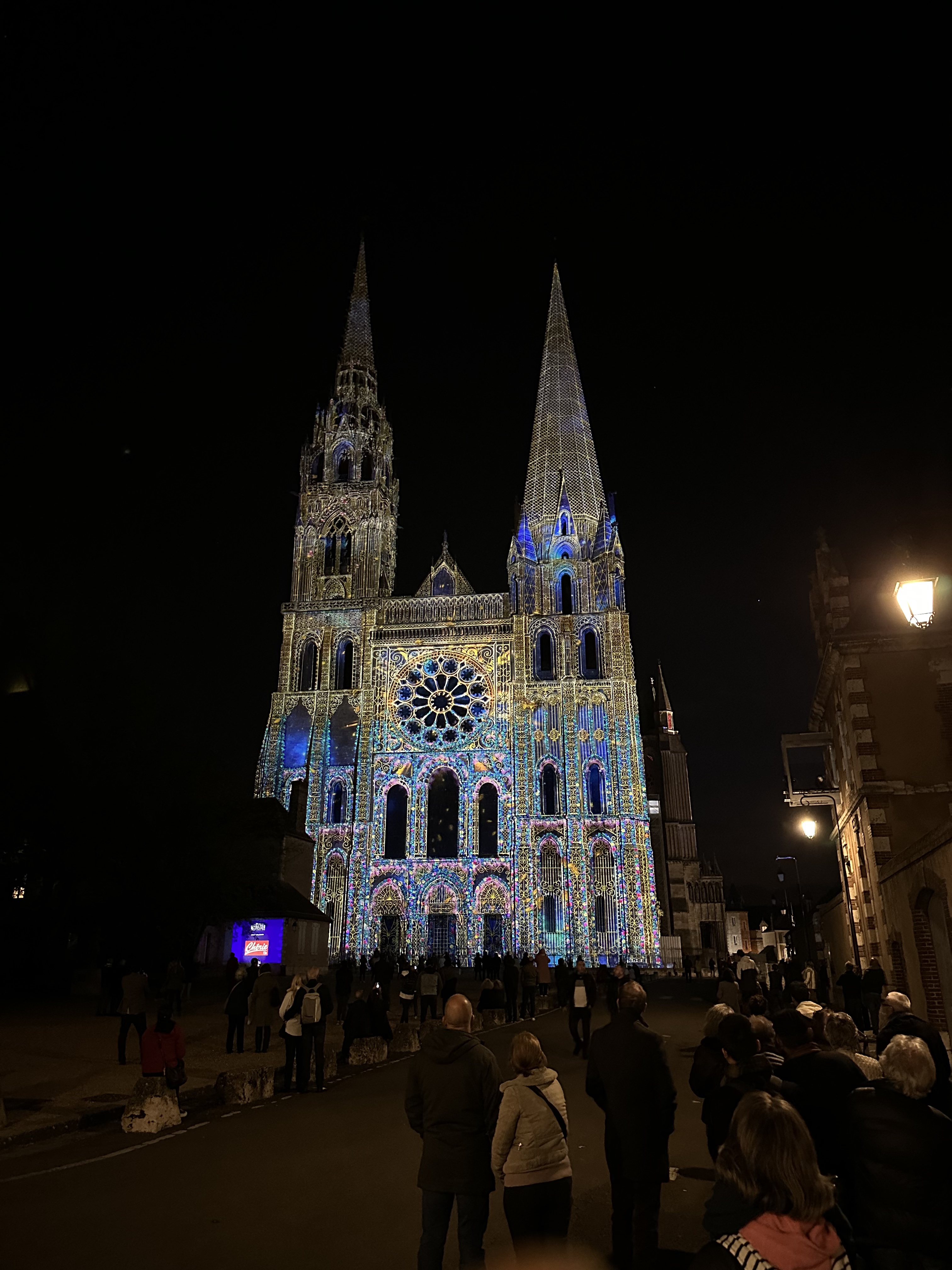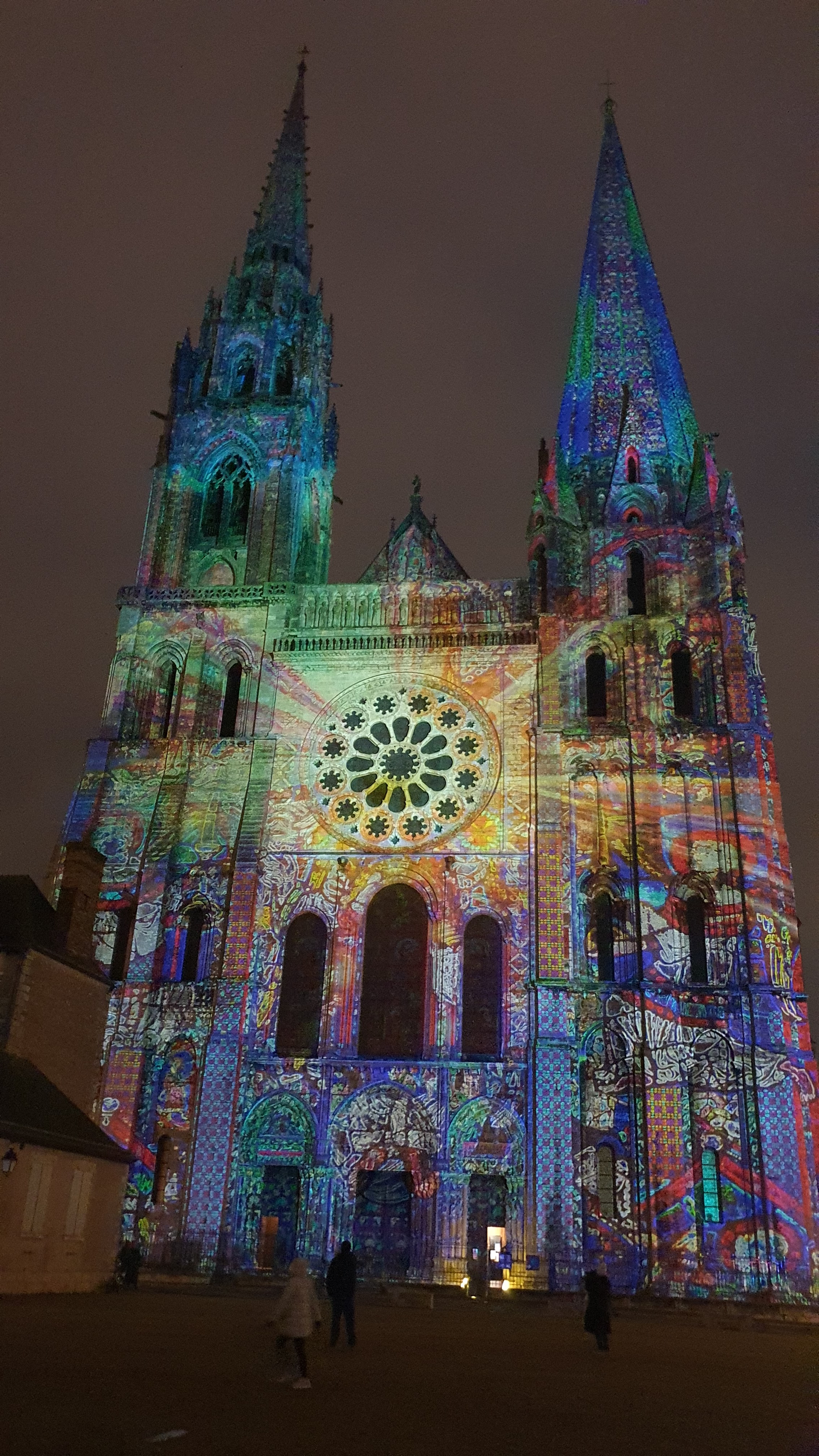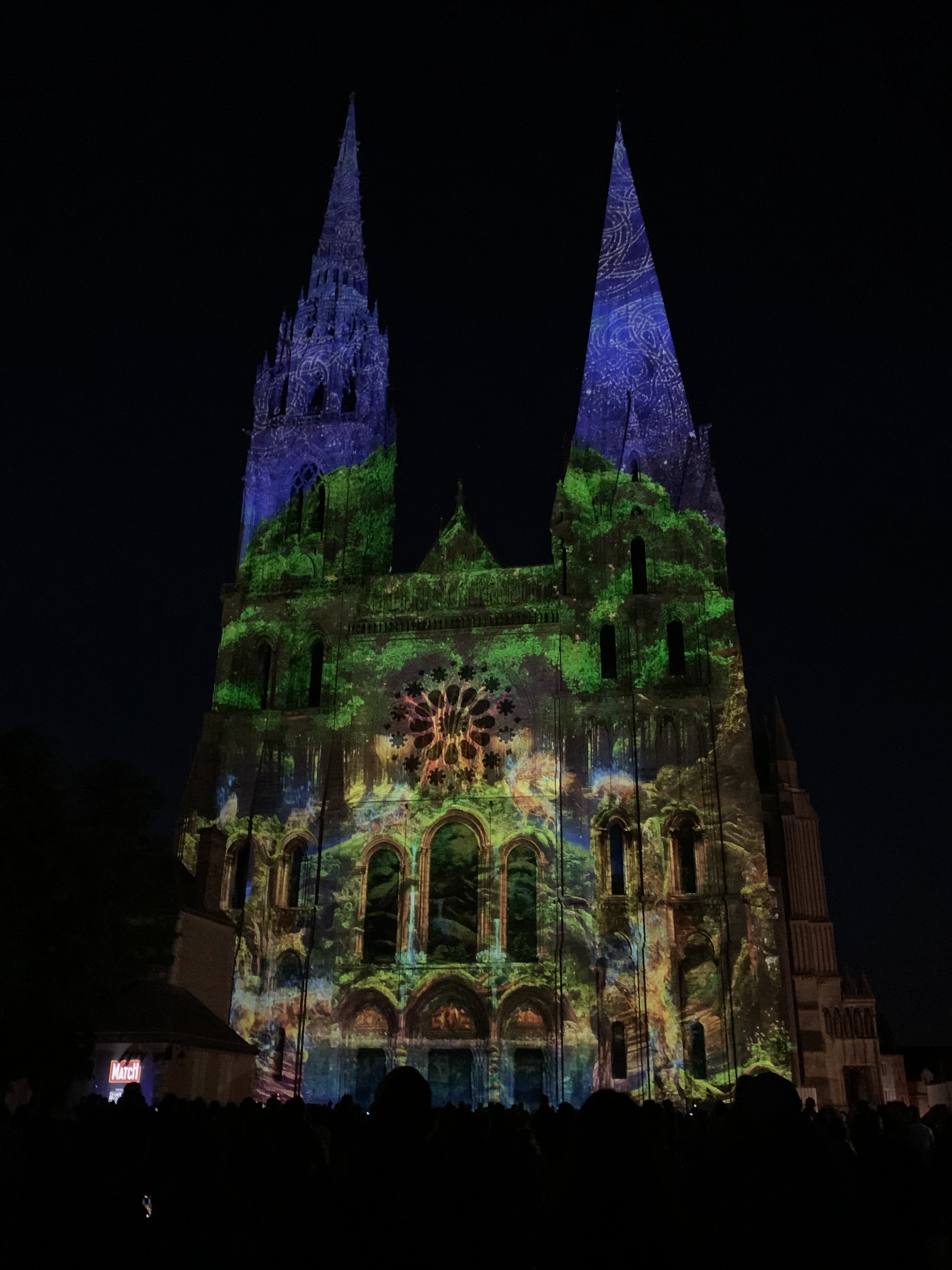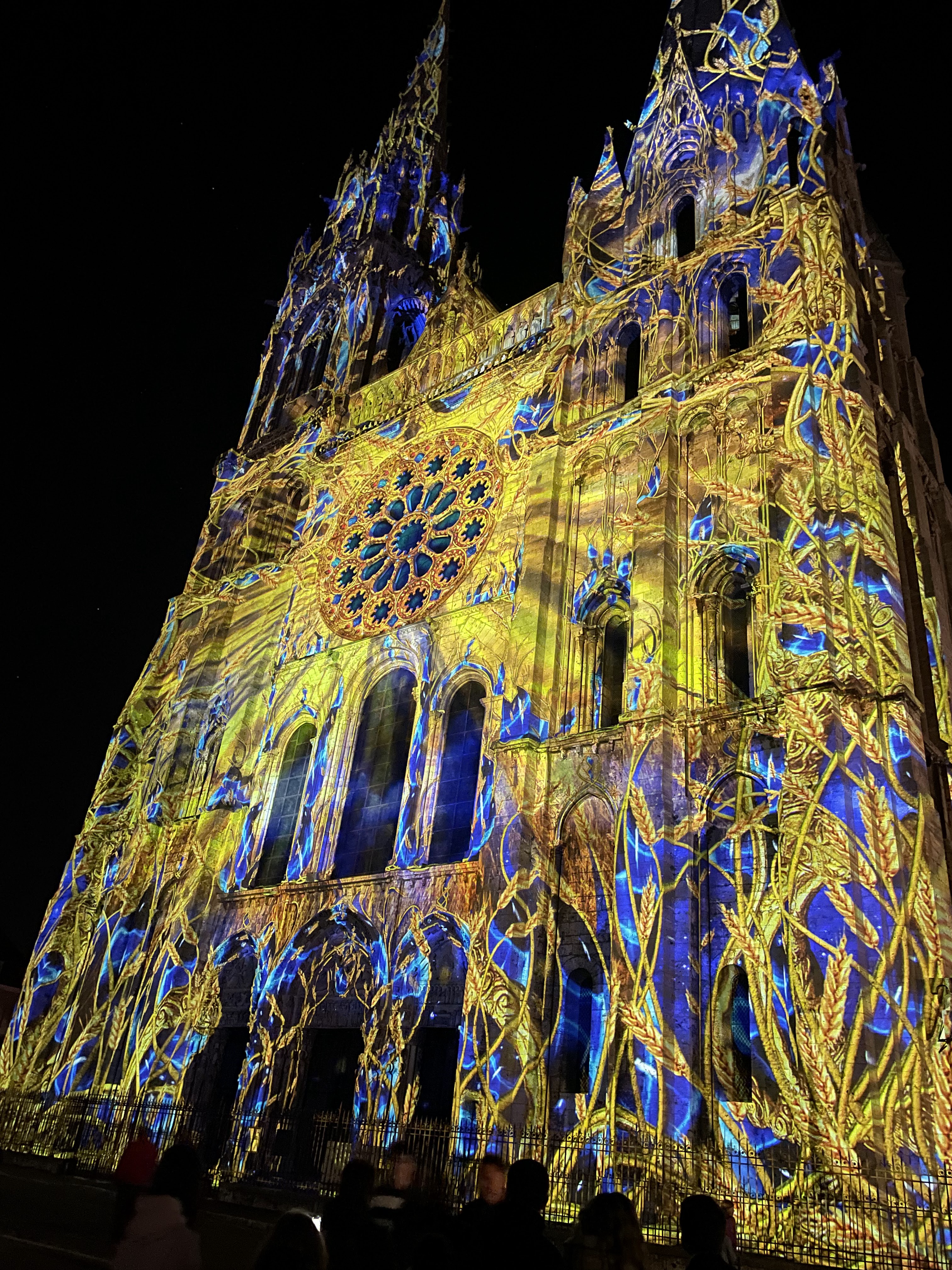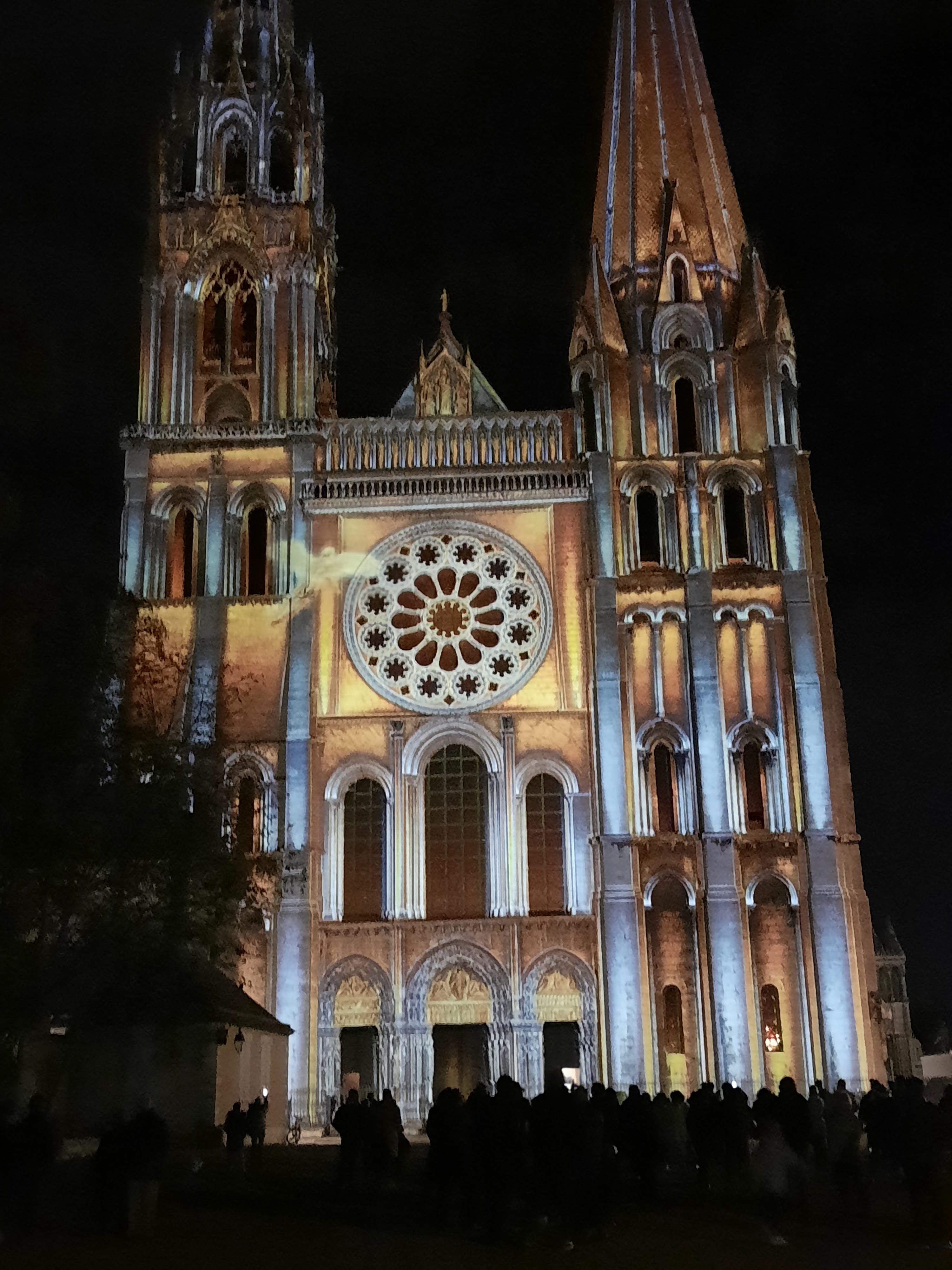 On a fini notre visite à Chartes en face de la Cathédrale pour regarder le spectacle de lumières sur sa façade. Incroyablement beau!