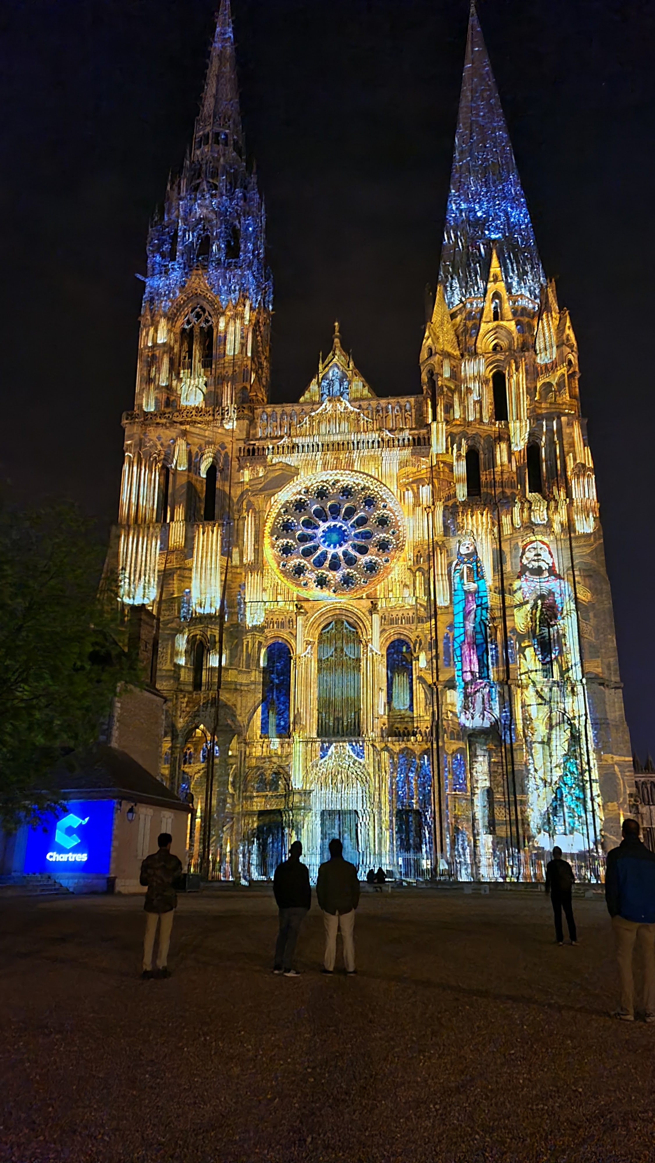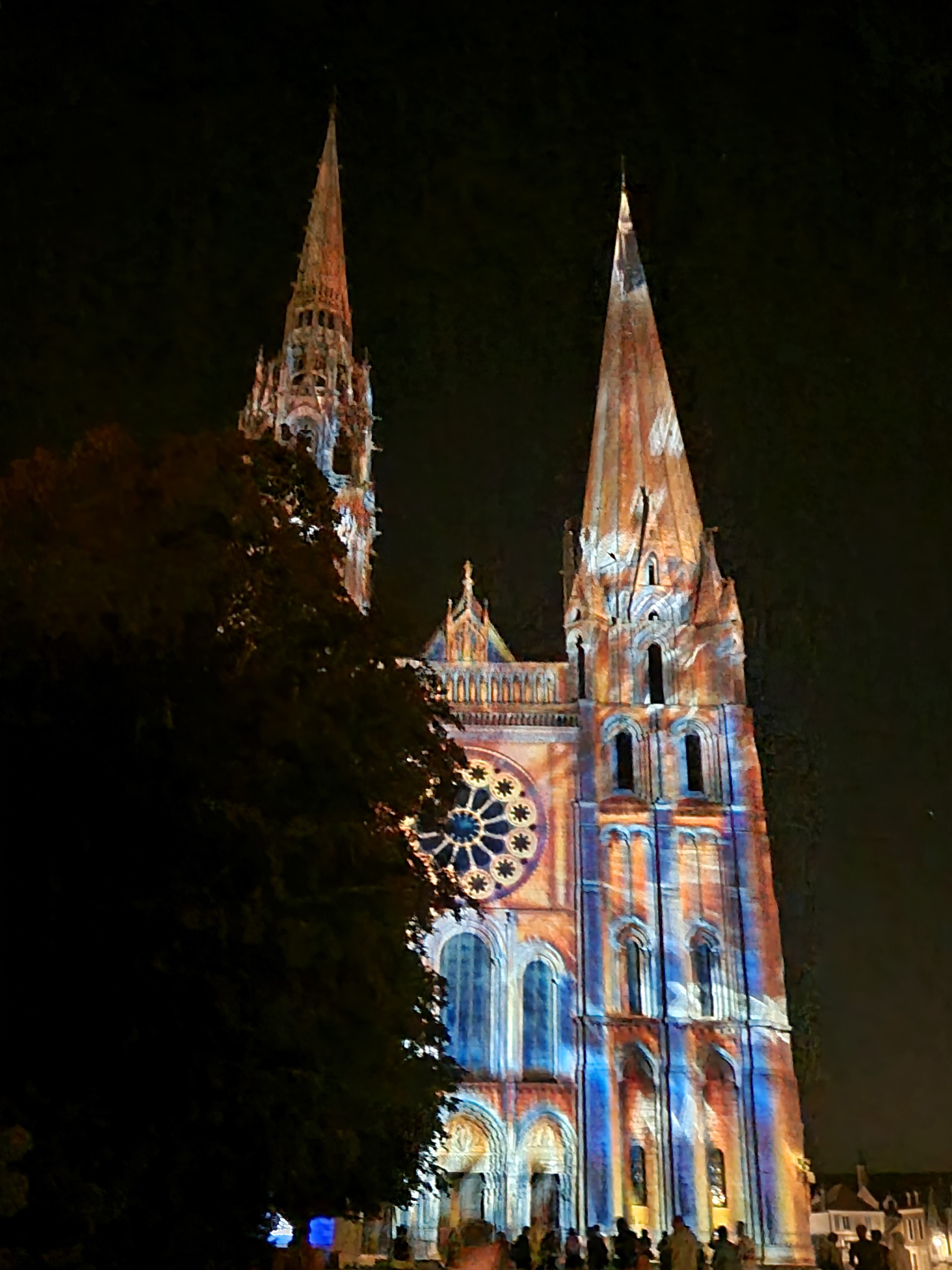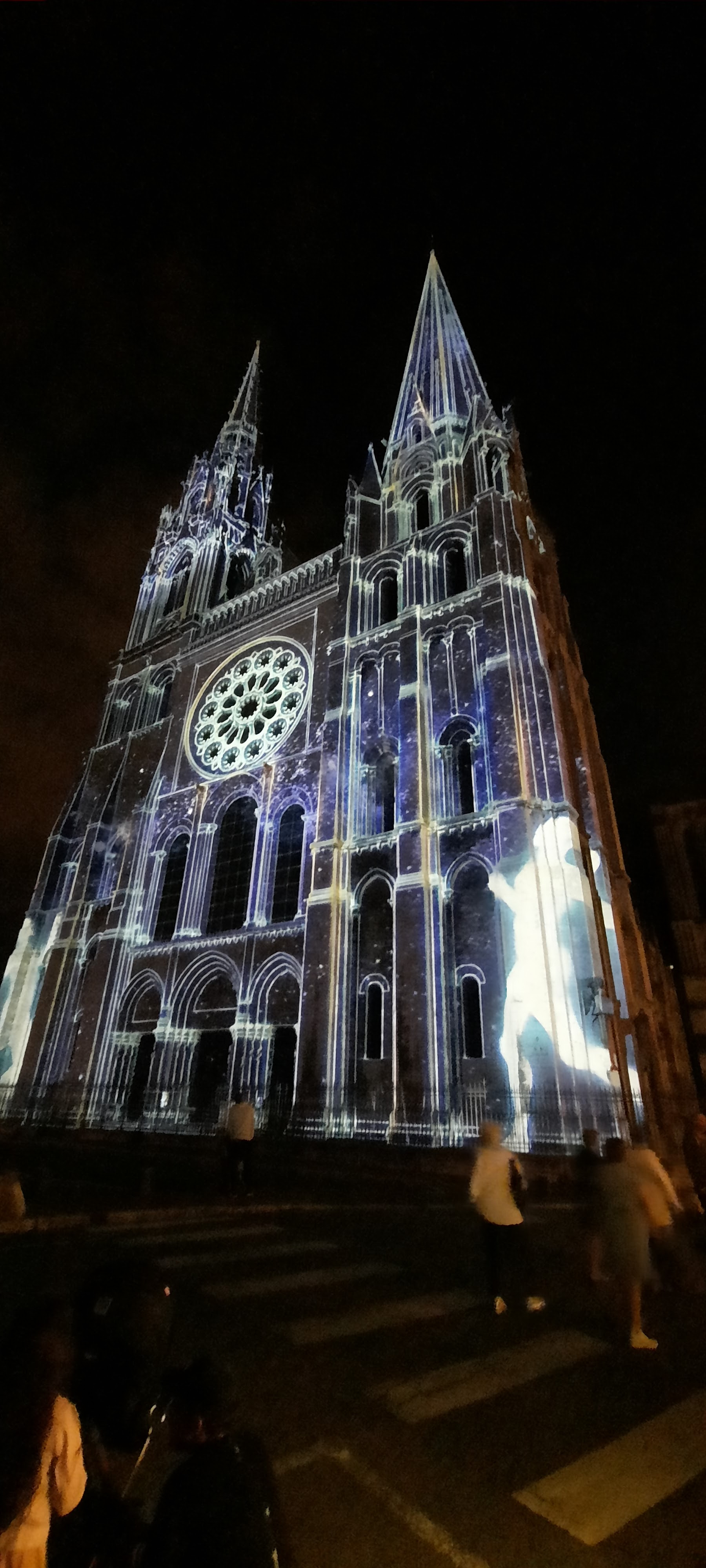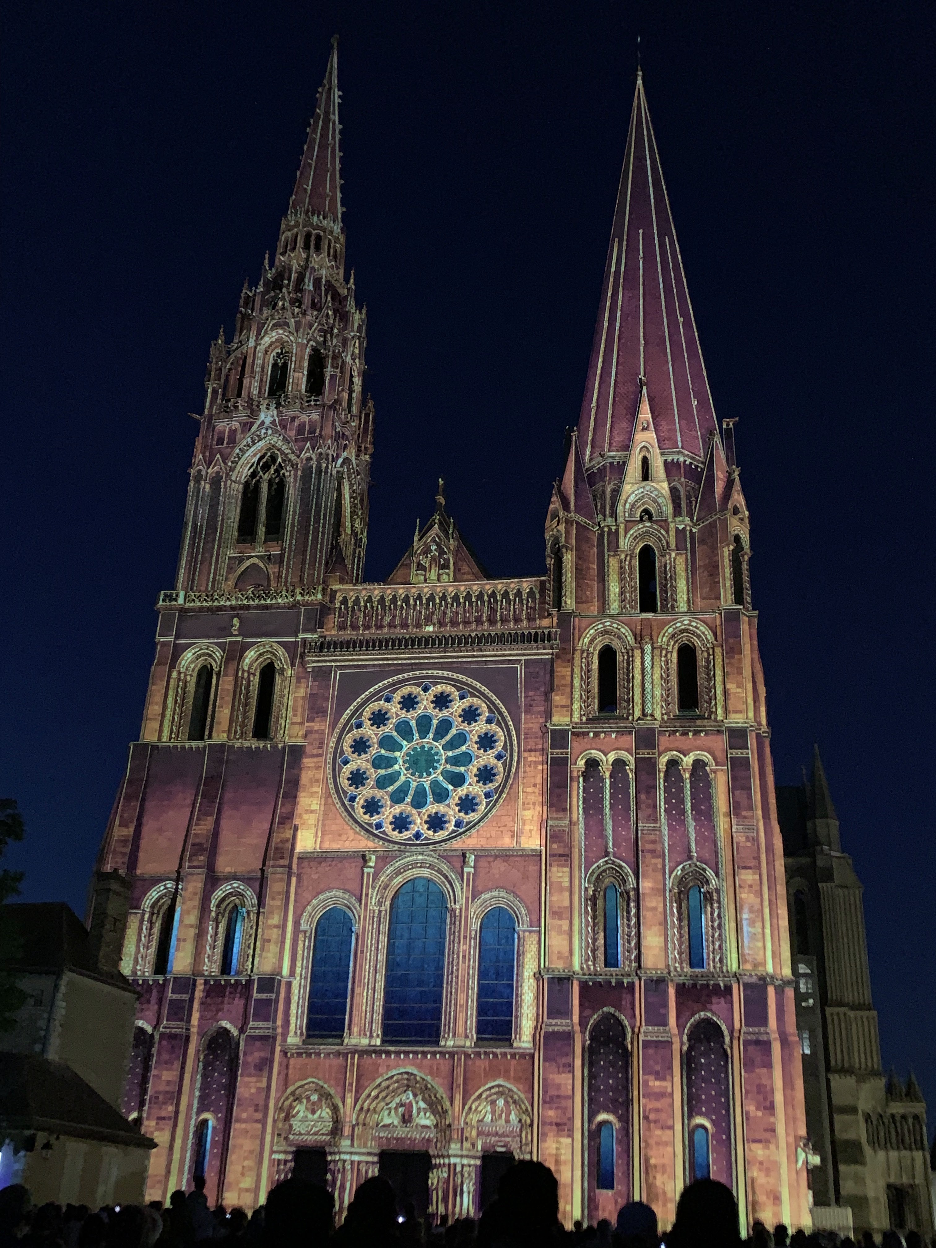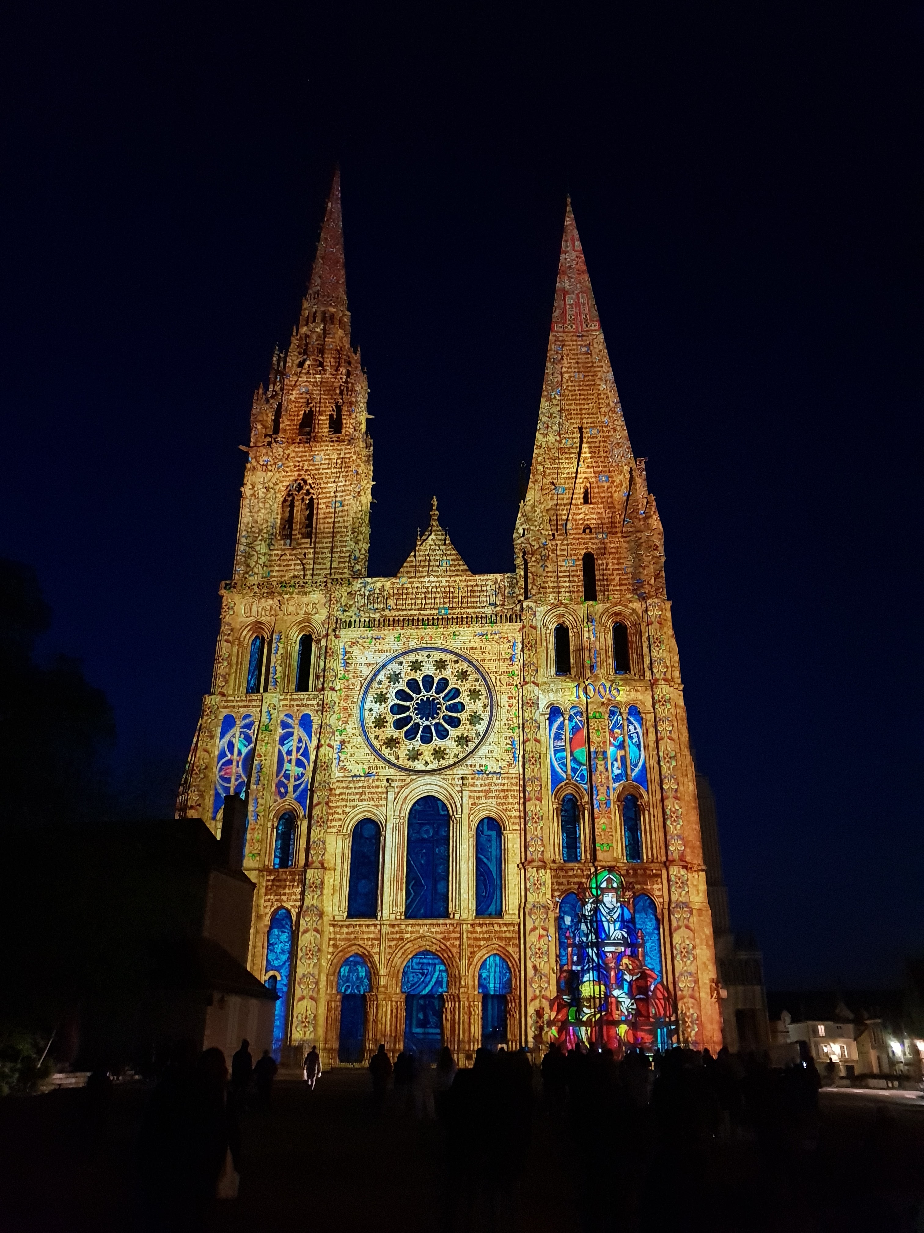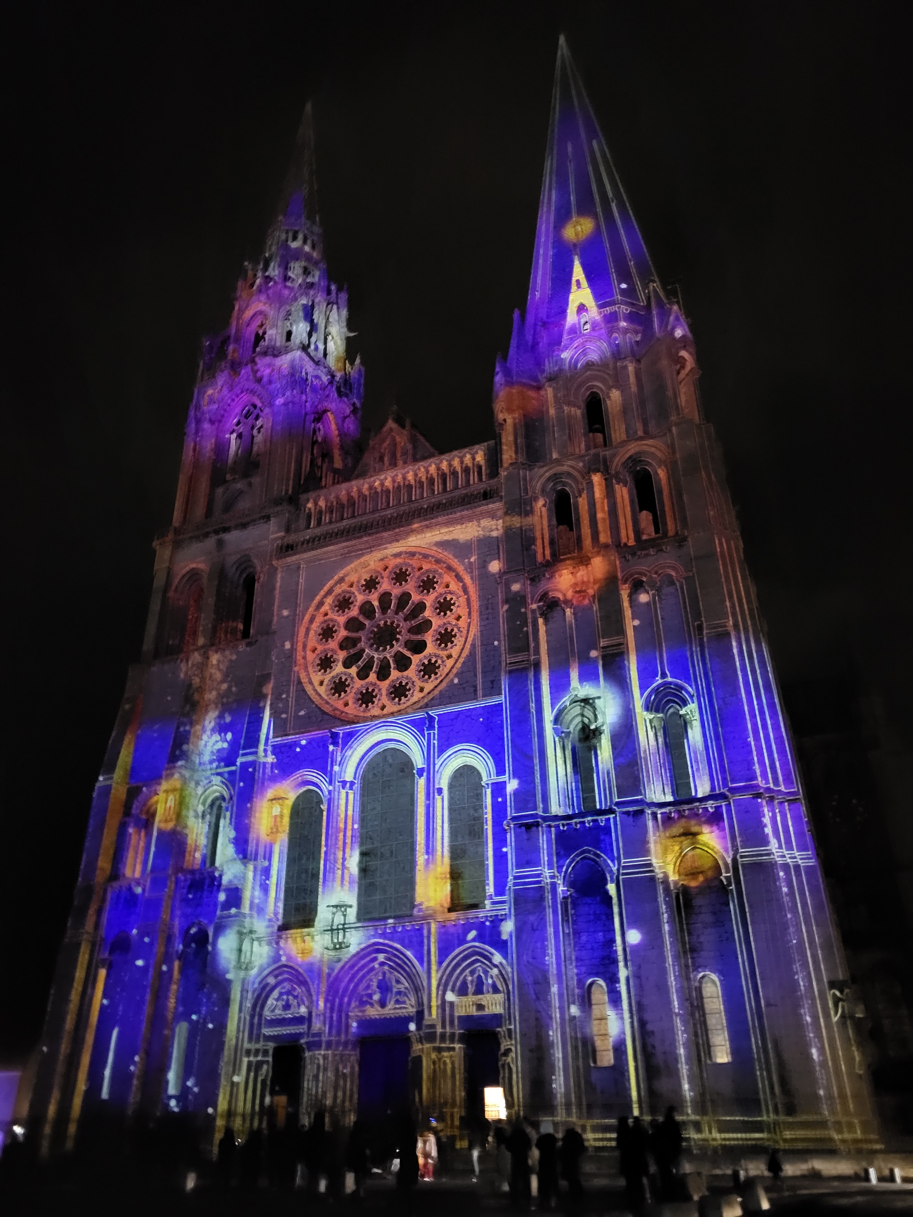 On a fini notre visite à Chartes en face de la Cathédrale pour regarder le spectacle de lumières sur sa façade. Incroyablement beau!