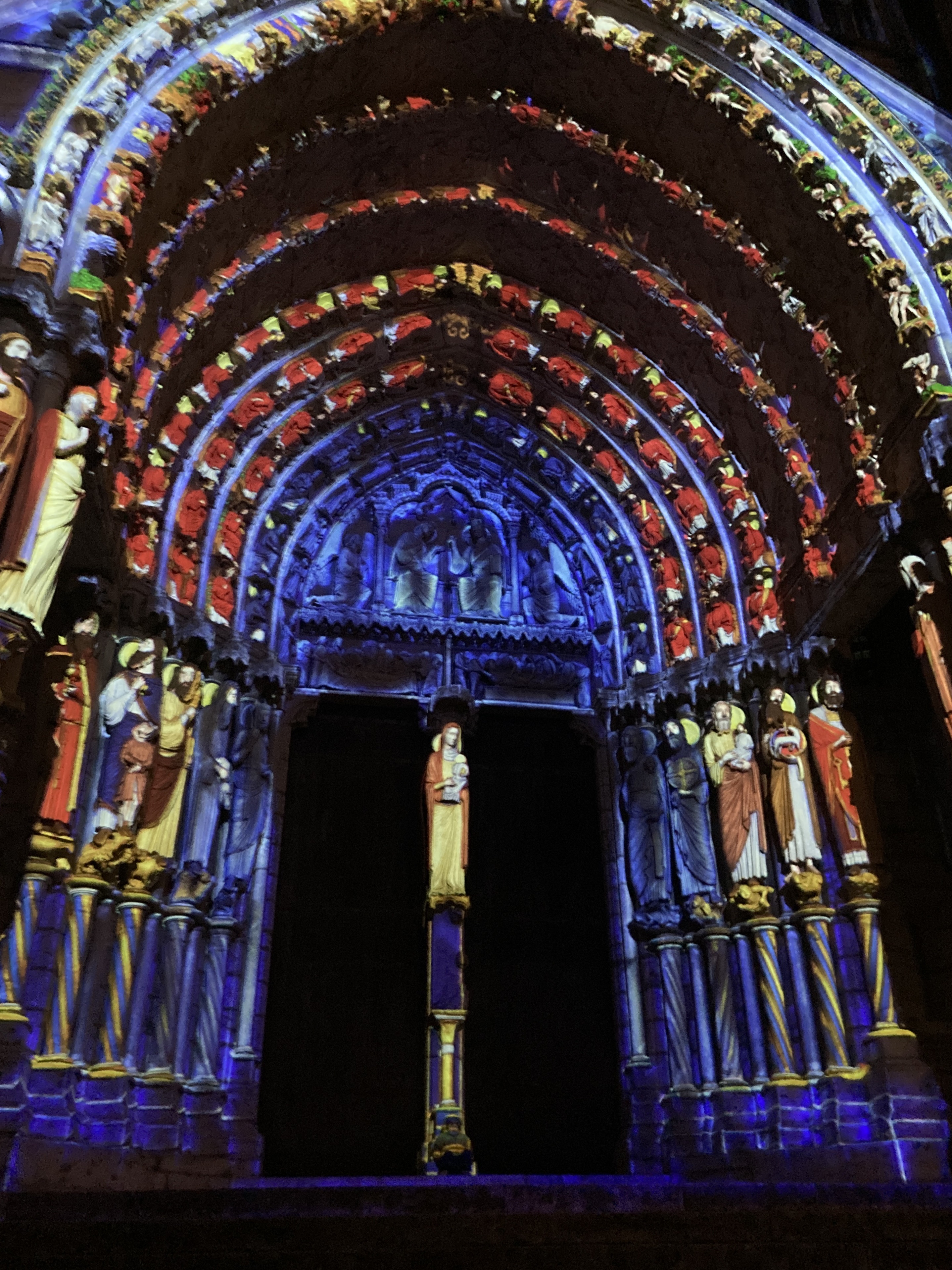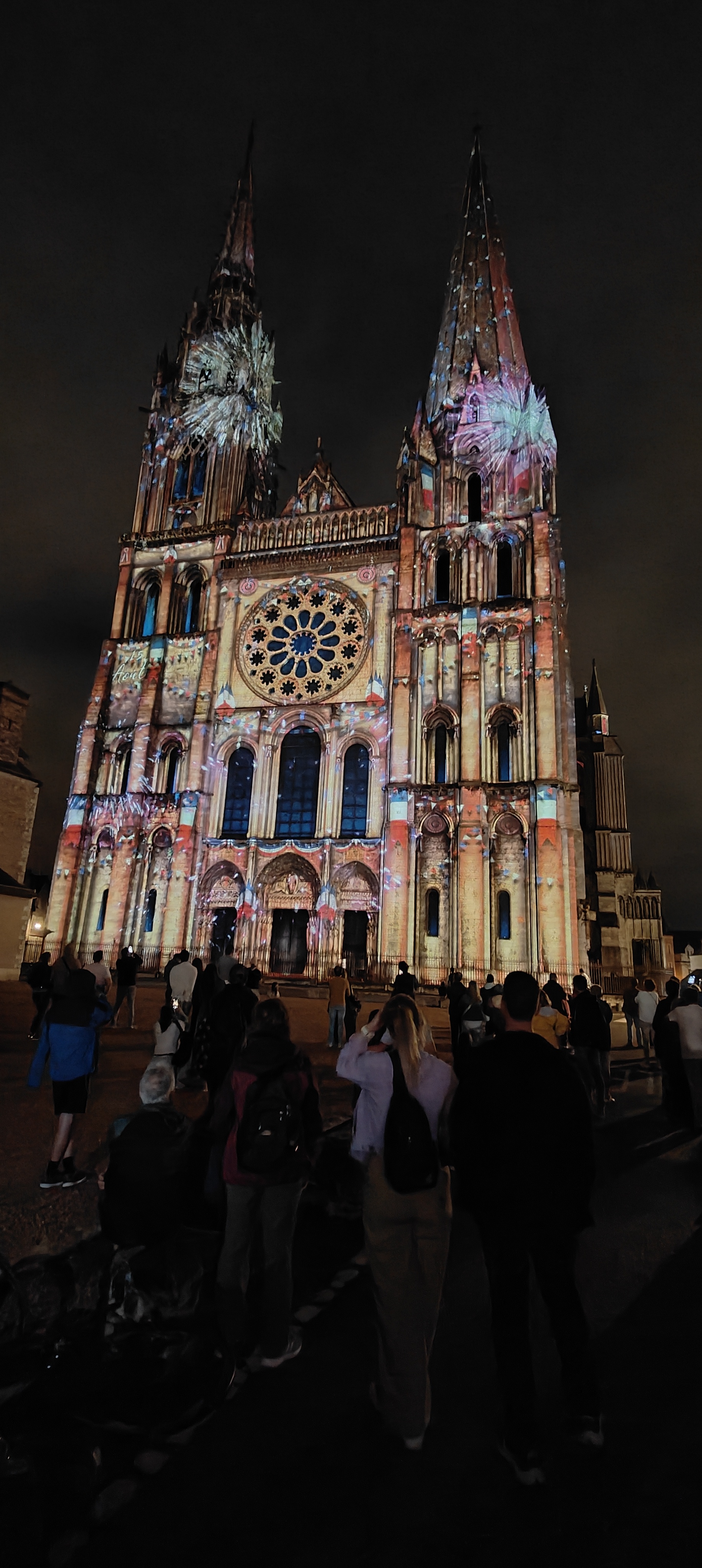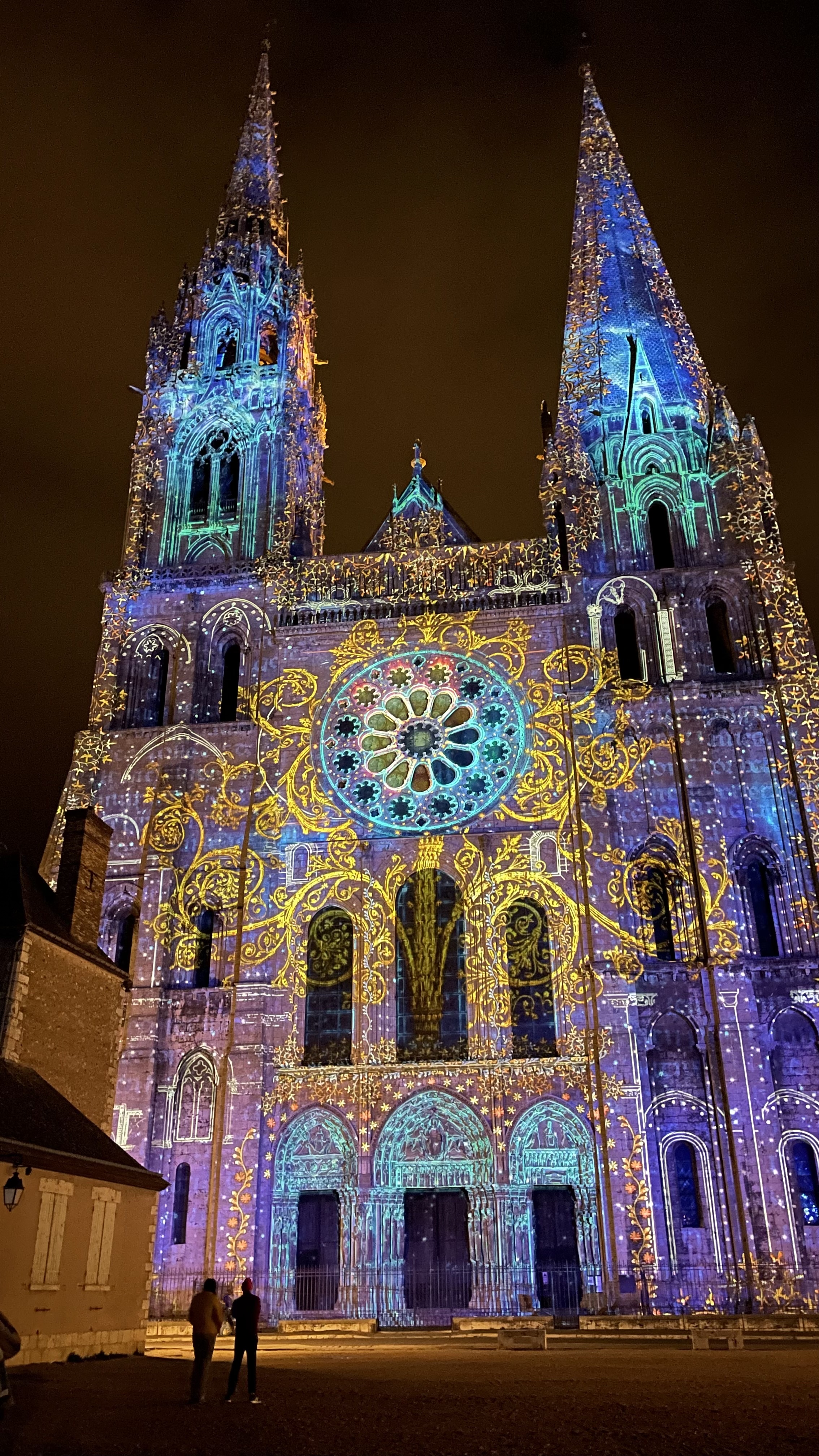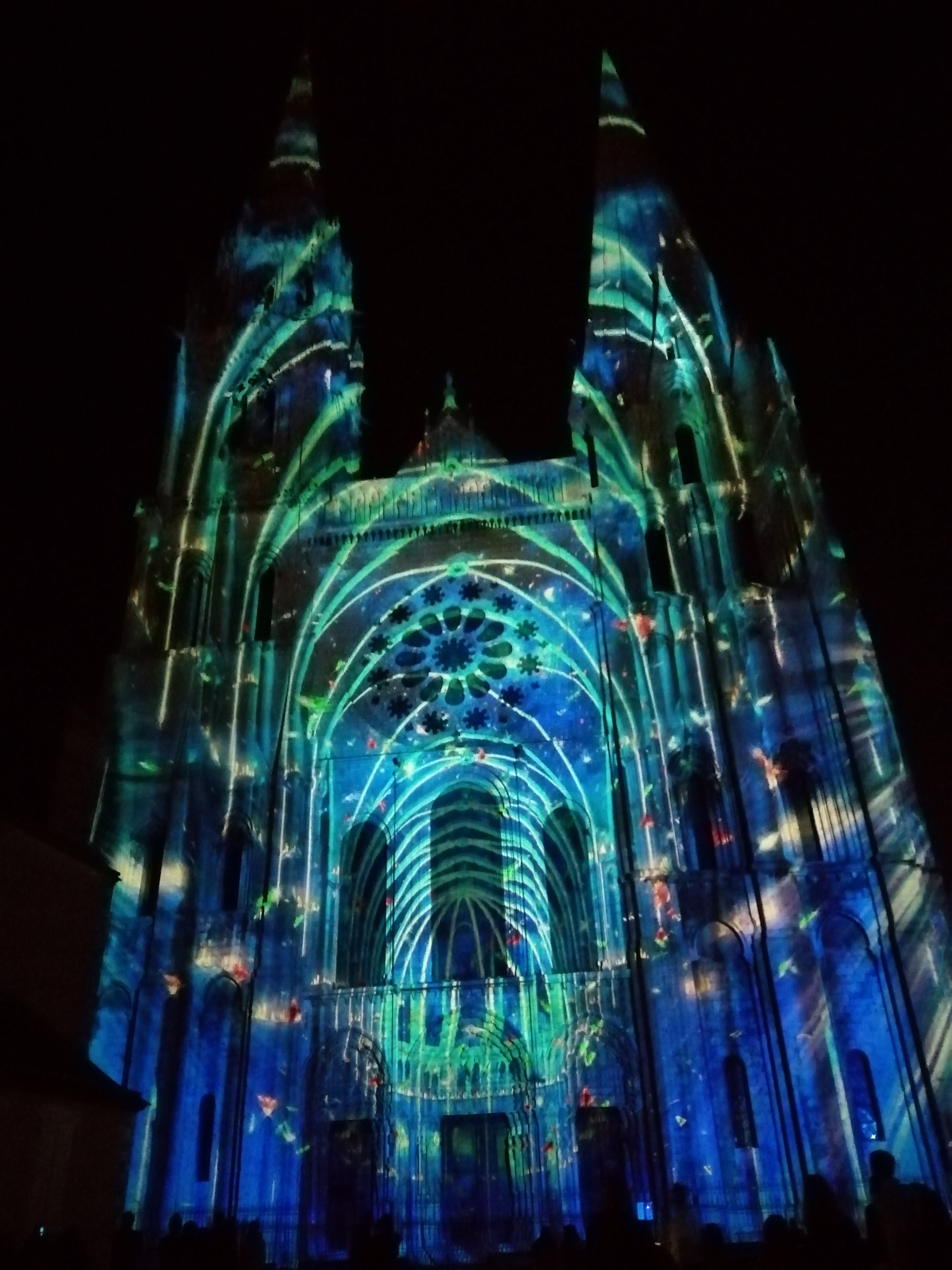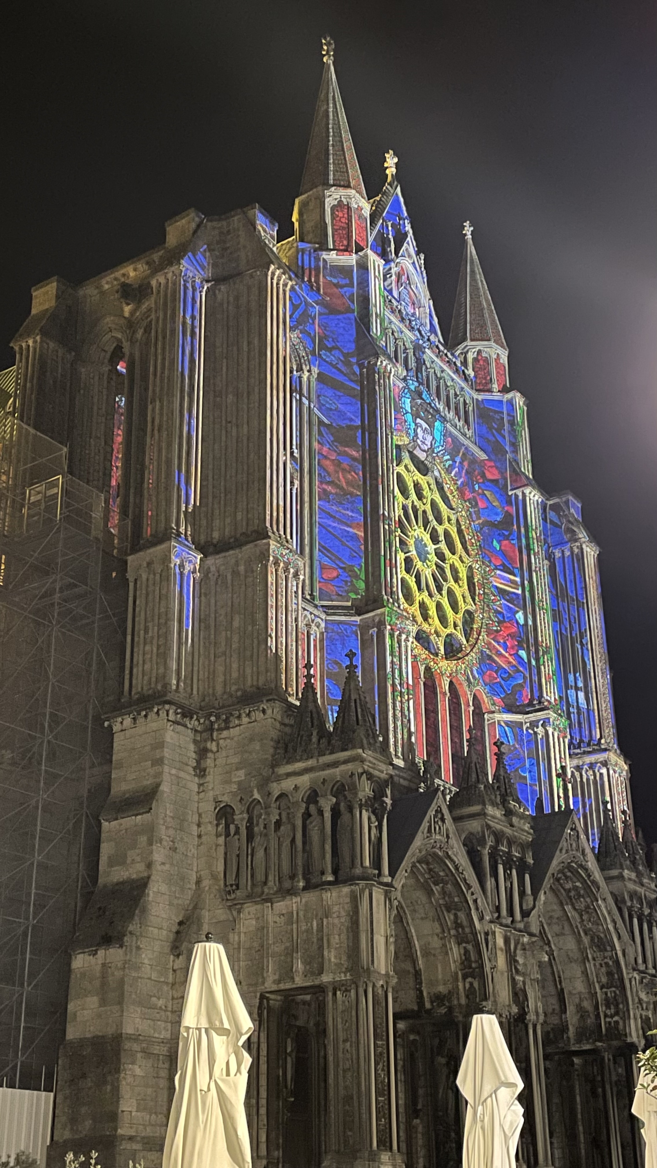 On a fini notre visite à Chartes en face de la Cathédrale pour regarder le spectacle de lumières sur sa façade. Incroyablement beau!