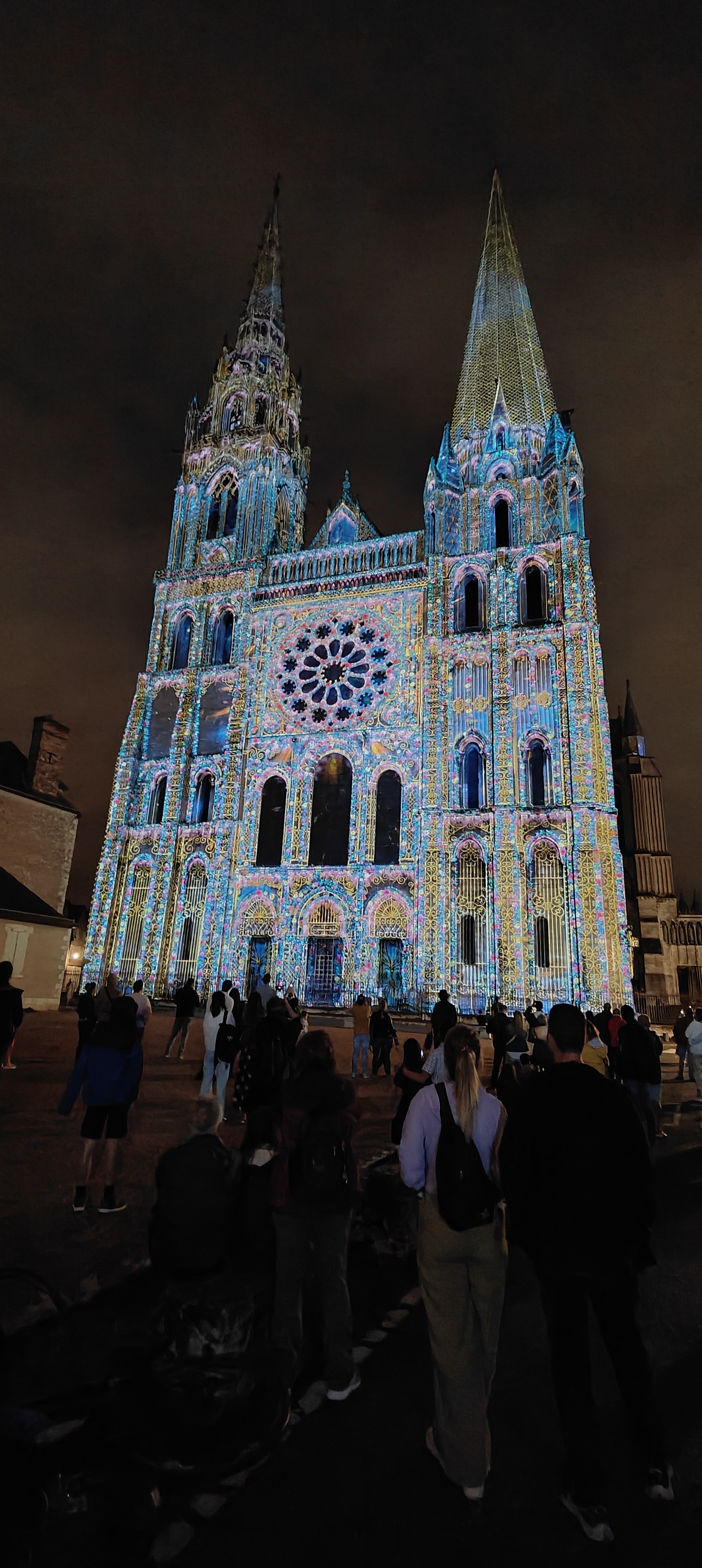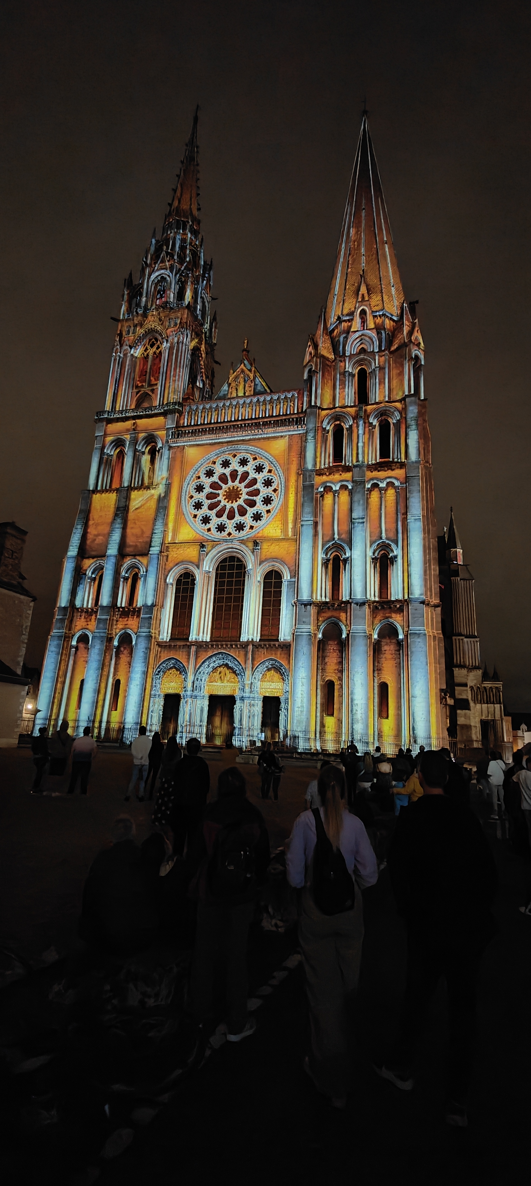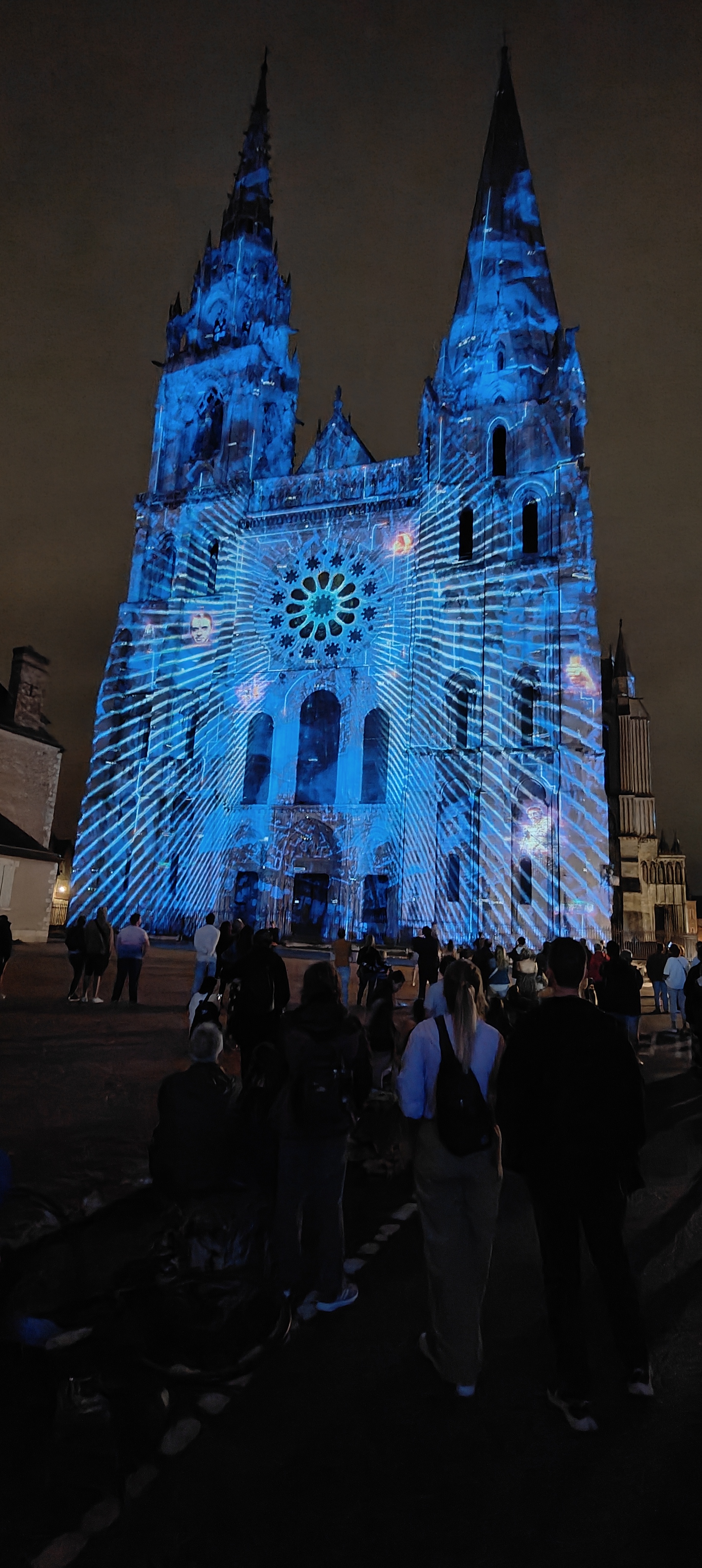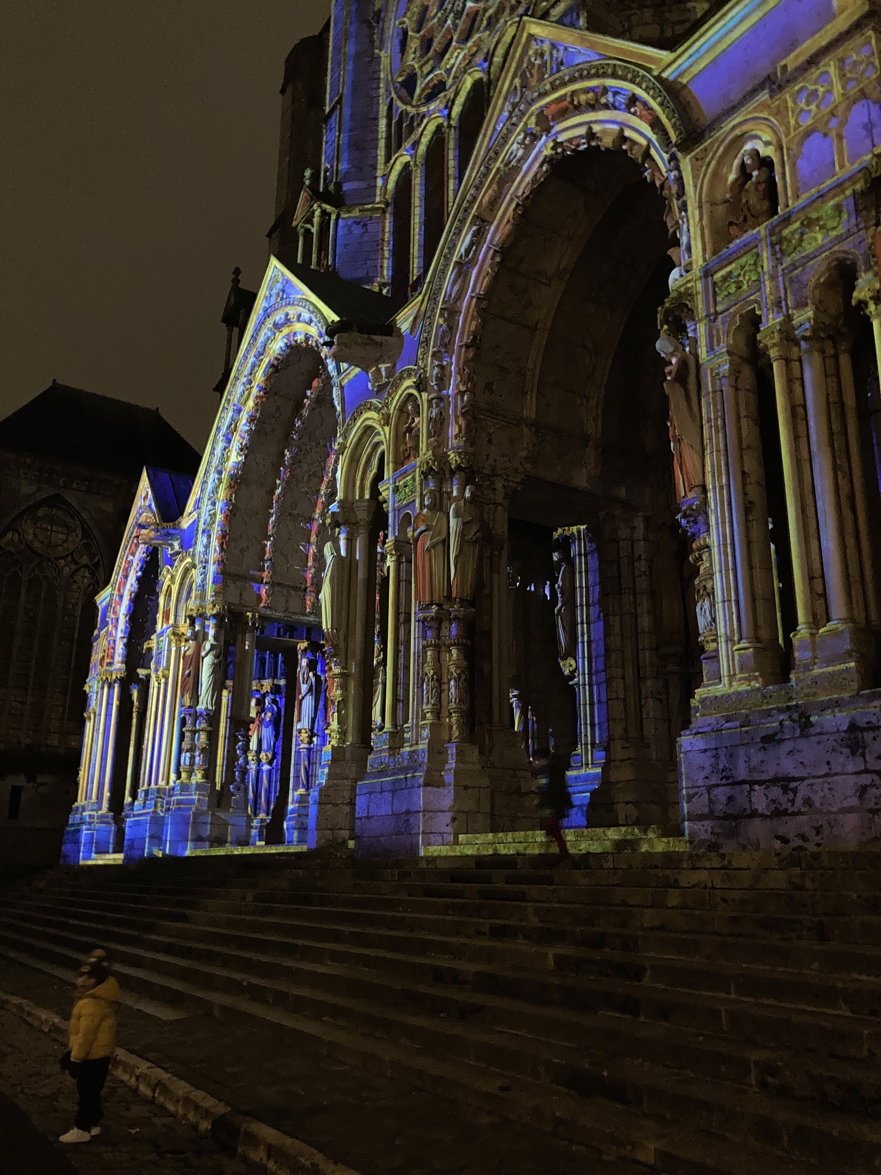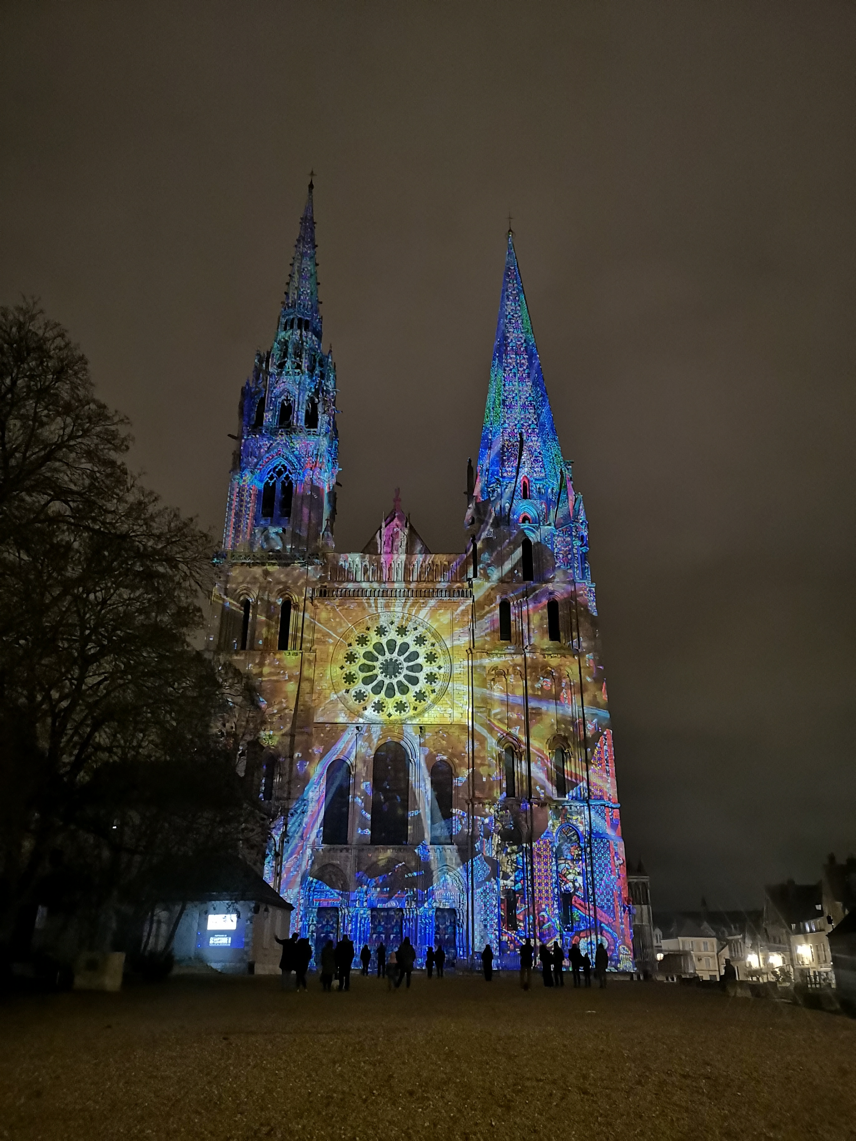 On a fini notre visite à Chartes en face de la Cathédrale pour regarder le spectacle de lumières sur sa façade. Incroyablement beau!