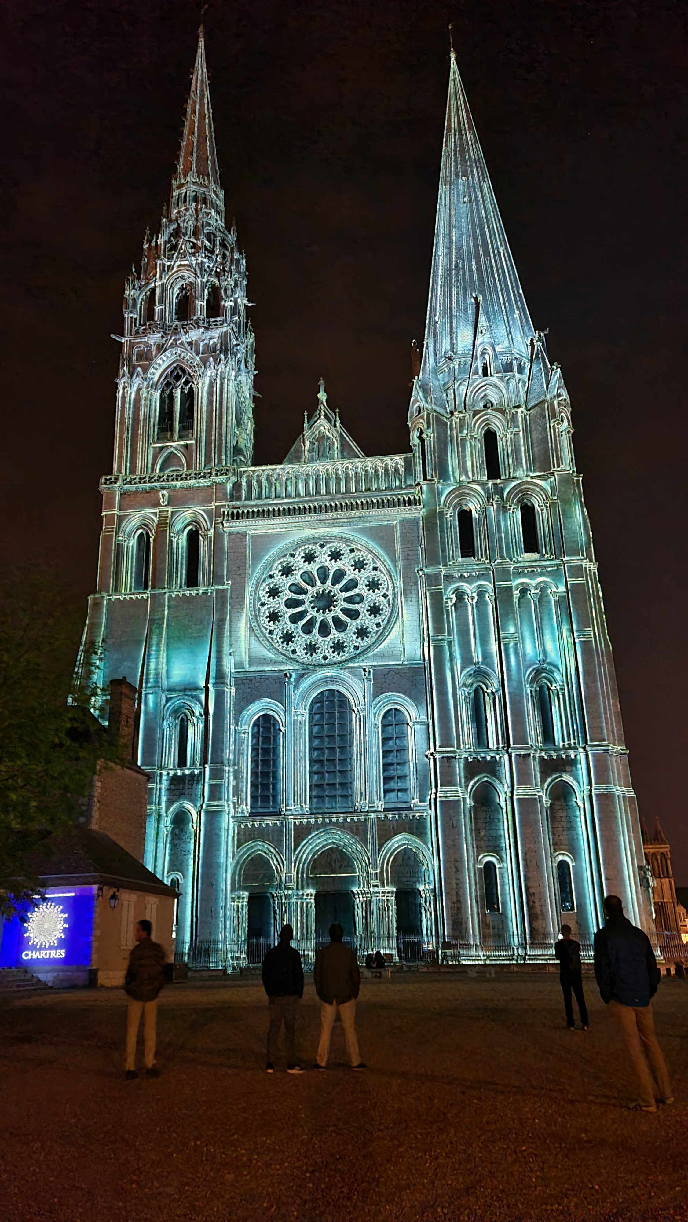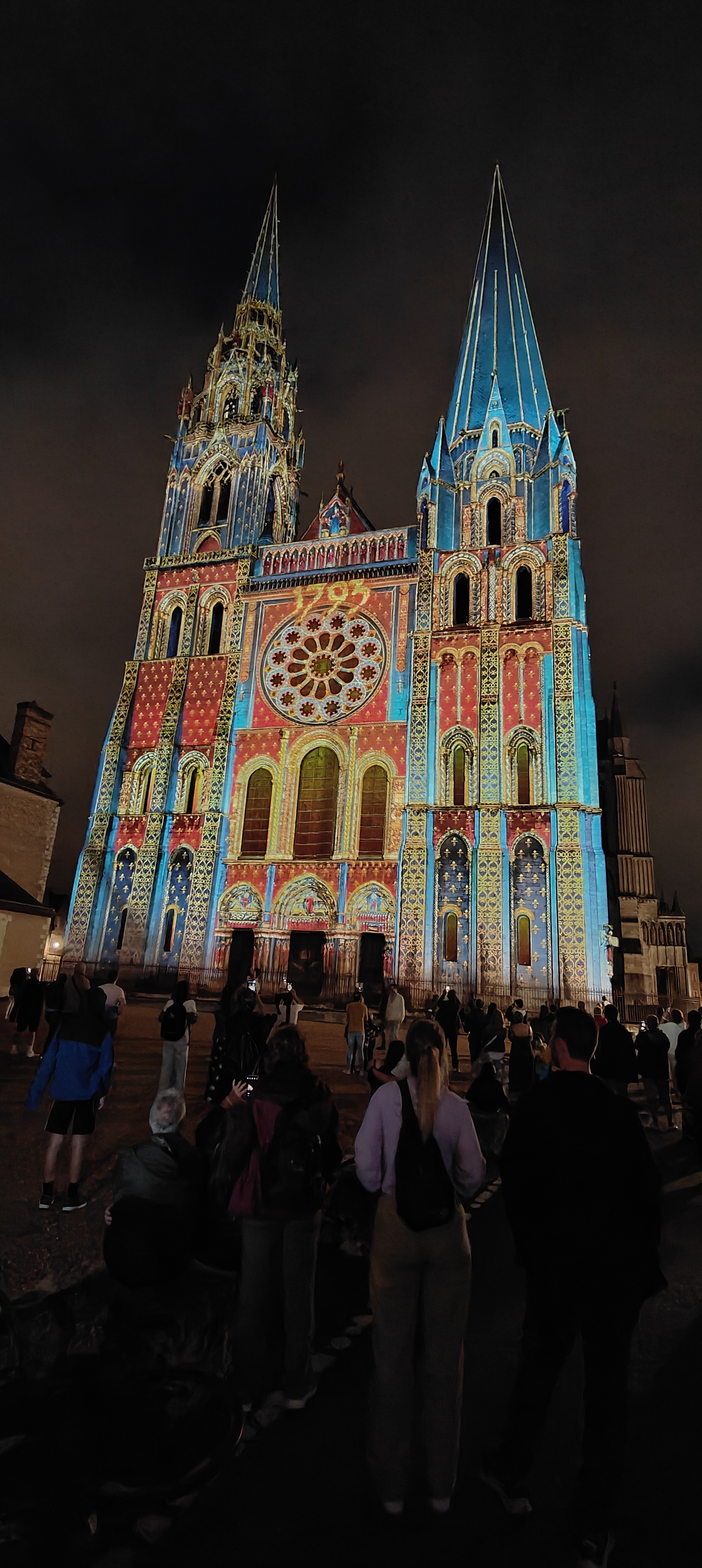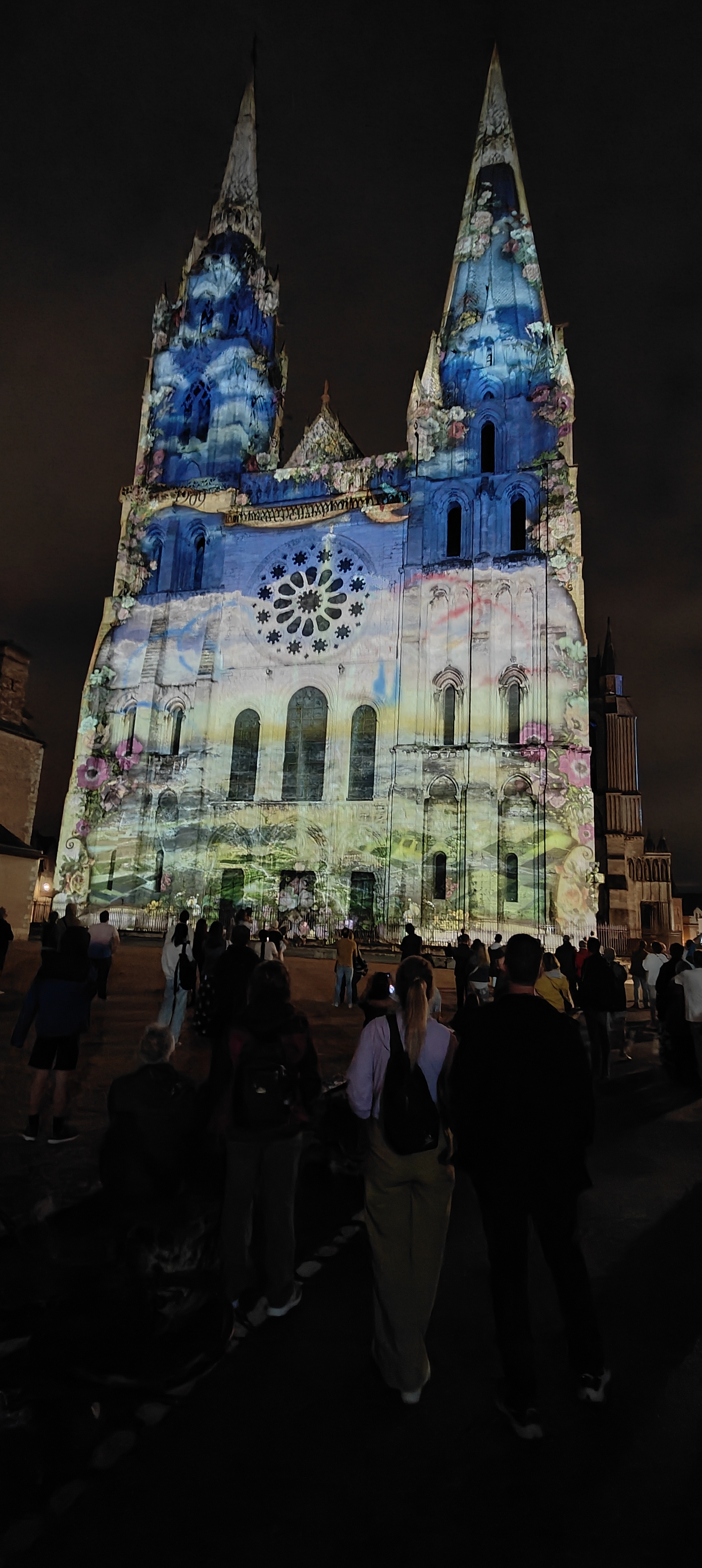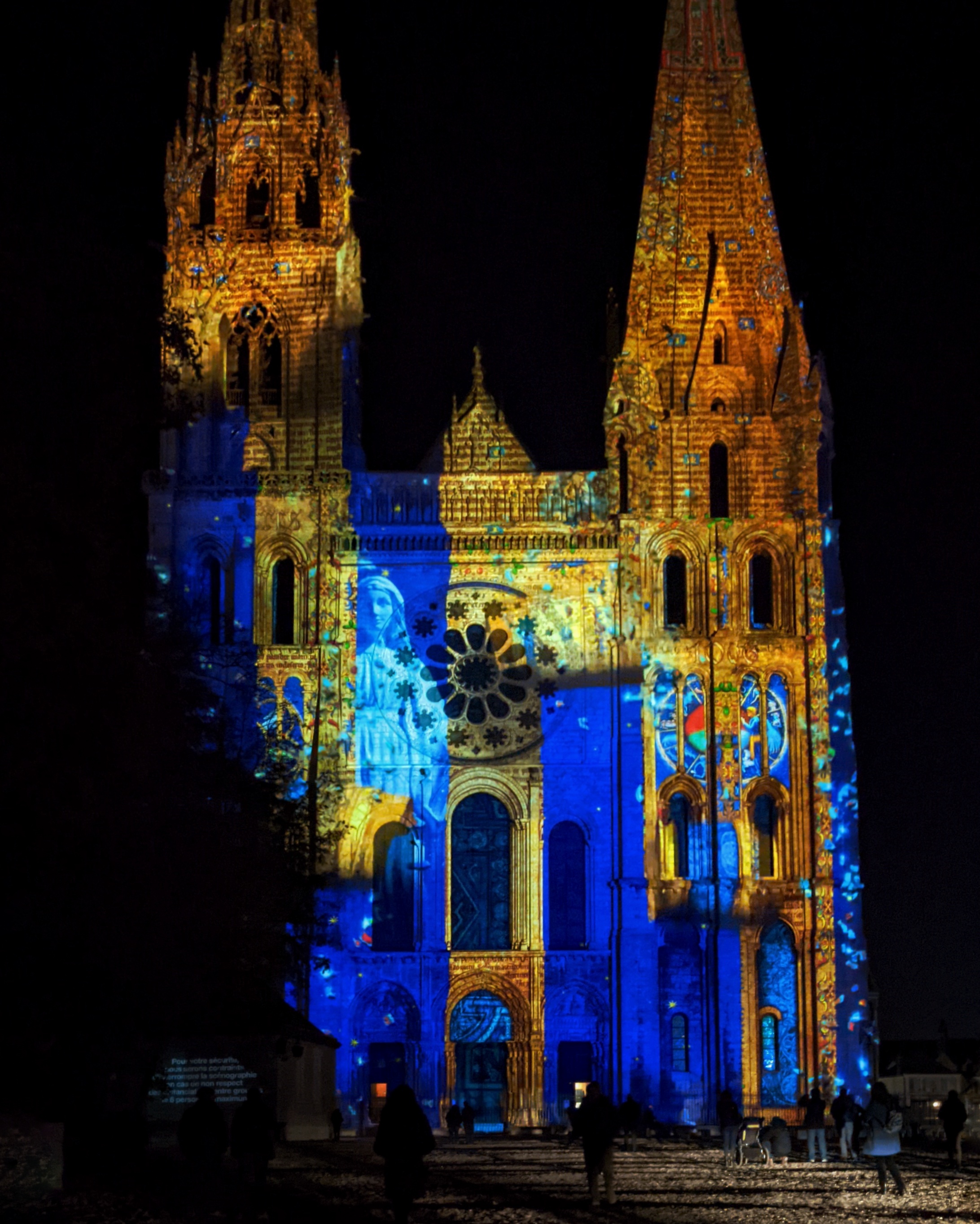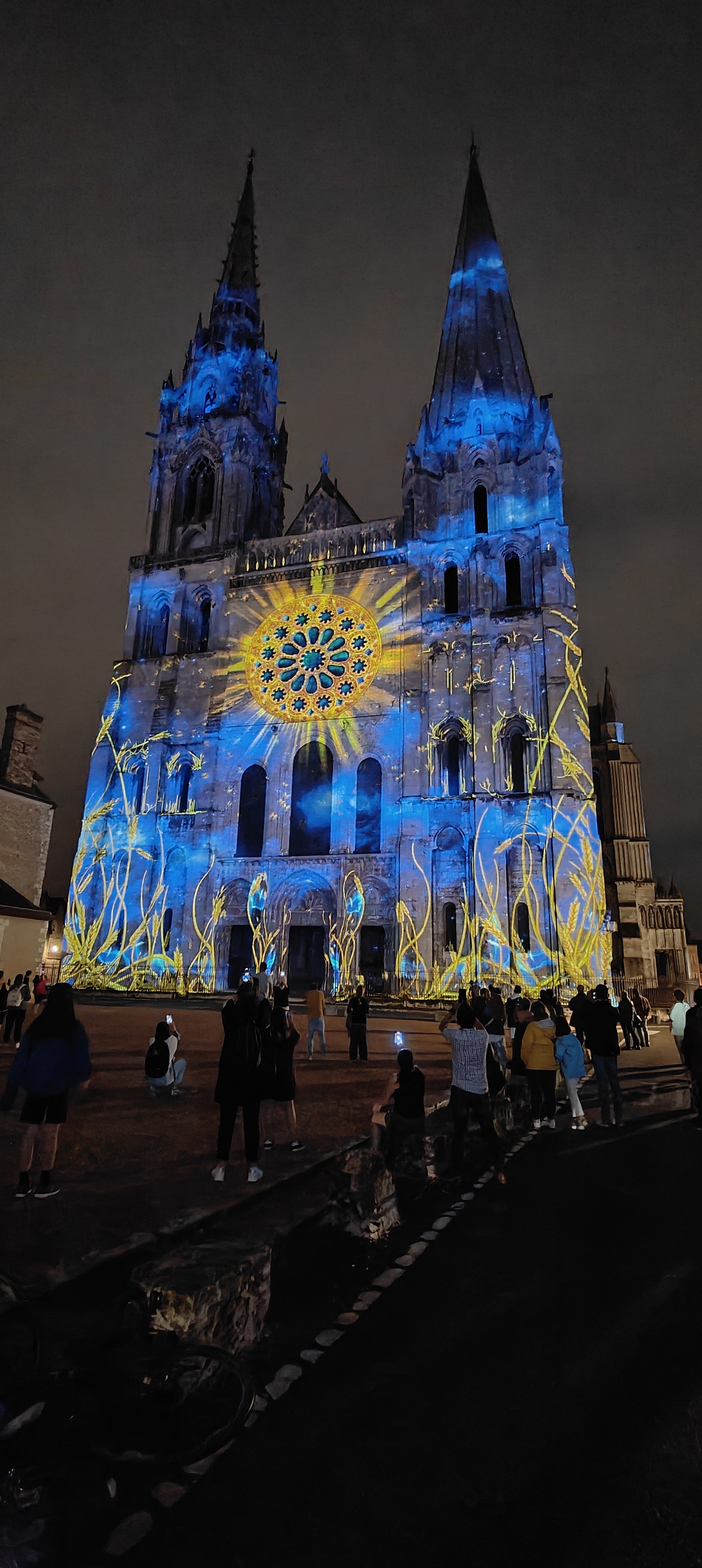 On a fini notre visite à Chartes en face de la Cathédrale pour regarder le spectacle de lumières sur sa façade. Incroyablement beau!