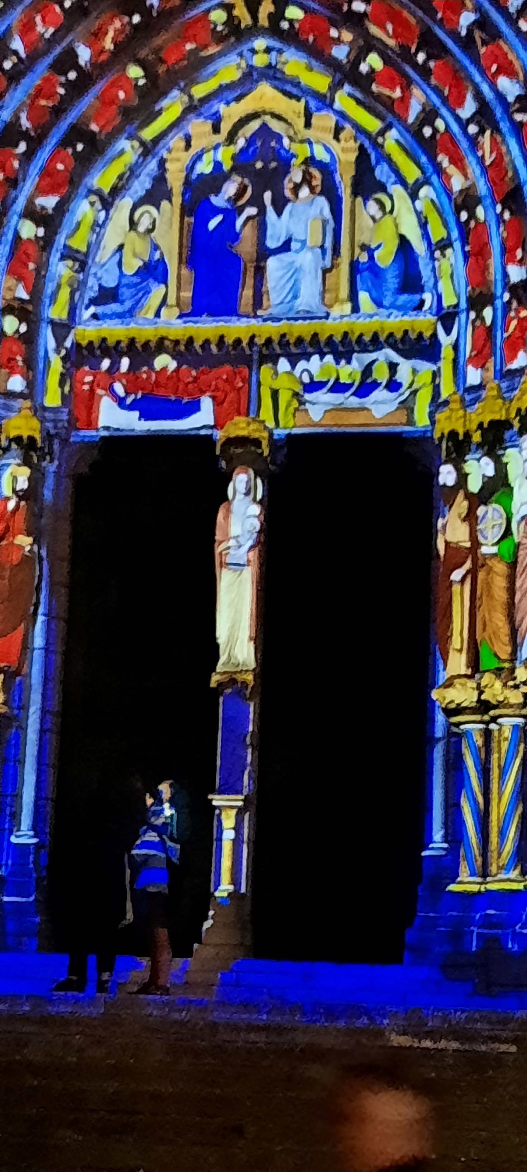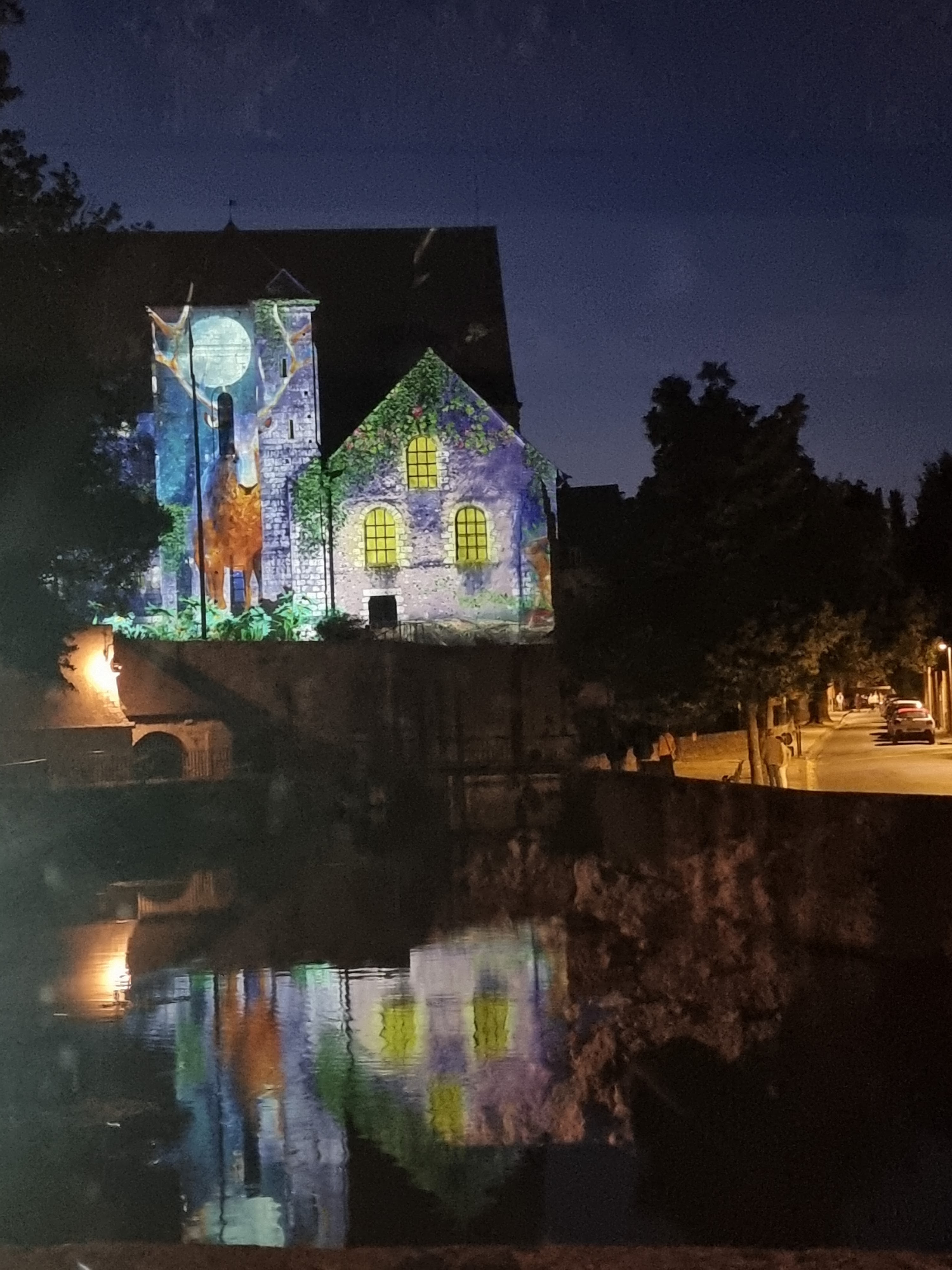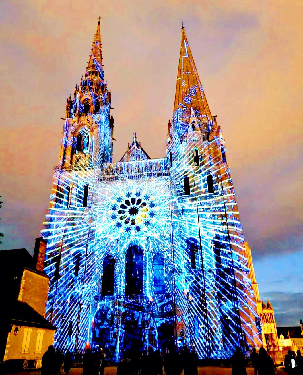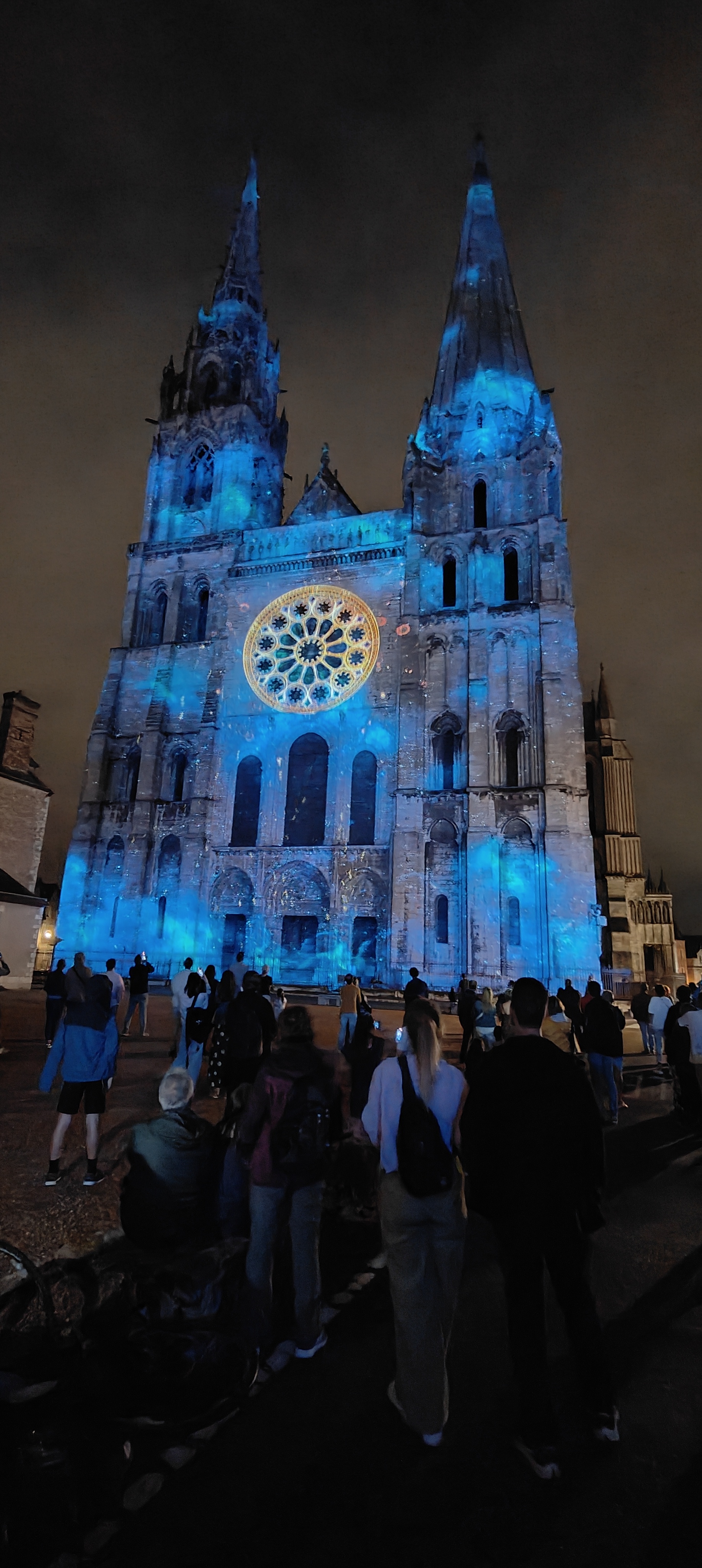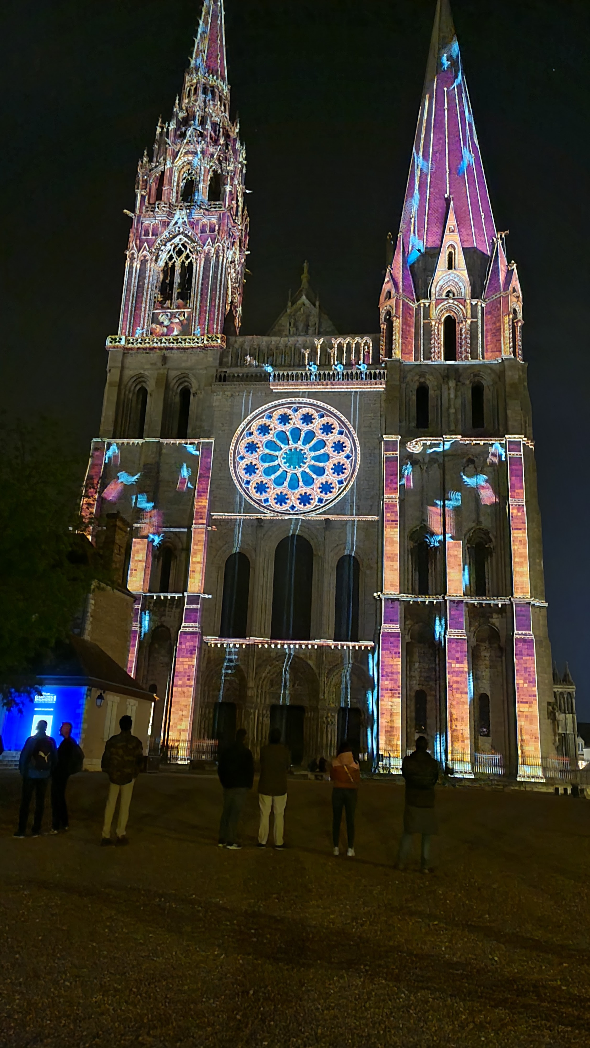 On a fini notre visite à Chartes en face de la Cathédrale pour regarder le spectacle de lumières sur sa façade. Incroyablement beau!