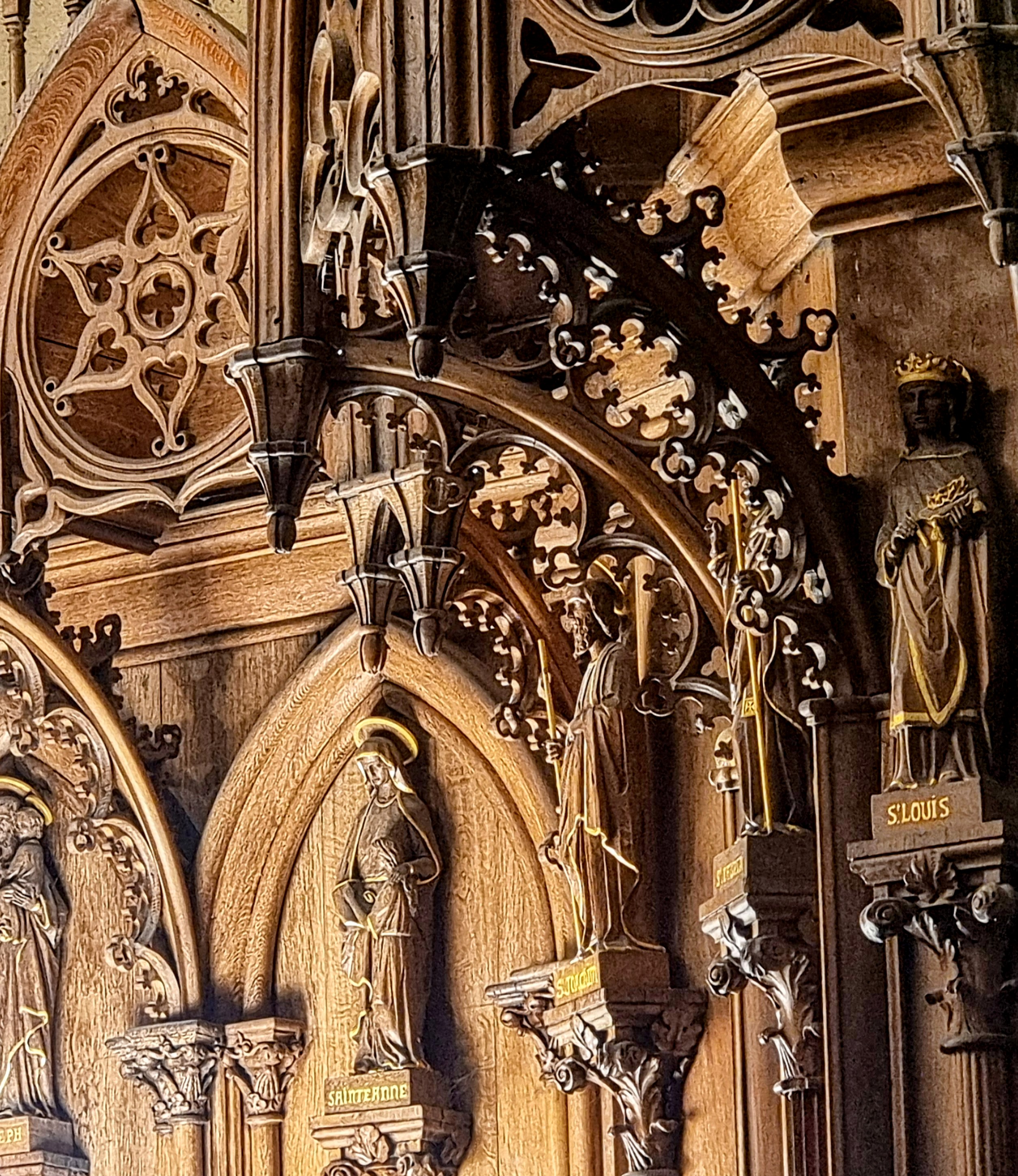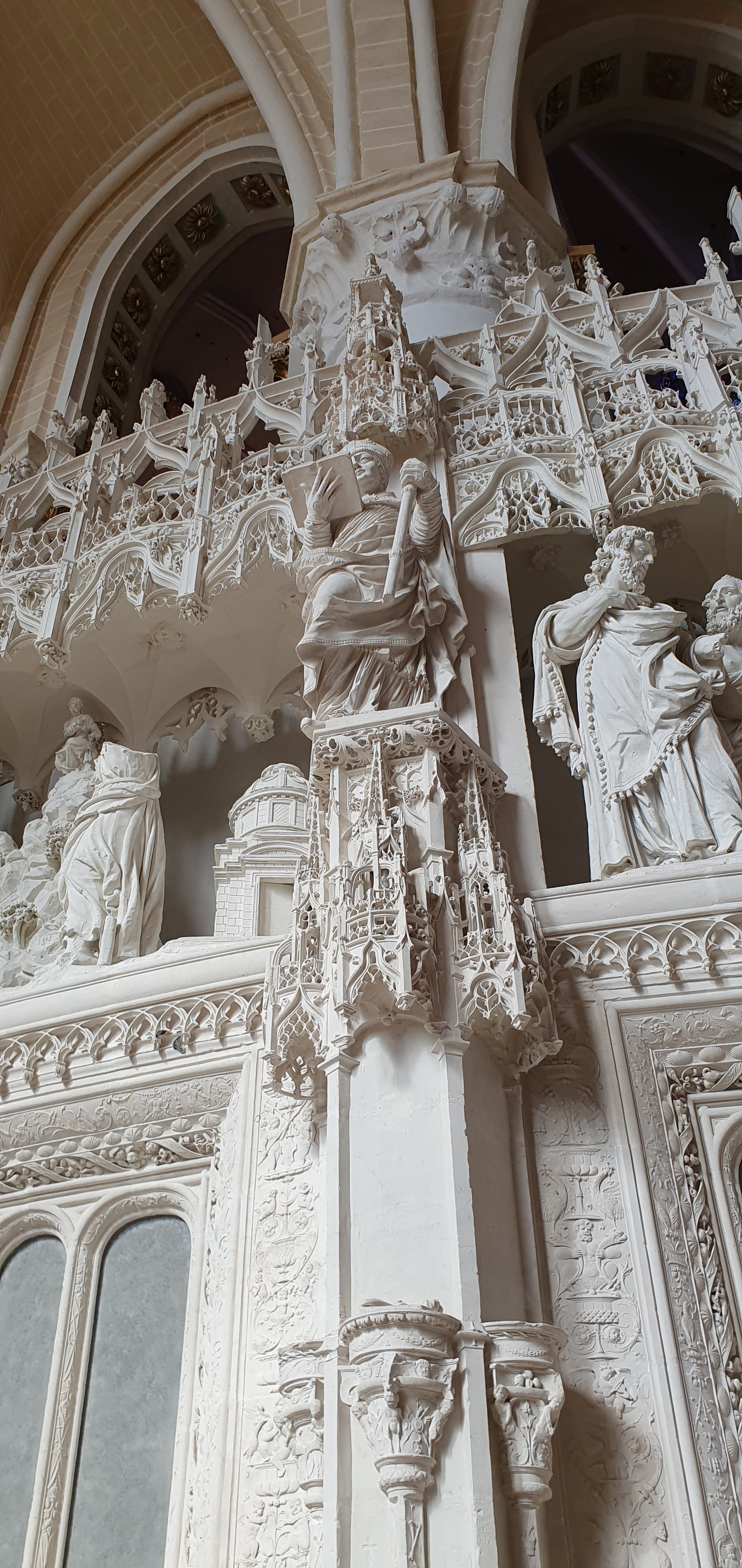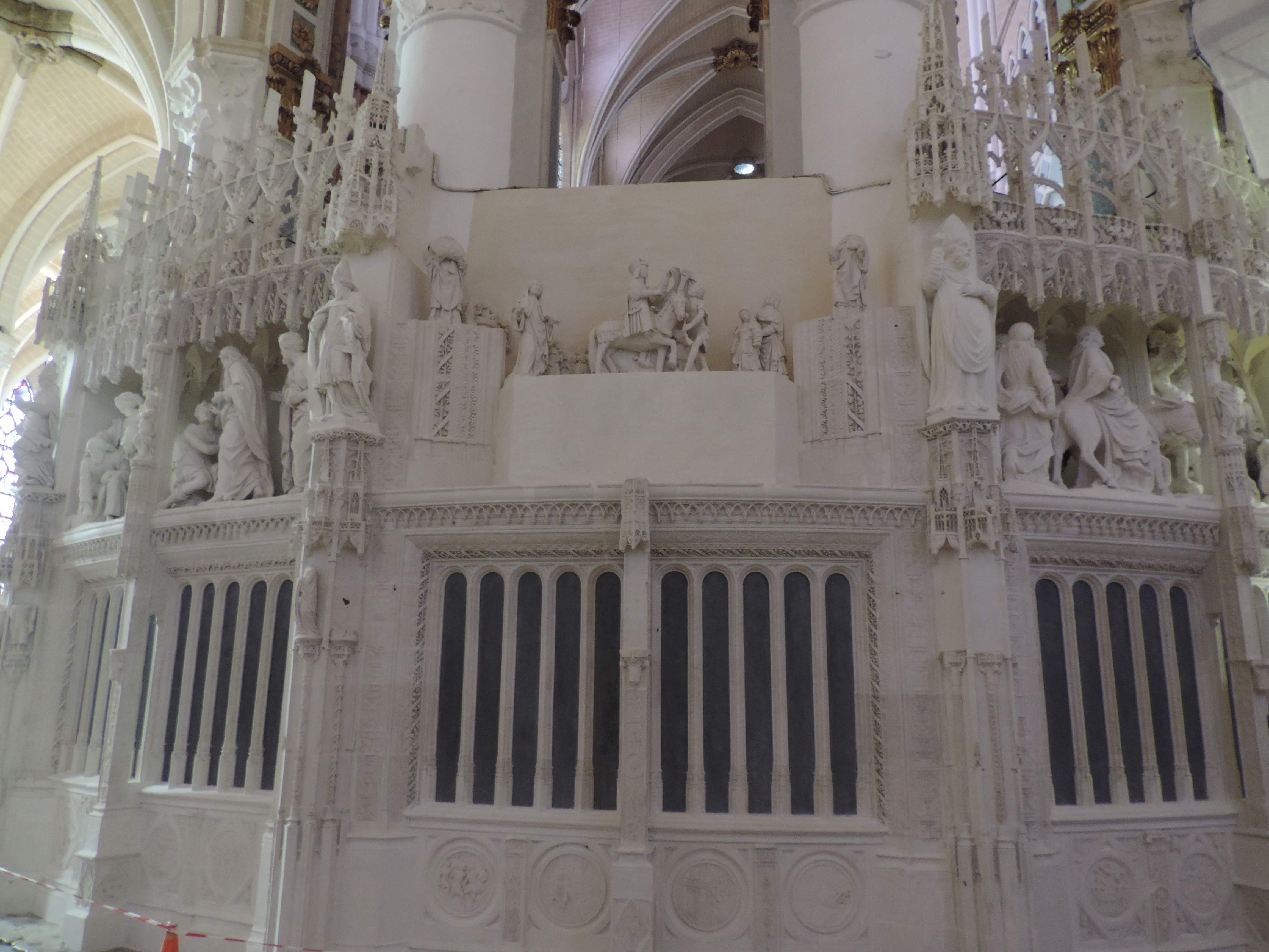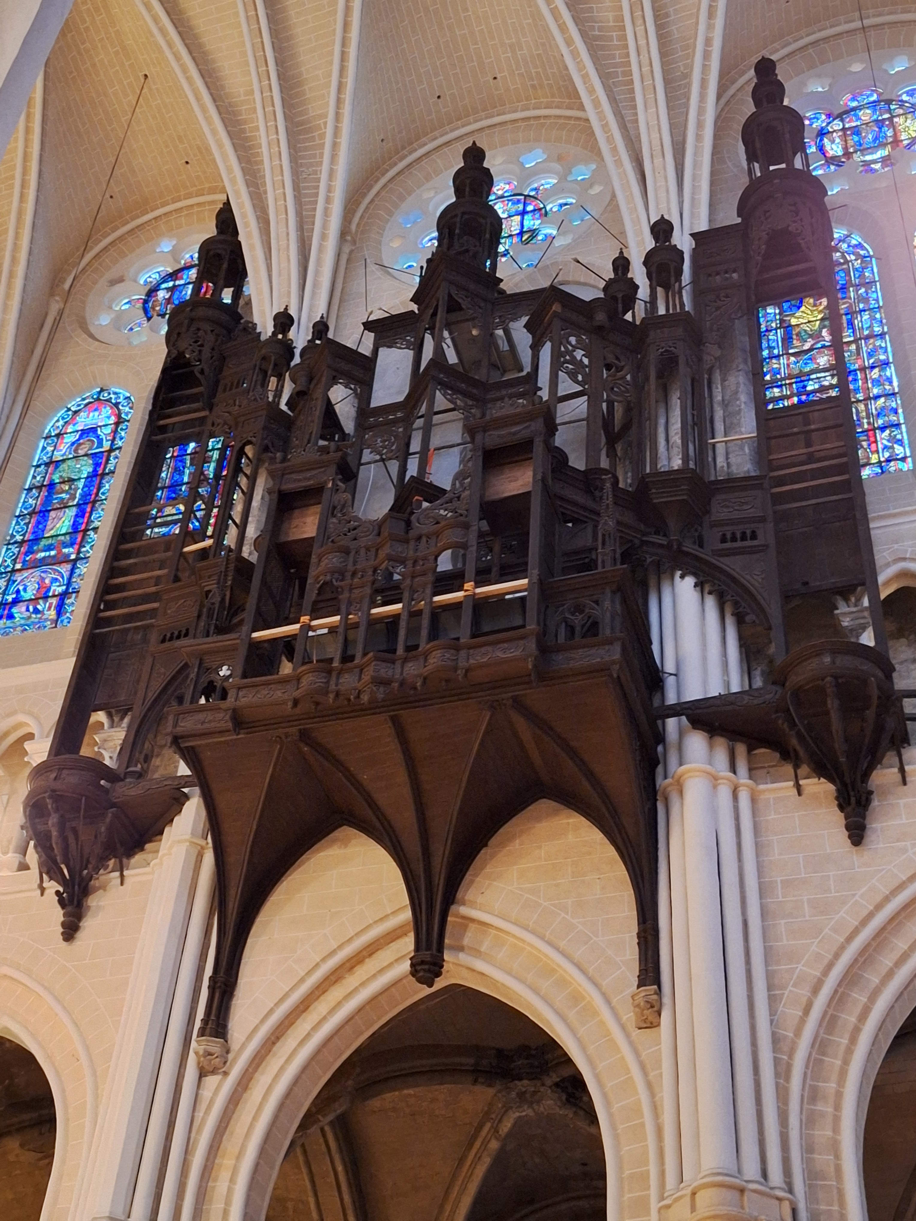 En travaux de restauration à l intérieur Les sculptures sont juste de la fine dentelle Incroyable tous les détails,les vitraux aussi ..il faudra y revenir en visite guidée