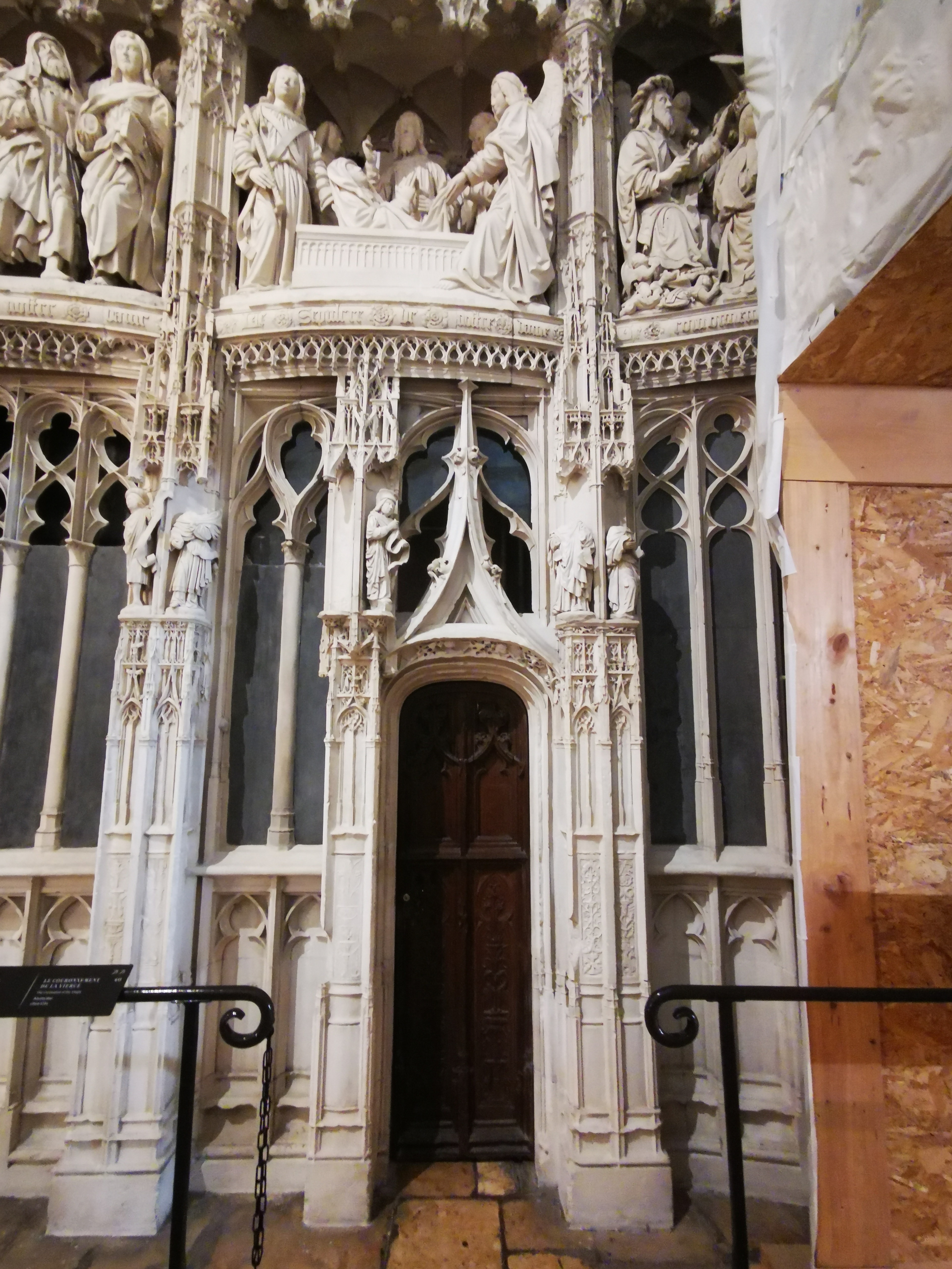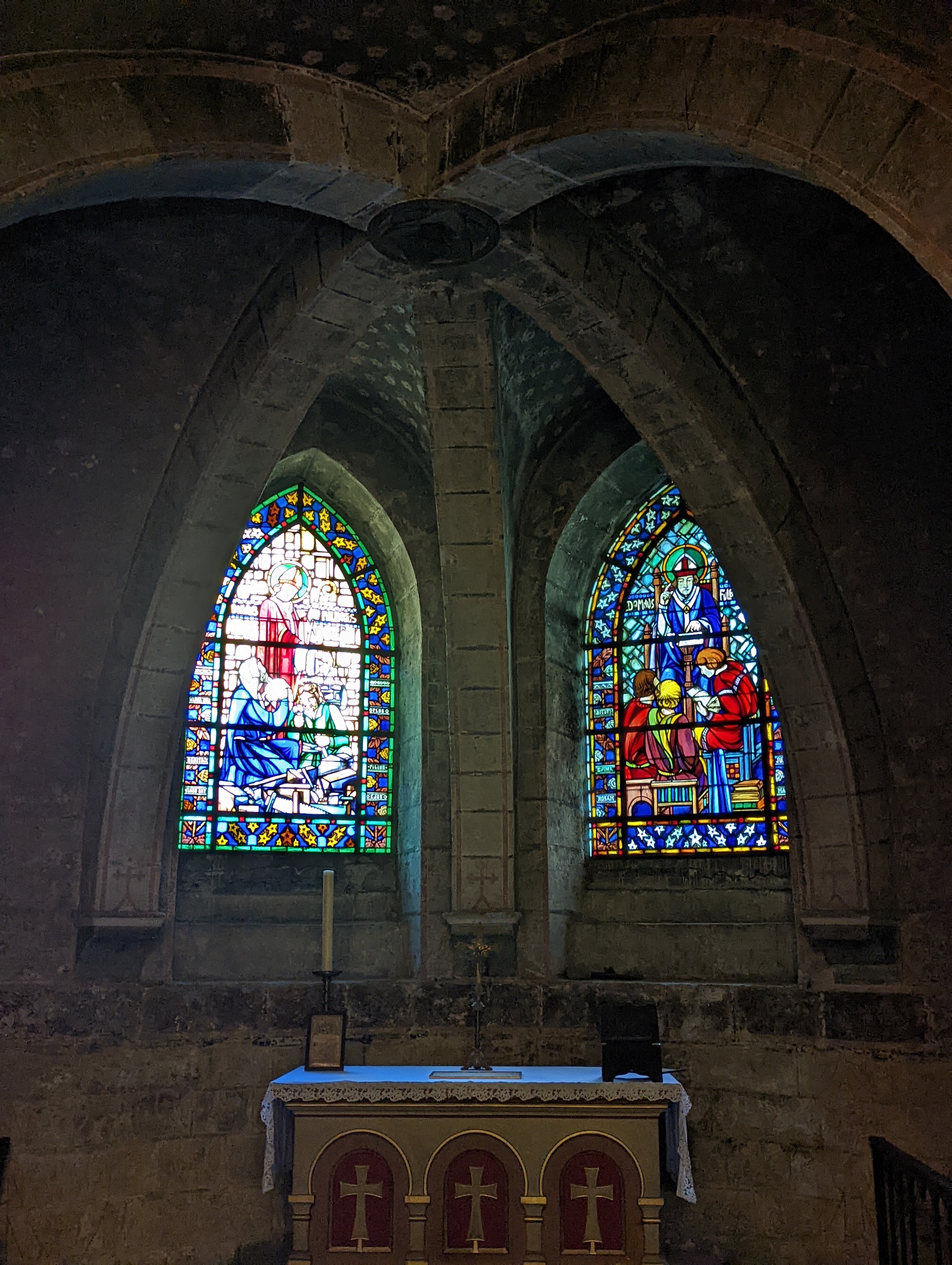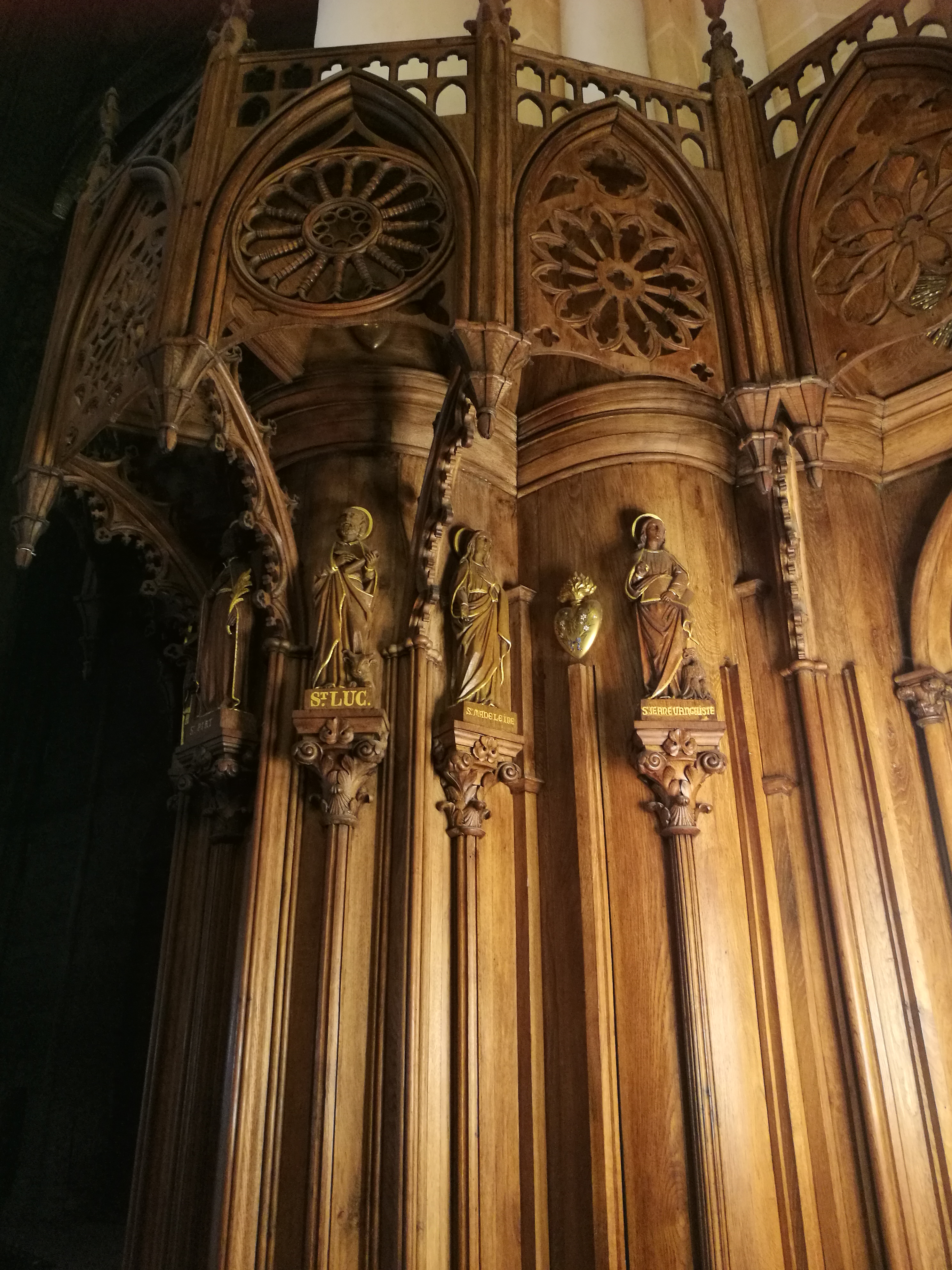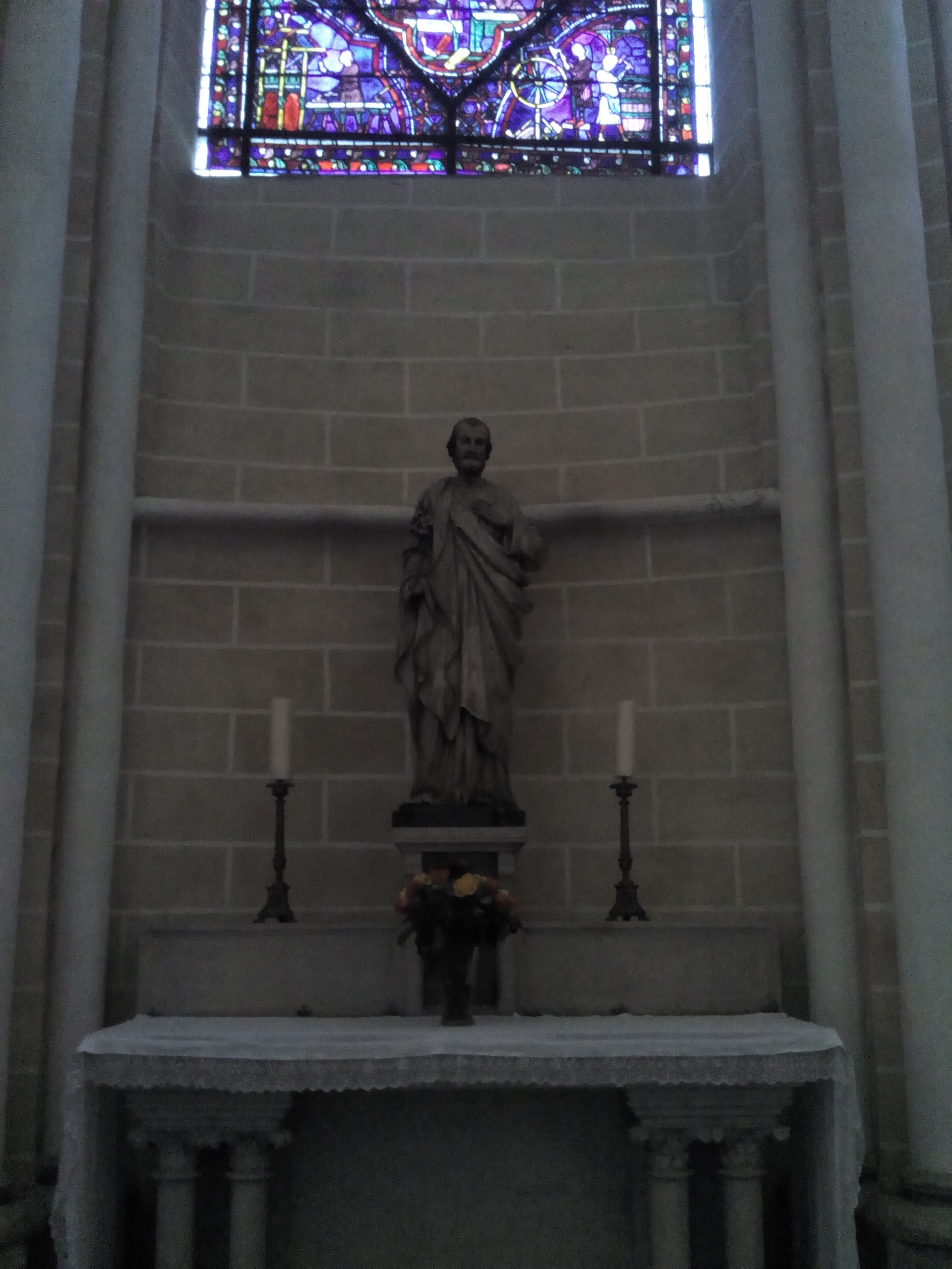 En travaux de restauration à l intérieur Les sculptures sont juste de la fine dentelle Incroyable tous les détails,les vitraux aussi ..il faudra y revenir en visite guidée