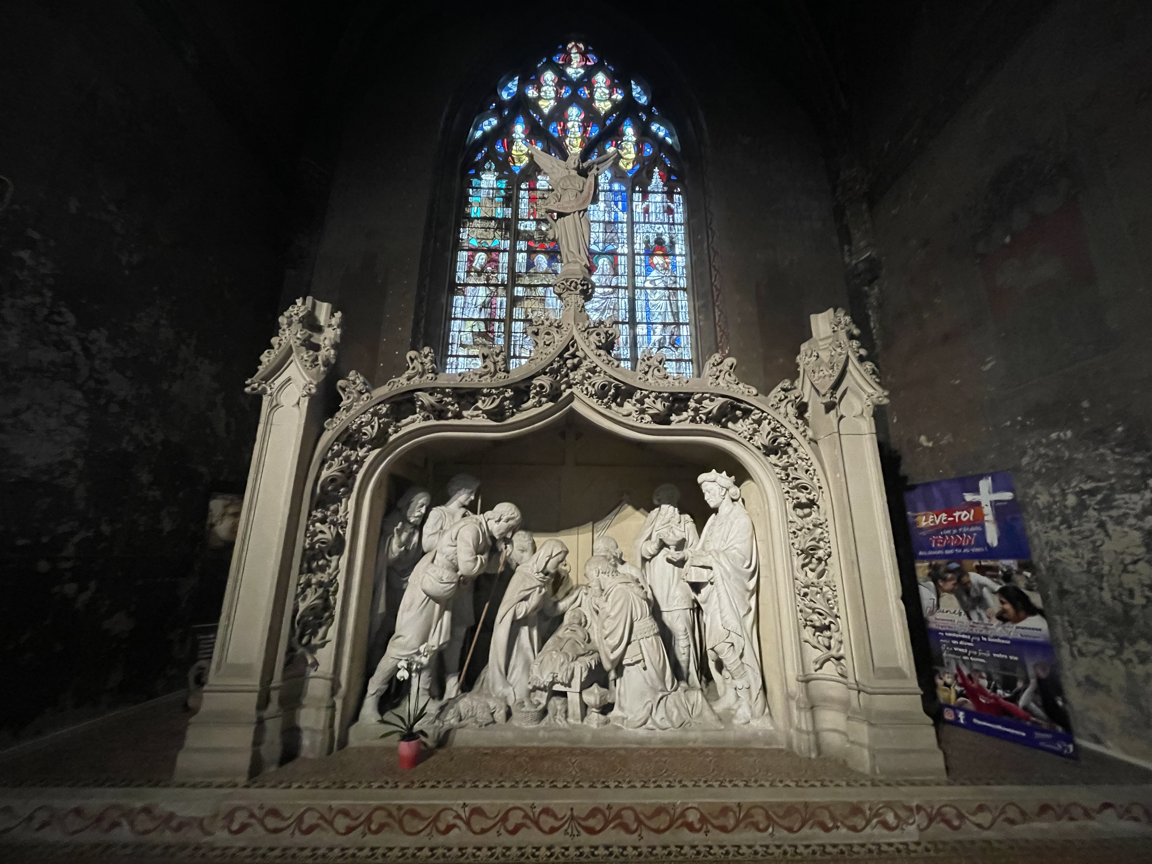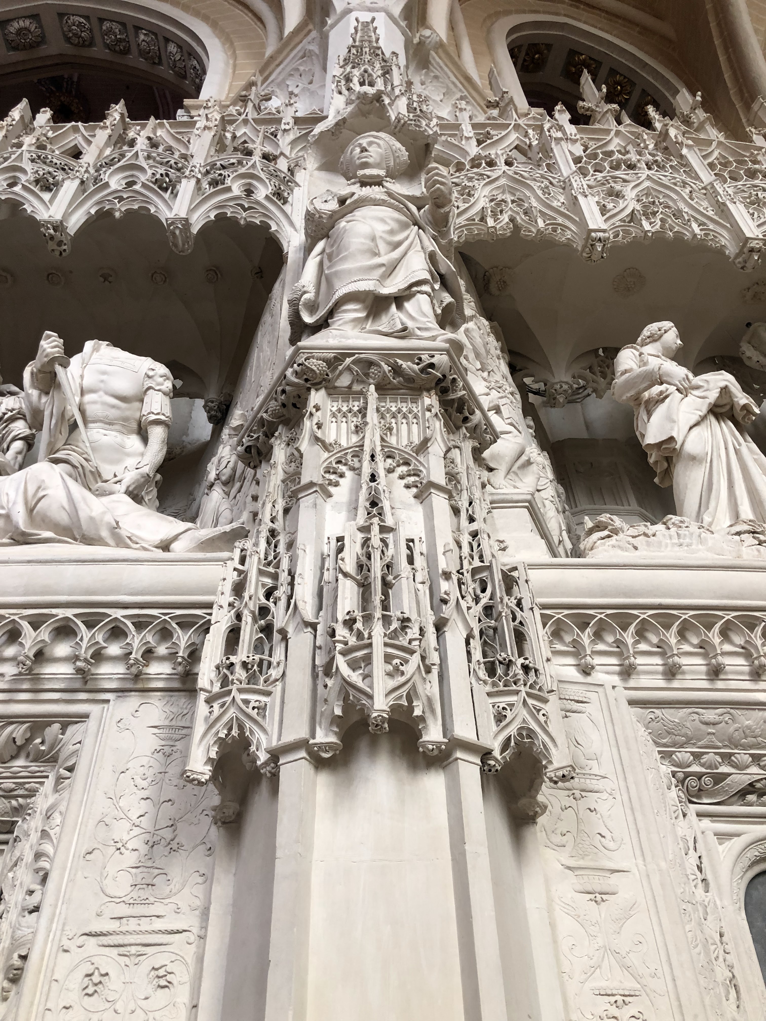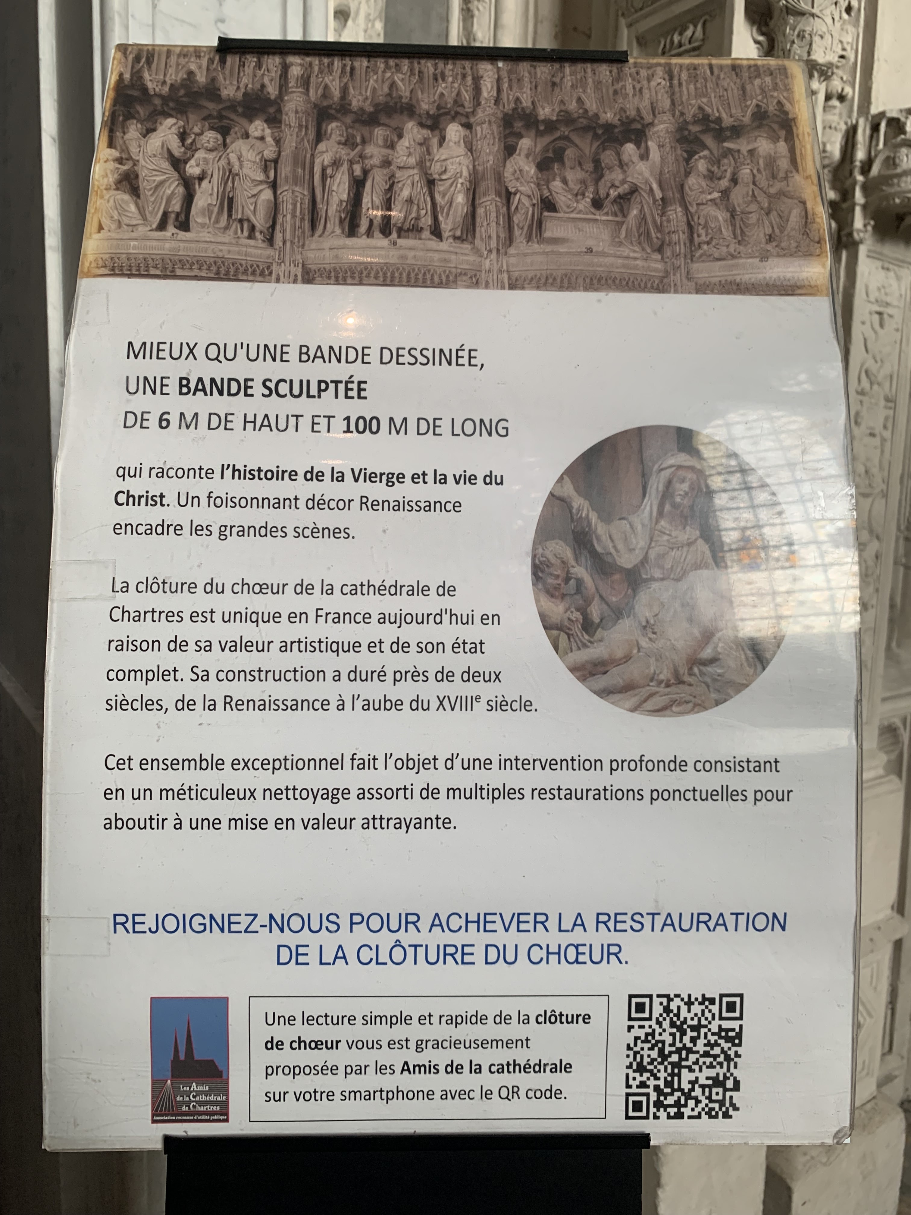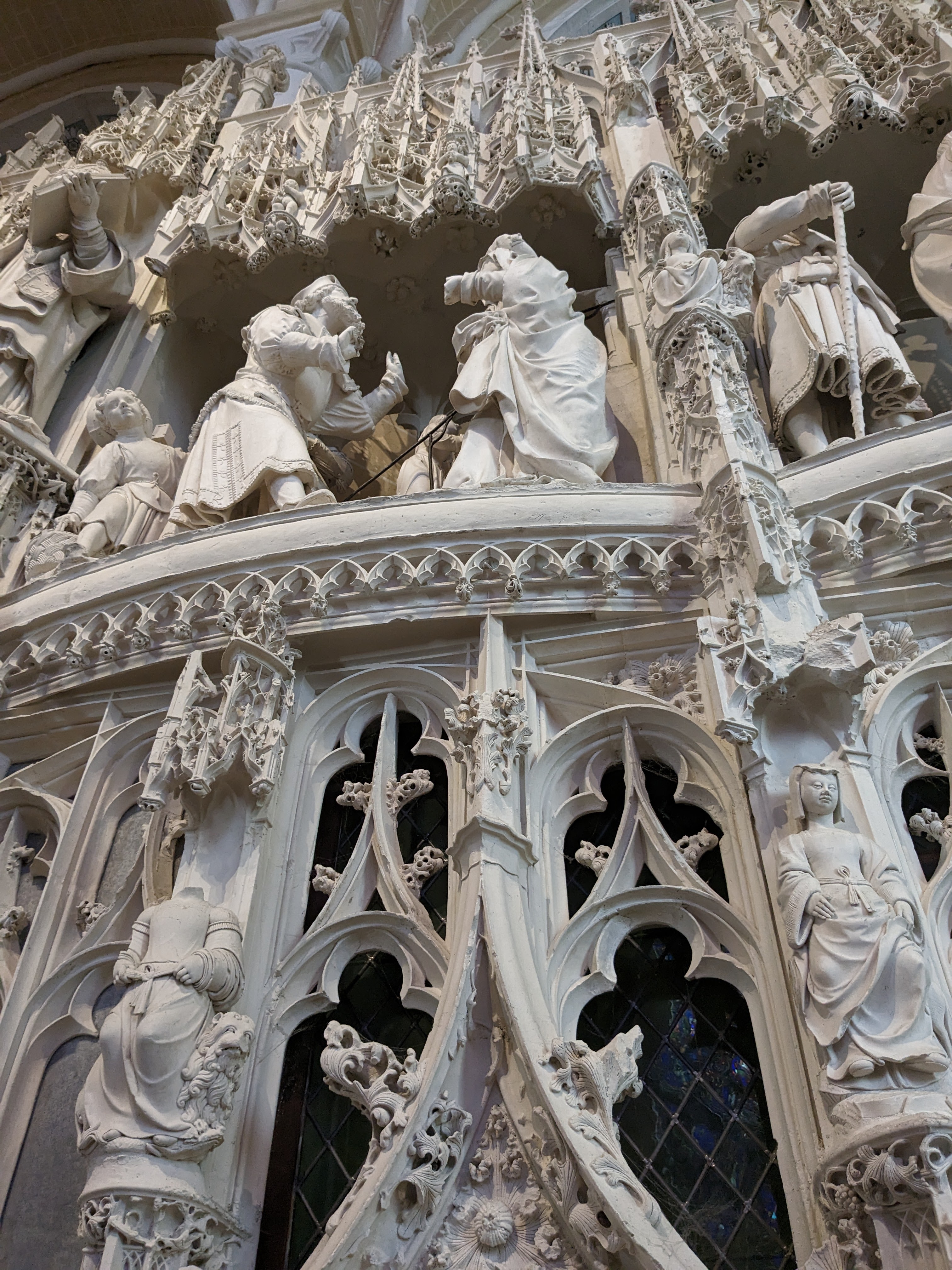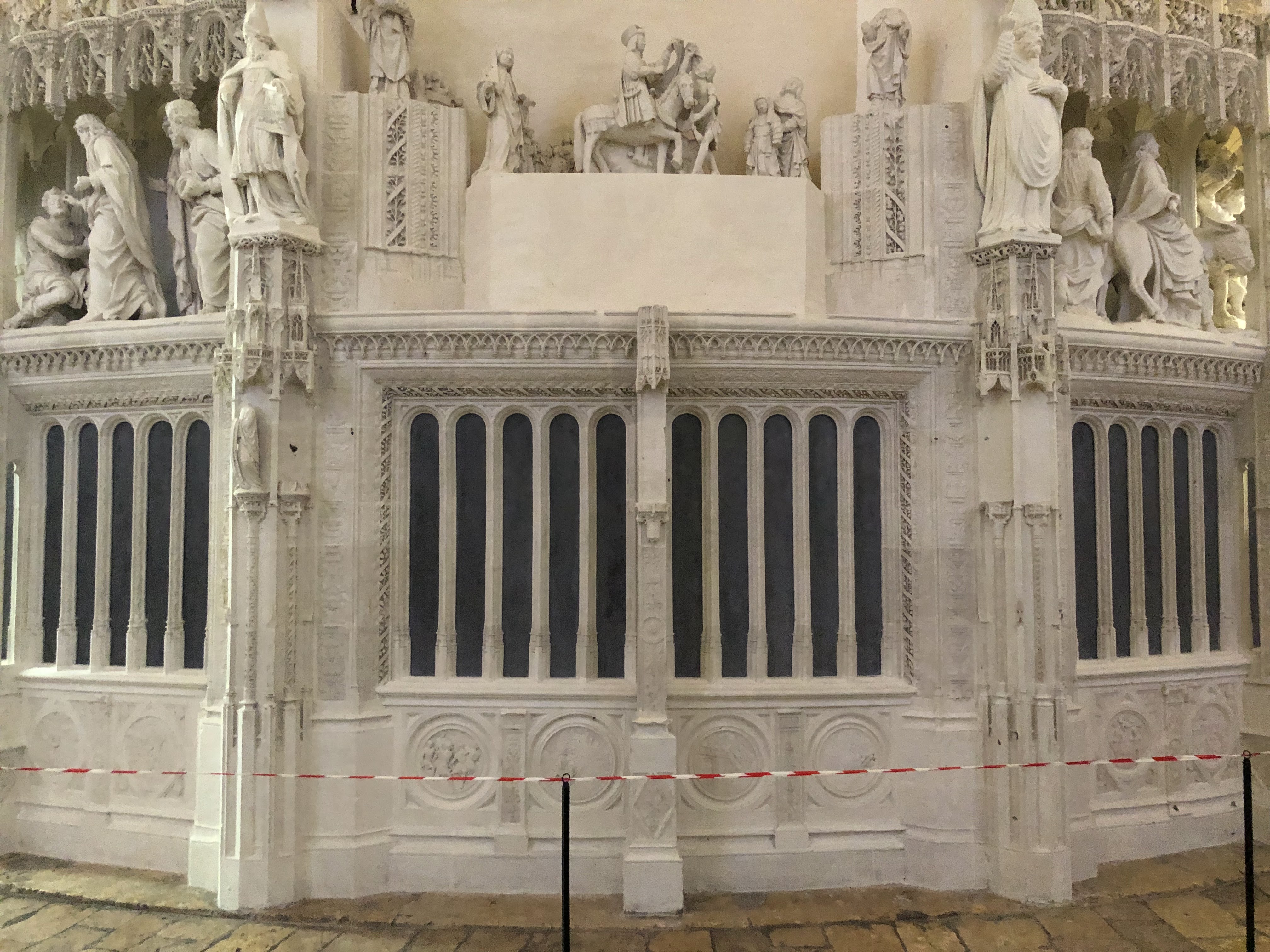 En travaux de restauration à l intérieur Les sculptures sont juste de la fine dentelle Incroyable tous les détails,les vitraux aussi ..il faudra y revenir en visite guidée
