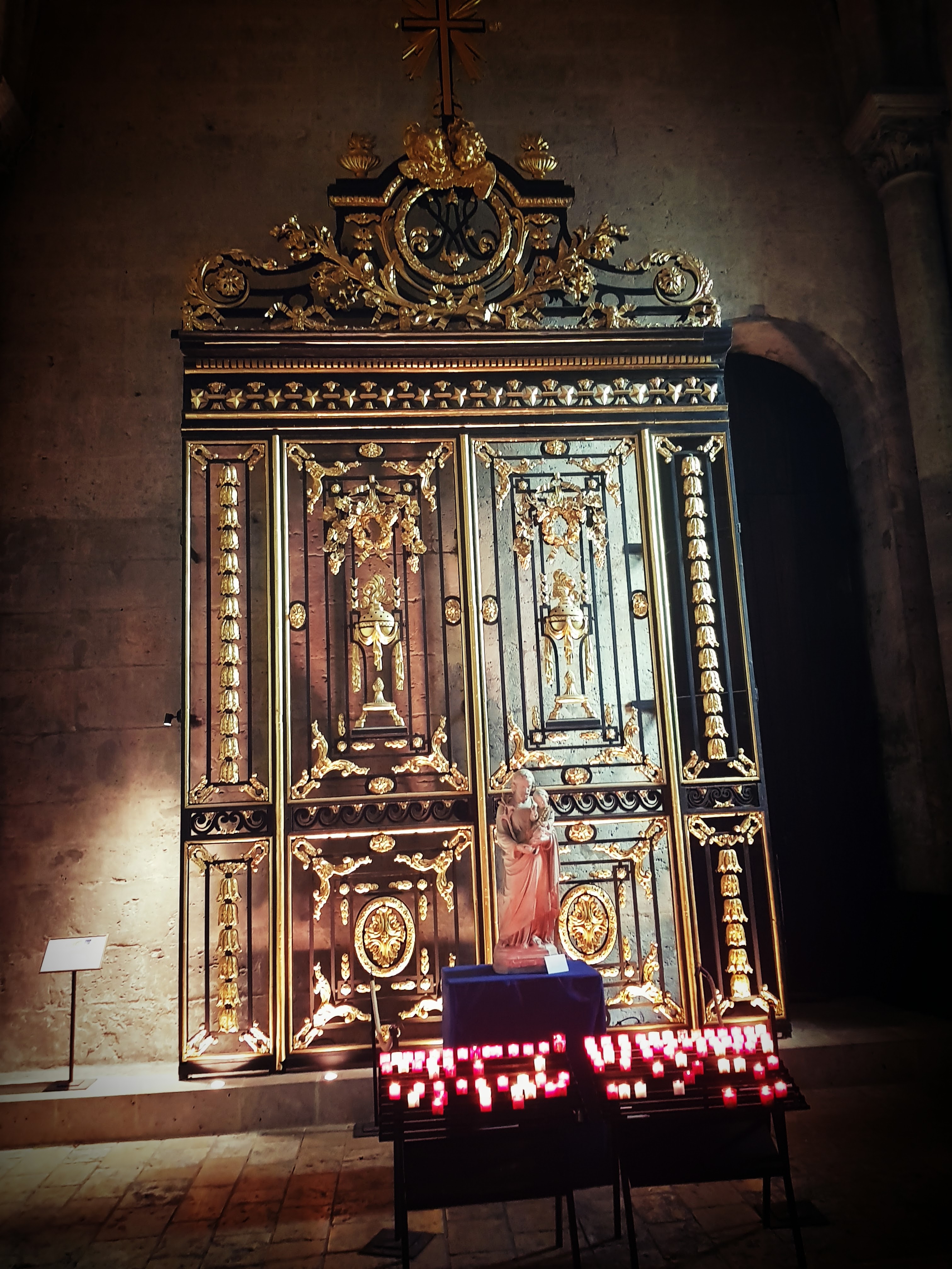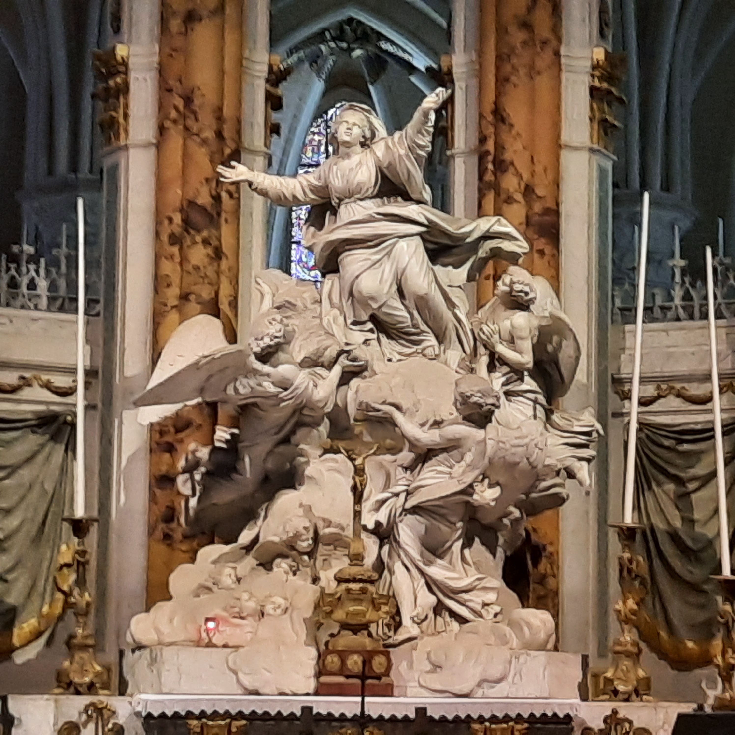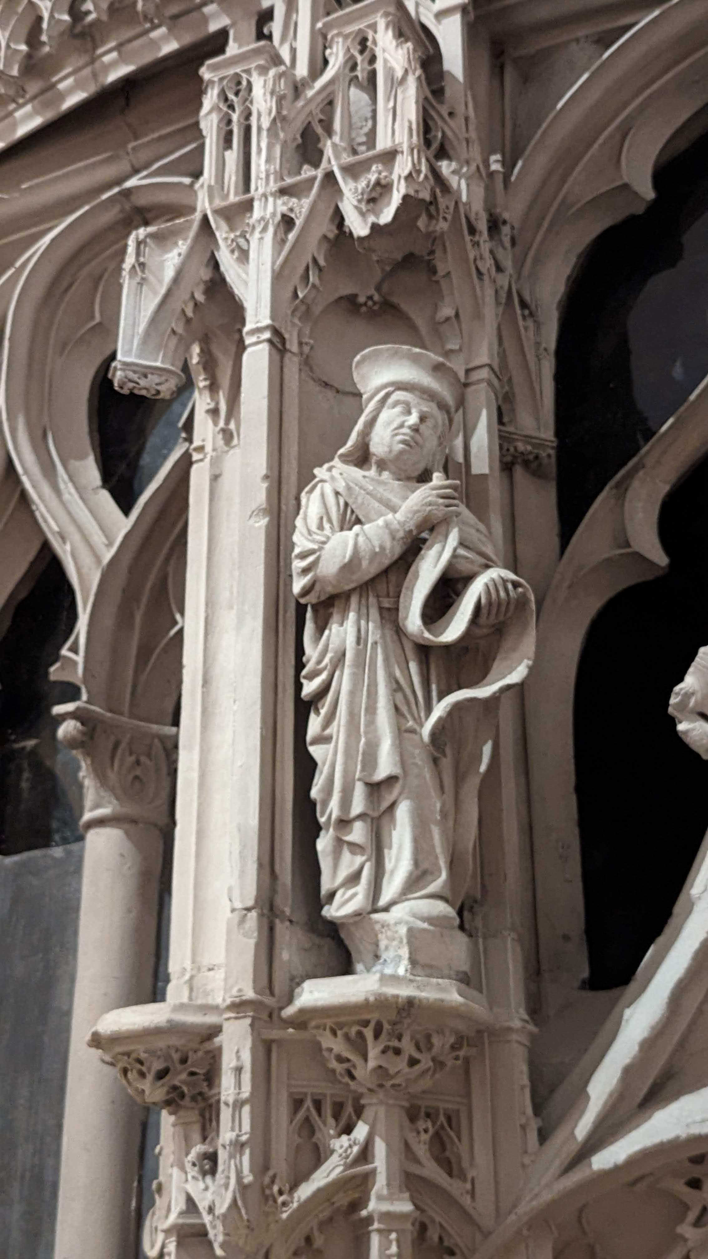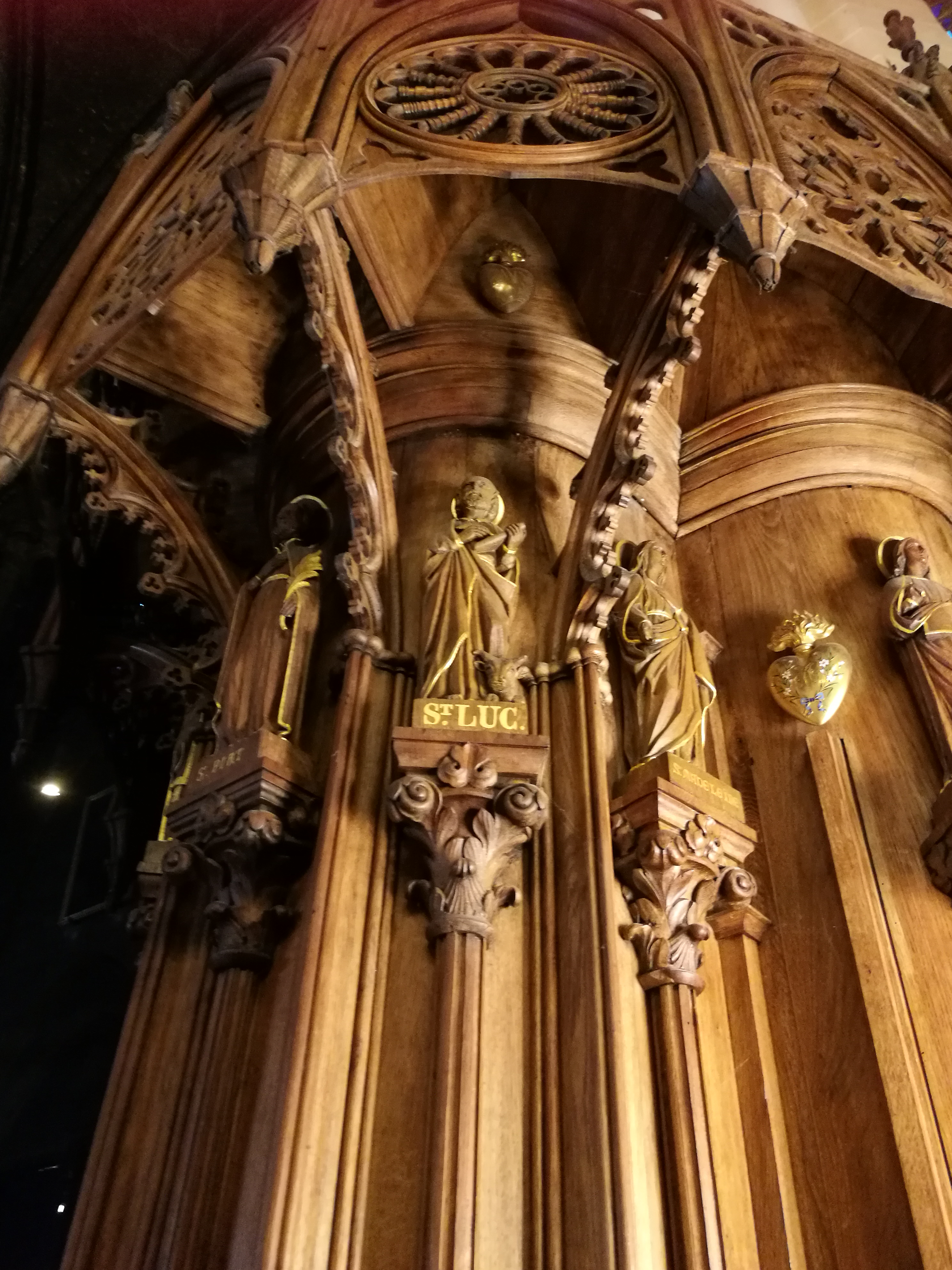 En travaux de restauration à l intérieur Les sculptures sont juste de la fine dentelle Incroyable tous les détails,les vitraux aussi ..il faudra y revenir en visite guidée