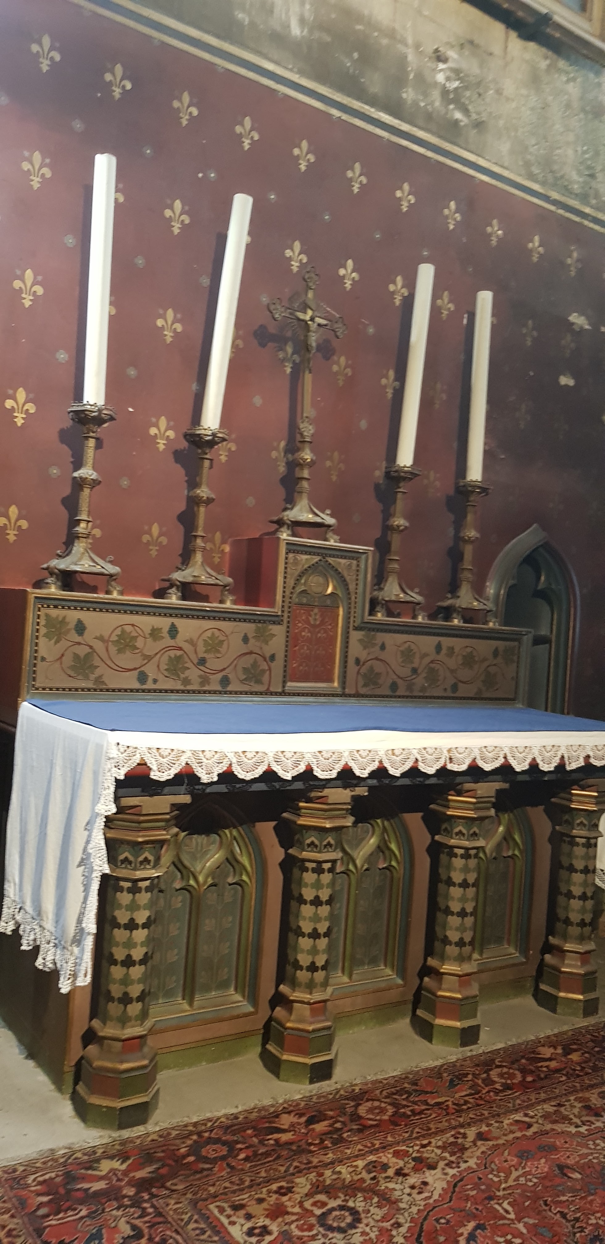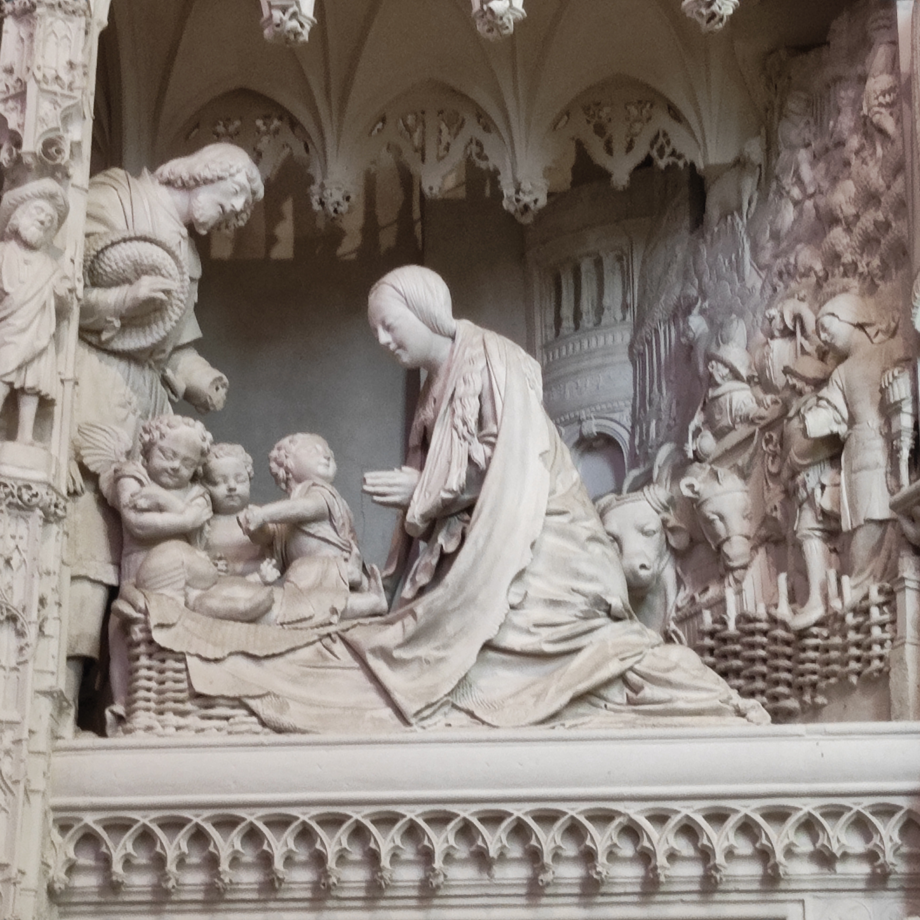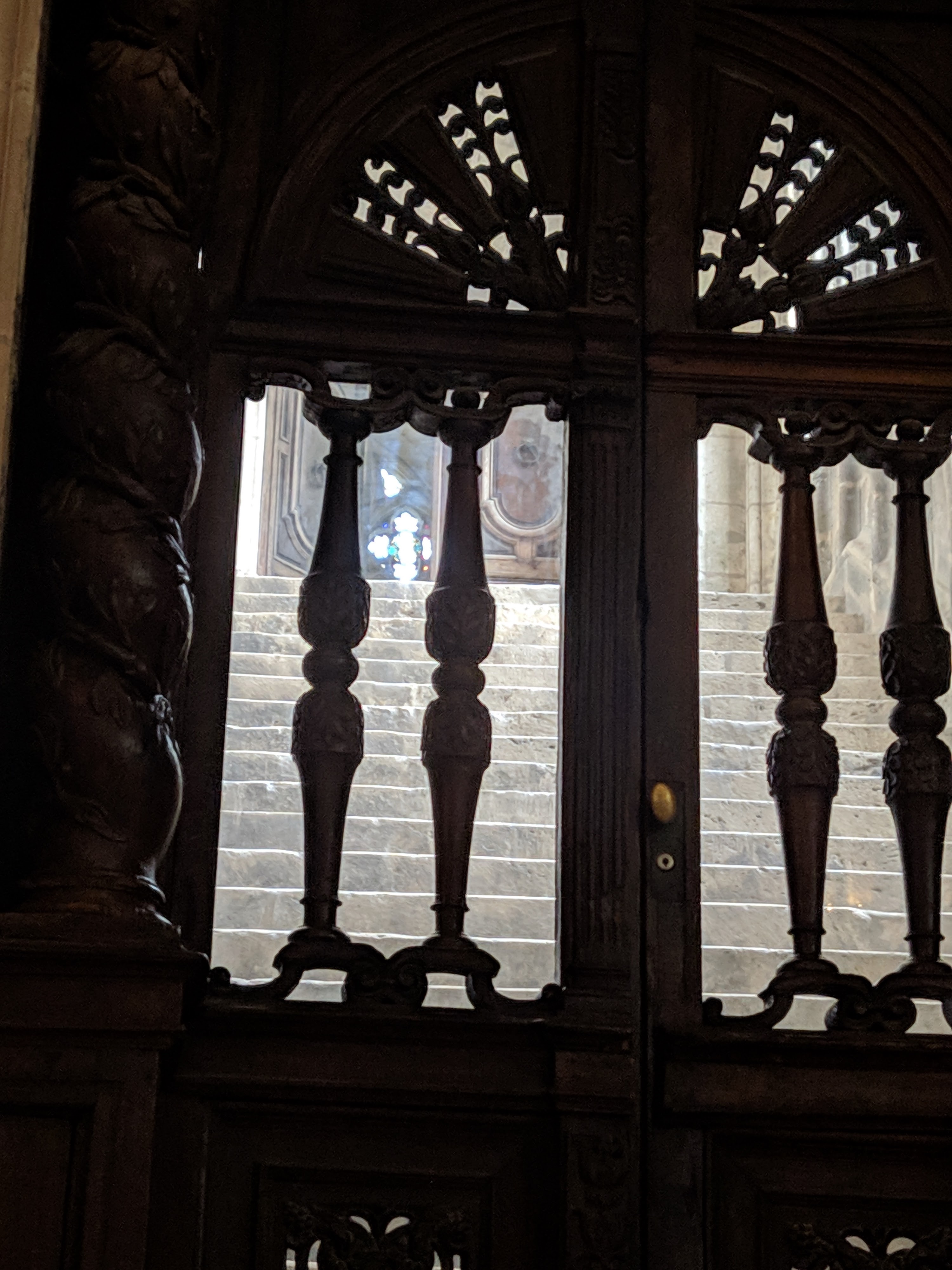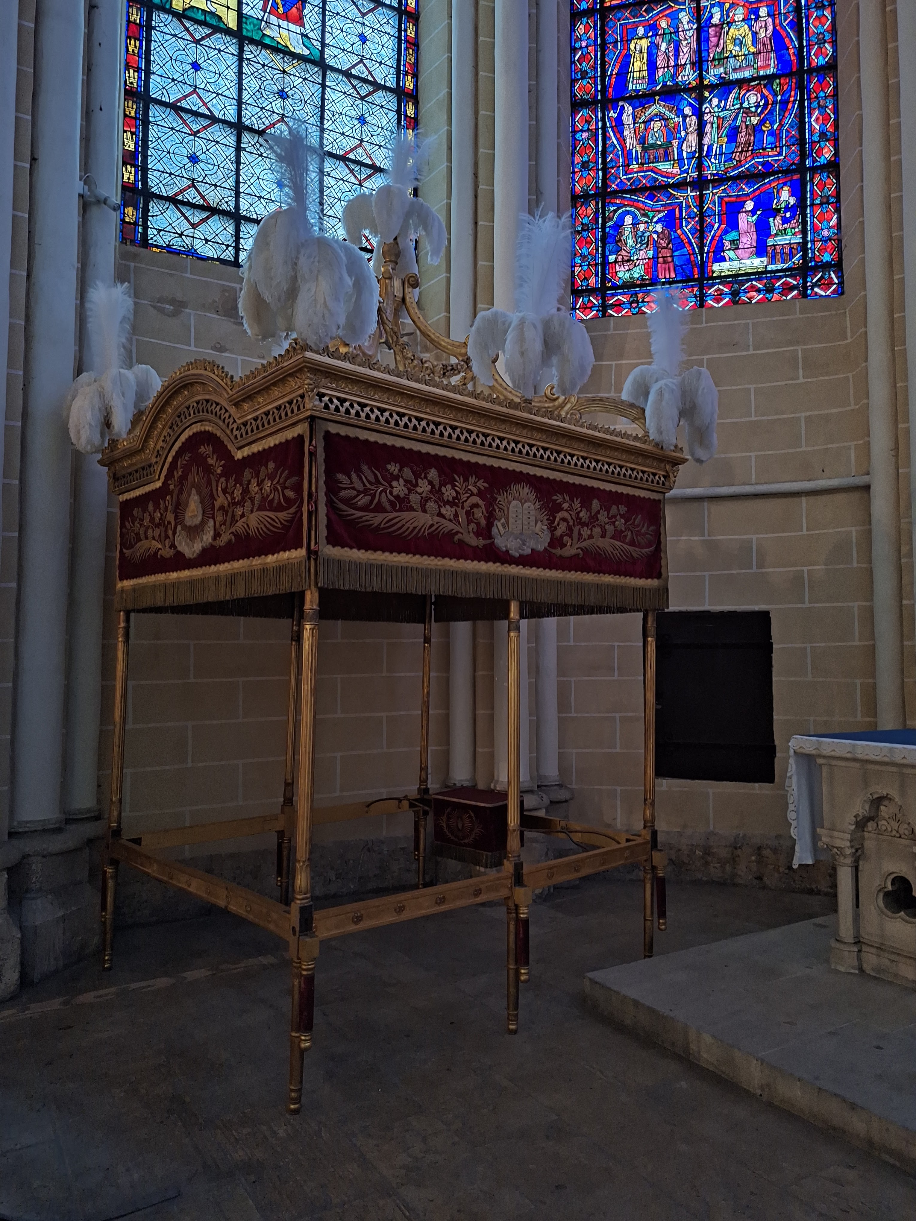 En travaux de restauration à l intérieur Les sculptures sont juste de la fine dentelle Incroyable tous les détails,les vitraux aussi ..il faudra y revenir en visite guidée