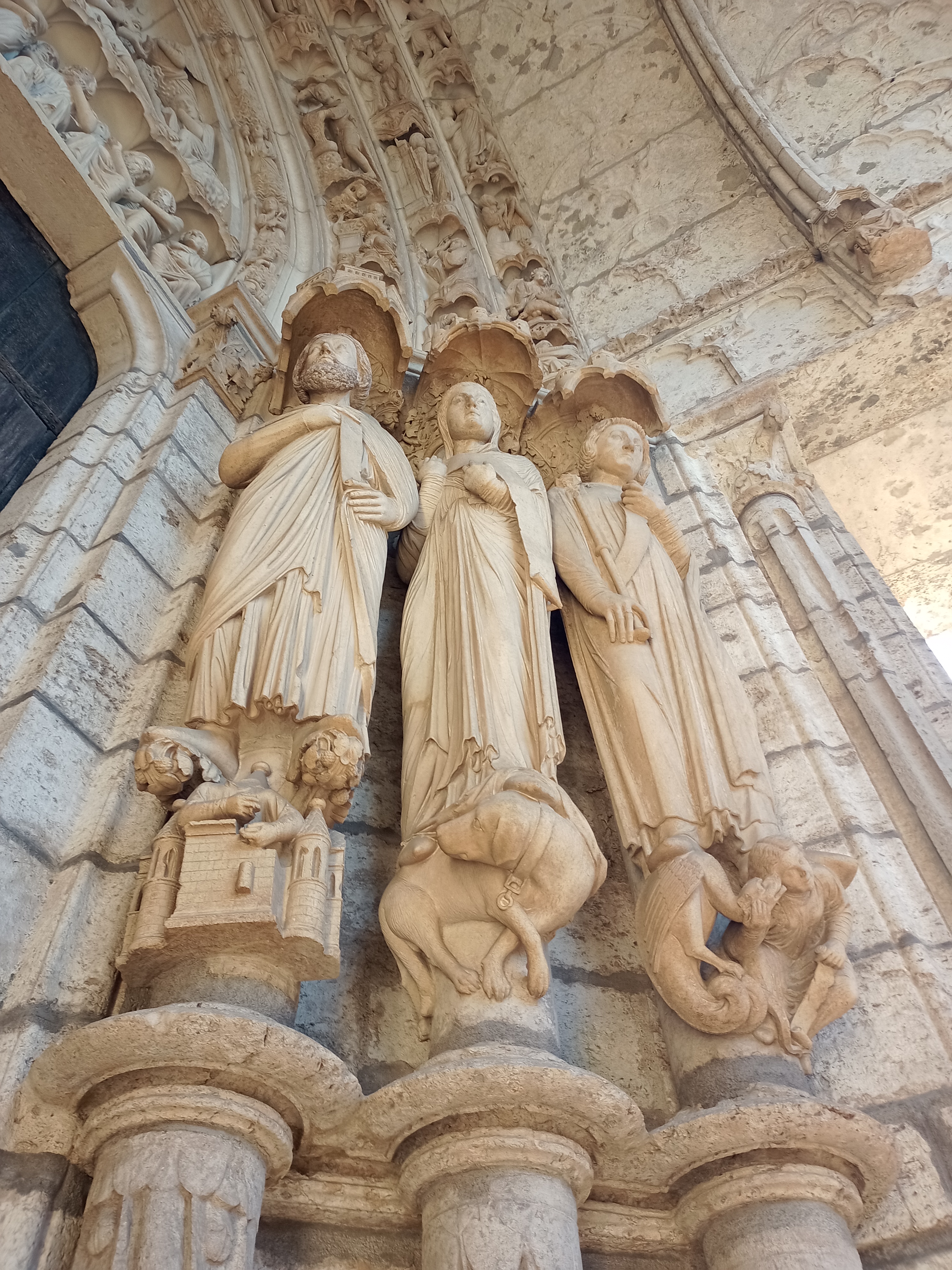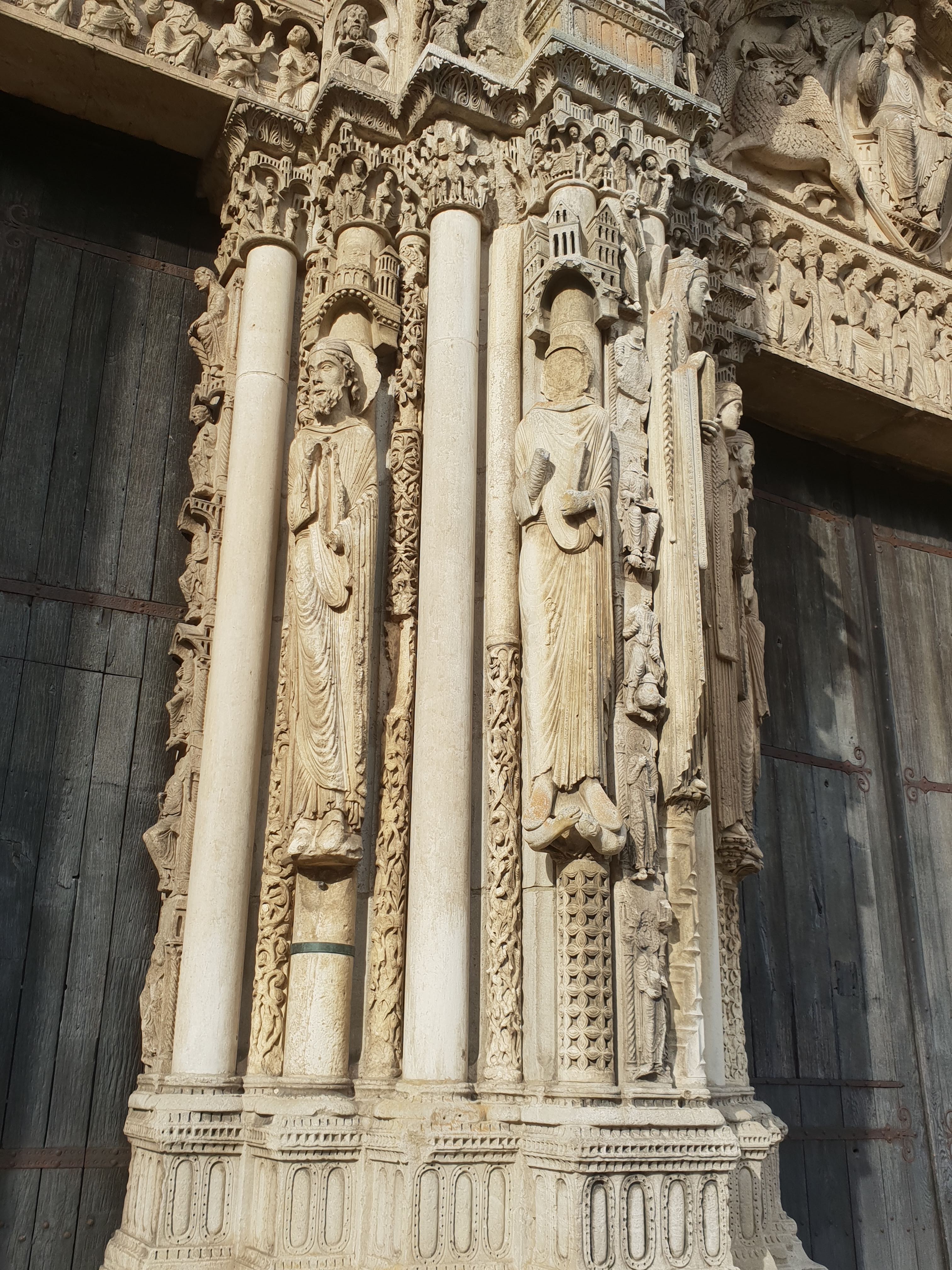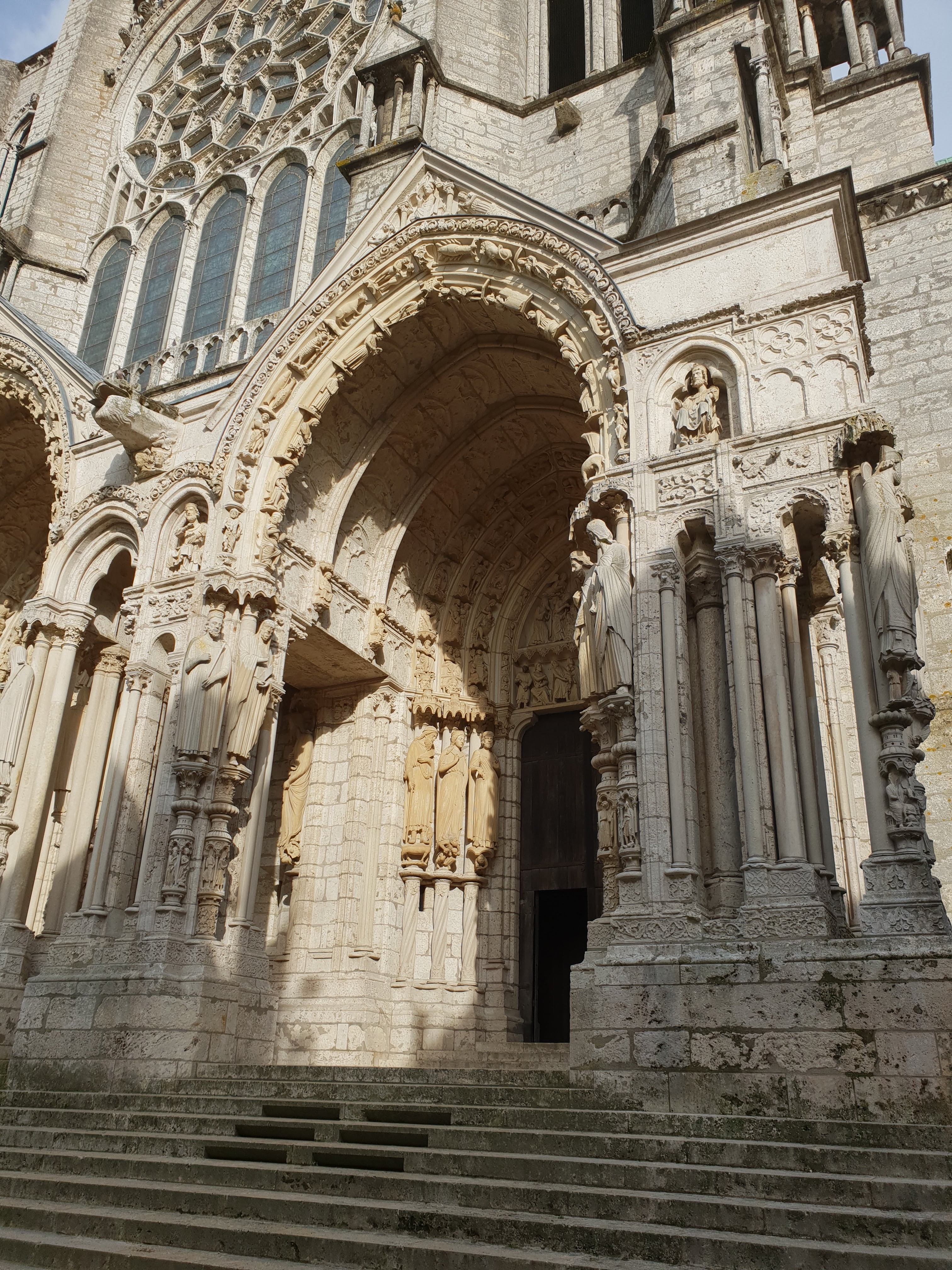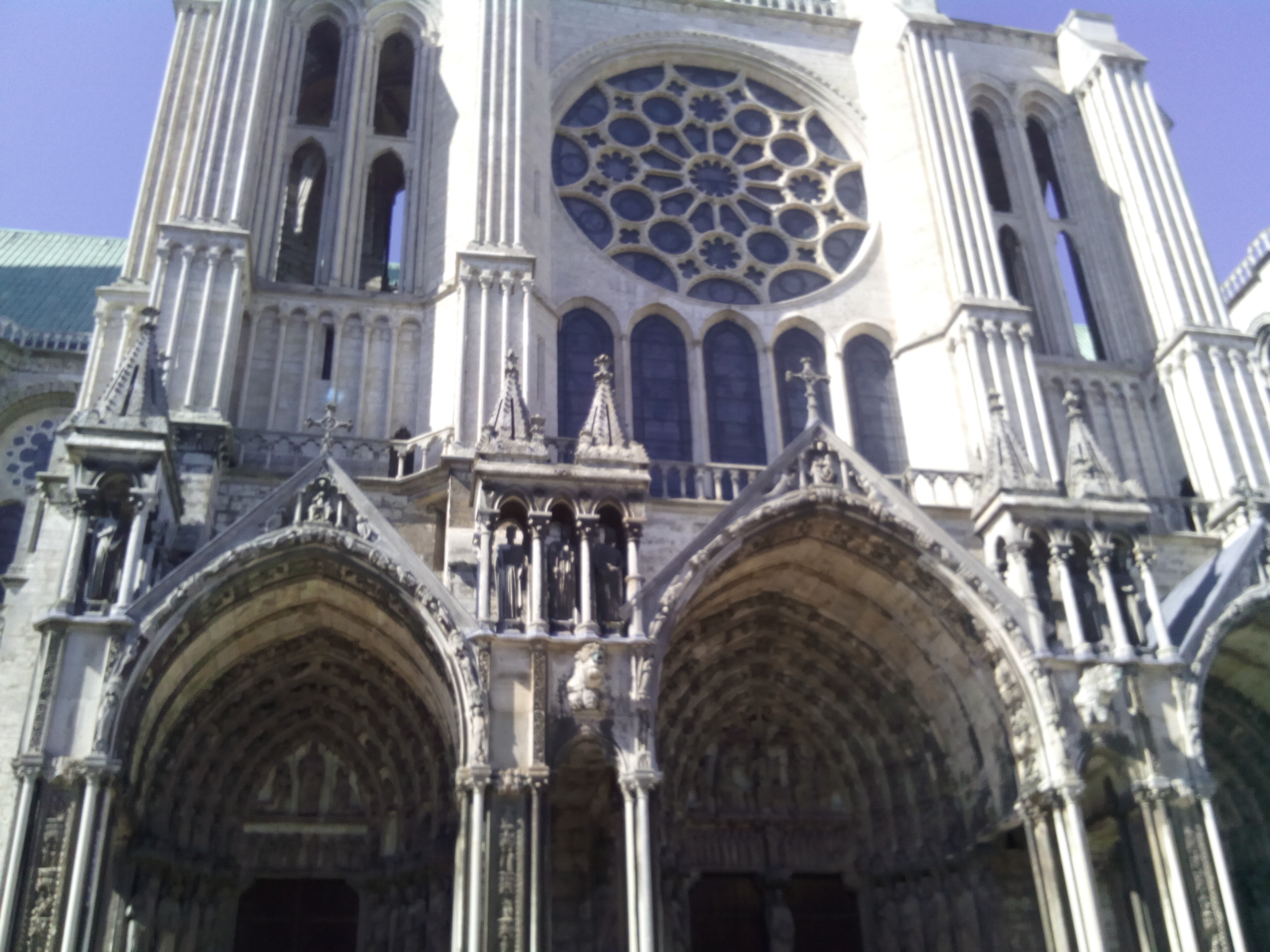 C'est la première fois que, de passage à Chartres, je prends la peine d'aller visiter cette merveille architecturale. Ses deux tours qui se voient à des kilomètres dans la plaine de la Beauce sont caractéristiques et incitent à en connaître plus. Après la visite, je me suis demandé si quelqu'un avait compté combien cette cathédrale renferme de statues. C'est absolument incroyable et toutes une merveille de sculpture. En regardant sur l'ordinateur certaines des photos que j'ai prises, j'ai découvert la finesse du travail effectué par les bâtisseurs de cette oeuvre. Je ne parle pas des vitraux qui sont tout aussi merveilleux.