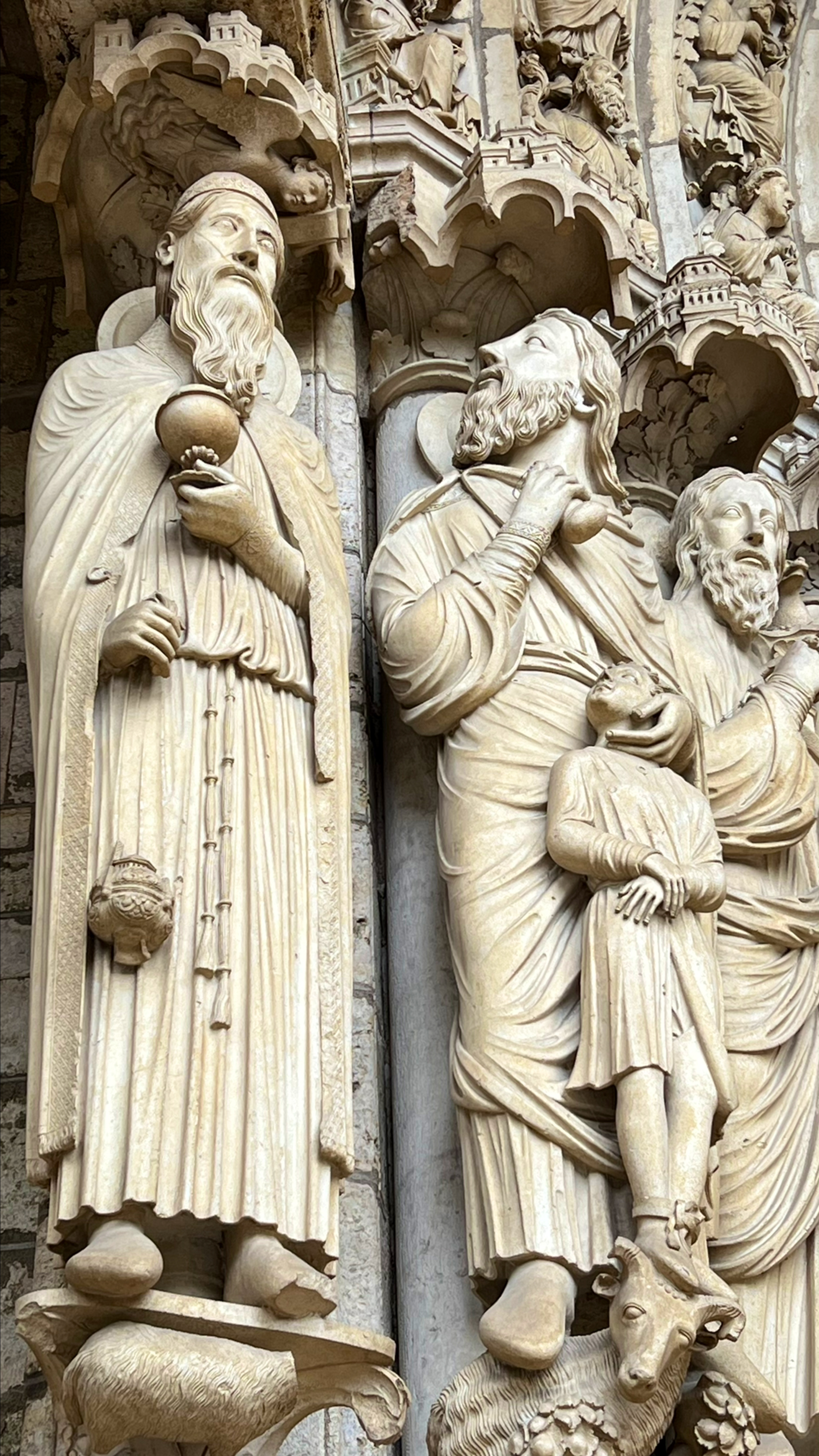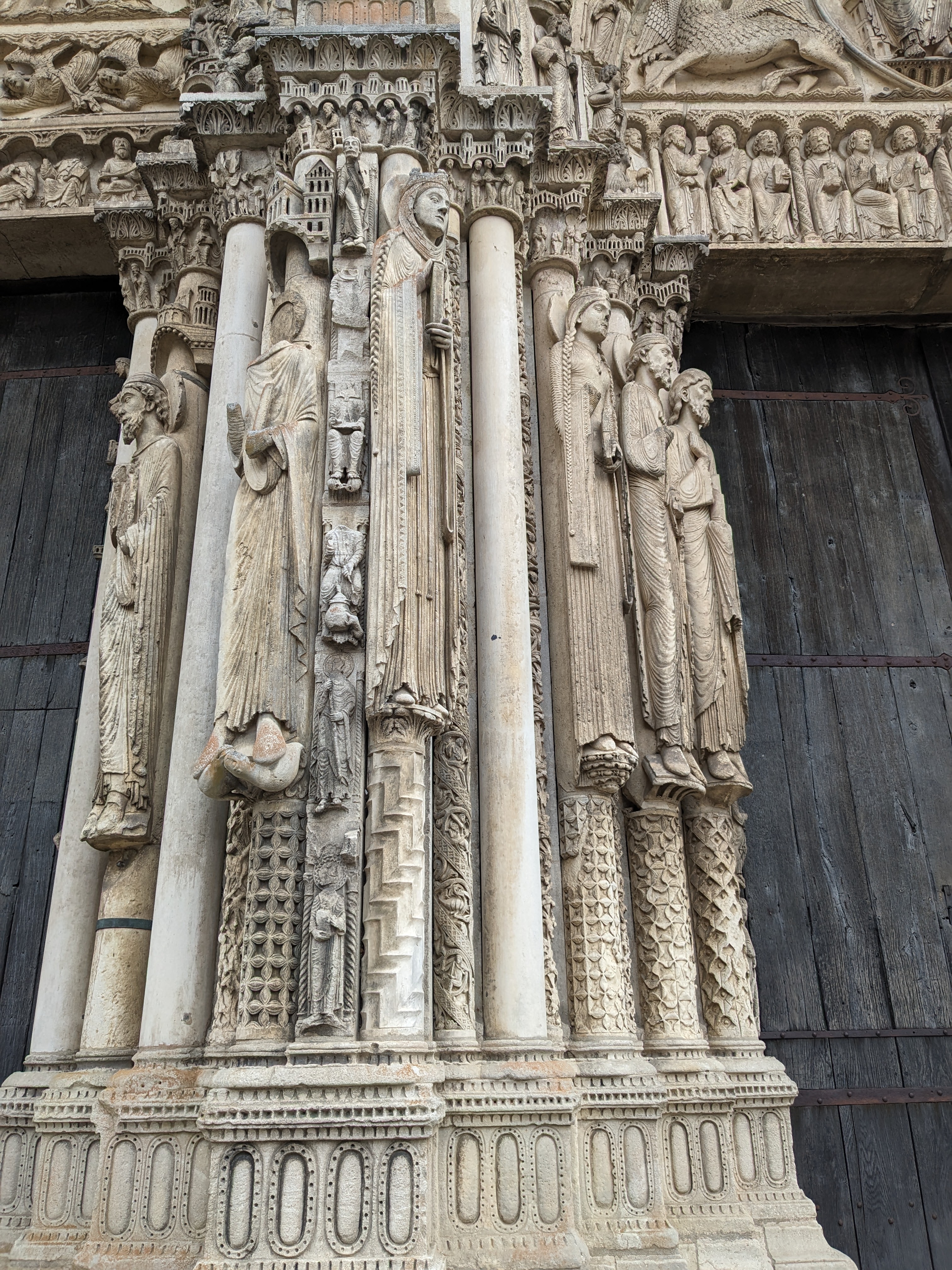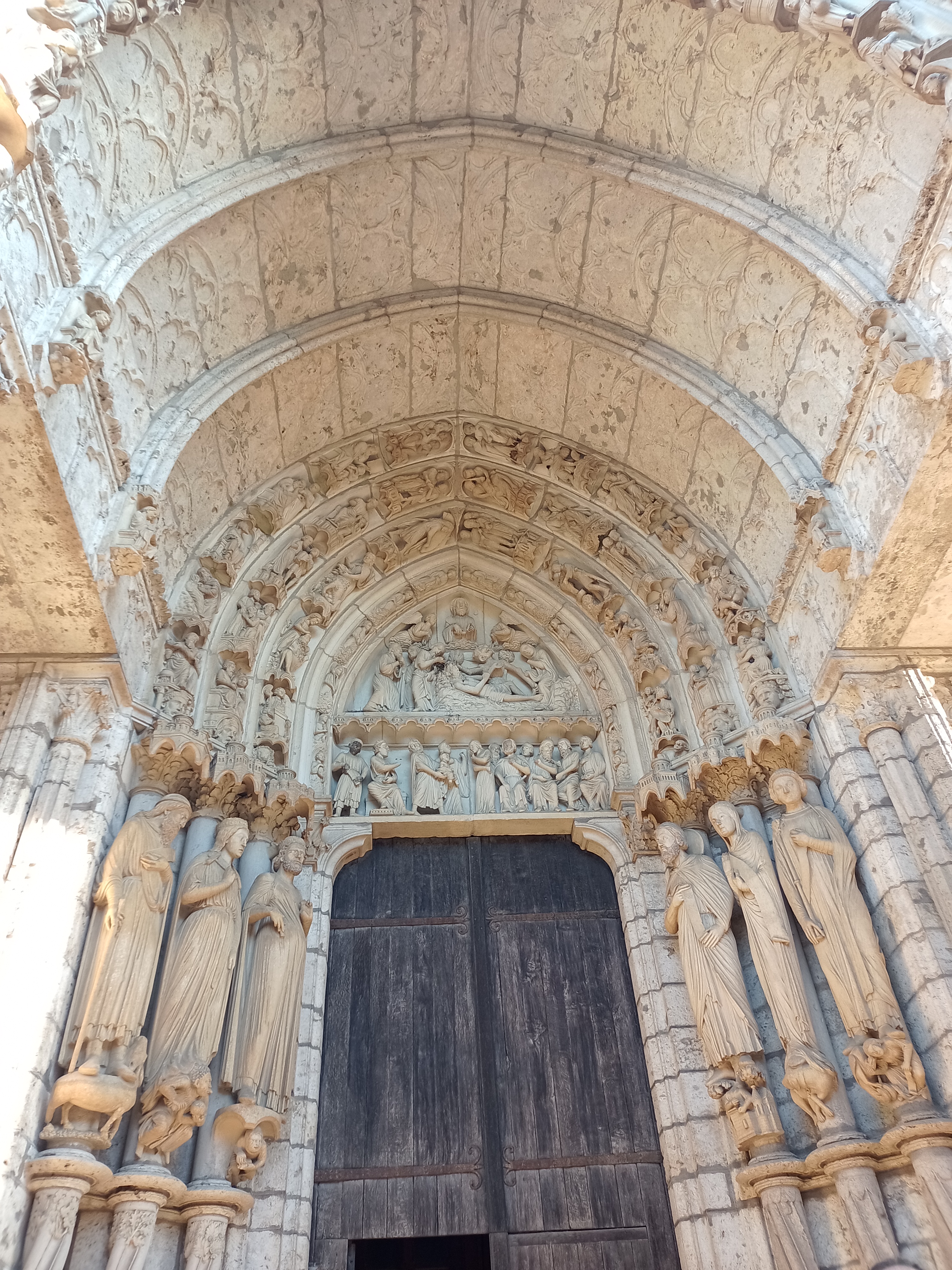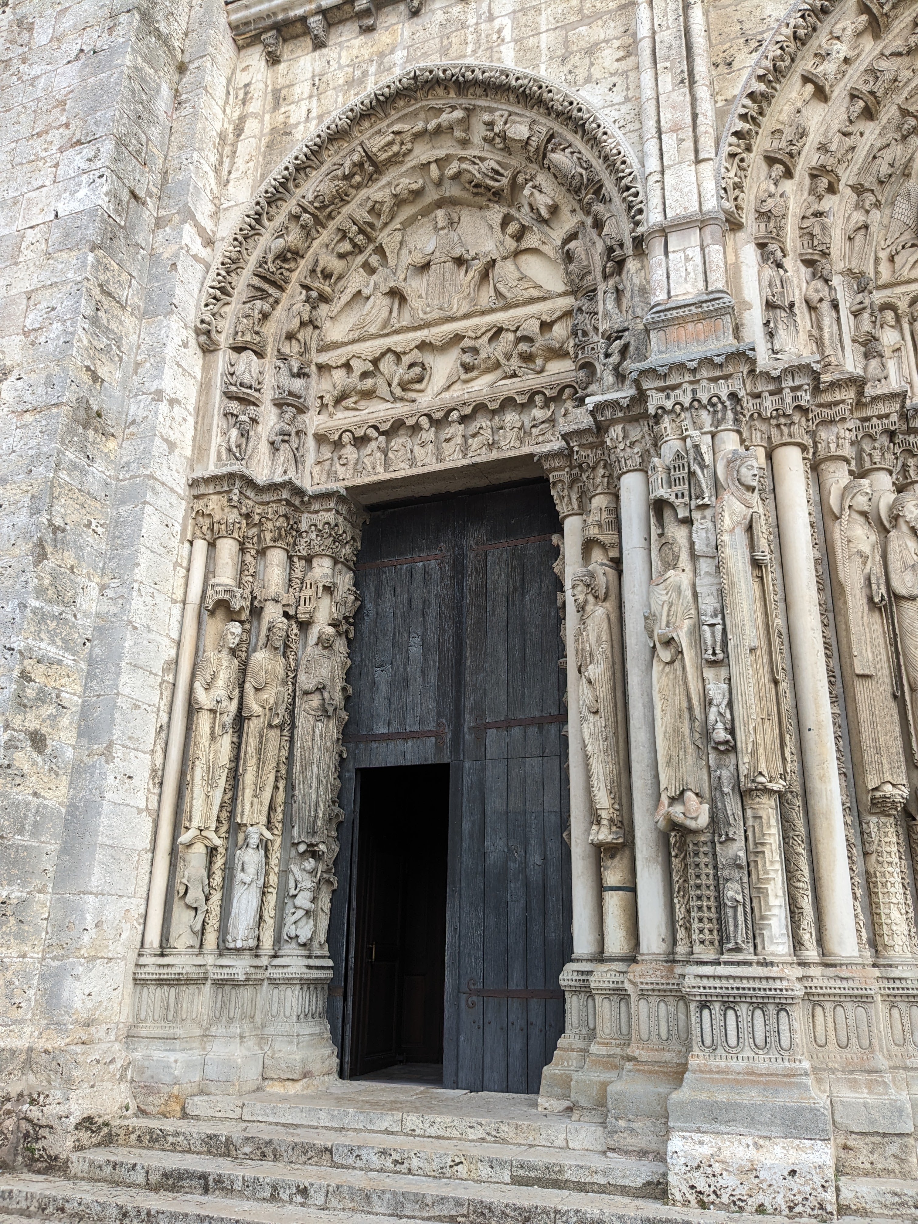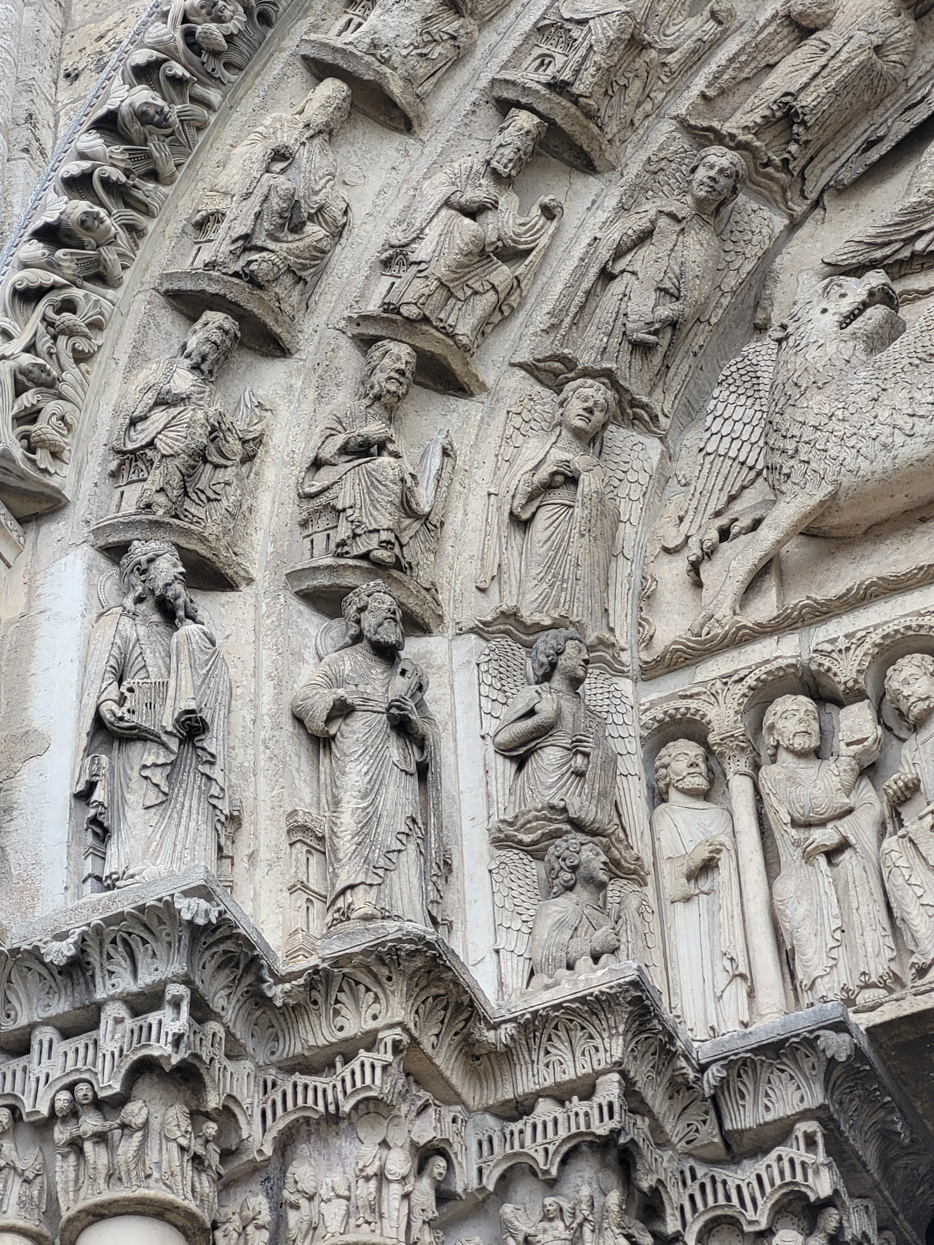 C'est la première fois que, de passage à Chartres, je prends la peine d'aller visiter cette merveille architecturale. Ses deux tours qui se voient à des kilomètres dans la plaine de la Beauce sont caractéristiques et incitent à en connaître plus. Après la visite, je me suis demandé si quelqu'un avait compté combien cette cathédrale renferme de statues. C'est absolument incroyable et toutes une merveille de sculpture. En regardant sur l'ordinateur certaines des photos que j'ai prises, j'ai découvert la finesse du travail effectué par les bâtisseurs de cette oeuvre. Je ne parle pas des vitraux qui sont tout aussi merveilleux.