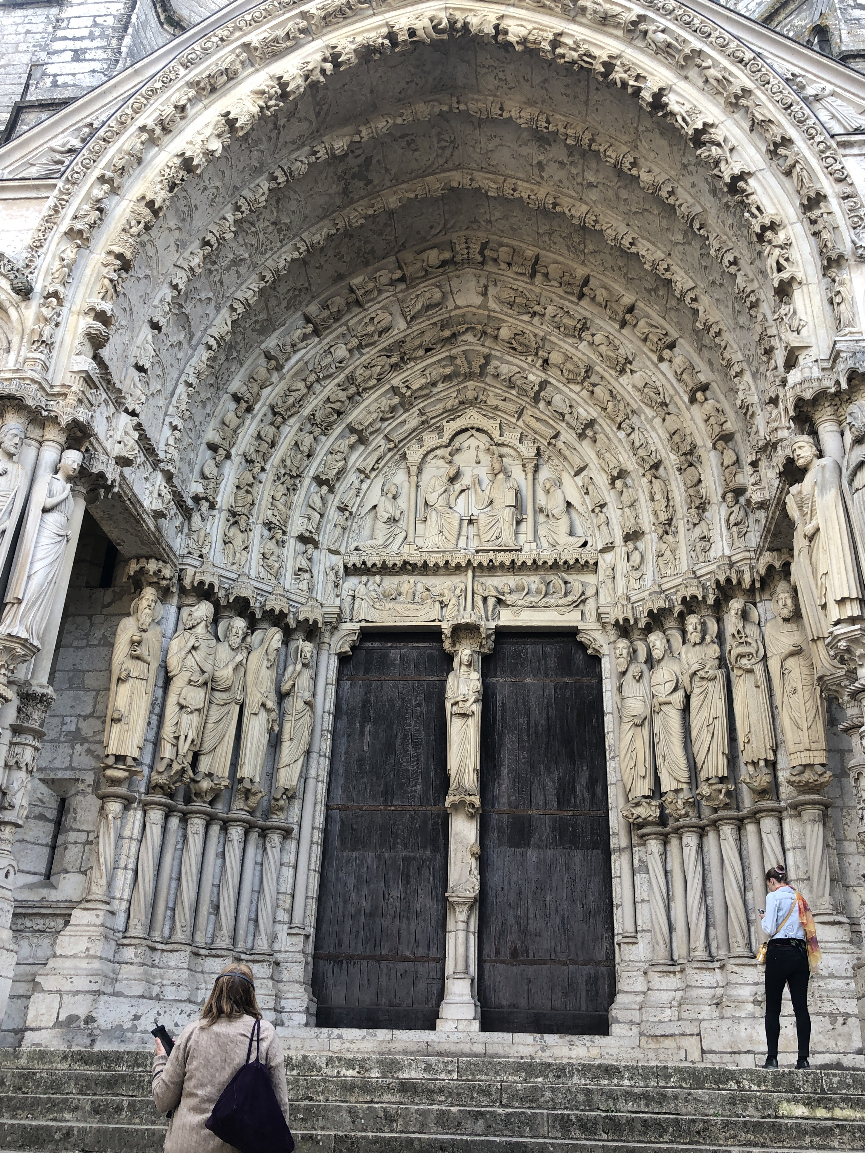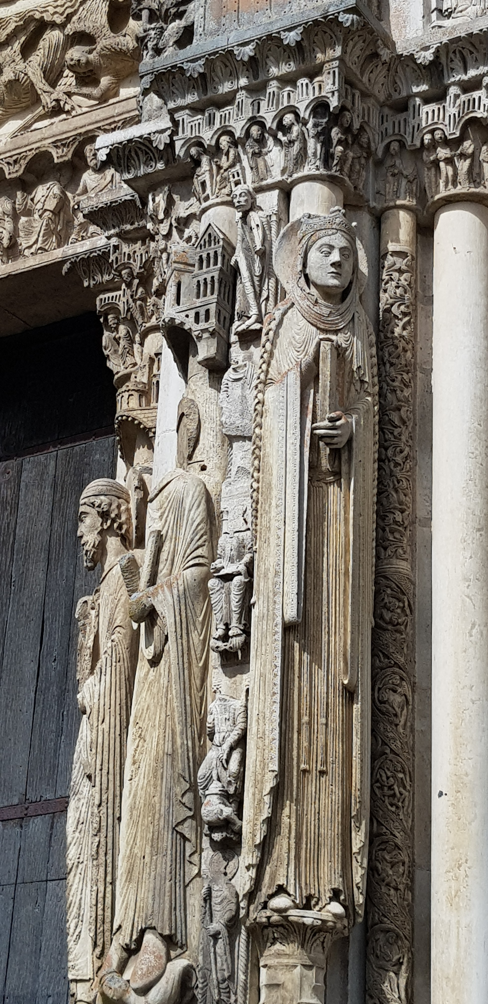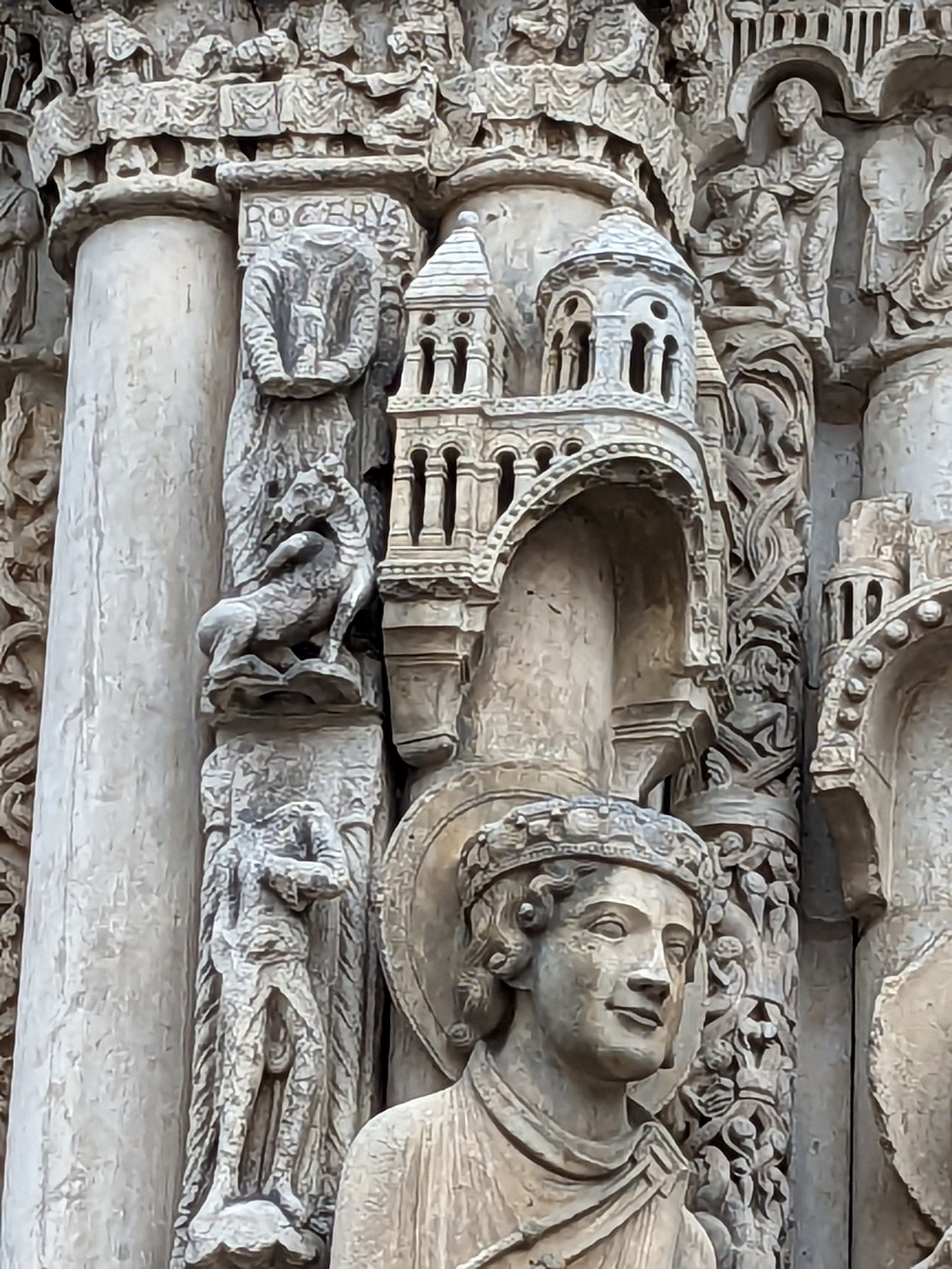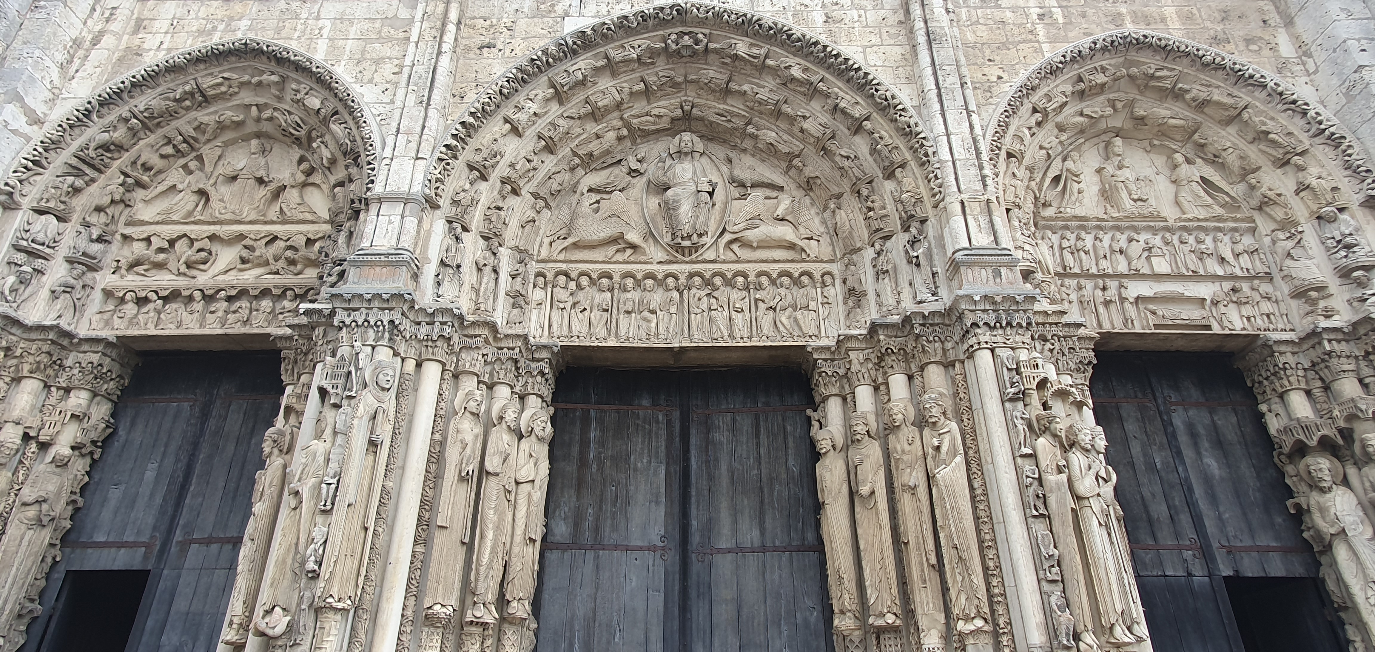 C'est la première fois que, de passage à Chartres, je prends la peine d'aller visiter cette merveille architecturale. Ses deux tours qui se voient à des kilomètres dans la plaine de la Beauce sont caractéristiques et incitent à en connaître plus. Après la visite, je me suis demandé si quelqu'un avait compté combien cette cathédrale renferme de statues. C'est absolument incroyable et toutes une merveille de sculpture. En regardant sur l'ordinateur certaines des photos que j'ai prises, j'ai découvert la finesse du travail effectué par les bâtisseurs de cette oeuvre. Je ne parle pas des vitraux qui sont tout aussi merveilleux.