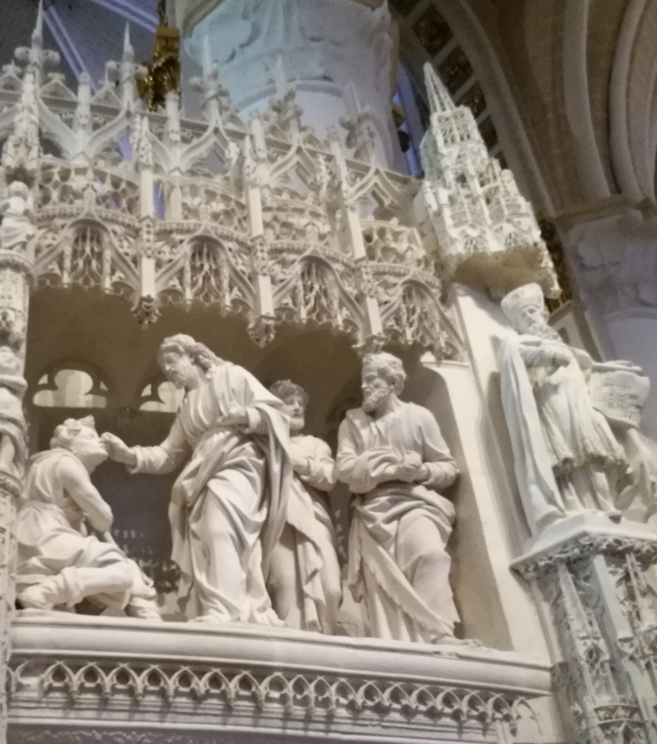 Magnifique, tant de belles sculptures, elle est en train d'être nettoyé et la pierre retrouve sa blancheur d'origine. Très belle cathédrale
