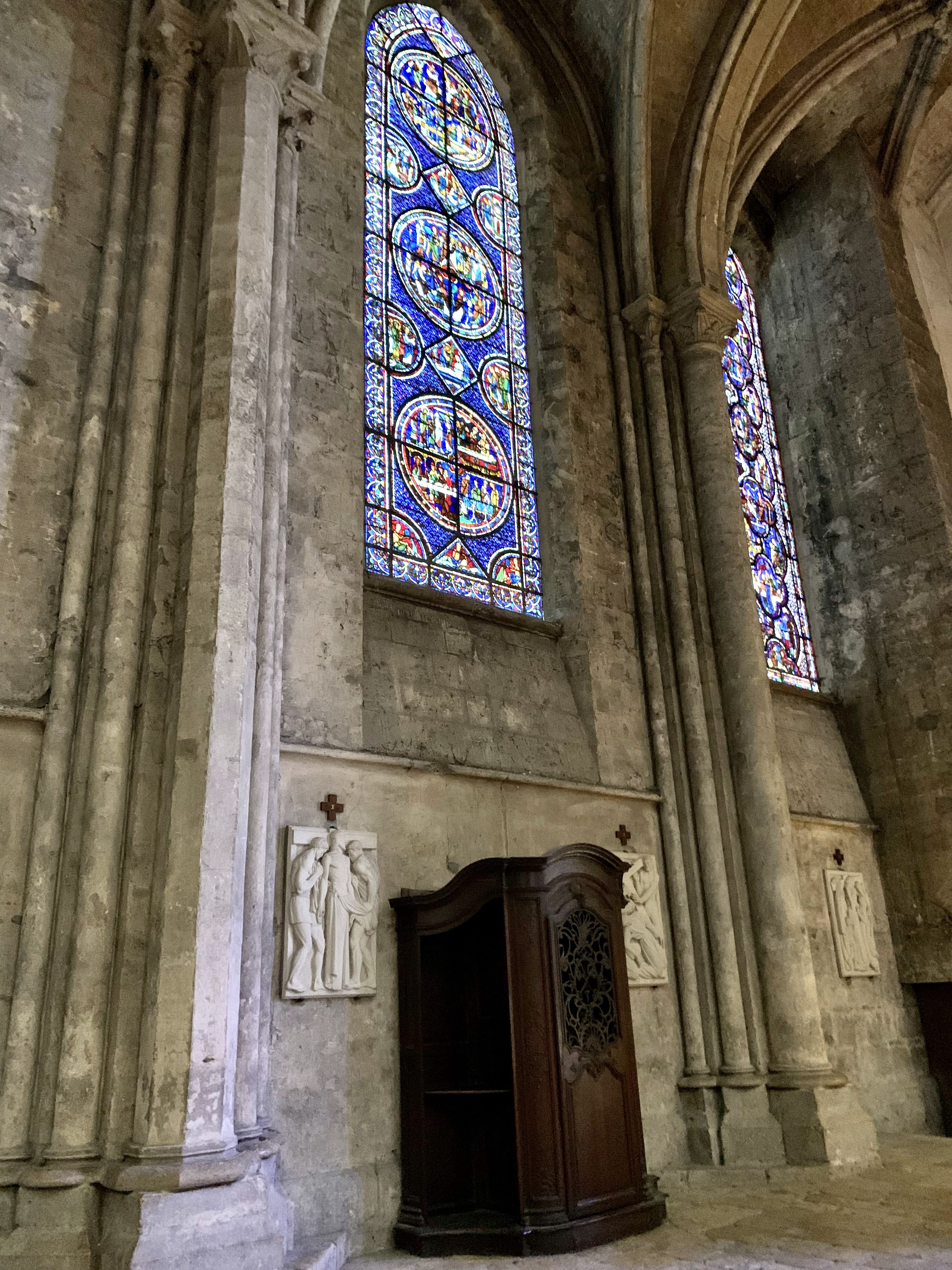 Belle cathédrale avoir pour ses vitraux et la clôture du chœur en pierre finement sculptee