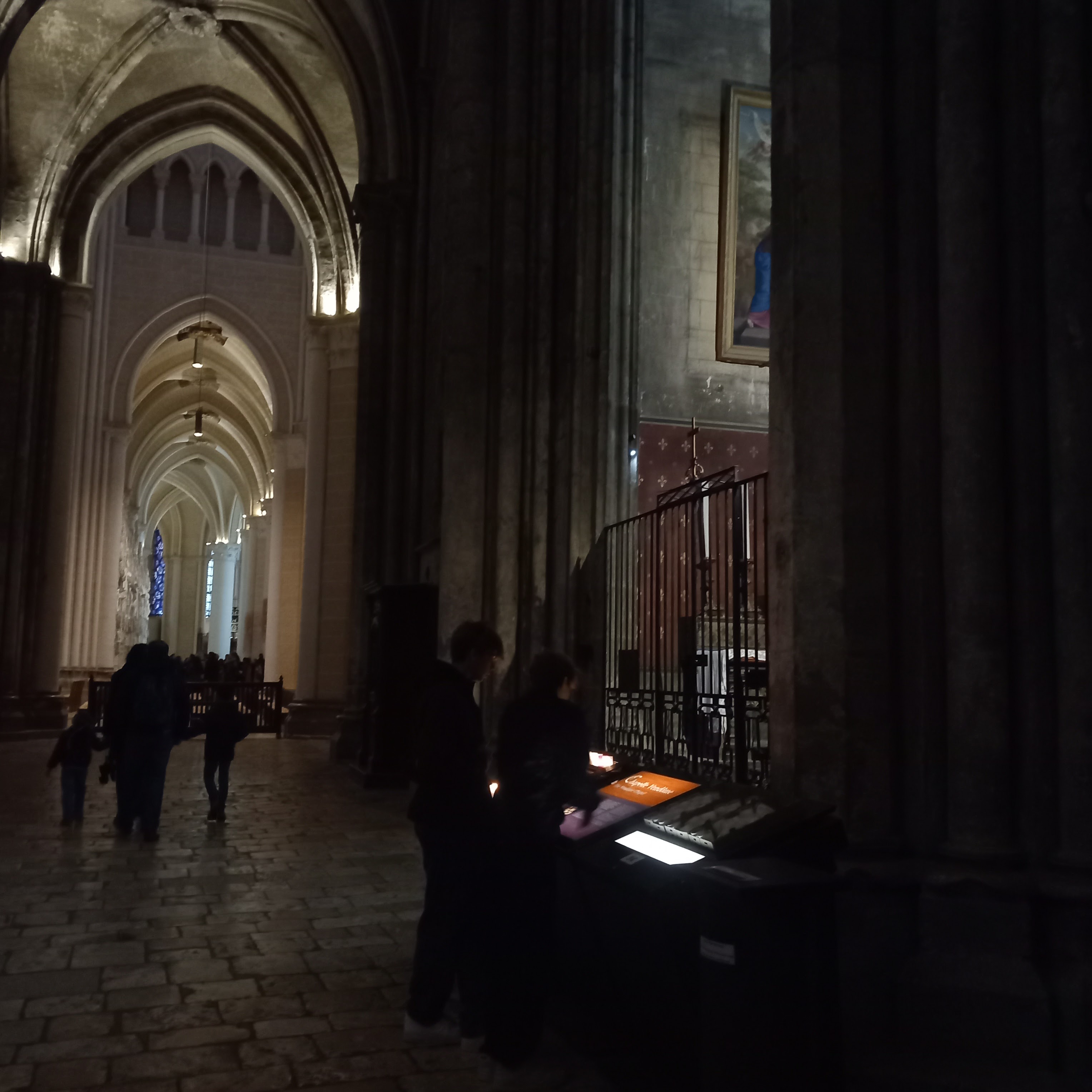 La cathédrale est magnifiquement éclairée dans l’obscurité grâce à deux jeux de lumière et projections. L'intérieur de la cathédrale est en partie recouvert d'échafaudages en raison de travaux de rénovation. Nous avons fait le tour des cryptes. Malheureusement, le guide ne parlait pas un mot d'anglais, seulement du français. Nous avons reçu une explication néerlandaise sur papier, mais le guide ne pouvait même pas nous dire à quelle partie de la visite nous nous trouvions. Malgré cela, la cathédrale vaut vraiment le détour.