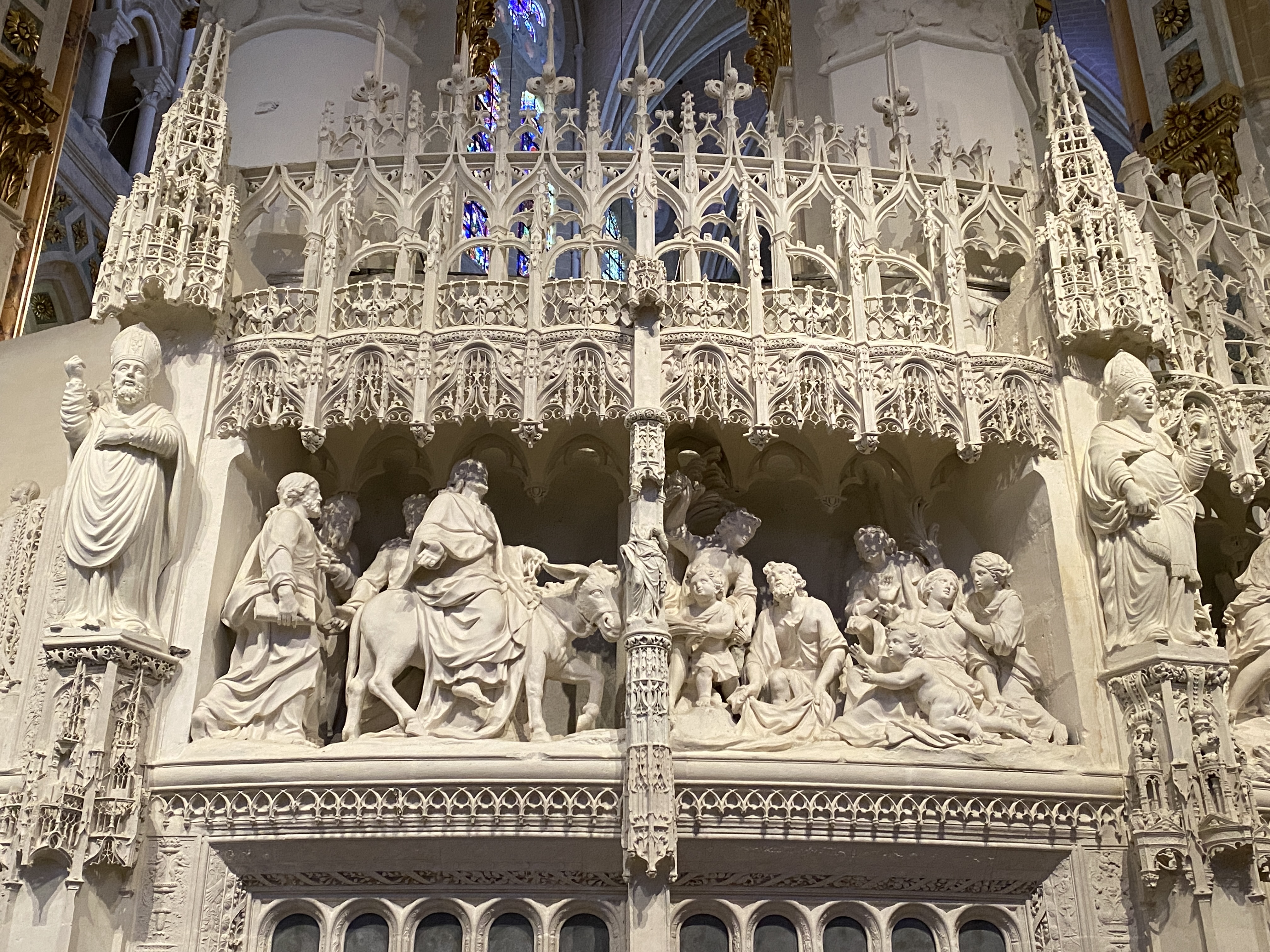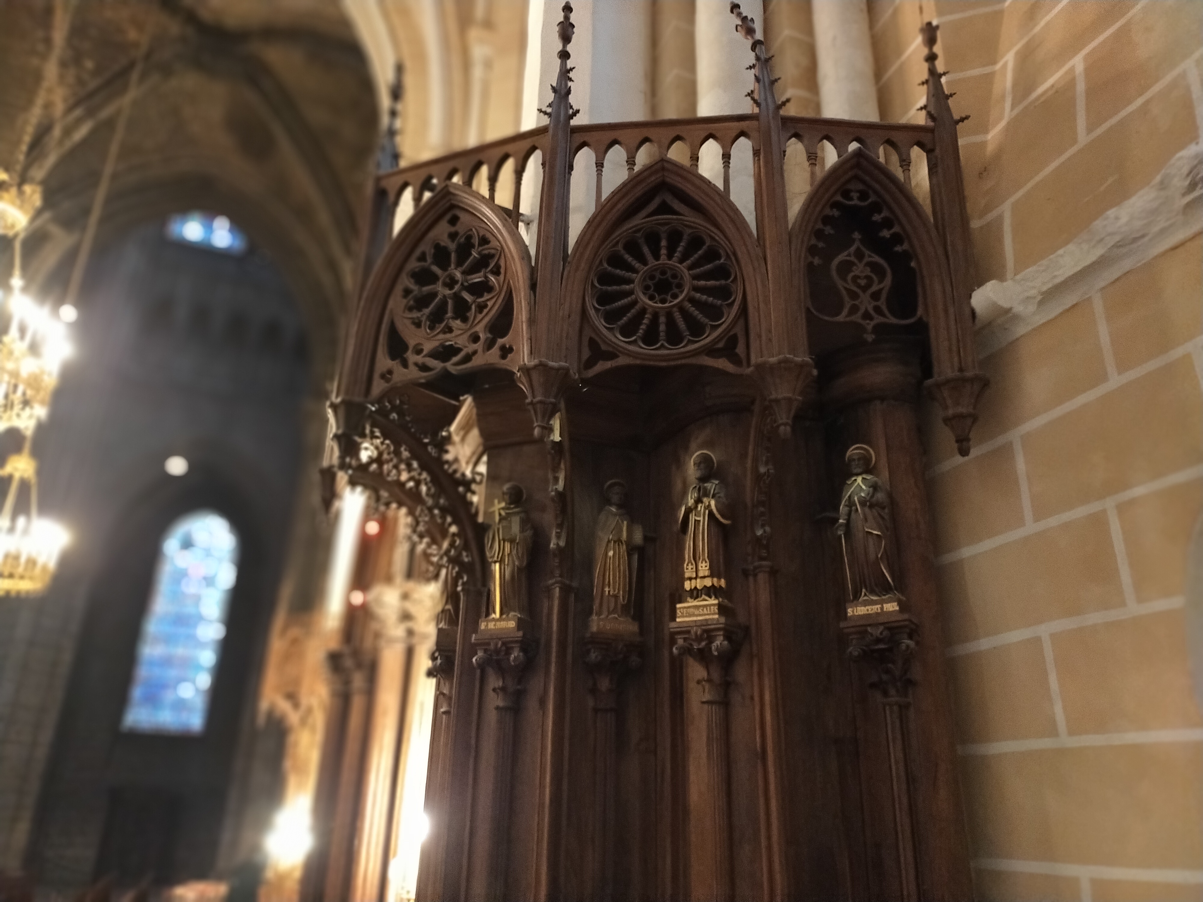 Cette cathédrale est une vraie merveille. Les vitraux sont de toute beauté, et les sculptures qui font le tour de la galerie sont remarquables