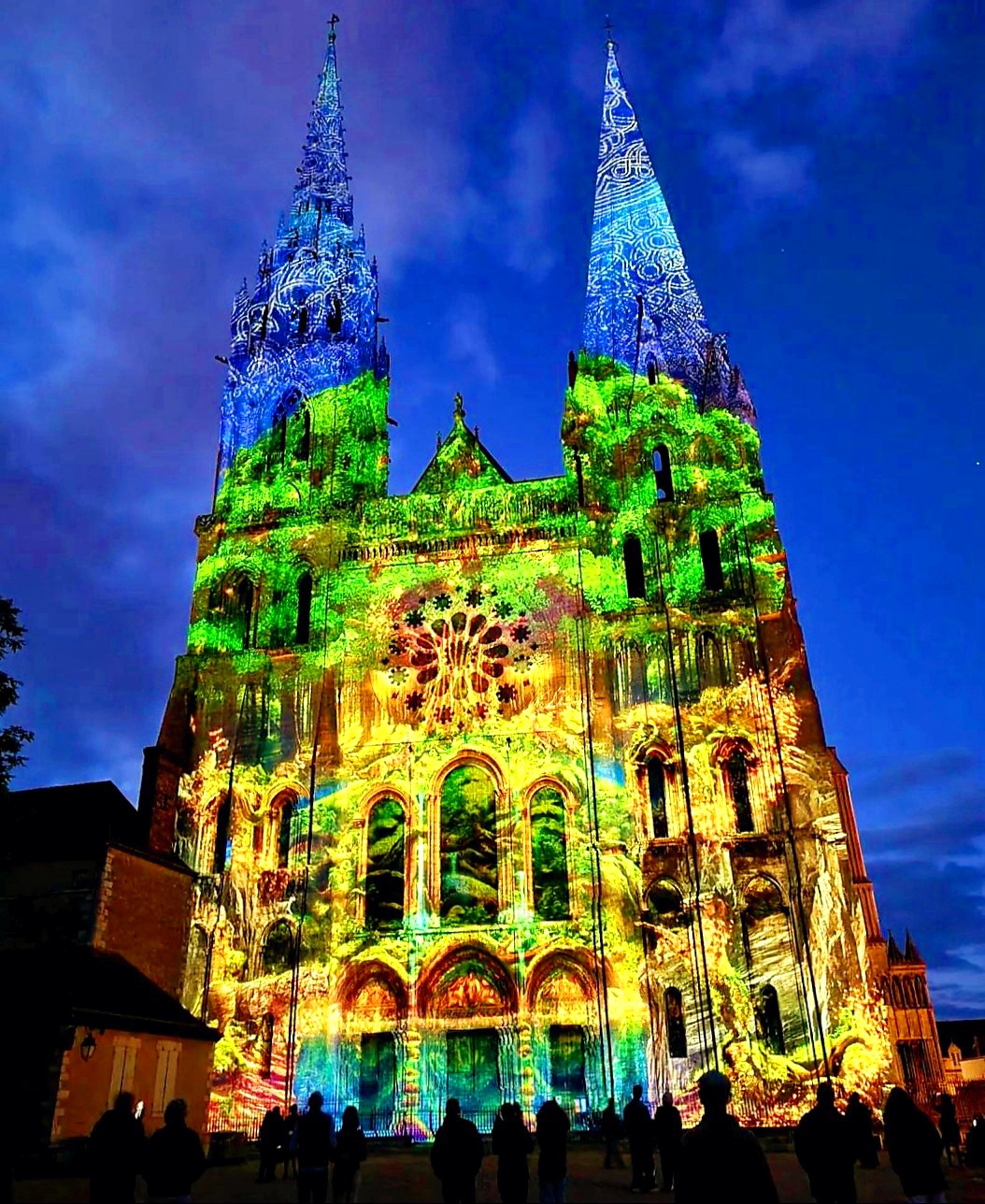 Chartres en Lumières jusqu’au 14 janvier 2023. À faire absolument! Magnifique de découvrir la Cathédrale habillée de ces couleurs, de ces lumières en mouvement. Un vrai plaisir, un voyage visuel hors du temps.