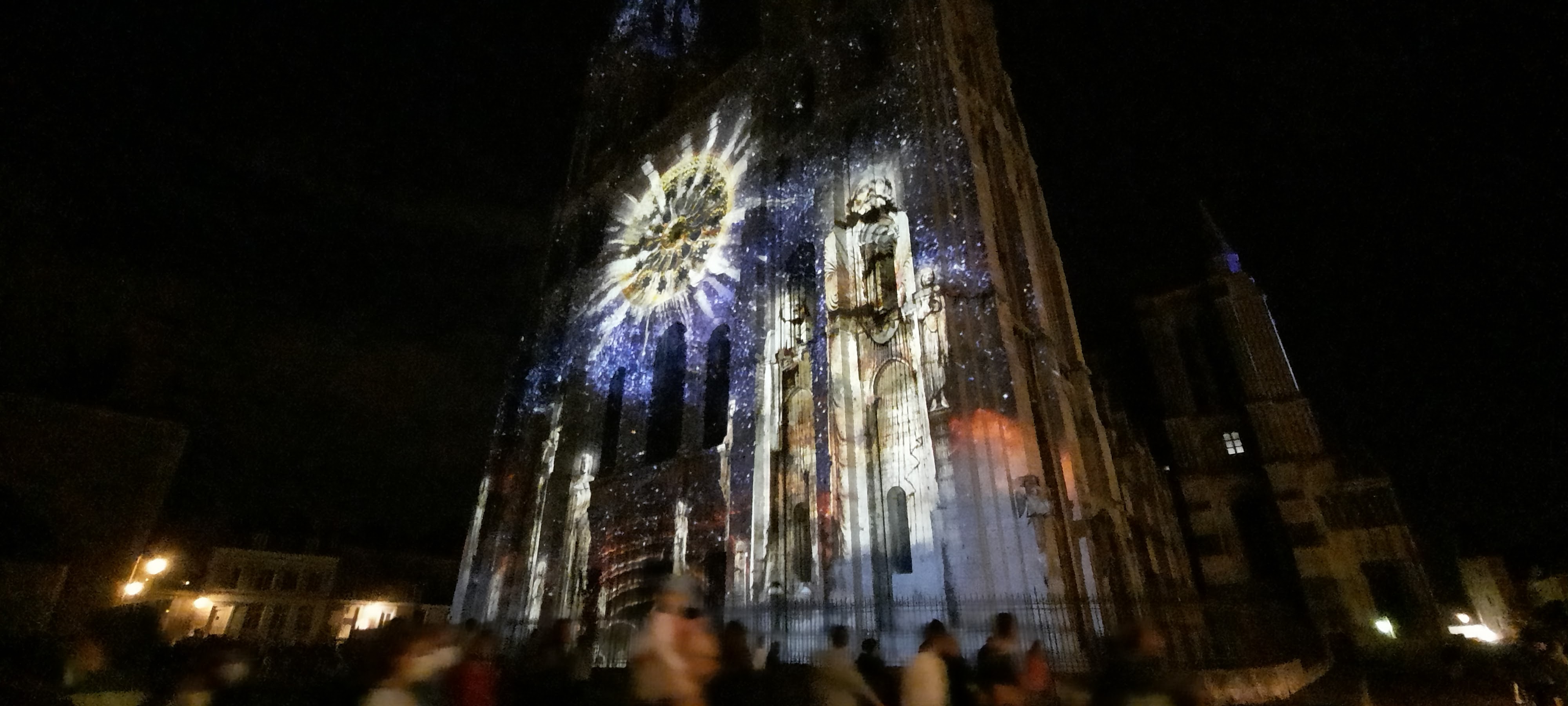 Le spectacle de son et lumière commence à la tombée de la nuit, du côté de la grande place. Il y a quelques pierres pour s’assoir (les projections sur cette façade durent environ 40 min !). Original et gratuit, je recommande cette sortie. Pour le parking, vous pouvez opter pour Q-Park Cathédrale.