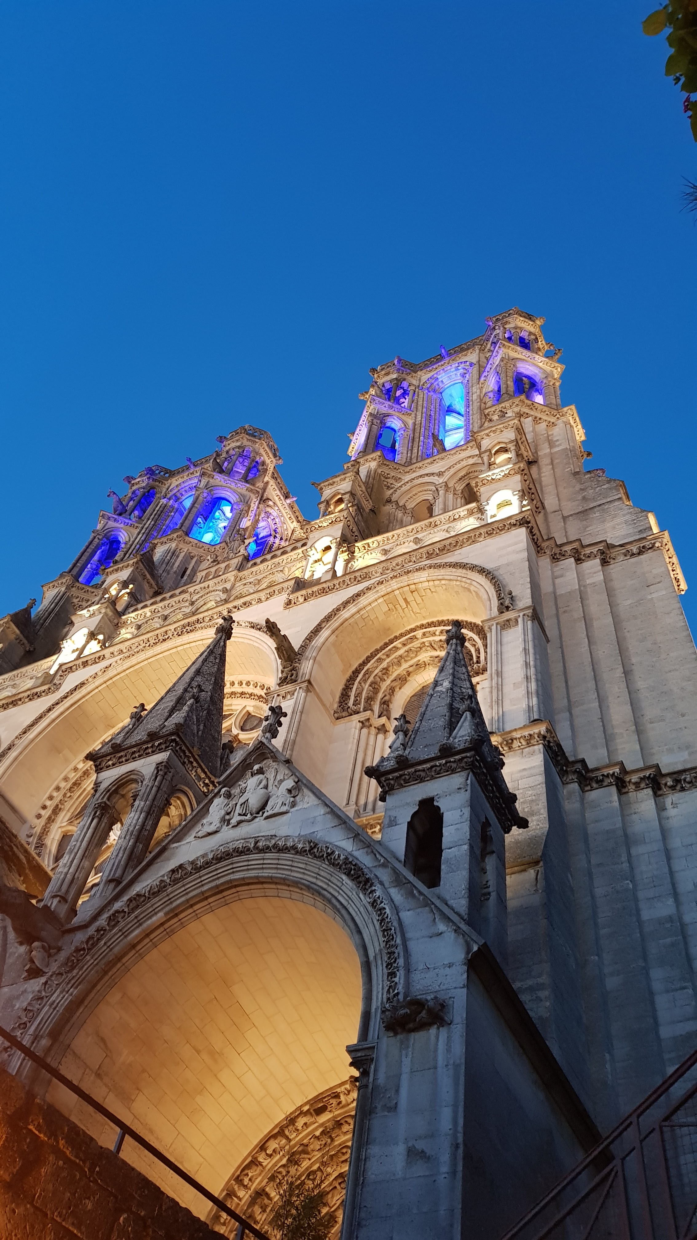 Superbe édifice. Éclairée de bleu, ses 2 tours magestueuses prônent sur le haut de la colline. Une superbe rosace vous accueille en façade, et des vitraux magnifiques. A visiter..
