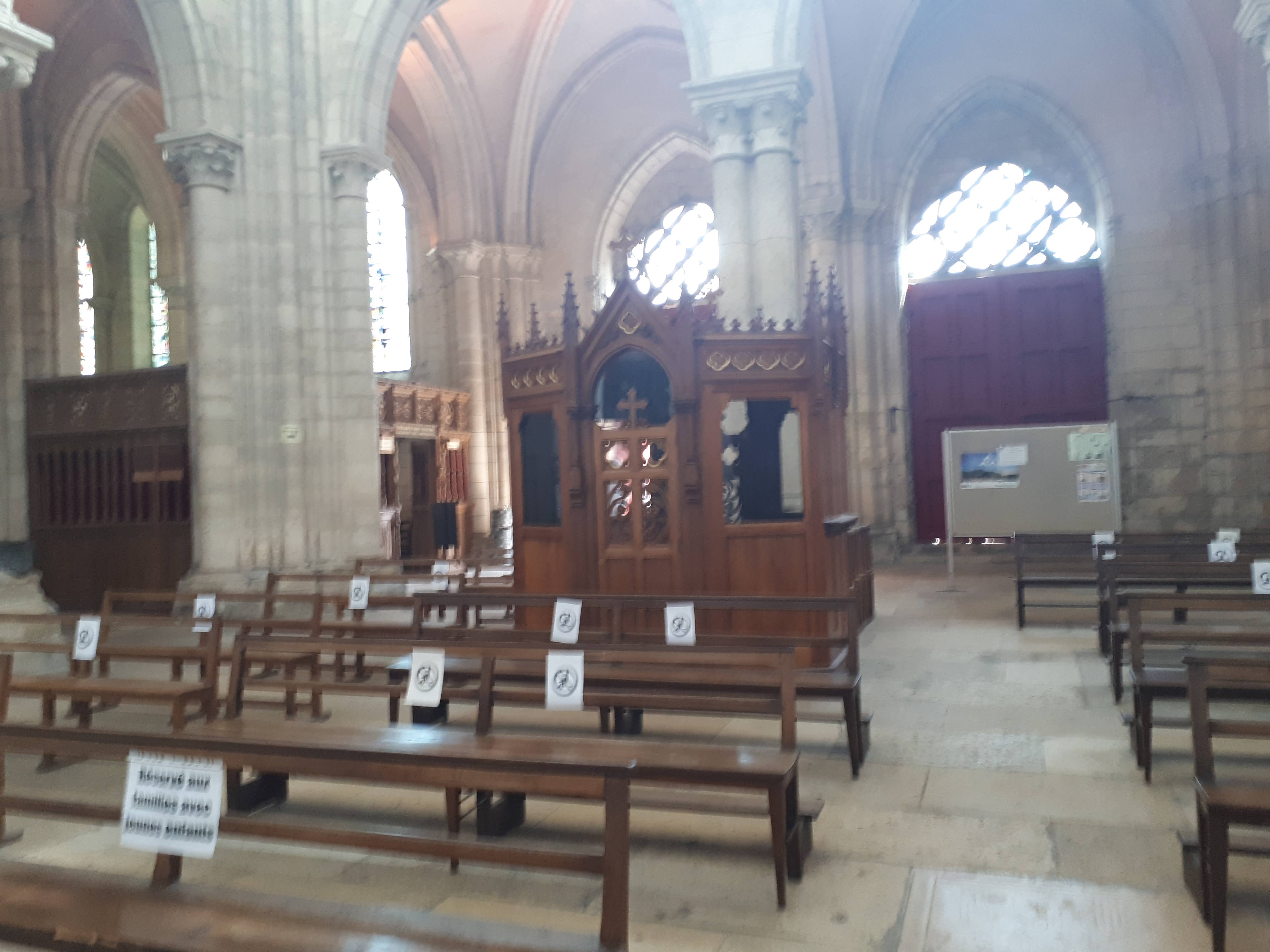 Magnifique cathédrale, un grand espace libre sur grande hauteur et une partie privative en fond, vitraux et un magnifique harmonium .