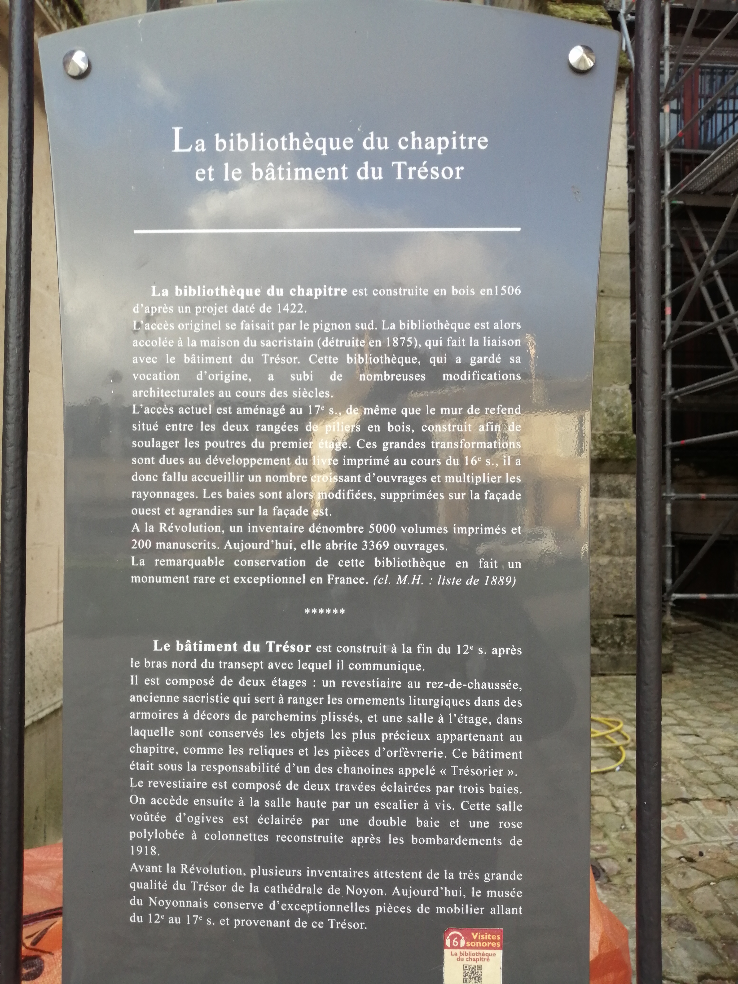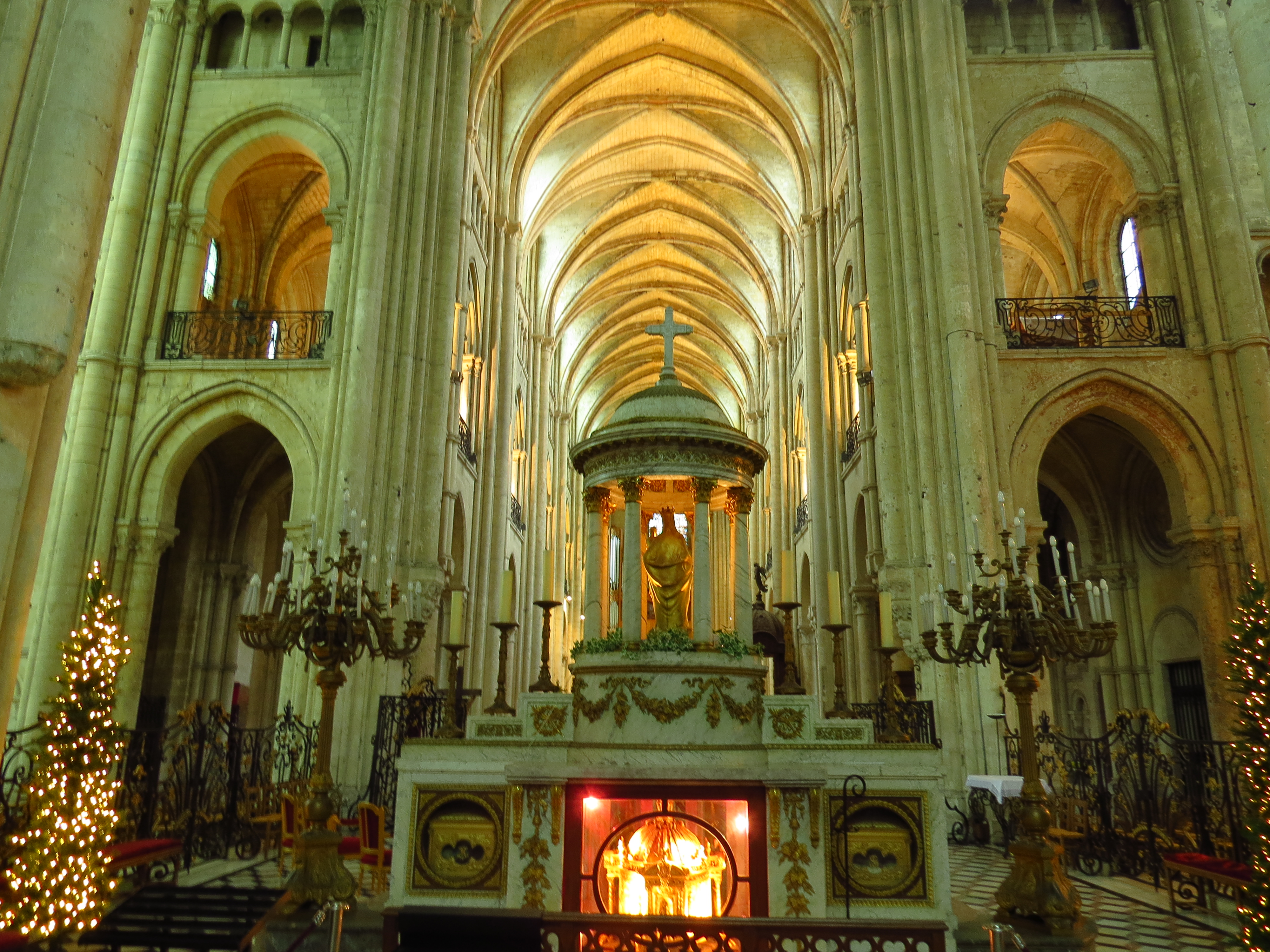 Très belle cathédrale de Noyon, l'ancienne bibliothèque du Chapitre attenante. Le reliques de St Eloi dans l'autel, ainsi que 2 autres avec lui.
