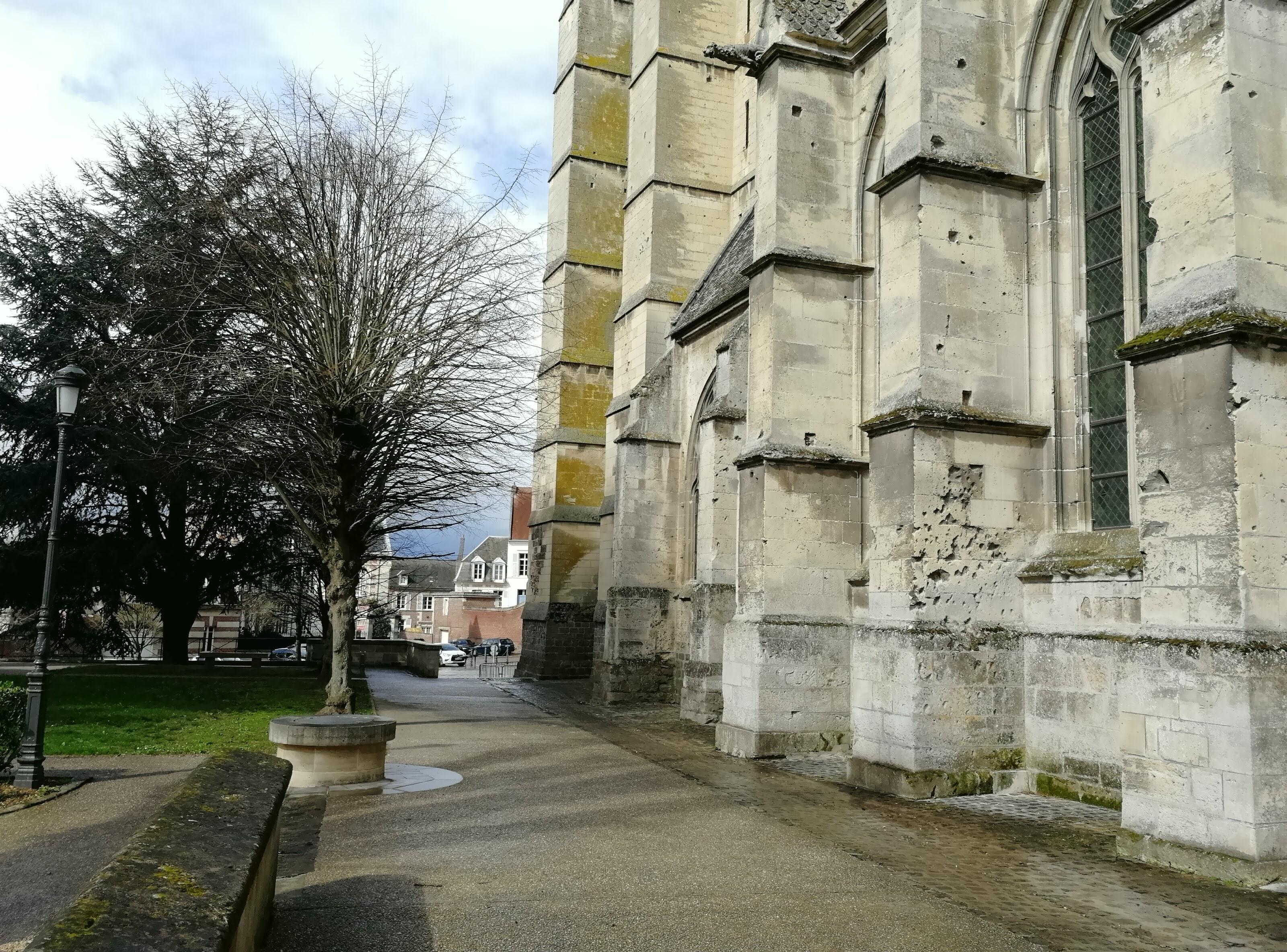 Belle cathédrale Grande cathédrale Cloître attenant Stigmates de la première guerre J' ai beaucoup aime