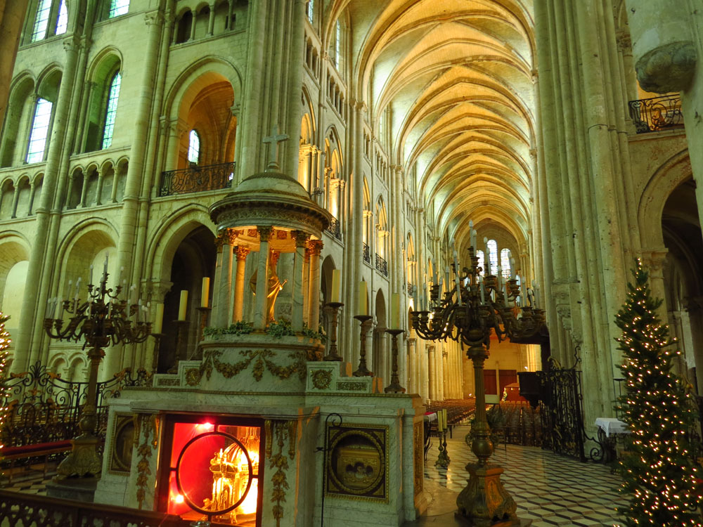 Lieu très éclairé (par rapport à NDame de Paris), du fait de vitraux supérieurs clairs.
