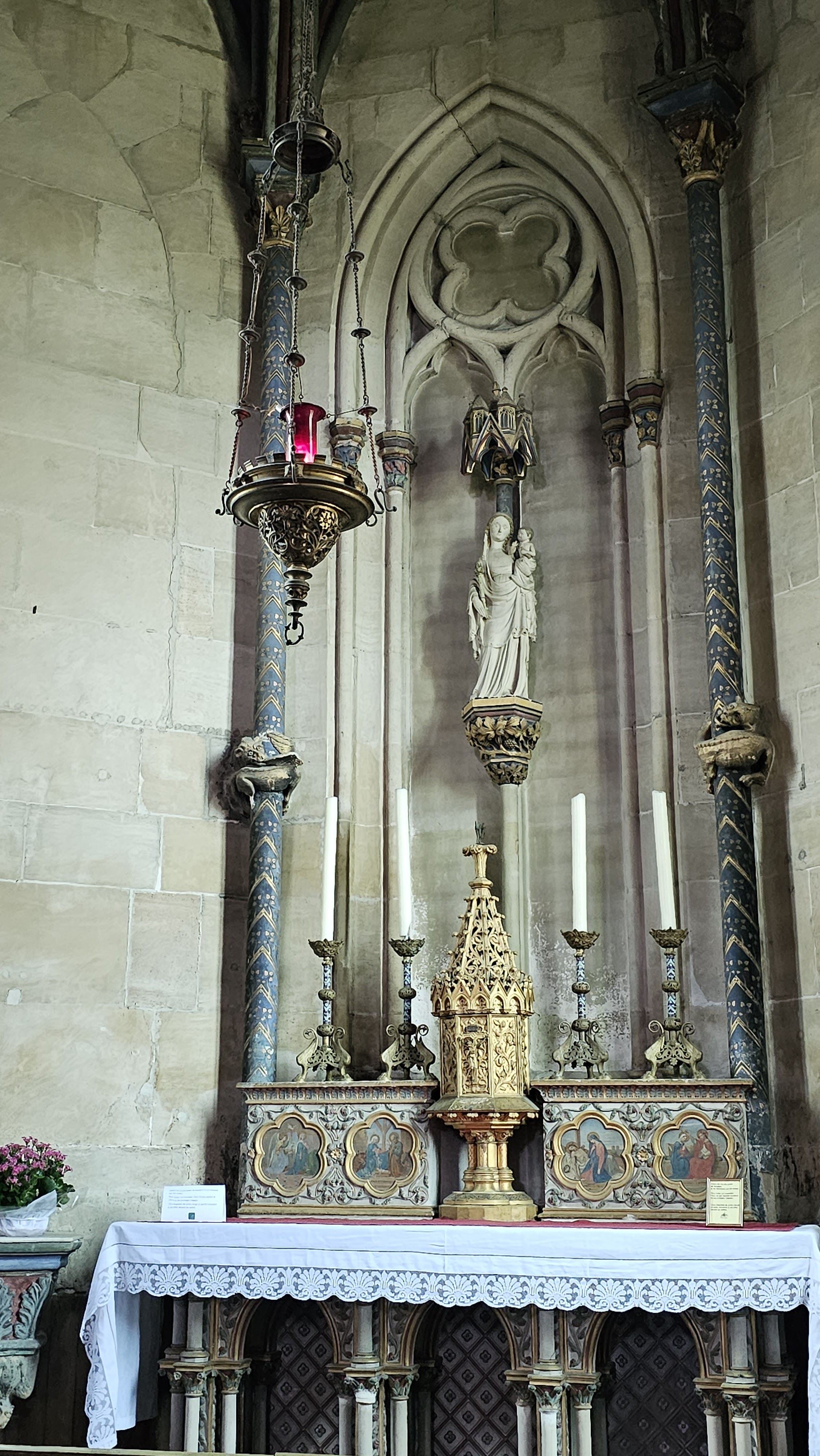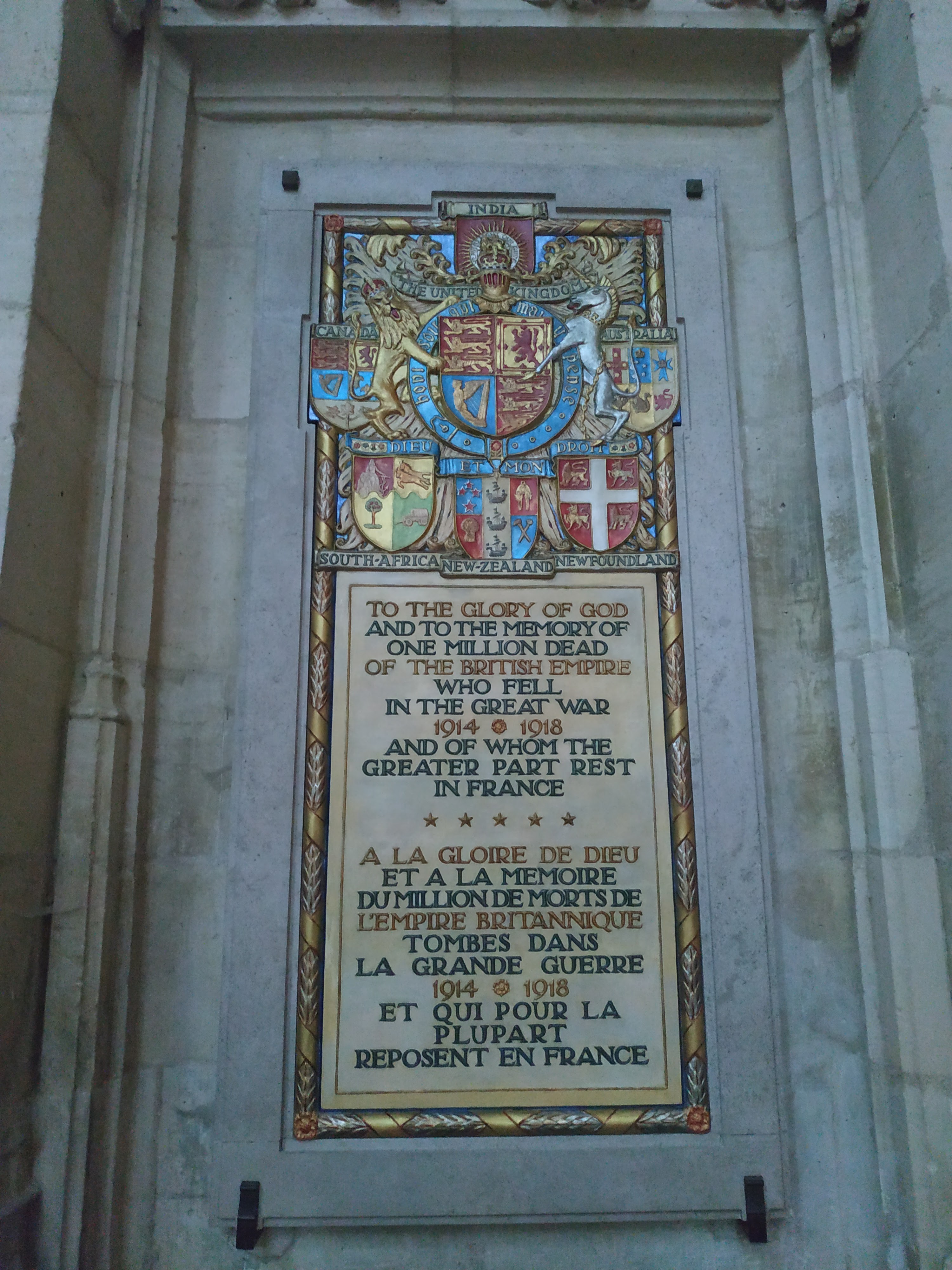 Pas de toilettes à l'intérieur, mais il y en a sur le parking. Une petite porte dissimulée. Il faut les chercher... Cathédrale, assez petite. Des travaux sont en cours sur l'orgue. Des sculptures du 13 ème siècles, des vitraux plus ou moins anciens (en général plus ils sont anciens, plus ils sont beaux) et quelques peintures, en général en bon état (pas de traces noires... On peut penser qu'elles ont été rénovées récemment). On y trouve aussi quelques traces de polychromie ancienne sur les plafonds... Une plaque en mémoire des soldats de l'Empire Britannique morts lors de la première guerre mondiale