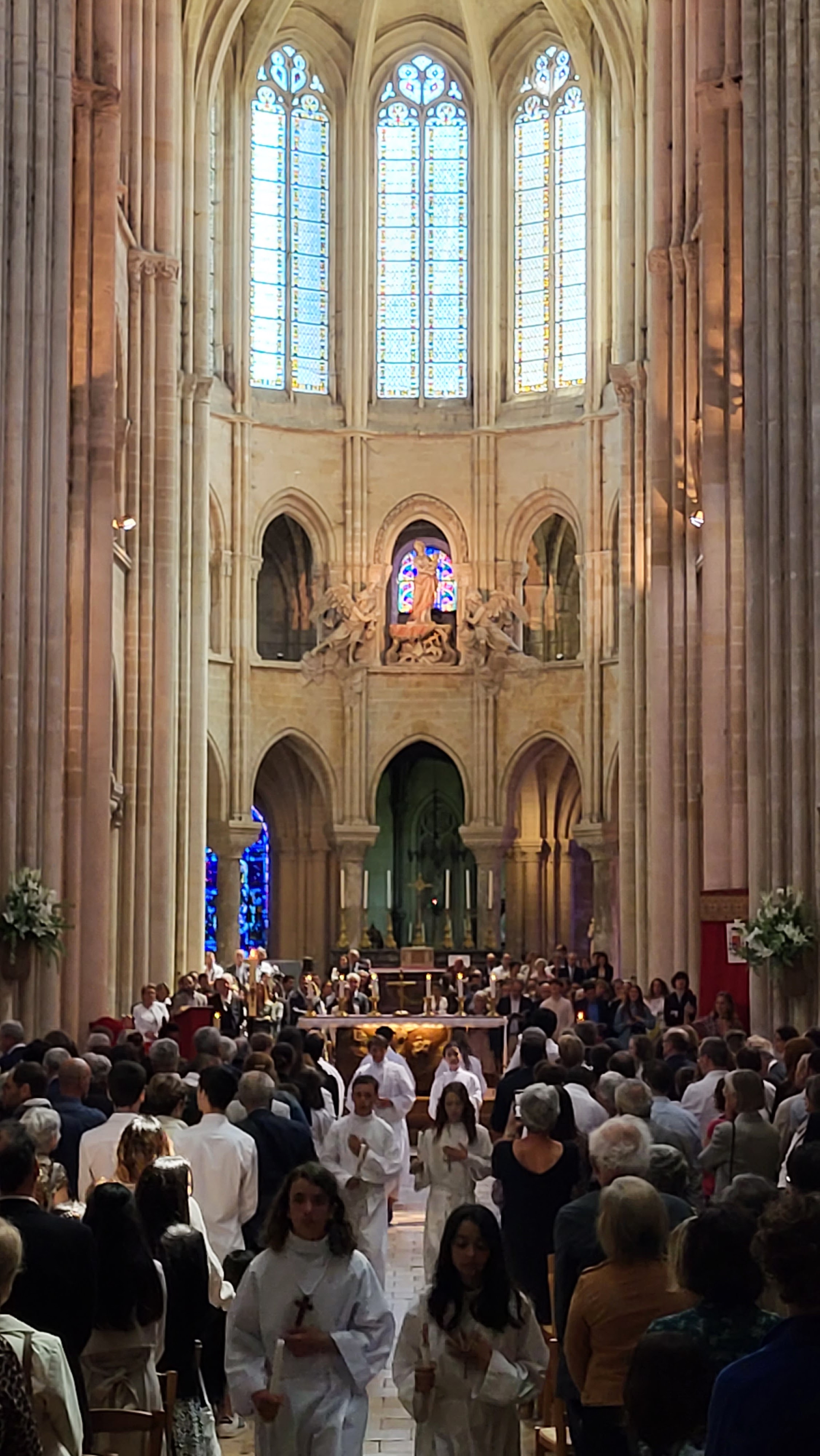 La cathédrale est magnifique et l accueil des chrétiens de cette paroisse est chaleureux . La messe est priante et joyeuse ! Merci Senlis!