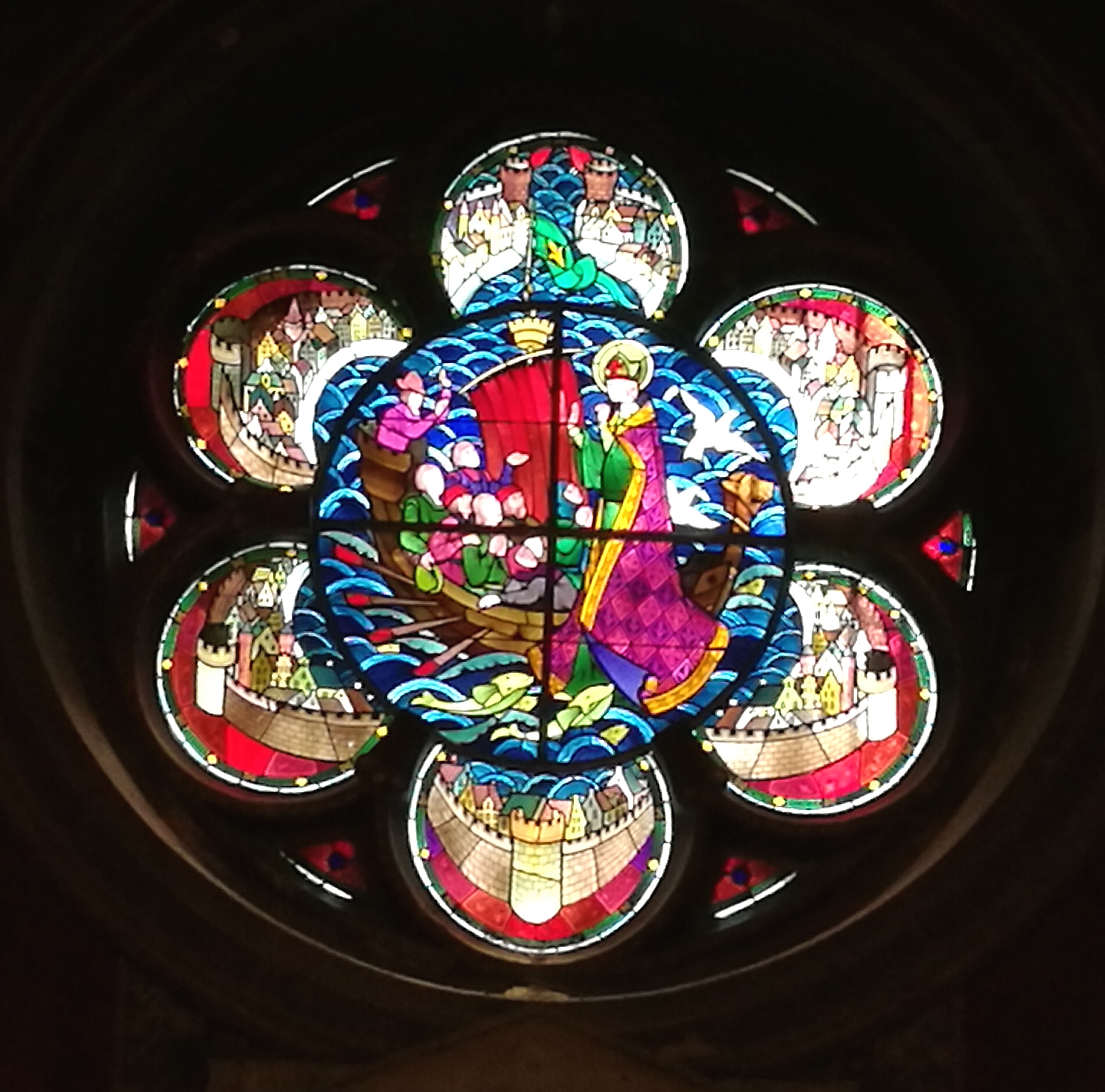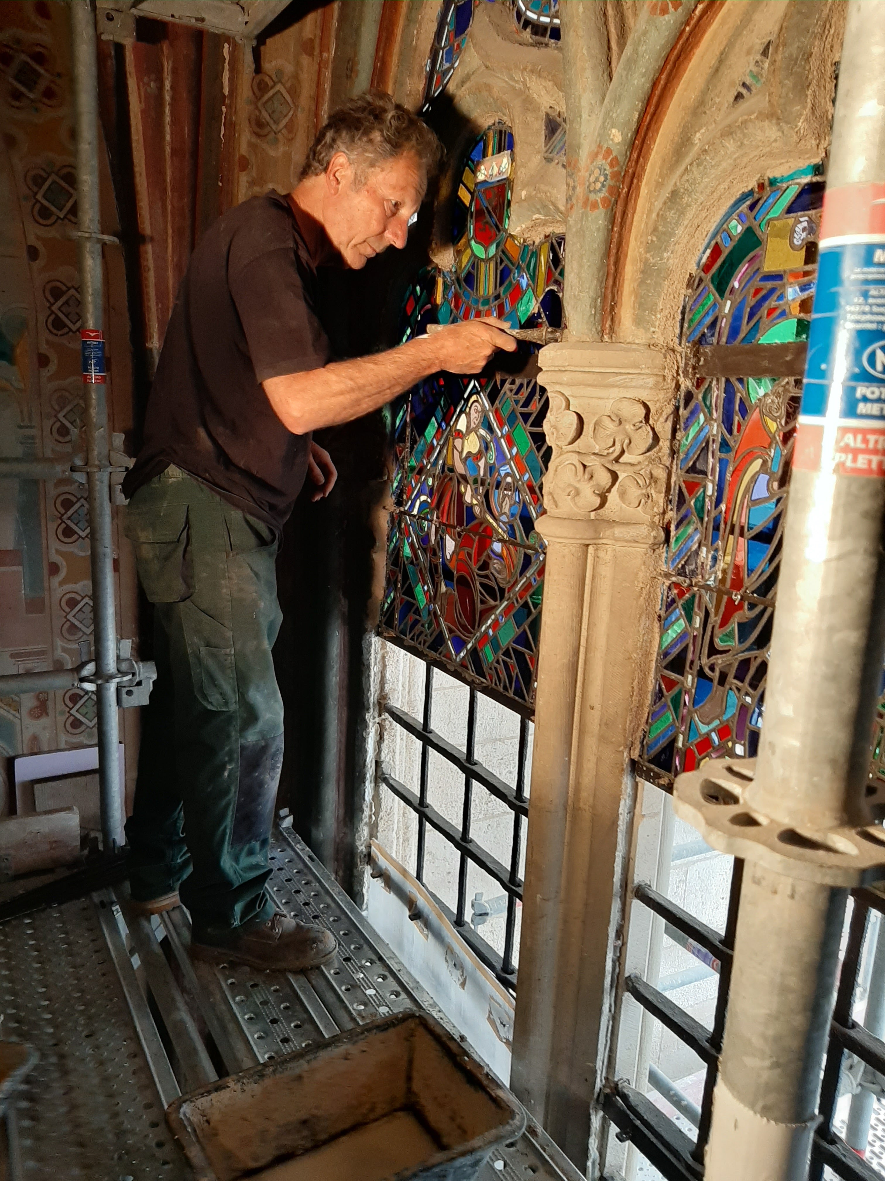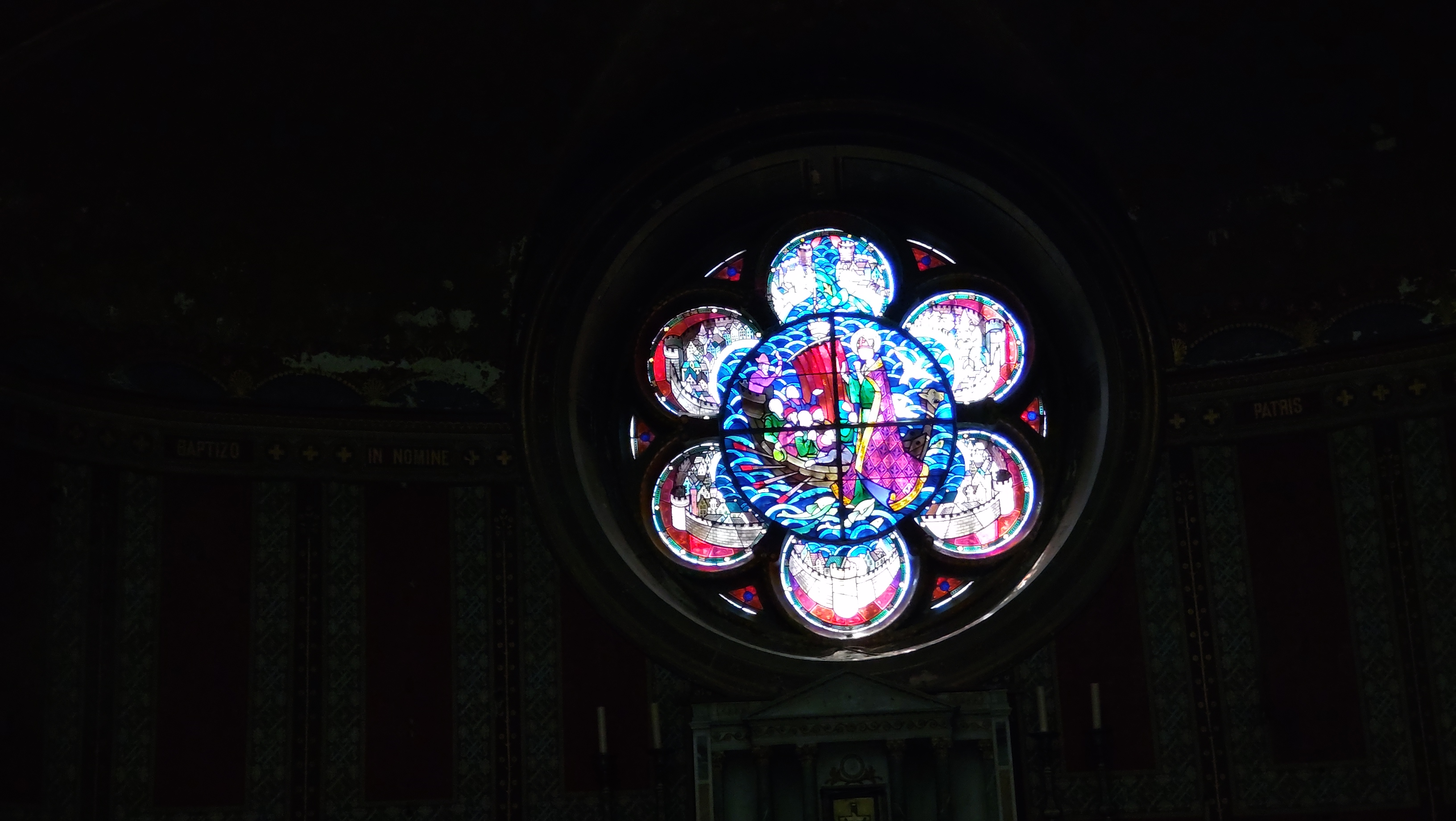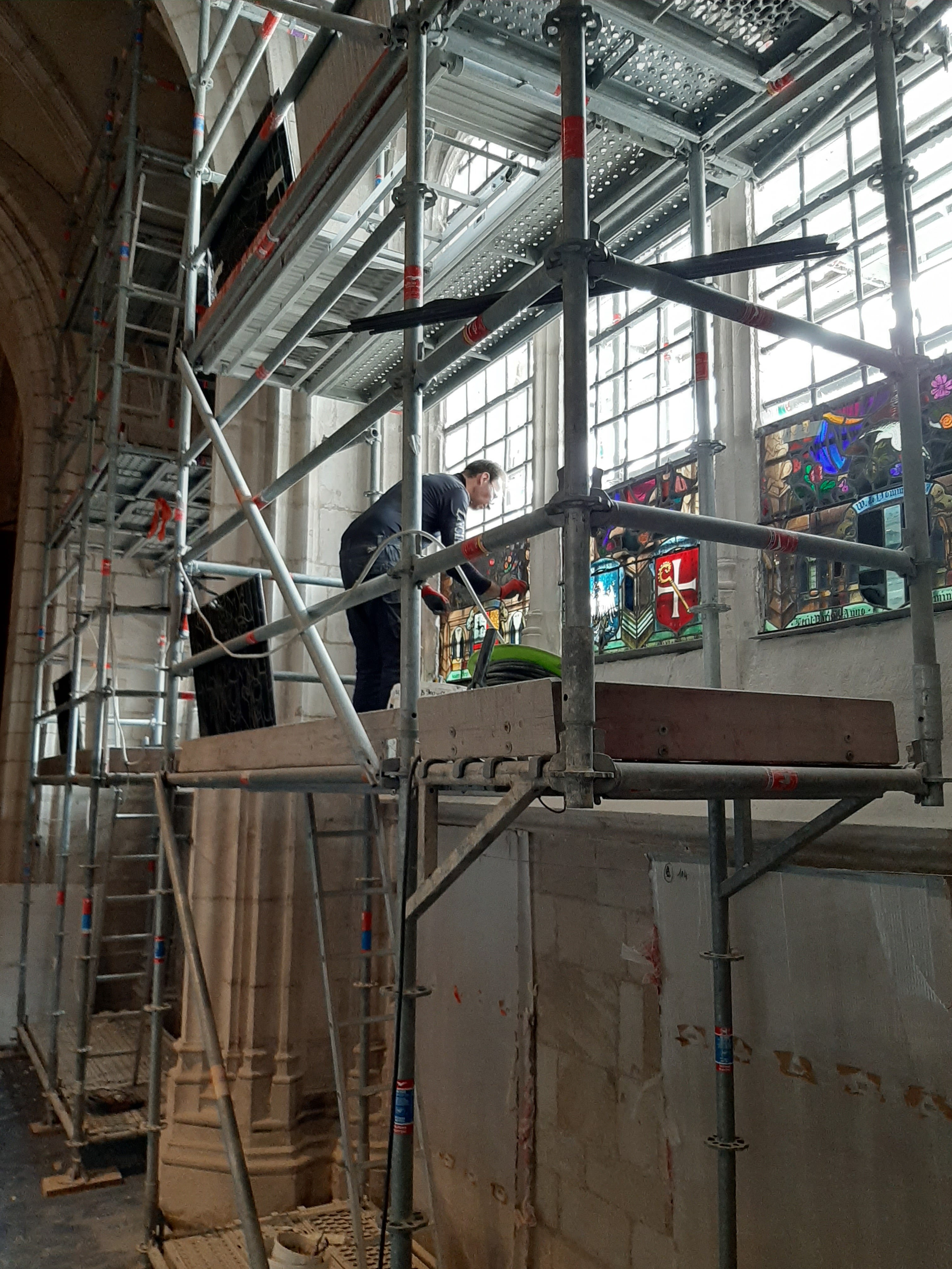 Beaux vitraux, mais l'extérieur est sous échafaudage.