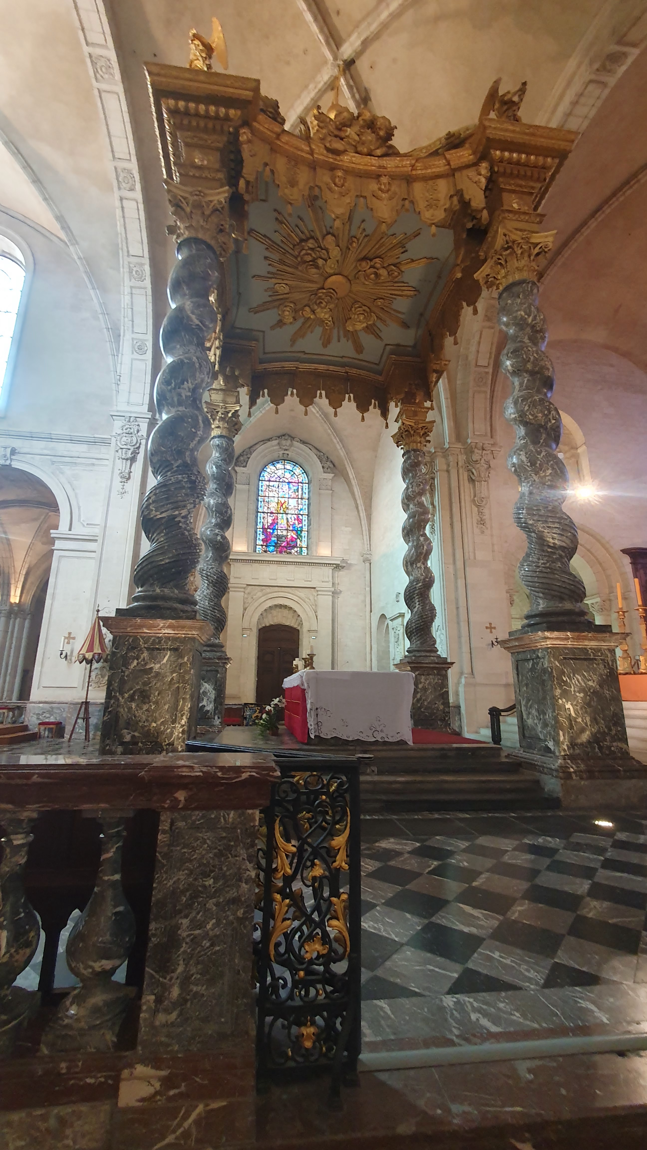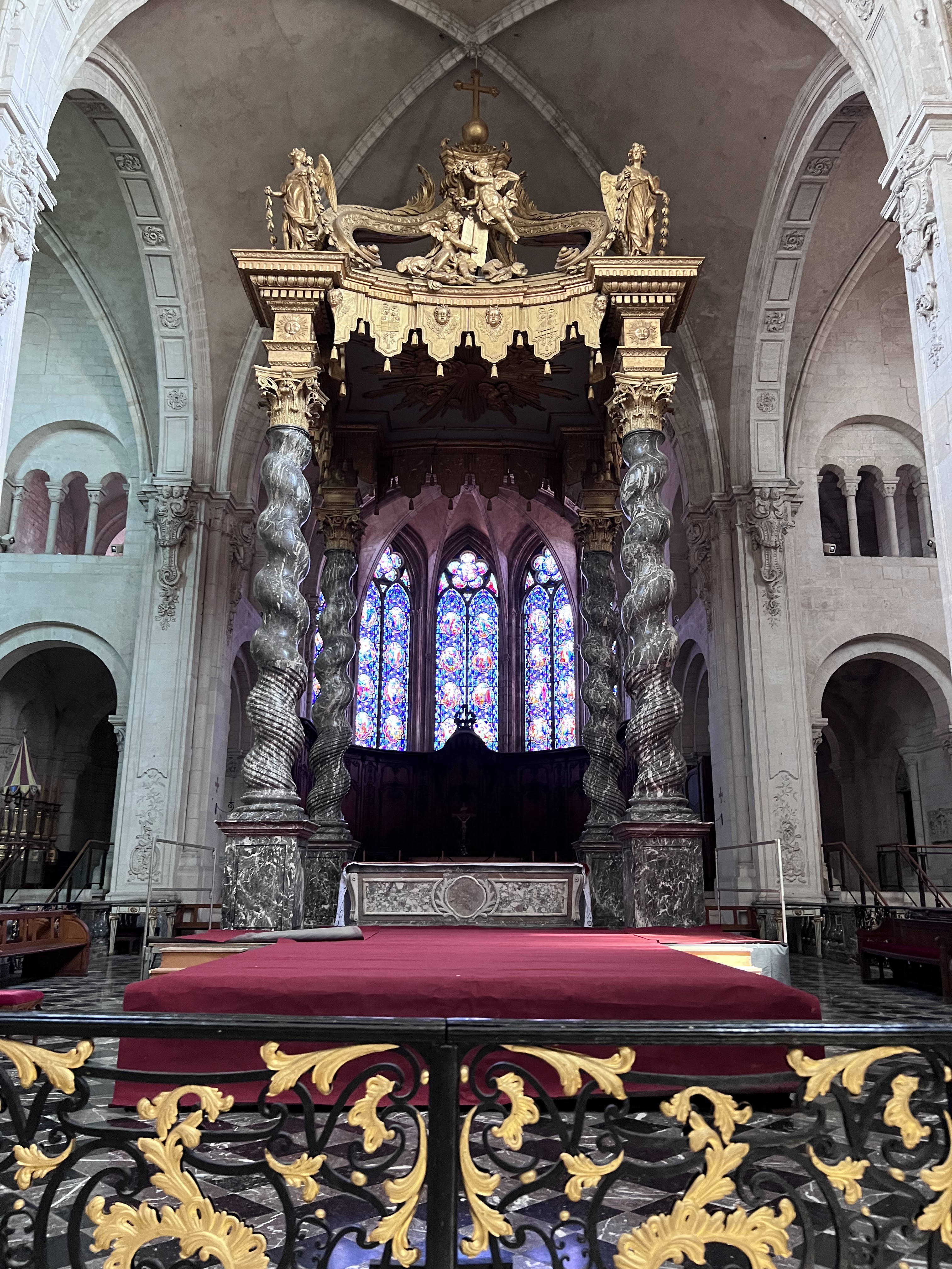 Le baldaquin est une réplique réduite de celui de la basilique Saint-Pierre de Rome. L’orgue fais un magnifique son. Il y as aussi la crypte de la cathédrale rempli d’histoire.