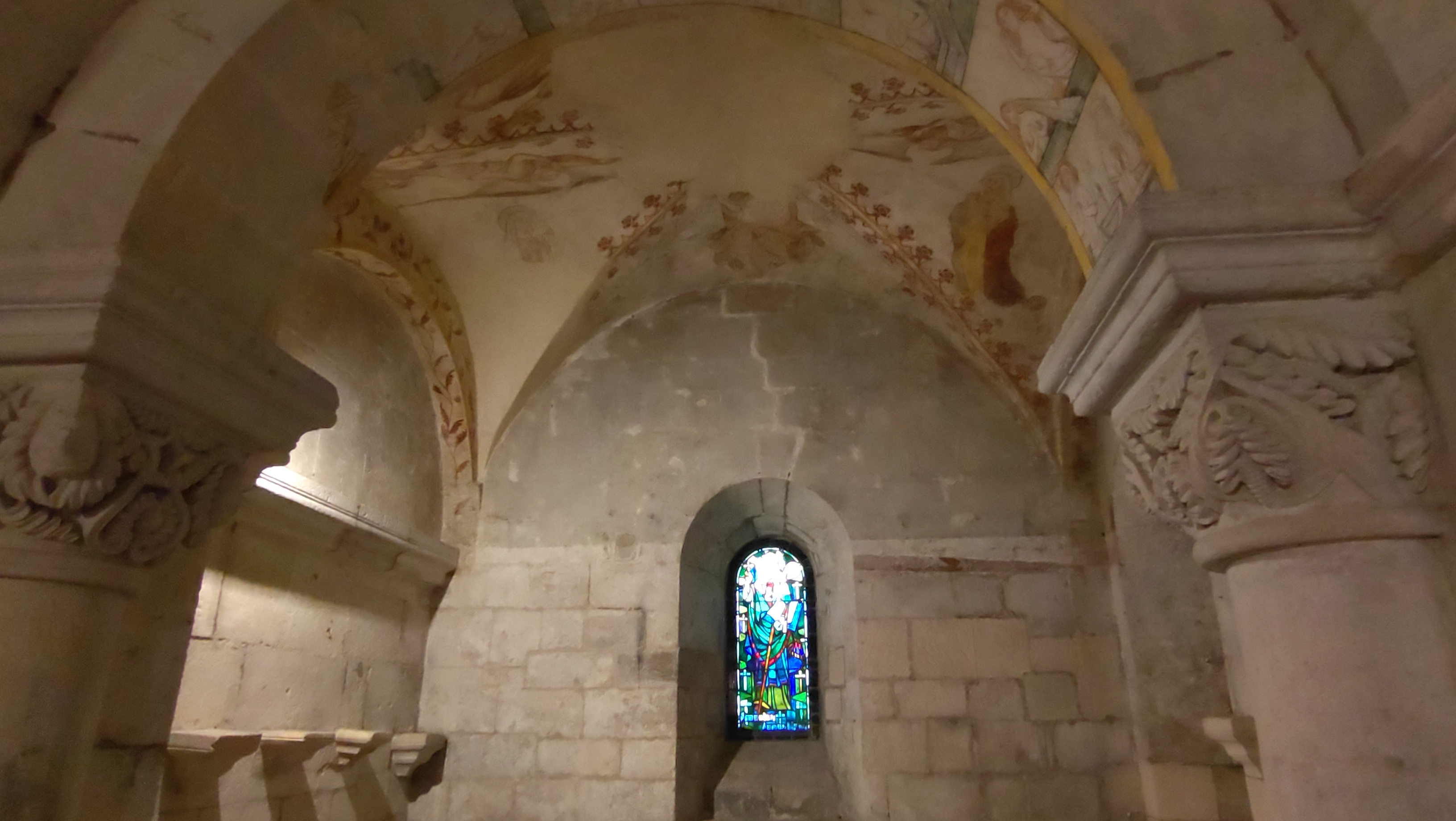 belle cathédrale crypte avec quelques peintures romanes remarquables