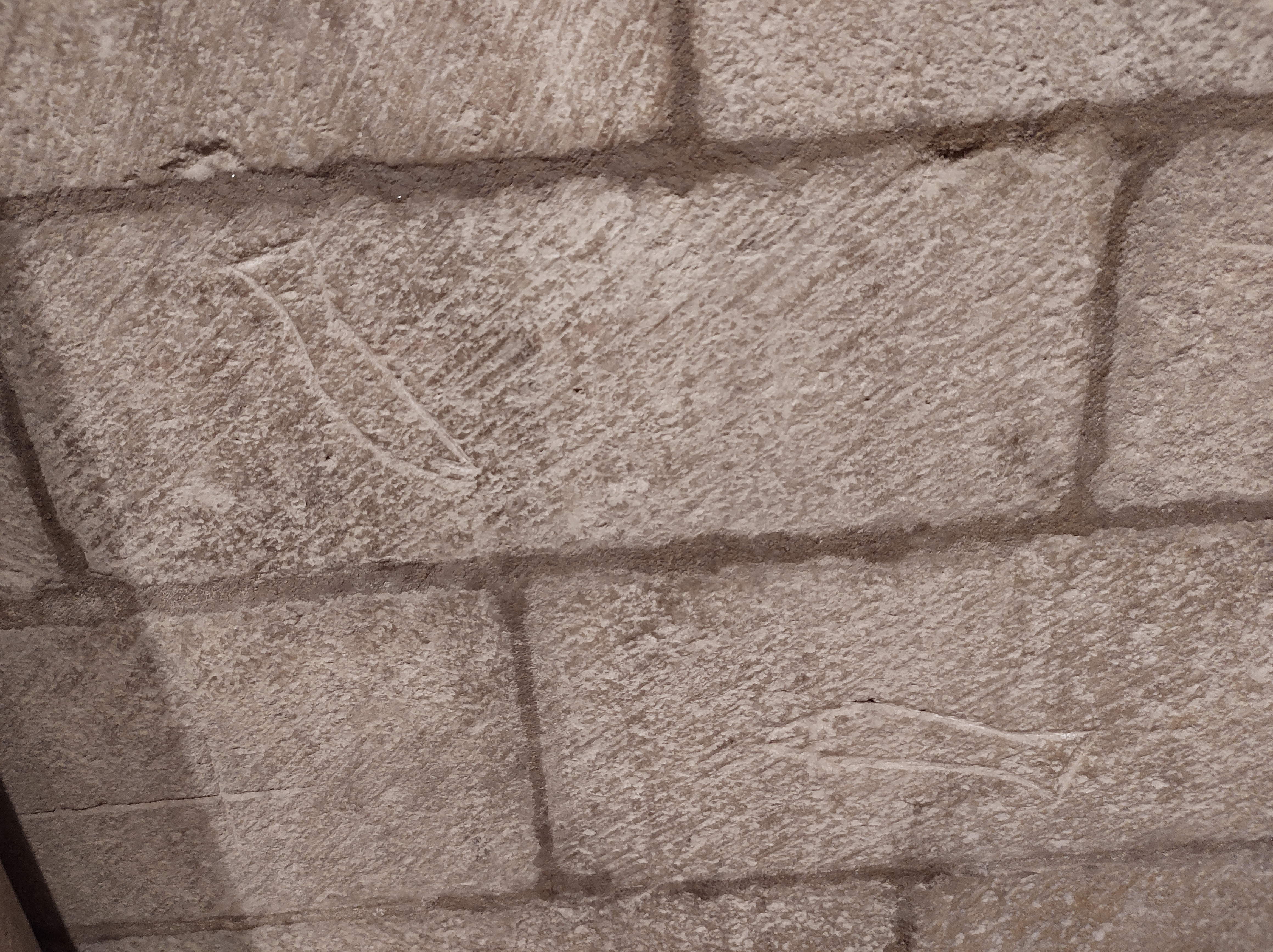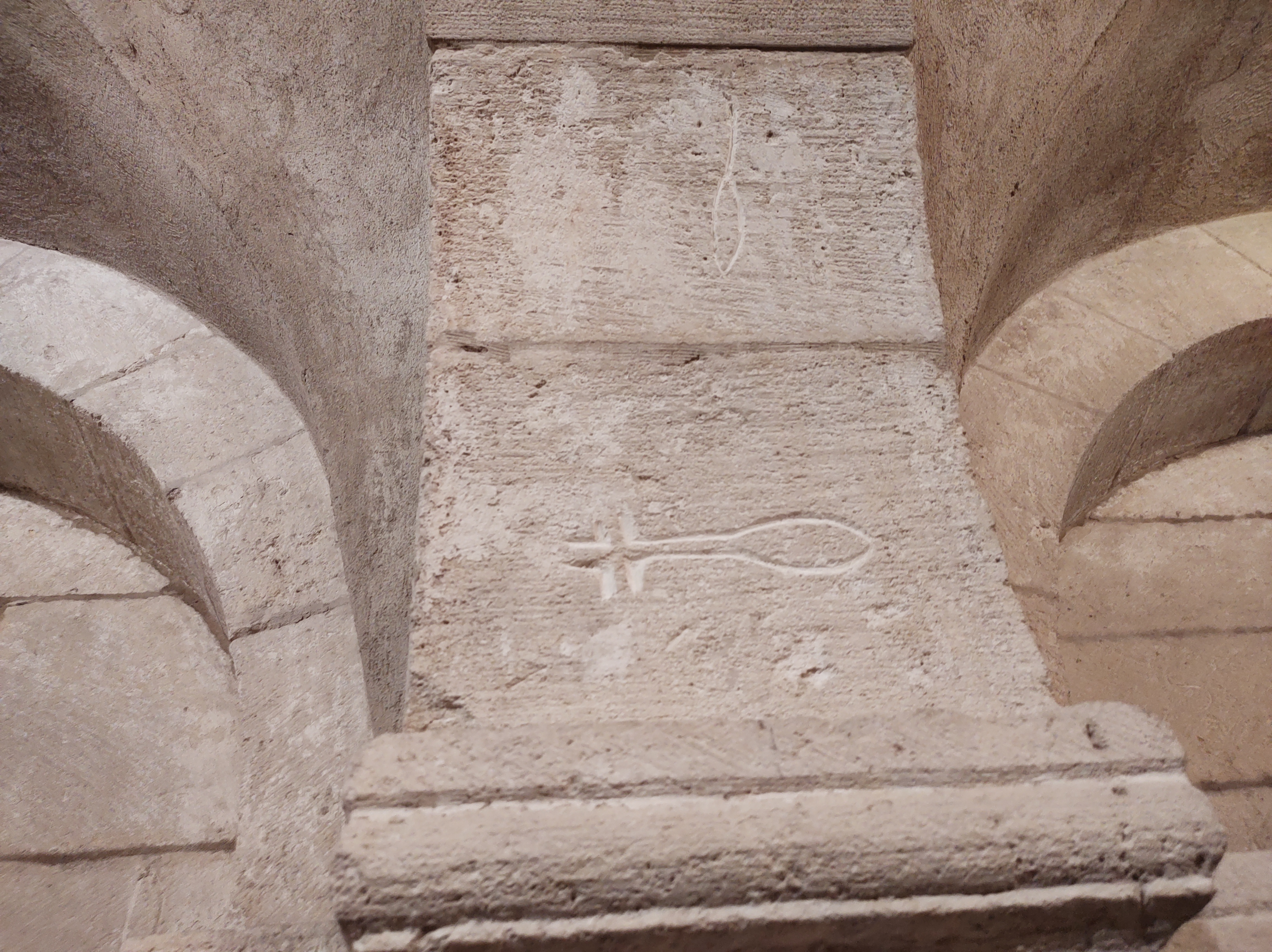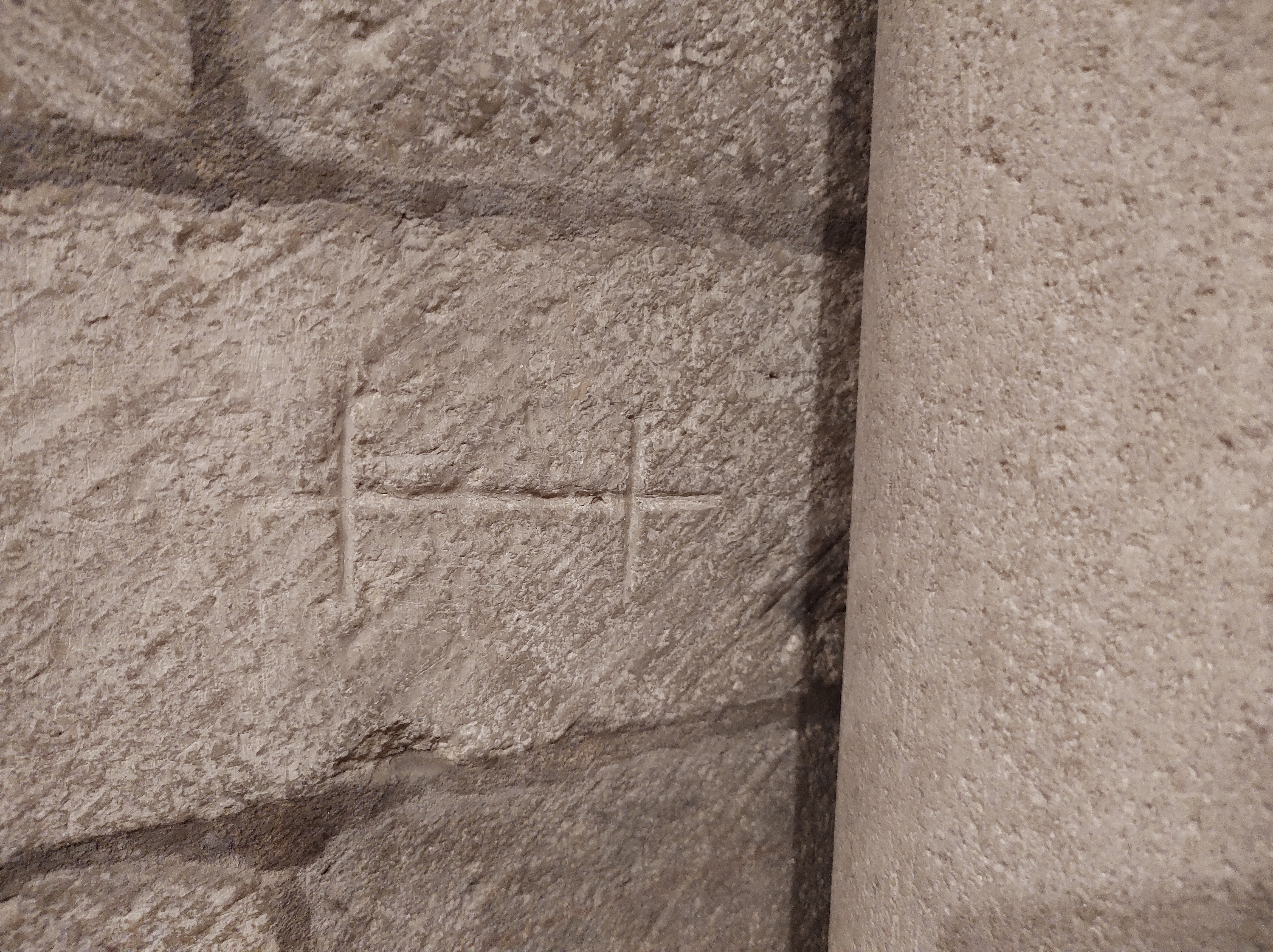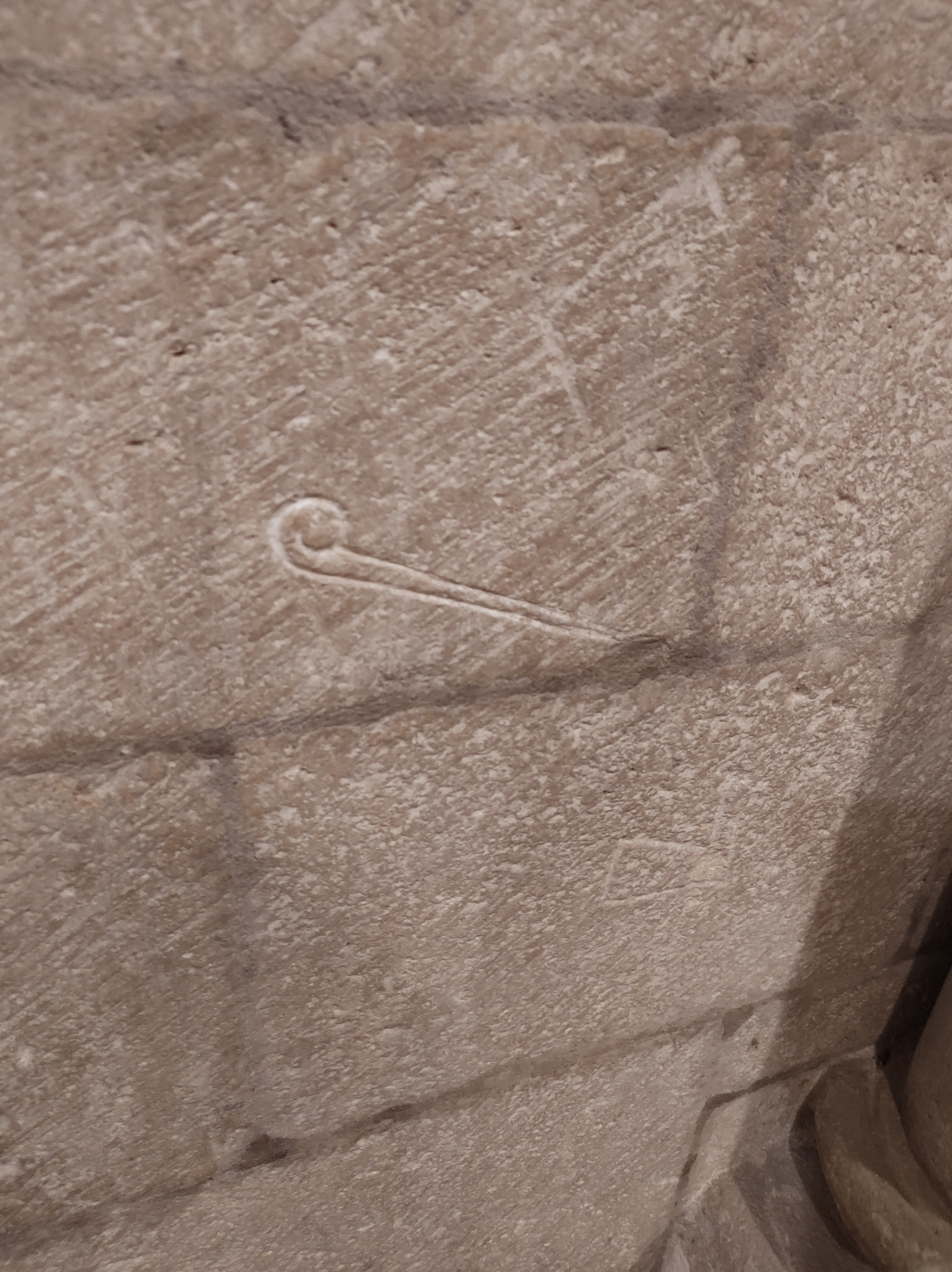 A remarquer : les marques des tailleurs de pierre sur les pierres, partout dans la cathédrale