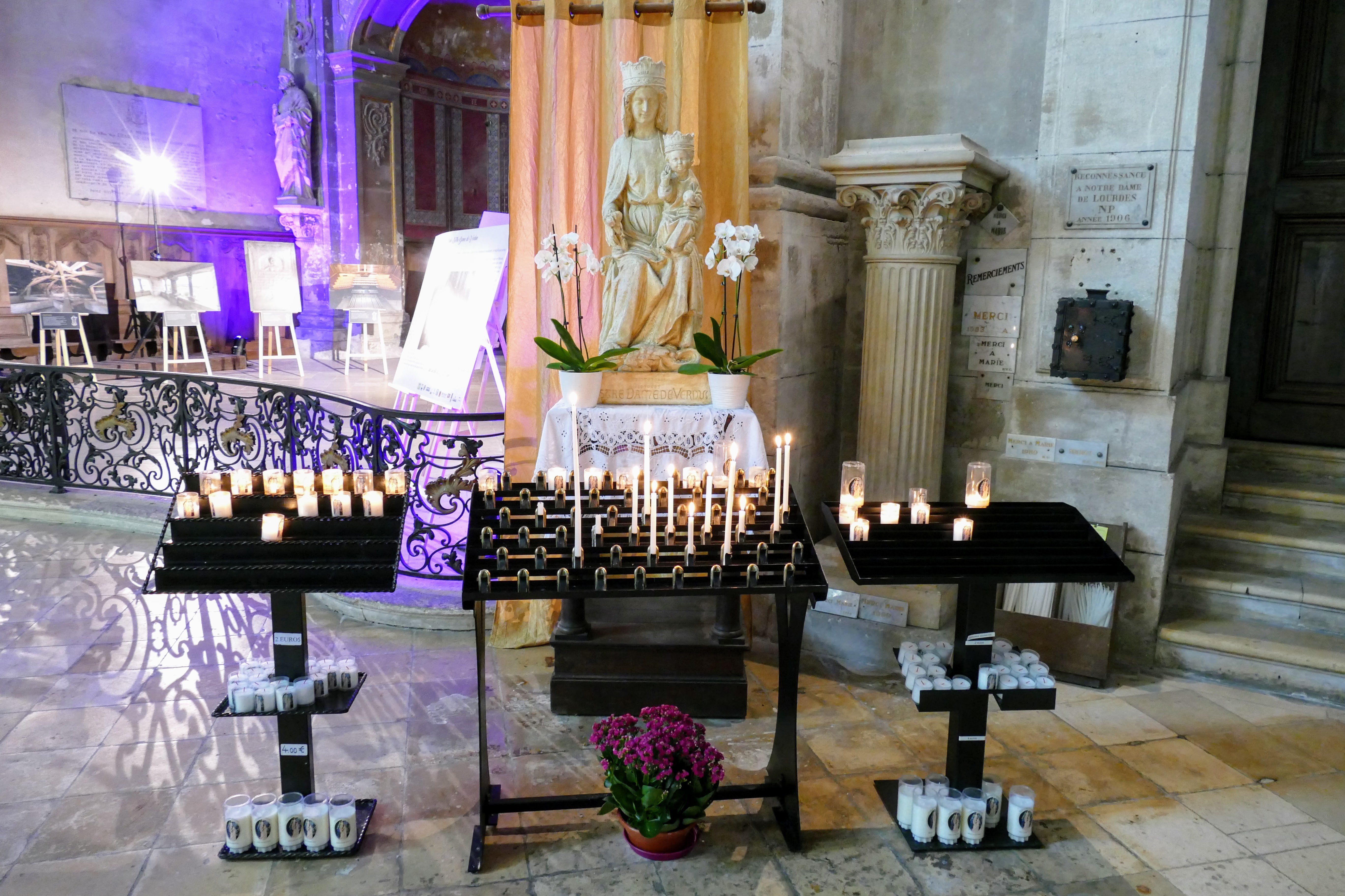 Très belle cathédrale avec actuellement la crèche de notre dame de Paris. Parking à proximité. Grande amplitude d'ouverture.