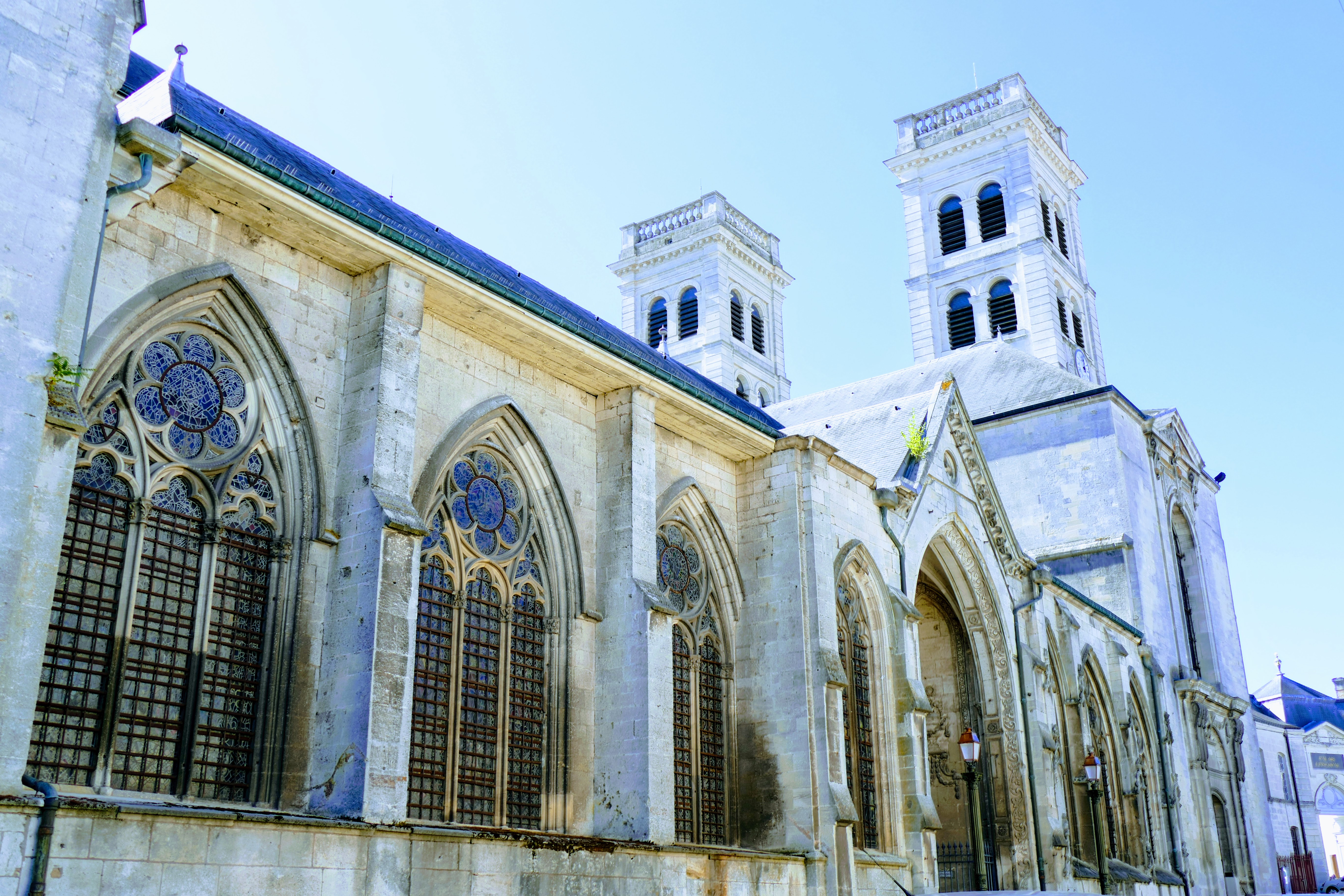 Très belle cathédrale mais qui ne possède près de parvis frontal. La crypte est magnifique avec des fresques du 12e siècle. Les vitraux sont très beaux et lumineux. Les cloître est simple mais avec une architecture et de belles dentelles de pierres.